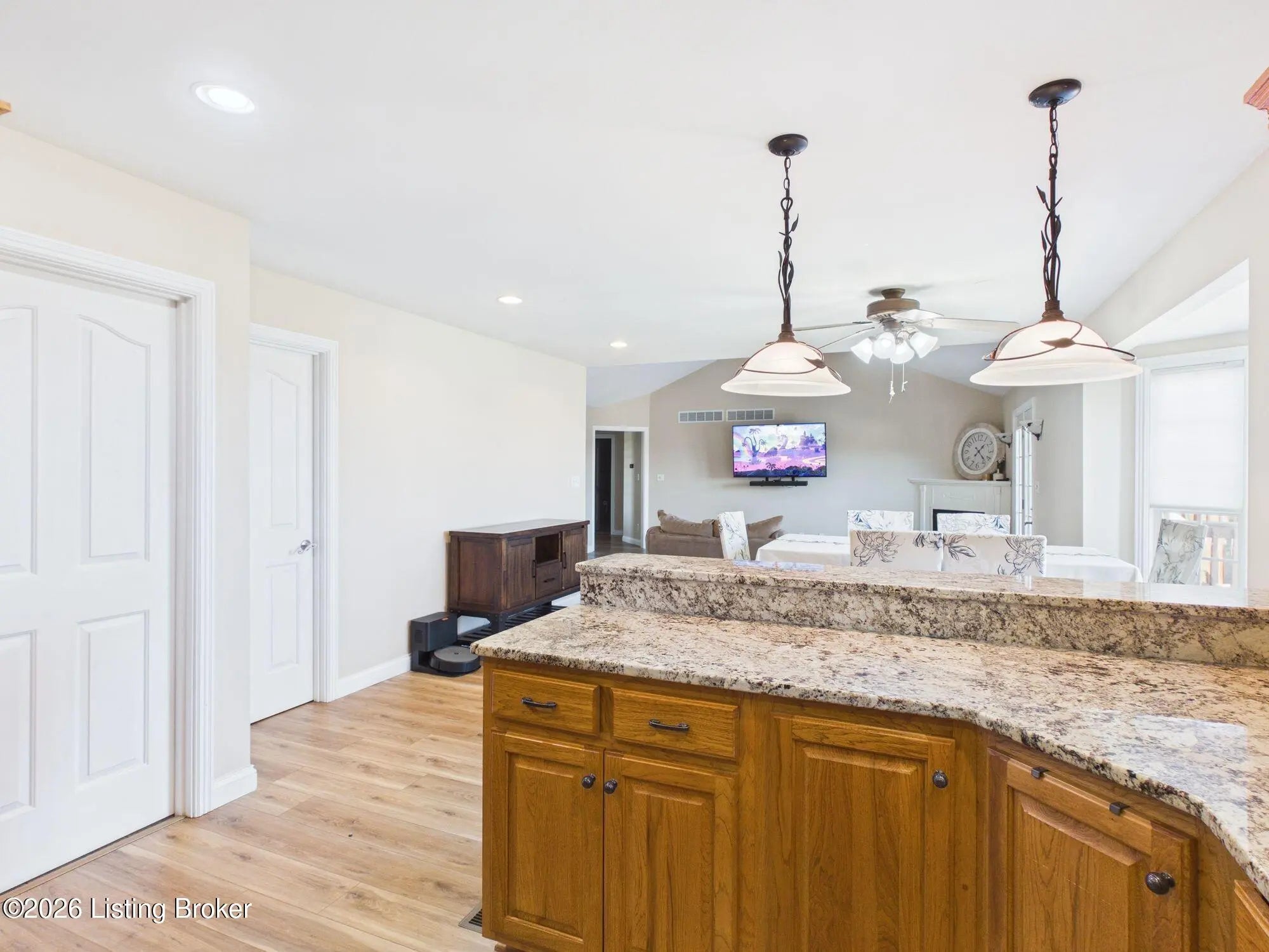 Welcome to 453 Oak Tree Way, a beautifully updated walkout ranch nestled in the desirable Pin Oak subdivision of Taylorsville. This spacious 4-bedroom, 3-bath home offers the perfect blend of comfort, functionality, and scenic charm. Step inside to an inviting open floor plan where the living room flows seamlessly into the stunning eat-in kitchen—ideal for both everyday living and entertaining. The kitchen has been thoughtfully updated with brand-new granite countertops, complemented by new laminate flooring that adds a fresh, modern touch throughout the main living areas. A cozy fireplace anchors the living room, creating a warm and welcoming atmosphere. The primary suite is truly impressive, featuring an oversized bedroom and a generously sized en-suite bath complete with a soaking tub and separate shower. Two additional bedrooms and a full bath on the main level provide plenty of space for family or guests. The walkout basement expands your living space even further, offering a second fireplace, a large open family room, a kitchenette, a full bathroom, and an additional bedroom—perfect for entertaining, extended stays, or multi-generational living. Step outside and fall in love with the incredible outdoor living spaces. The deck, patio, and screened-in porch offer breathtaking views of the surrounding countryside, creating the perfect setting to relax or host gatherings. Freshly painted throughout and truly move-in ready, this home checks all the boxes for space, updates, and location.