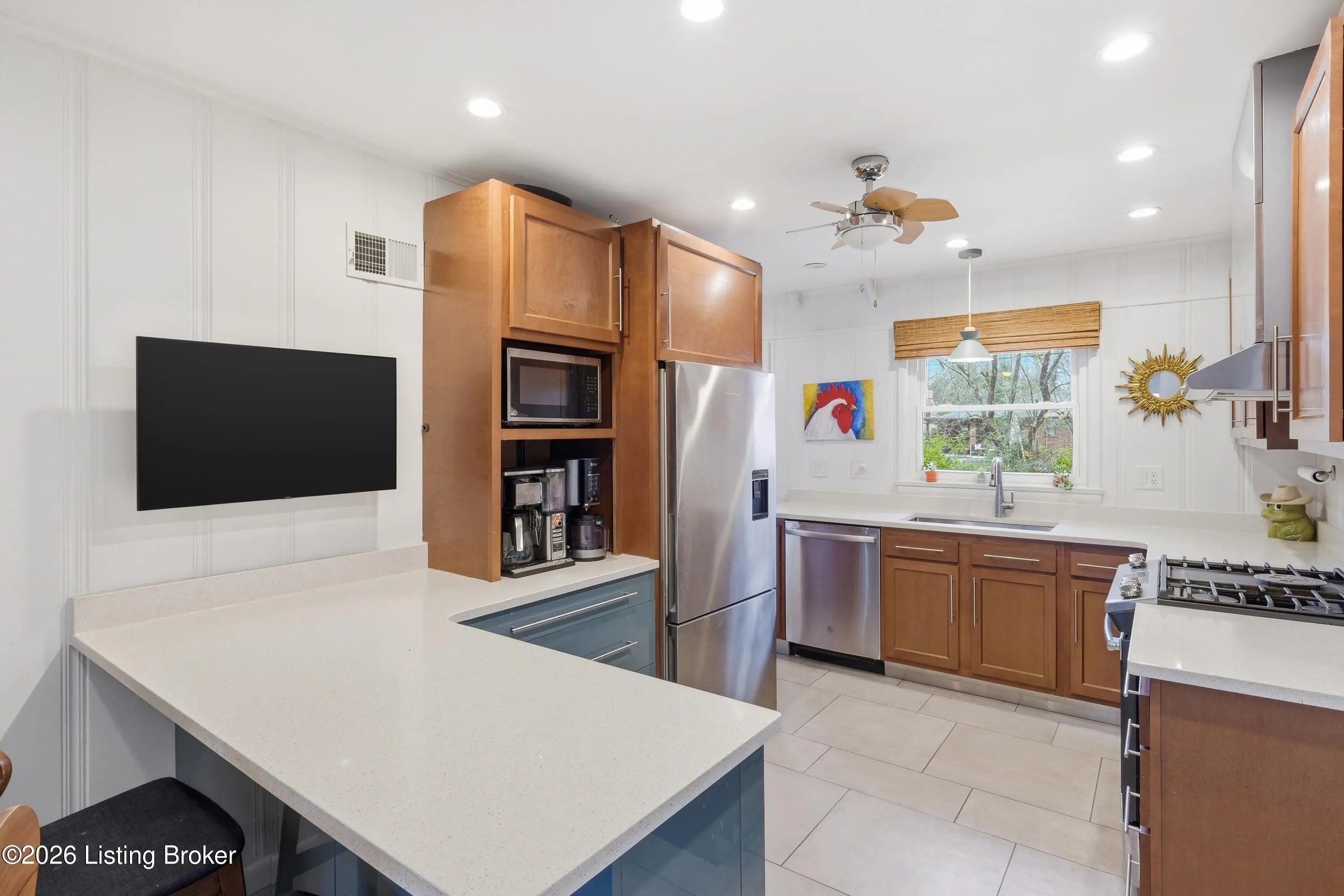 This beautiful, maintained home features mid-century modern influence and offers 3 bedrooms and 2.5 bathrooms, along with a beautiful foyer entrance that creates a warm first impression. The updated kitchen features stainless steel appliances, and the home also includes updated windows throughout. Parking and workspace are abundant and unmatched for the area. You'll enjoy a one-car attached garage for daily ease that includes a built-in EV charger, plus a massive 24' x 24' two-car detached garage equipped with warehouse-style shelving for your collection, hobbies, or ultimate storage. Tucked behind the attached garage is a dedicated 9' x 9' workshop—the perfect retreat for the serious maker or cyclist. You'll appreciate the many upgrades to plumbing and electrical, as well as the generous storage space available throughout the home.