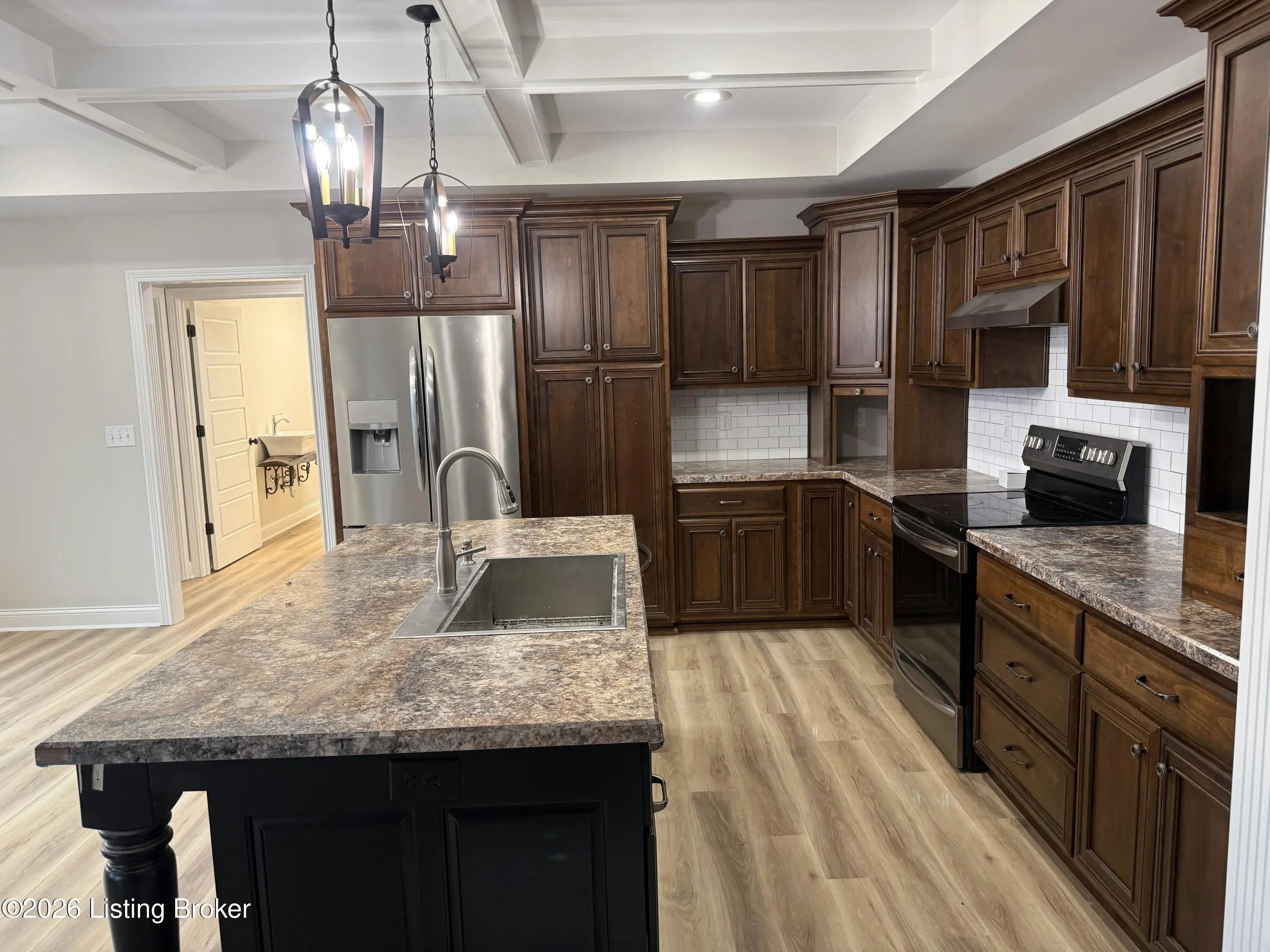Craftsman style beauty with fresh paint and new laminate hardwood flooring throughout. 1853' finished first floor square feet in this 4-bedroom, 3.5 bath, custom built home on 5 acres of Nelson County real estate. Excellent location just minutes to Bardstown yet has this private country feel to it. 2 car attached garage, split floor plan, covered front porch and deck off the living room overlooking the back yard. Vaulted, coffer, and trey ceilings in this home, custom kitchen cabinets, kitchen island with sink, rock fireplace with gas logs and mantle. Large primary suite with access to the rear deck as well. Double vanity and walk-in shower for two. Huge laundry area, foyer and half bath all on main floor. Downstairs offers full bath, storm shelter under the front porch and a 1 car garage. Remaining basement area is framed up, exterior walls insulated and plumbing for and additional kitchen area in place. With a little work an additional bedroom, living room, kitchen area and storage area can be completed. Walkout to the covered patio to relax in the above ground pool while enjoying the seclusion and privacy the property offers. Come see this one I think you will agree!