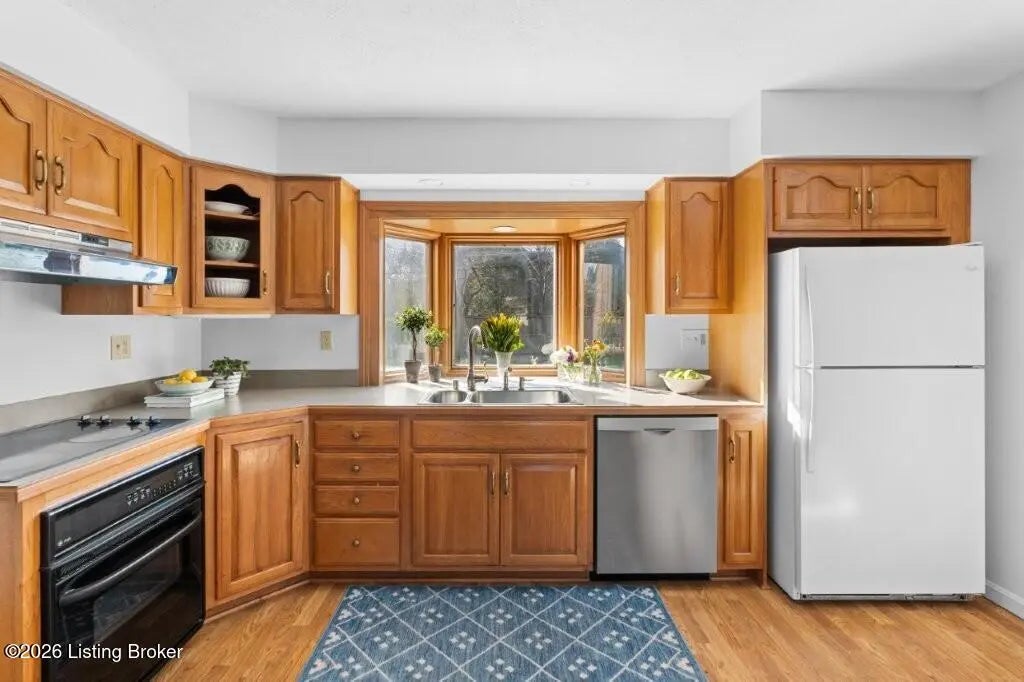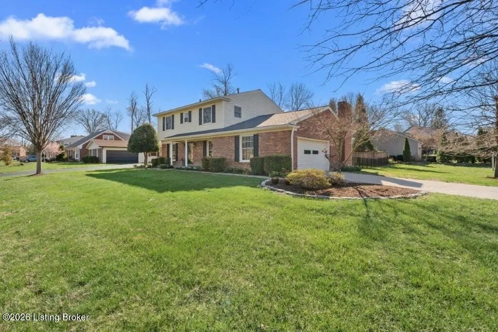 Welcome to this lovingly maintained home perfectly situated on a desirable corner lot of a cul-de-sac in sought-after Blue Ridge Manor bordering Plainview. Inside, the spacious and inviting layout features a large living room with tall windows and plenty of space for everyday living and entertaining-including room for a game table and additional seating. A formal dining room is next to the kitchen, which offers an eat-in area, a generous pantry and a charming bay window with a plant ledge that brings in an abundance of natural light. The cozy family room allows direct access to a patio and a two-car garage and centers around a fireplace with a traditional brick wall and hearth. Upstairs, four spacious bedrooms showcase beautiful hardwood flooring and one of the full baths is an en-suite to the primary bedroom. Thoughtfully and meticulously cared for, this home features a regularly serviced HVAC, a generator, replacement windows, fresh paint throughout and a basement with a new epoxy-finished floor and waterproofing with a transferable warranty. Outdoors, the level backyard is complete with a patio, plus a full fenced area with aluminum and privacy fencing. The home also features a front sitting porch with timeless appeal, a double-wide driveway, and an additional parking pad offering flexibility for a sport court. This is a wonderful property ready for the next chapter in an established neighborhood hosting a park and a welcoming atmosphere of activities and events conveniently located in close proximity to dining, shopping and schools.
