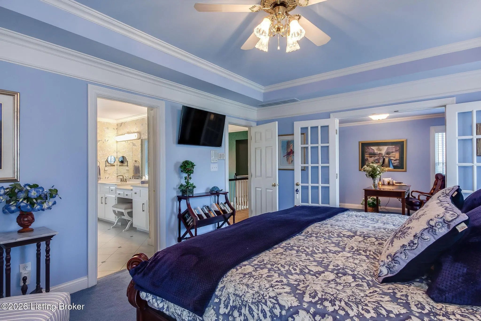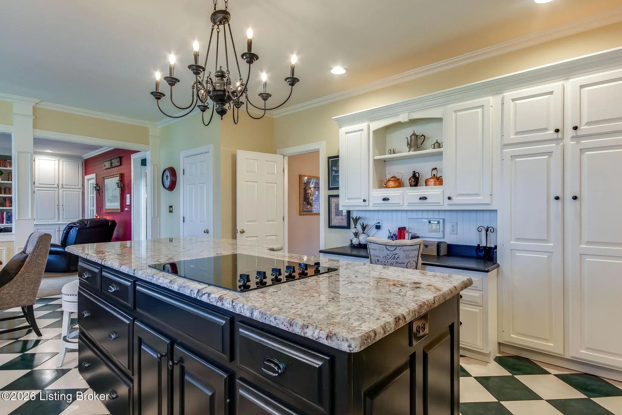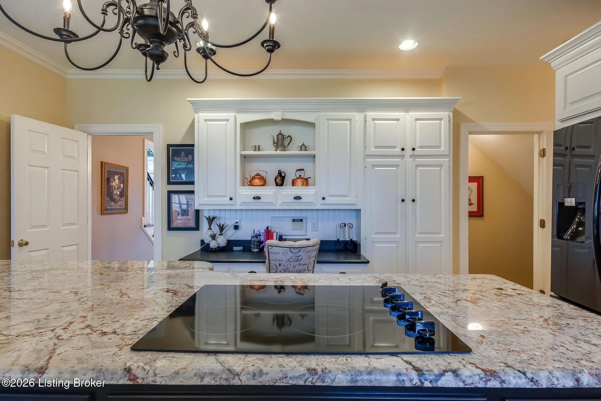 Luxury 5 Bedroom, 4 ½ bath home with a ton of very hard-to-find features making it perfect for family, friends as well as plenty of privacy. When you visit you'll immediately notice the high-end finishings, custom trim and large windows bringing in tons of natural light! The features include 2 Primary Suites; 2 stairwells giving access to the 2nd floor; a temperature-controlled basement shop with plenty other extras - and that's not all! You enter the large, 2-story Foyer from the Covered Front Porch to see a beautiful formal staircase, tray ceiling, and chandelier. The Formal Dining Room on your left and the Formal Living Room to your right. On your way from the Formal Living Room to the large Family Room is a custom wet bar with a wine fridge, sink and plenty of room for your favorite beverage collection. The Family Room has everything you need. It has a fireplace and built-ins, a great rear-facing view over the Trex deck to see the wooded backdrop at the back of the property. The Living Room is an open concept with the huge Kitchen with a Dining Area that leads you to the covered, screened portion of the rear deck. The Kitchen has ceramic tile floors, granite countertops and backsplash, and cabinet underlighting. All of this is laid out perfectly for outdoor grilling, entertainment, and relaxation. A hallway off the Kitchen takes you to the full appointed Laundry Room and access to the 3-car attached Garage. There is also exterior access through a door off the mudroom area. A convenient powder room rounds out the first floor. Upstairs off the large landing you will find the main Primary Suite with a 9' tray ceiling, a fireplace and the private ensuite Full Bath with two closets to go with the big Walk-in Closet. The Primary Bedroom also includes a large sitting room through the French Doors. It's perfect for a nursery or library and has access to the central hallway. There are 2 large bedrooms which share an oversized Jack 'n Jill Full Bath with two private vanity spaces. One of these Bedrooms has a huge, private Sitting Room/Family Room area with a skylight and two walk-in closets. The 4th upstairs Bedroom is the 2nd Primary Suite with a large closet and a private, ensuite Full Bath. And don't miss the 2nd stairwell leading you back to the first floor. The basement brings even more with new laminate flooring and paint! You'll see the Office/Craft area as you enter the 2nd large Family Room. There is a Game Room space, currently used as a workout area, giving you access to the covered rear patio. The 5th Bedroom has ensuite access to the guest Full Bath. Off the Family Room is a great Shop and storage area. It's climate controlled, wired for 240, a utility sink, and has its own exterior garage door entrance from the side yard. This backyard is the best in the neighborhood! Nearly ¾ acre and just beyond the property line is a wooded area (owned by the HOA) with a park-like setting and a pond. This mature wooded area serves as a backdrop view from the deck and patio giving a great sense of privacy! Do not miss your chance to see this wonderful home!