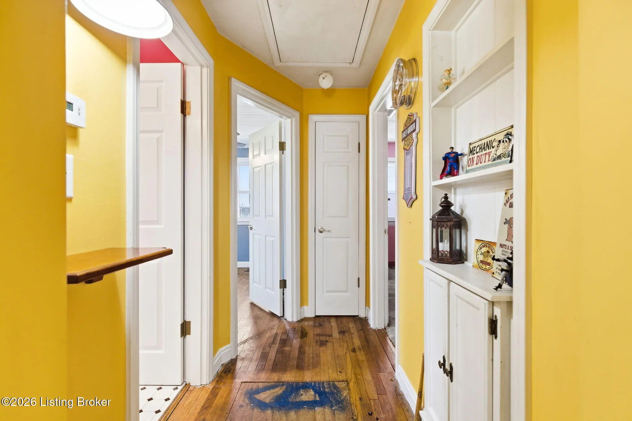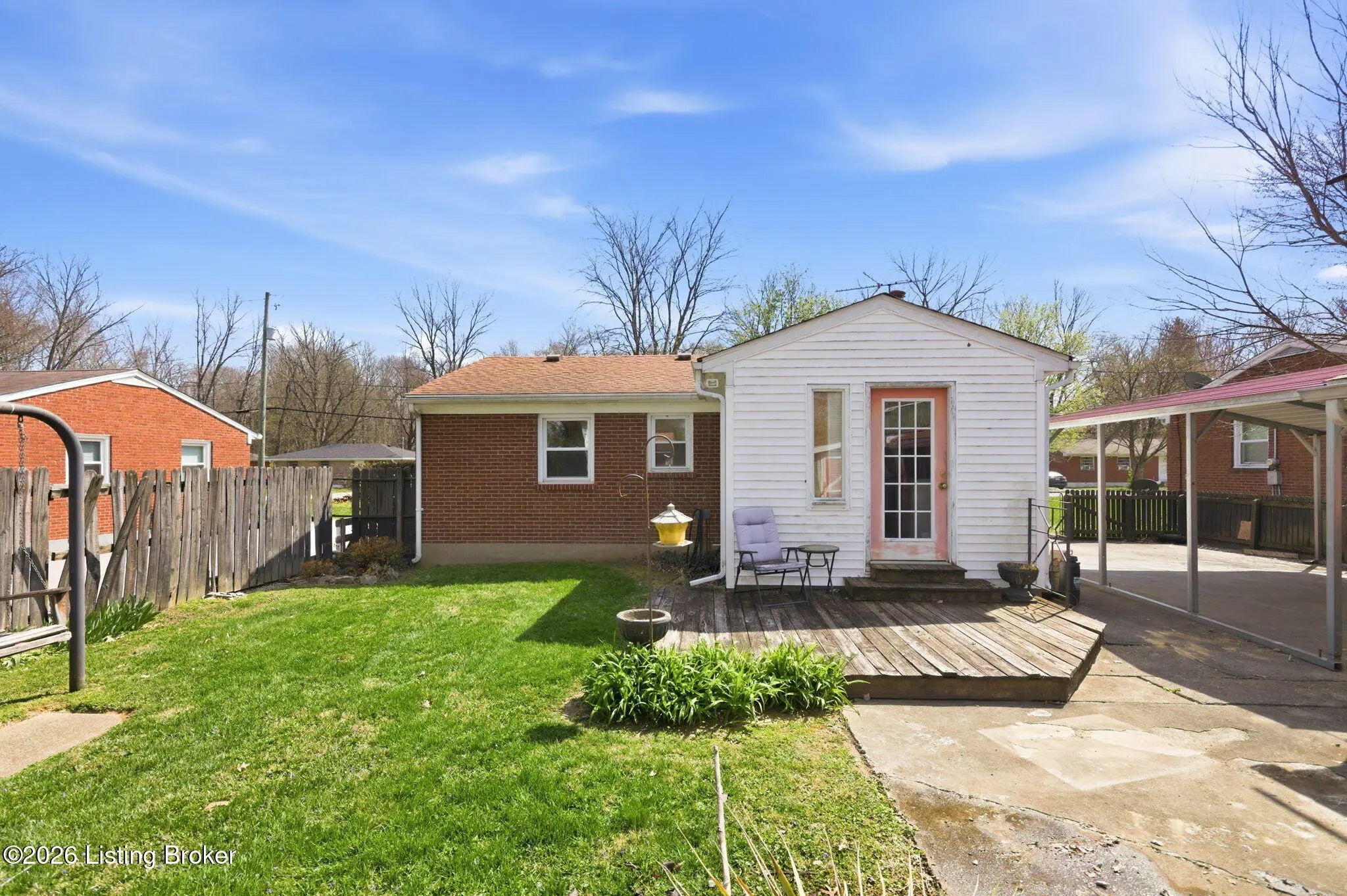 INVESTORS/BUYERS ---Hope you are in good shape because you better run FAST to schedule a showing to see this BARGAIN!!! SOLD "AS IS" . Seller will take a few things they want from the home, garage, carport, outbldgs and yard prior to closing. Everything else stays with the home. 2 bedroom brick DOLLHOUSE ranch on a crawl space in need of some TLC on a dead end street and has an extra deep flat lot---60' x 203'. Owner lived there approximately 44 years. Some updating has been done in the kitchen and bathroom plus newer windows and newer HVAC. Wait until you see the MECHANIC MANS DREAM GARAGE--2 car tandem garage-- 13'9" x 37'10" PLUS an oversized 2 car carport 17'6" x 20'. Additionally, there is a large outside storage bldg. As you walk inside there is a ample size living room with a large window and carpet flooring ( may be hardwood under) which is OPEN to a nice spacious updated kitchen with refrigerator, stove and ceiling fan. There is an added on Mud Rm in the back of the home with 2 closets and the furnace and hot water heater. The Primary bedroom has carpet flooring( may be hardwood under) ceiling fan, closet and 2 windows. The second bedroom has hardwood flooring, closet, ceiling fan, 2 windows and a lovely beadboard ceiling. There is a pull down in the hallway for extra storage. The full bath has been updated ( commode is not flushing). The lovely large flat back yard is fenced with both chain link and privacy fencing. Don't forget DEAD END STREET!. Property is near Mike Linings Restaurant, Watterson X-press Way, Churchill Downs, Downtown, NULU and parks. MOVE IN JUST IN TIME FOR YOUR 2026 DERBY PARTY!!!