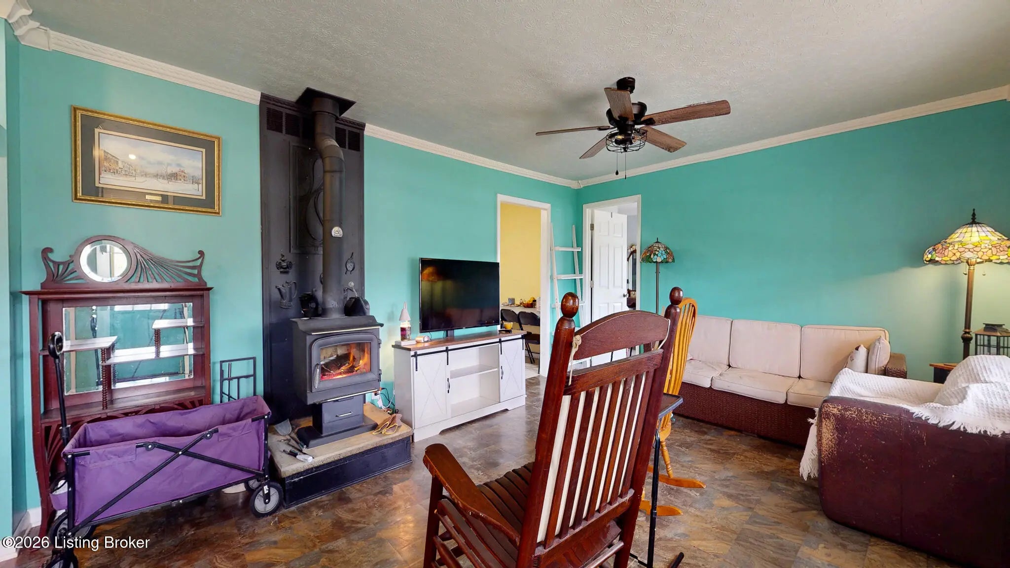 You must see the one of a kind home in Shelby County. Nestled on a quiet, dead end street, it boasts .53 acre that backs up to a farm. There is a stream running through the back yard with a walking bridge that goes over it to a serene park like setting. Perfect for a firepit on a cool spring night. There are 3 bedrooms, but one has a bonus, it has a toilet and vanity, perfect as a room for company. Primary bedroom adjoins the large laundry area, and there is a big sunroom that overlooks the backyard. A large screened in porch rounds out this country oasis. There is a one car garage on the side, and a large shed, perfect for yard tools. There is also a wood burning stove that heats the whole space on those cold winter nights.