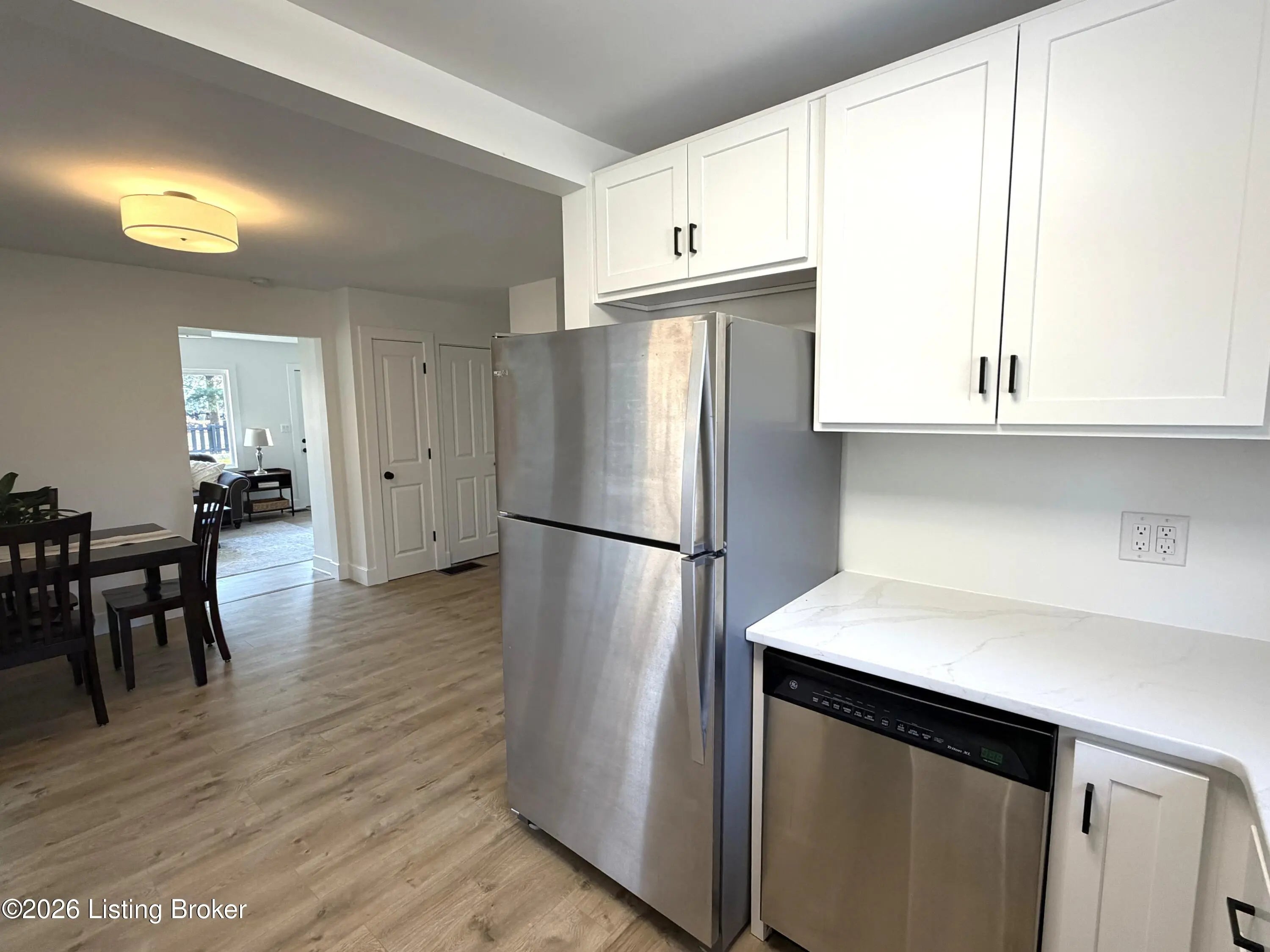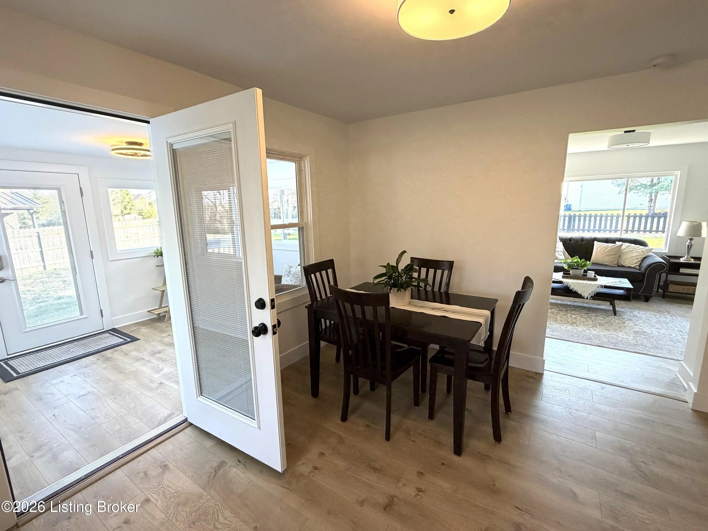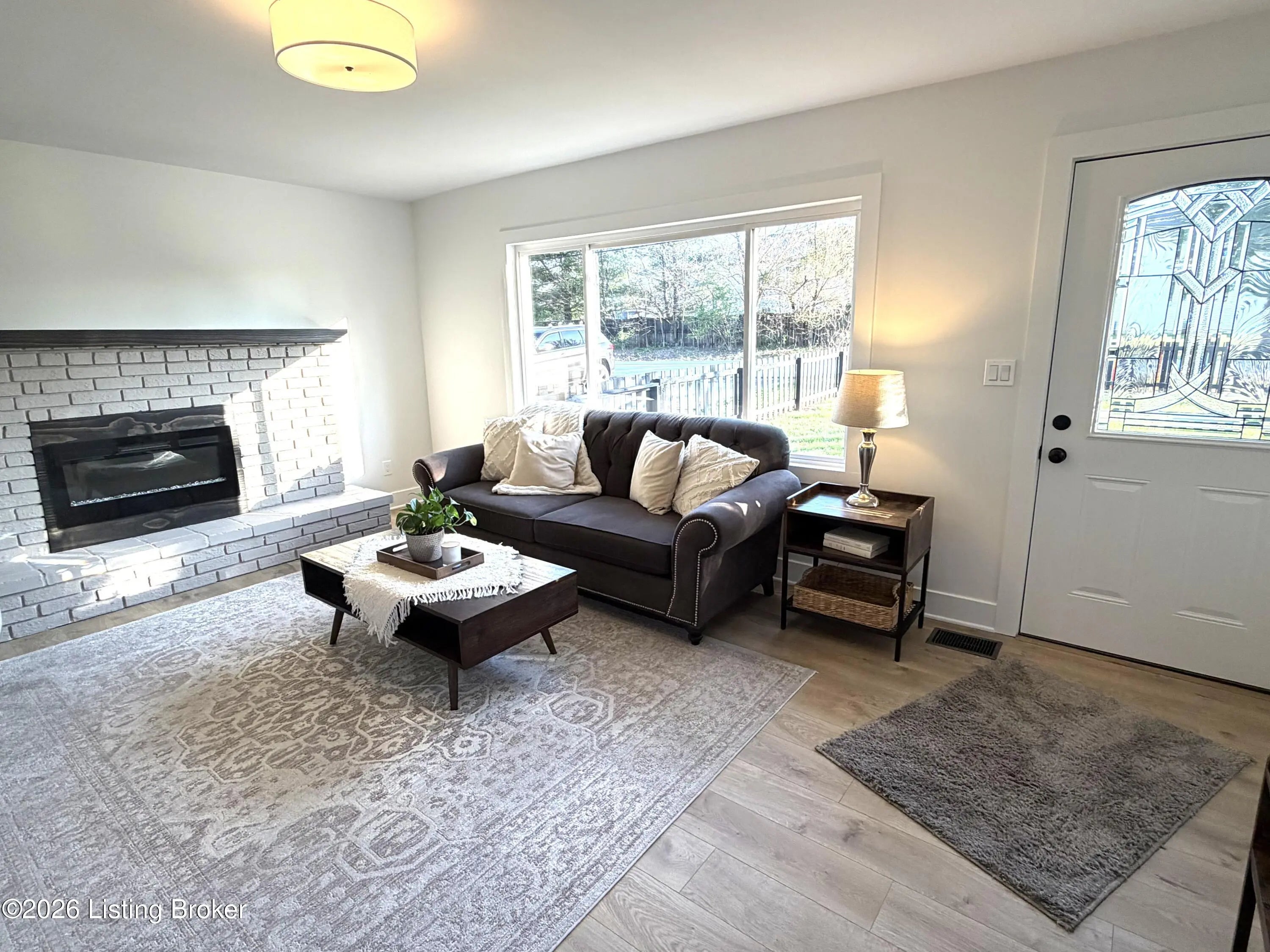 Fabulous opportunity to own this COMPLETELY REMODELED HOME with 3 bedrooms, 2 full baths, located on ONE ACRE in Oldham County! There is absolutely nothing to do but MOVE IN! Welcoming front picket fence and stepping stone walkway leads into an OVERSIZED LIVING ROOM with a large window and a brick hearth featuring a custom mantle an electric FIREPLACE. Open floor plan with stunningly remodeled kitchen with an abundance of new white cabinetry, QUARTZ COUNTERTOPS, stylish subway tile backsplash, STAINLESS APPLIANCES, hidden laundry closet (in hallway), and adjacent dining area with access to the 3-season enclosed porch. LARGE ELEVATED DECK for an amazing view, overlooks the SIZABLE BACKYARD with a perfect blend of greenspace and woods for privacy. Large storage shed has a loft. The insulated crawl space with newly installed vapor barrier is easily accessible from the outside and is perfect for added storage. Throughout this home, you will find private views from every window, new LVP flooring, modern fixtures and finishes, updated doors and hardware, and custom trim work. This home has been professionally painted inside and out. The list goes on and on! Attention to detail throughout. This is an IMMACULATE home with IMMEDIATE POSSESSION available. Don't let this one get away. Call today!