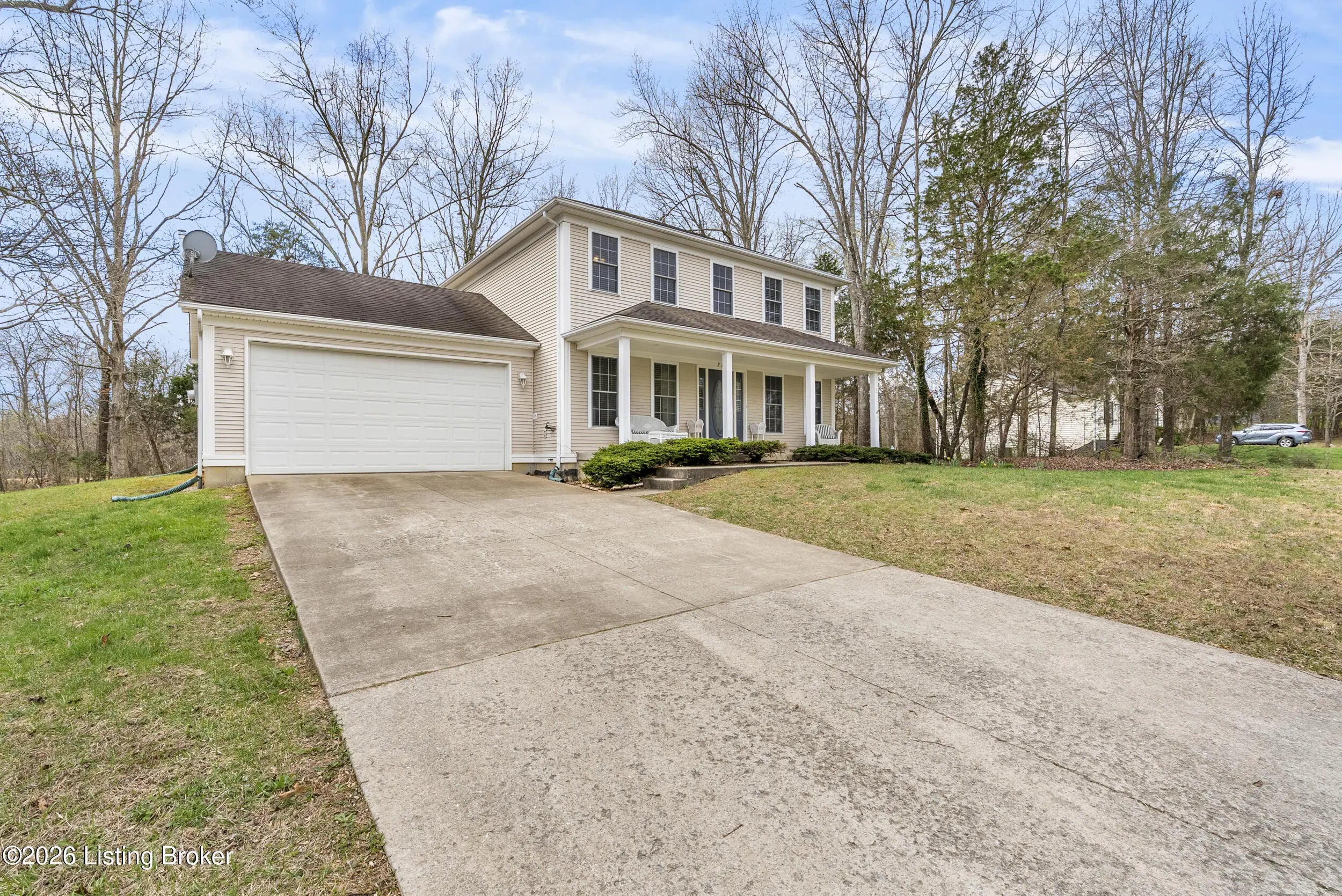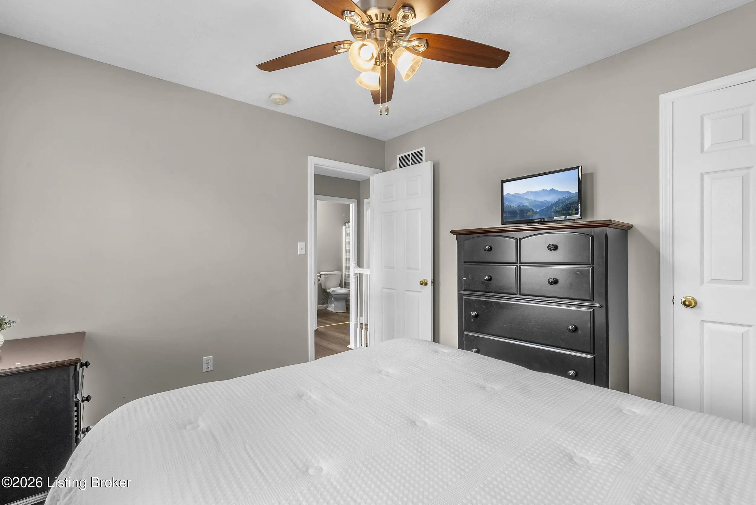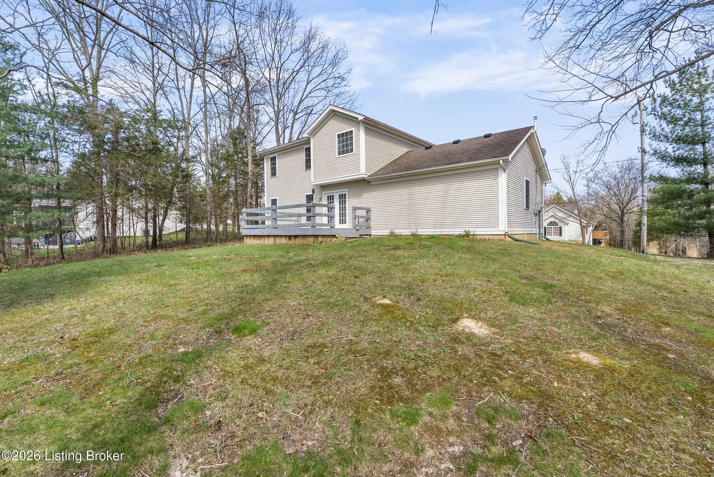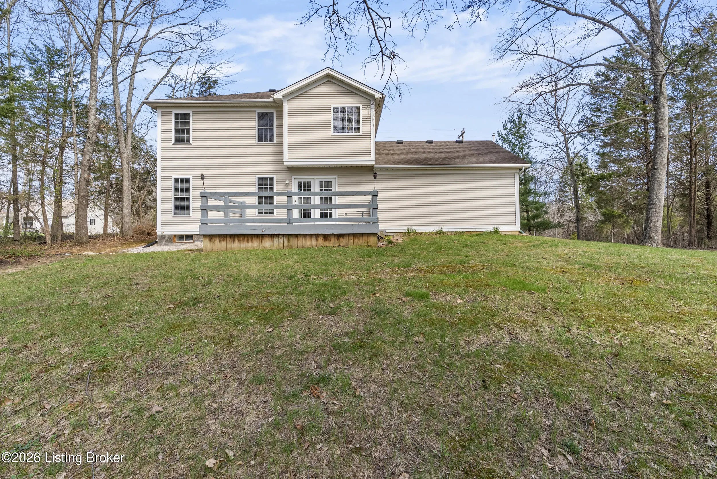 Located in the gated lake community of Doe Valley in Brandenburg, KY, this move-in ready 3-bedroom, 2.5-bath home offers a functional layout with multiple living areas and flexible space to fit a variety of needs. The main level features a spacious living room, dining area, and kitchen with ample cabinetry, pantry, and eat-in space. A main-level flex room adds versatility—ideal for a formal dining room, home office, or playroom. Upstairs, the primary suite includes a private bath with soaking tub, separate shower, and walk-in closet. Two additional bedrooms and a full bath complete the upper level. The lower level provides additional space perfect for a recreation room, home gym, or additional living area. Exterior features include a covered front porch, rear deck, 0.43-acre lot, 2-car attached garage, and paved driveway. Enjoy resort-style living in Doe Valley with gated access, a private lake and marina, golf course, swimming pool, clubhouse, and beaches. Conveniently located near Fort Knox, Elizabethtown, and Louisville—ideal for commuters or those relocating to the area.