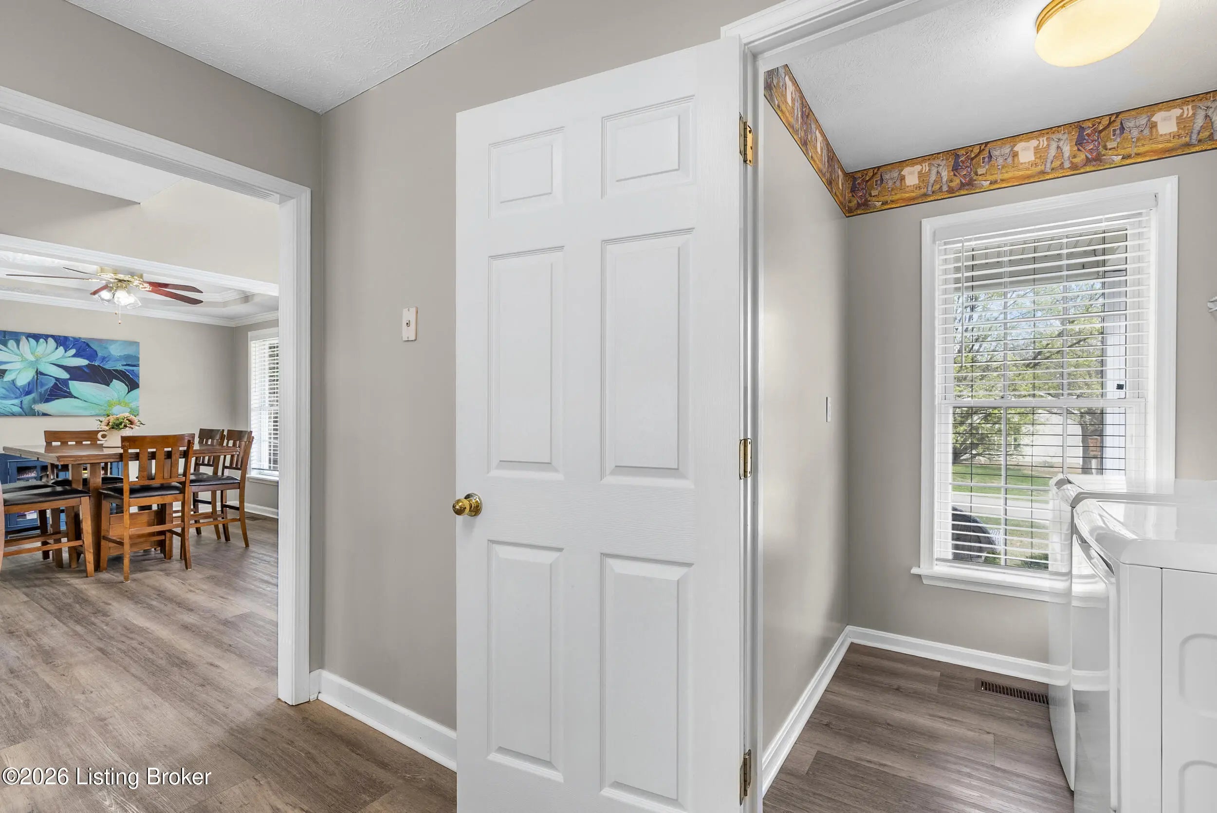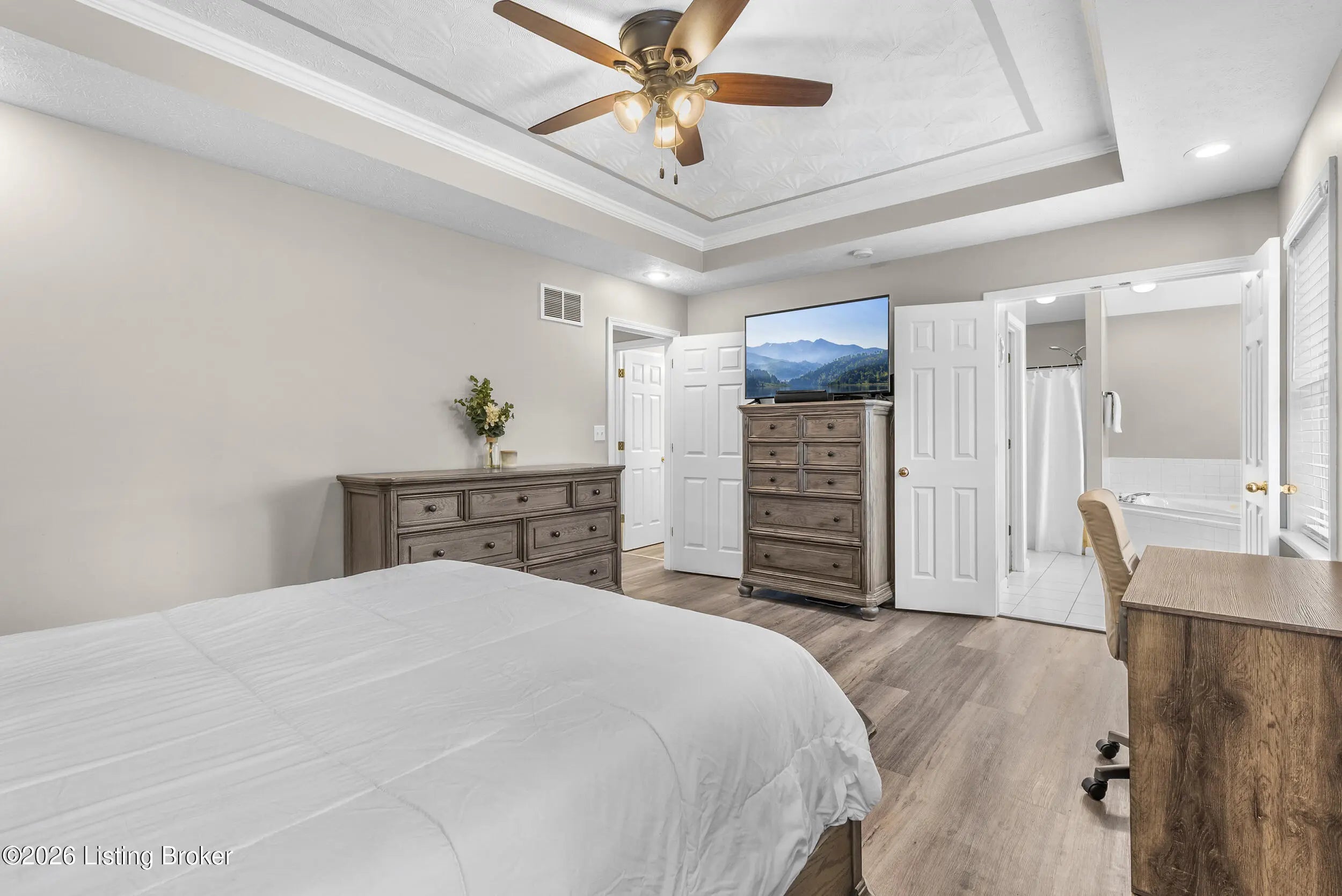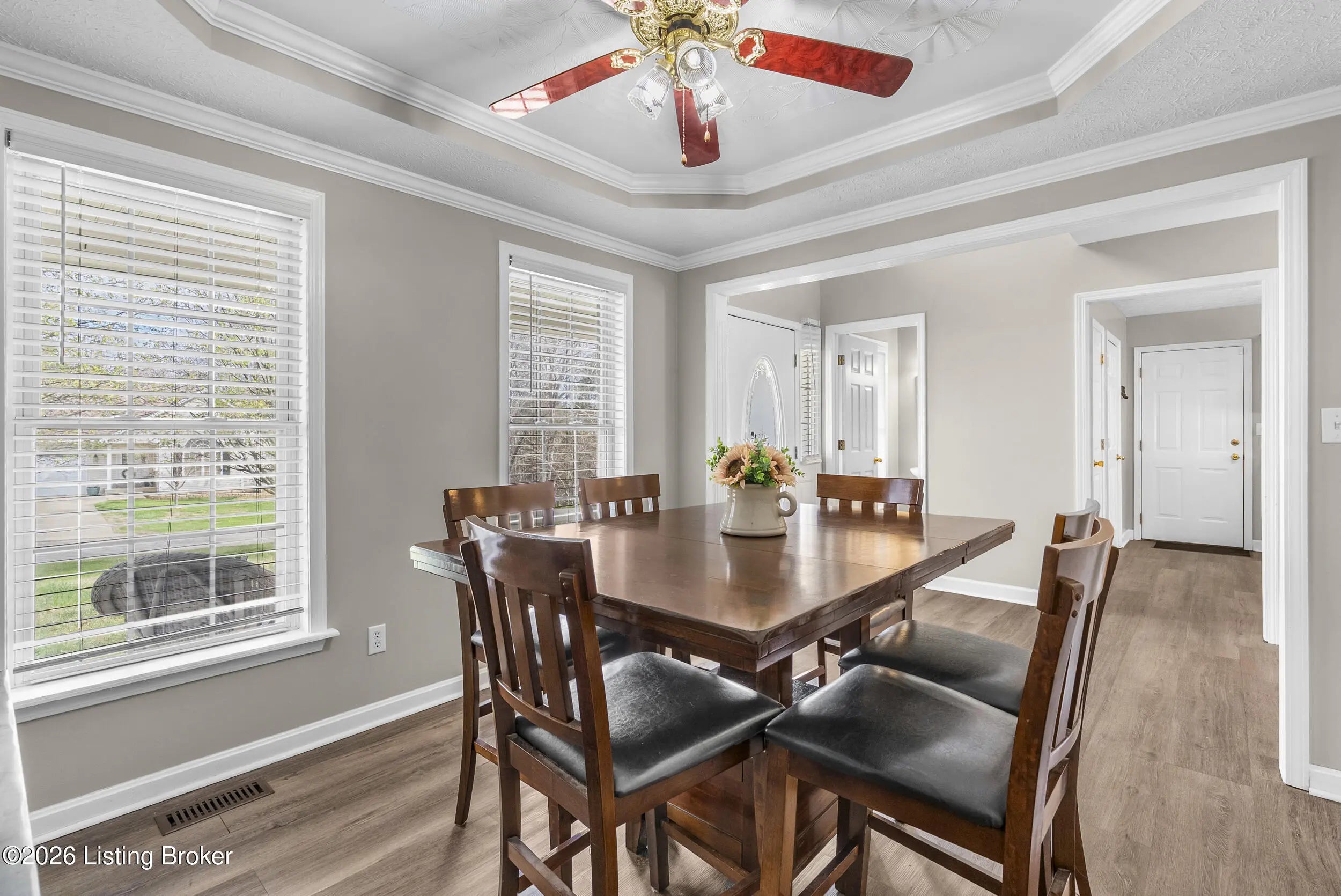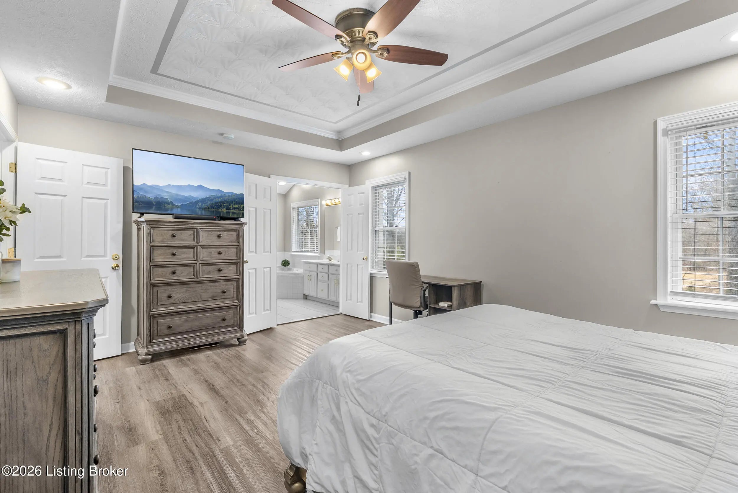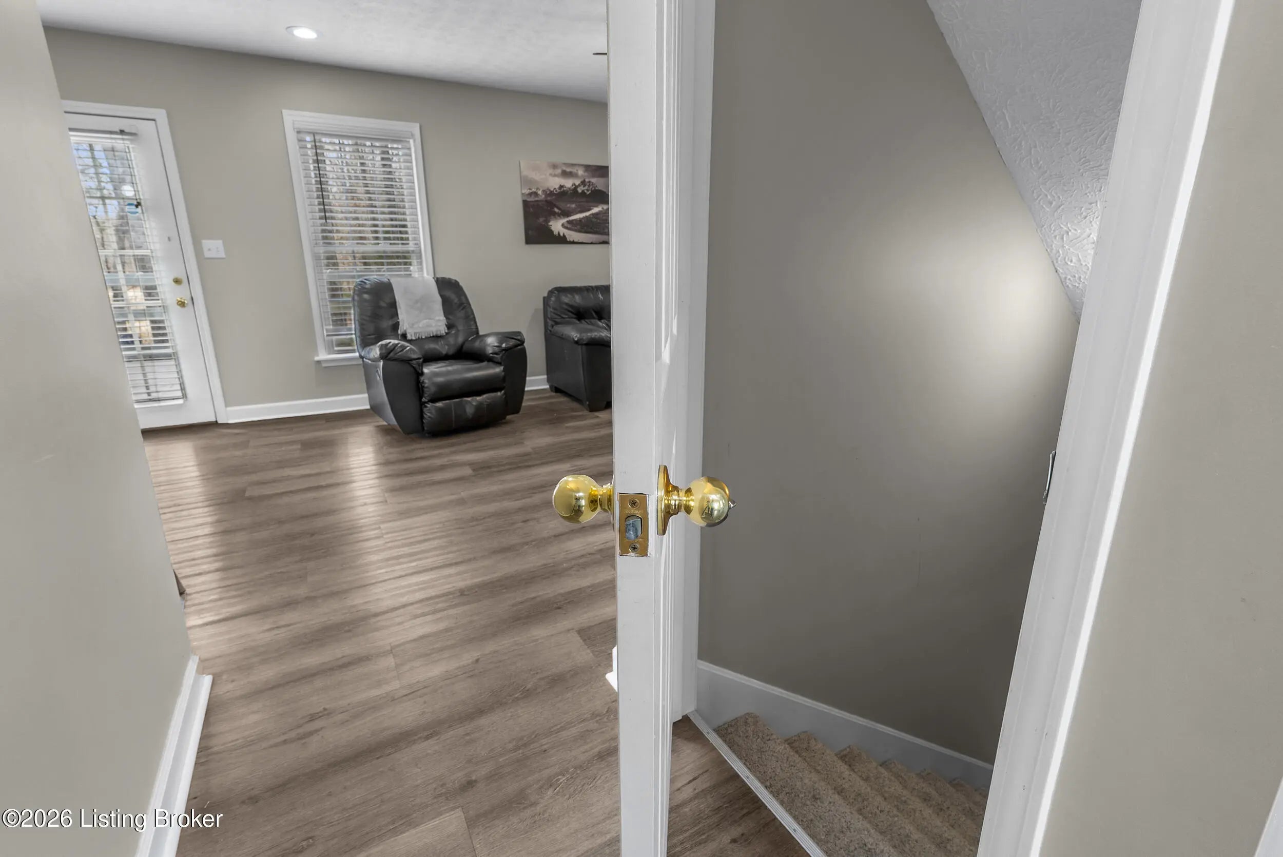 Located in the gated lake community of Doe Valley in Brandenburg, KY, this move-in ready 3-bedroom, 2.5-bath home offers a functional layout with multiple living areas and flexible space to fit a variety of needs. The main level features a spacious living room, dining area, and kitchen with ample cabinetry, pantry, and eat-in space. A main-level flex room adds versatility—ideal for a formal dining room, home office, or playroom. Upstairs, the primary suite includes a private bath with soaking tub, separate shower, and walk-in closet. Two additional bedrooms and a full bath complete the upper level. The lower level provides additional space perfect for a recreation room, home gym, or additional living area. Exterior features include a covered front porch, rear deck, 0.43-acre lot, 2-car attached garage, and paved driveway. Enjoy resort-style living in Doe Valley with gated access, a private lake and marina, golf course, swimming pool, clubhouse, and beaches. Conveniently located near Fort Knox, Elizabethtown, and Louisville—ideal for commuters or those relocating to the area.