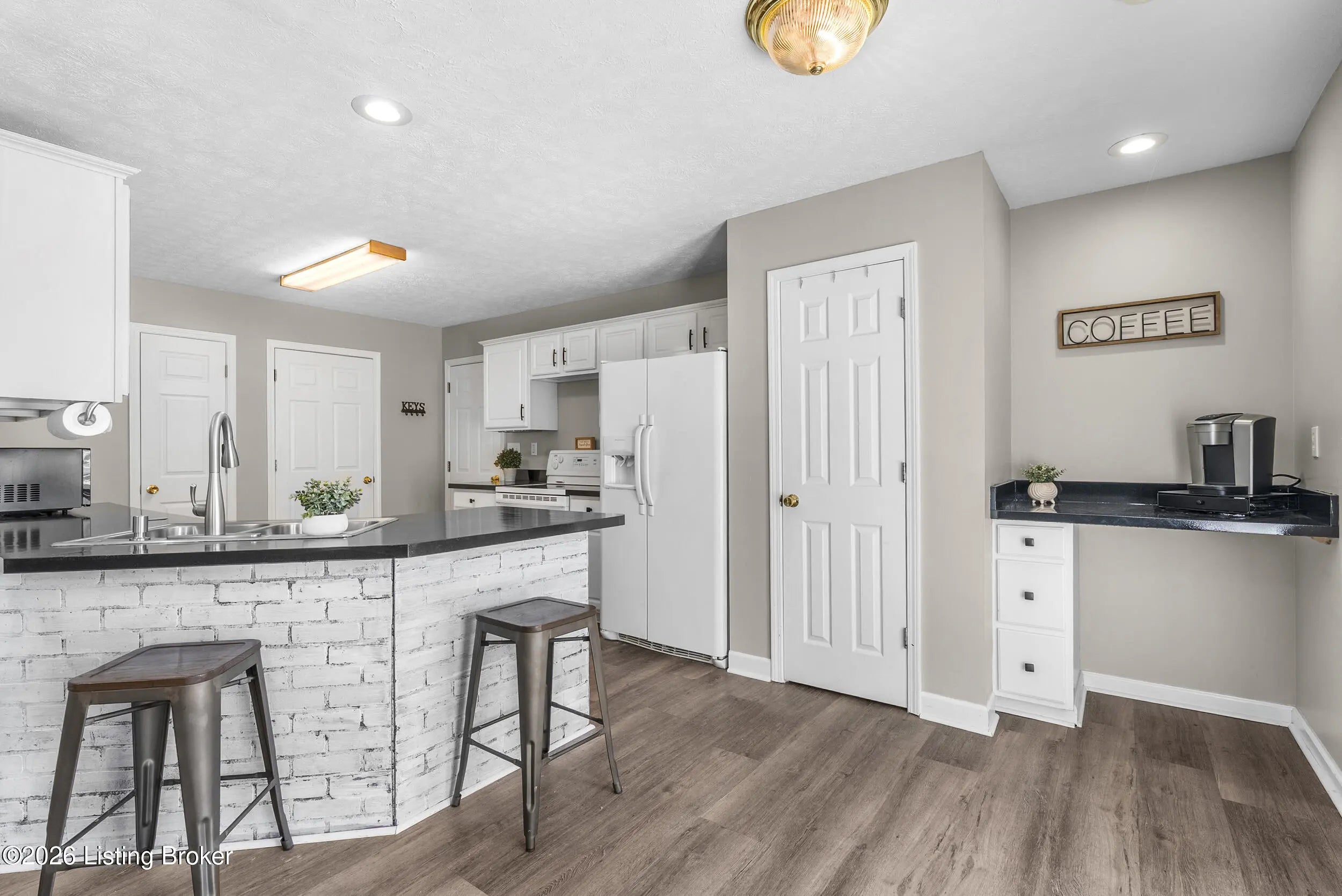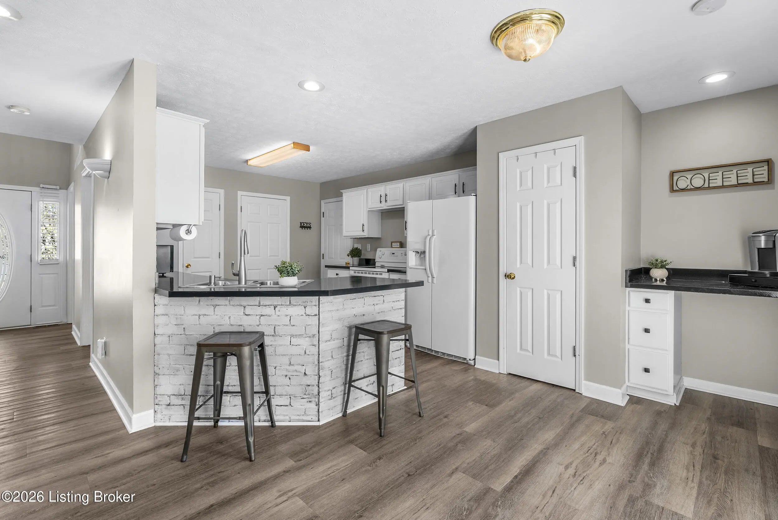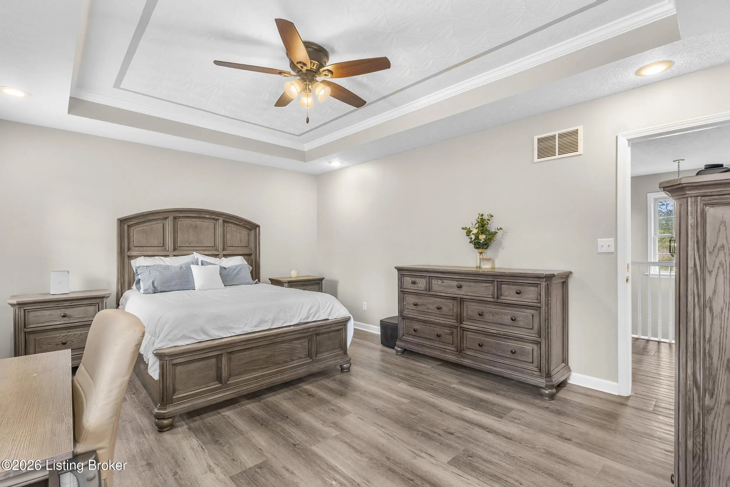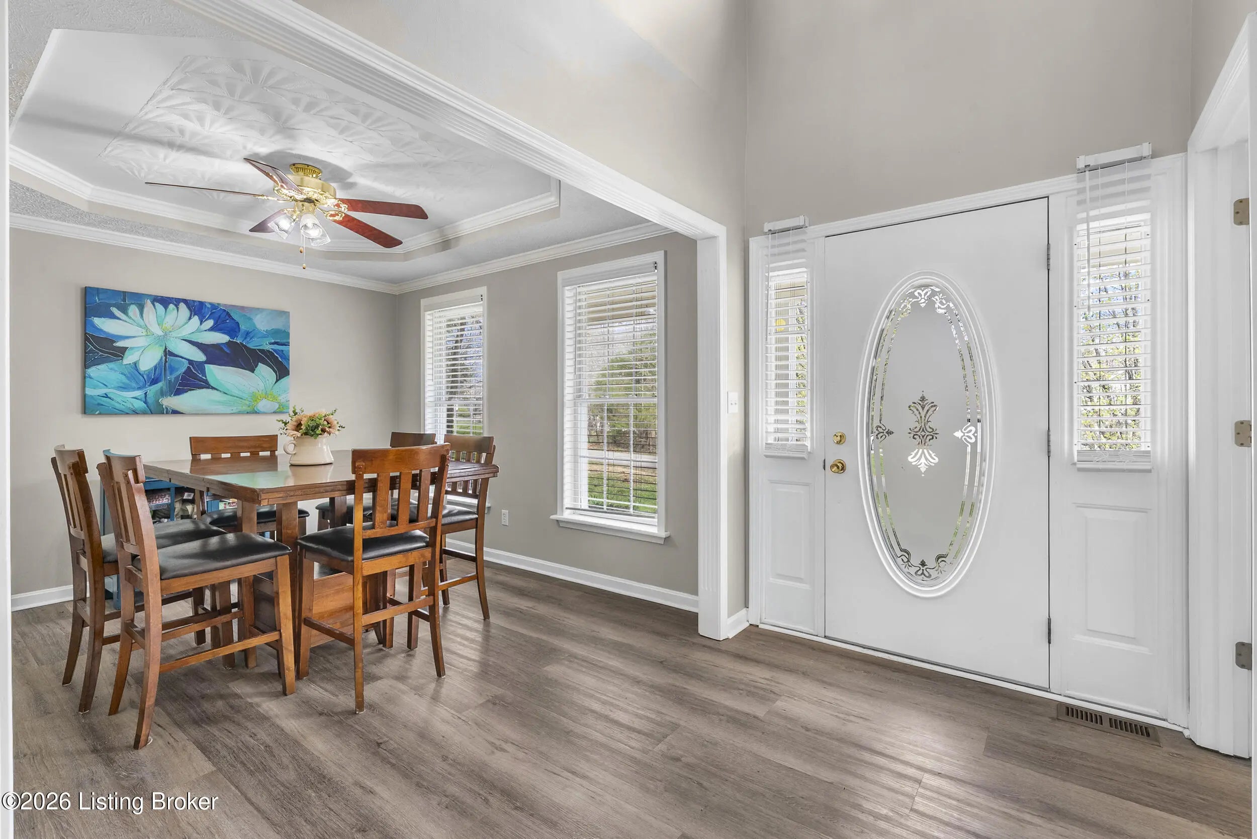 Located in the gated lake community of Doe Valley in Brandenburg, KY, this move-in ready 3-bedroom, 2.5-bath home offers a functional layout with multiple living areas and flexible space to fit a variety of needs. The main level features a spacious living room, dining area, and kitchen with ample cabinetry, pantry, and eat-in space. A main-level flex room adds versatility—ideal for a formal dining room, home office, or playroom. Upstairs, the primary suite includes a private bath with soaking tub, separate shower, and walk-in closet. Two additional bedrooms and a full bath complete the upper level. The lower level provides additional space perfect for a recreation room, home gym, or additional living area. Exterior features include a covered front porch, rear deck, 0.43-acre lot, 2-car attached garage, and paved driveway. Enjoy resort-style living in Doe Valley with gated access, a private lake and marina, golf course, swimming pool, clubhouse, and beaches. Conveniently located near Fort Knox, Elizabethtown, and Louisville—ideal for commuters or those relocating to the area.
