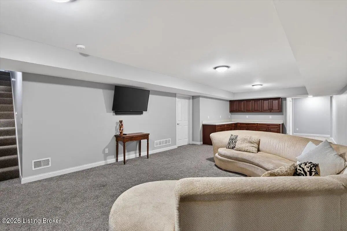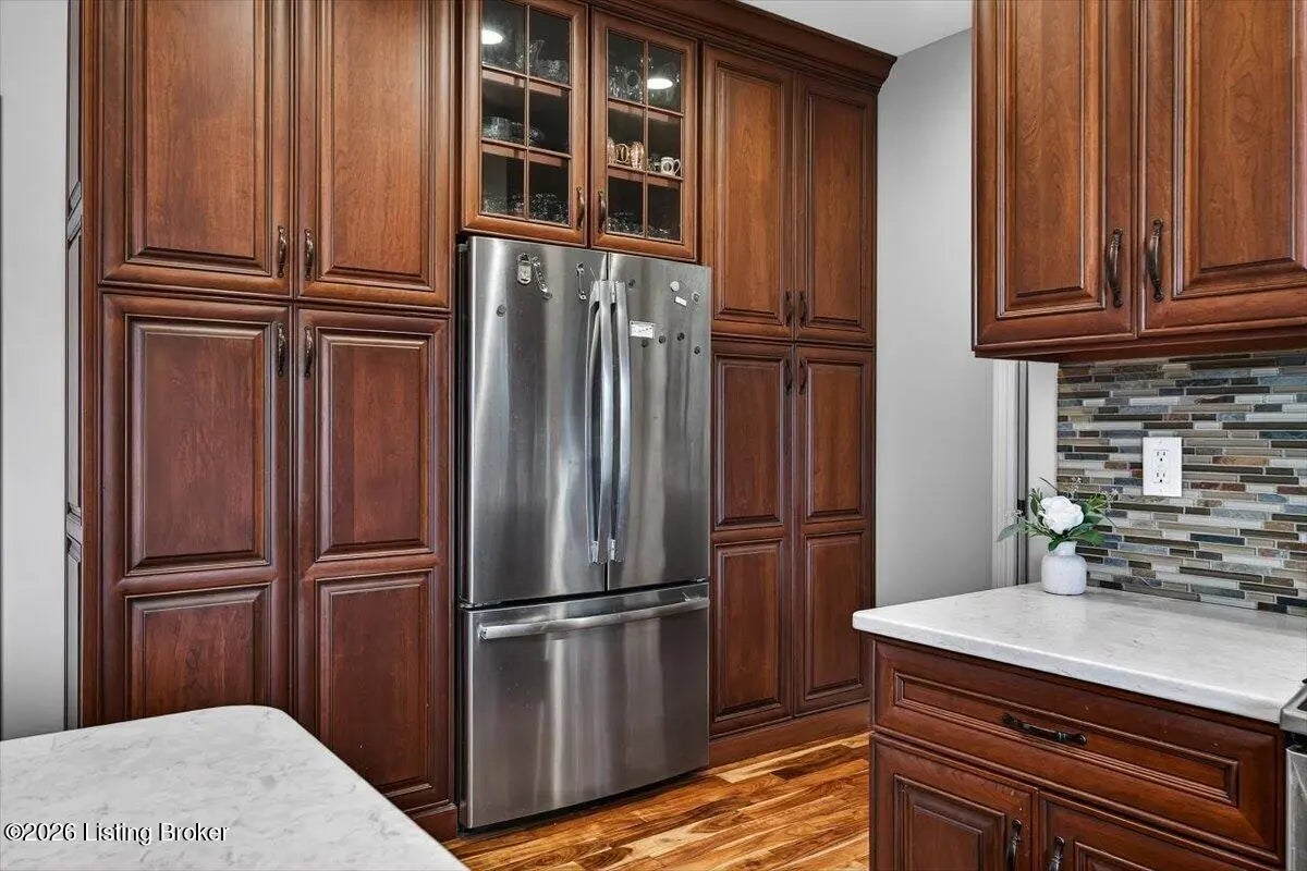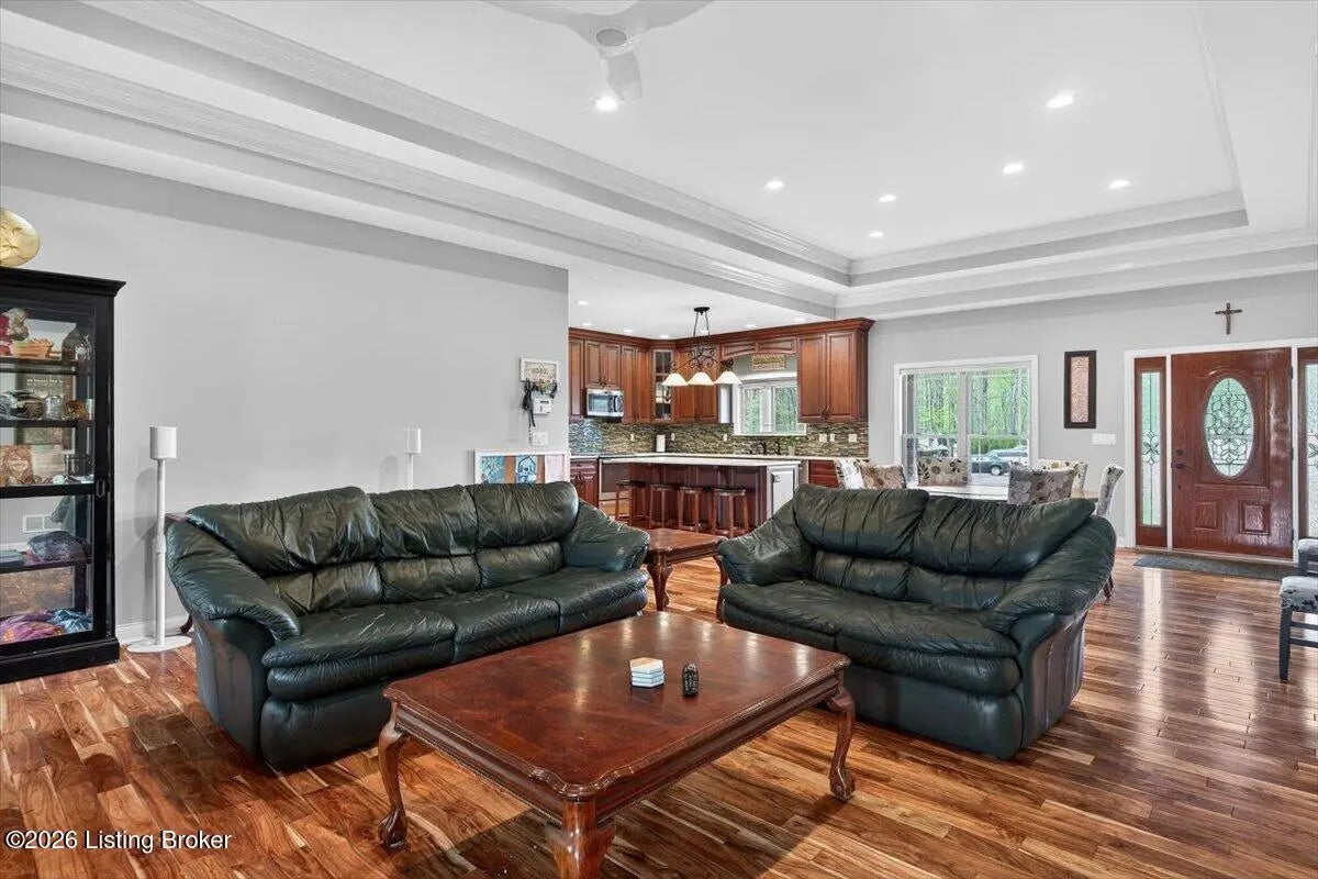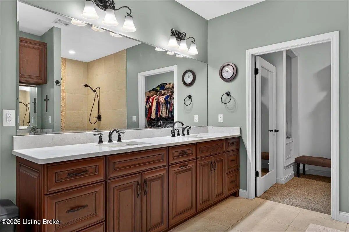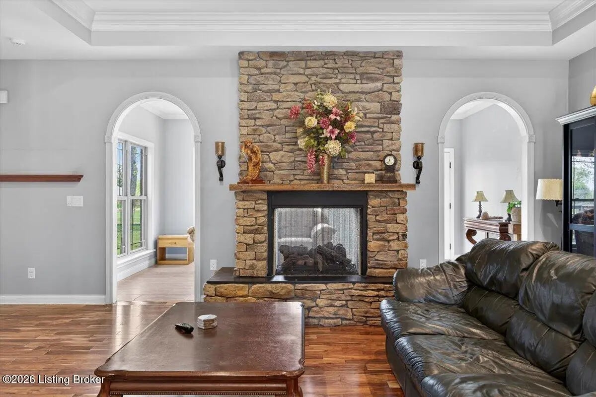 This beautiful custom brick and stone ranch is ready to welcome its next owner! The main living area features an open floor plan, highlighted by a stunning kitchen with Amish-built cherry cabinetry and large island with elegant marble countertops. The home offers 3 bedrooms and 3.5 baths, along with three additional finished rooms in the basement currently being used as bedrooms—providing plenty of flexible space. The primary suite includes a beautiful bathroom with a zero-entry shower tiled to the ceiling and walk-in closet, while the first floor offers ADA-compliant doorways for added accessibility. You'll love the warmth of Bruce hardwood floors, the convenience of first-floor laundry, and the comfort of a see-through gas fireplace shared between the great room and sunroom. The finished basement is easily accessible from two staircases and includes a large storage area. Additional features include a spacious 2.5 car garage, a central vacuum system, two gas hot water heaters, a welcoming front porch, and a large back deck—perfect for relaxing or entertaining. This home truly combines quality craftsmanship, thoughtful design, and versatile living space!