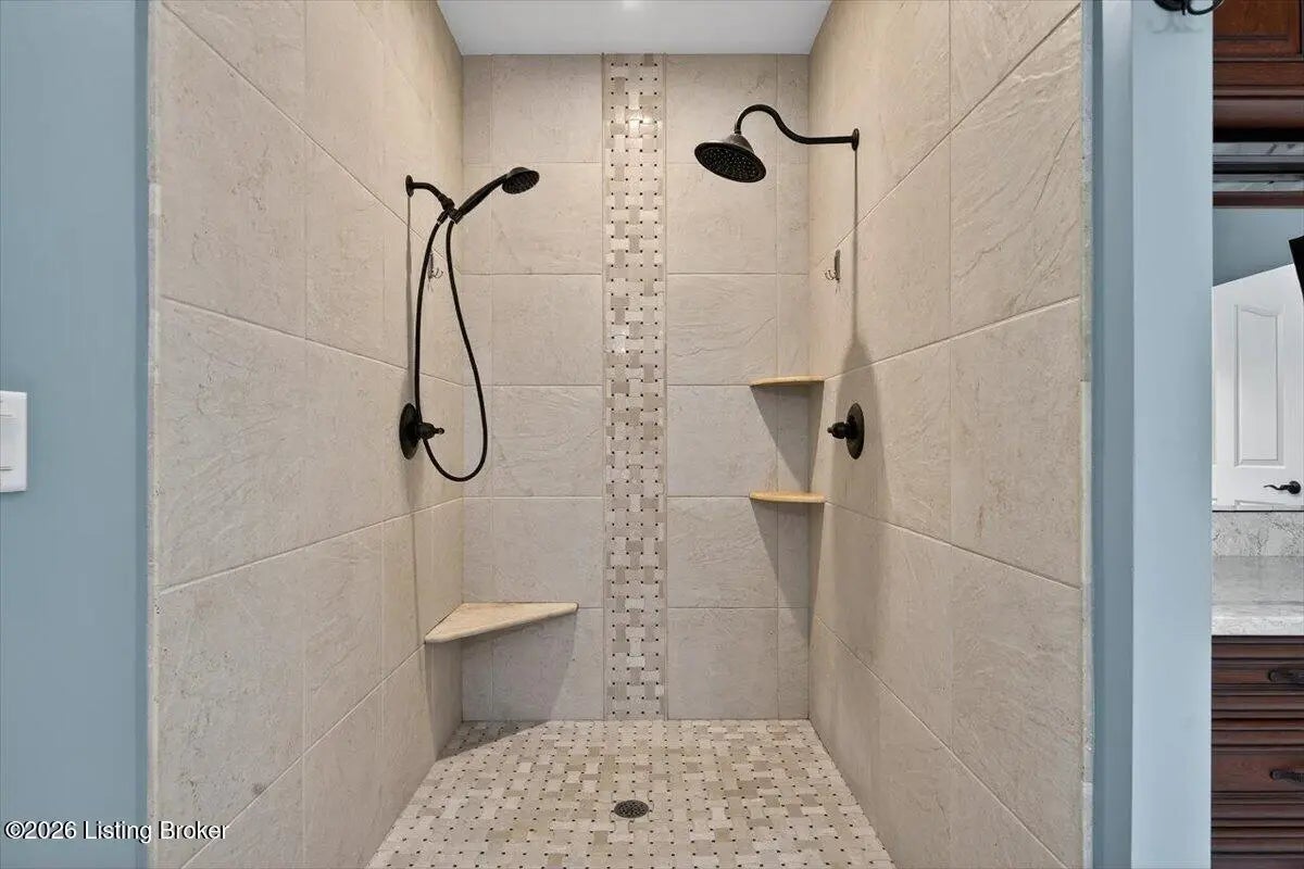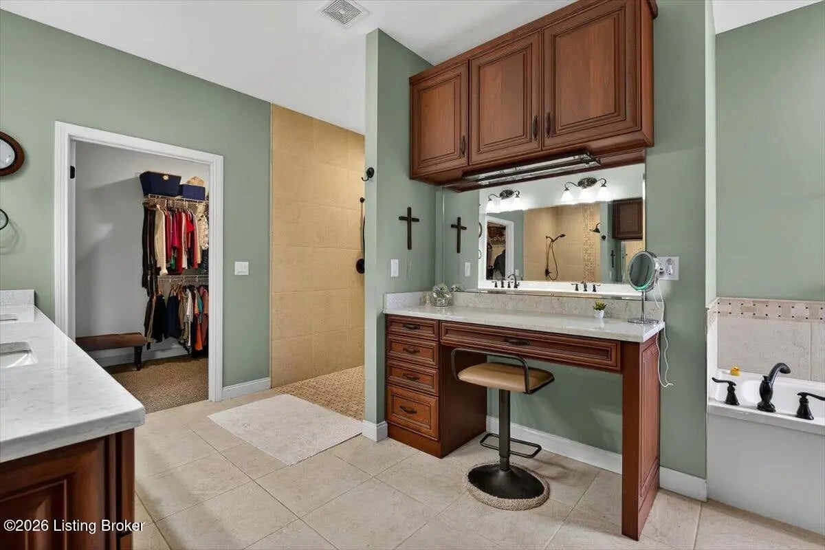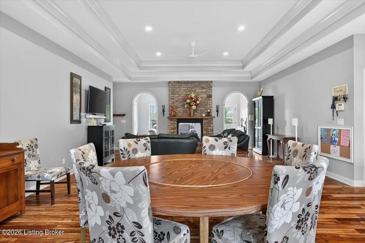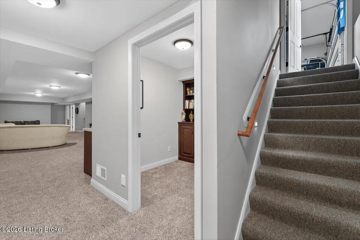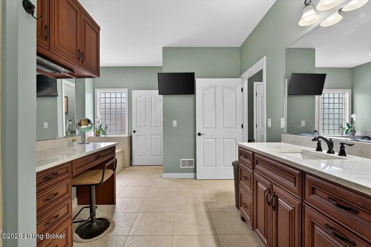 This beautiful custom brick and stone ranch is ready to welcome its next owner! The main living area features an open floor plan, highlighted by a stunning kitchen with Amish-built cherry cabinetry and large island with elegant marble countertops. The home offers 3 bedrooms and 3.5 baths, along with three additional finished rooms in the basement currently being used as bedrooms—providing plenty of flexible space. The primary suite includes a beautiful bathroom with a zero-entry shower tiled to the ceiling and walk-in closet, while the first floor offers ADA-compliant doorways for added accessibility. You'll love the warmth of Bruce hardwood floors, the convenience of first-floor laundry, and the comfort of a see-through gas fireplace shared between the great room and sunroom. The finished basement is easily accessible from two staircases and includes a large storage area. Additional features include a spacious 2.5 car garage, a central vacuum system, two gas hot water heaters, a welcoming front porch, and a large back deck—perfect for relaxing or entertaining. This home truly combines quality craftsmanship, thoughtful design, and versatile living space!
