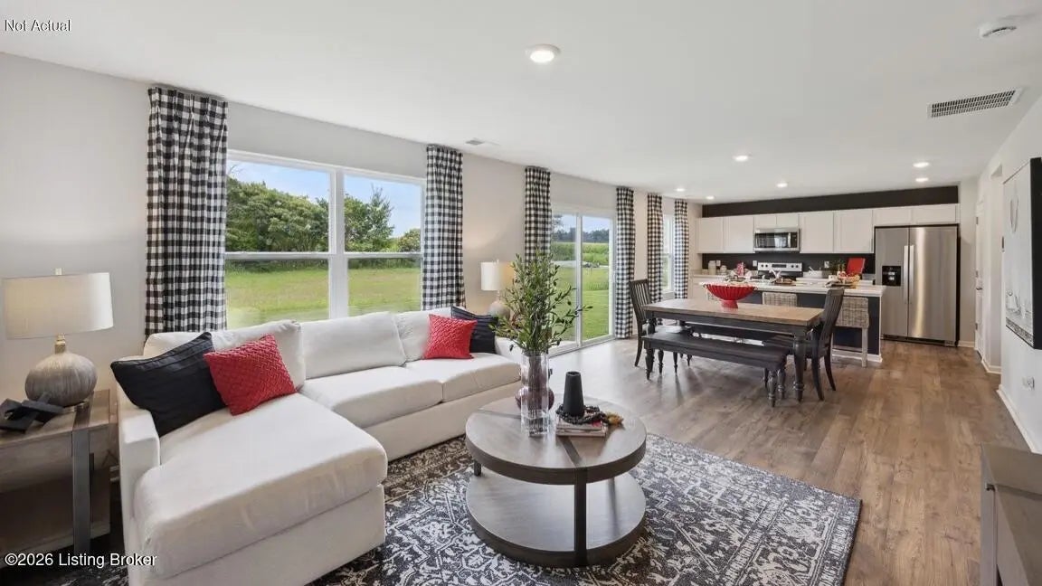 Welcome to 634 Zelcova Drive in Eminence, Kentucky, a beautiful new home situated on a cul-de-sac homesite in our serene Arbor View community. The Bellamy floor plan is a stunning two-story design offering 4 spacious bedrooms and 2.5 bathrooms—perfect for anyone looking for flexible living space. The open-concept layout creates a seamless flow from the kitchen to the main living areas, making it ideal for both everyday living and entertaining. Luxury vinyl plank flooring flows throughout the foyer, flex room, great room, kitchen, and bathrooms, delivering both style and durability. In addition to its generous living areas, this home features a dedicated flex room—perfect for a home office, library, or playroom. Whether you work remotely or simply need additional functional space, the Bellamy offers versatility to fit your lifestyle. The kitchen is truly the heart of the home, showcasing beautiful sarsaparilla cabinetry with soft-close doors, quartz countertops, stainless-steel appliances, a large pantry, and a built-in island with ample seating—ideal for cooking, gathering, and hosting guests. Upstairs, the oversized primary suite offers a private retreat with an ensuite bathroom featuring a double bowl vanity, a stand-alone shower, private water closet, and a spacious walk-in closet. Three additional bedrooms and a conveniently located laundry room complete the upper level. Other features in this home include a fully drywalled garage with opener, smooth ceilings, dimensional shingles, sodded front yard, landscape package, smart home package, and a builder's warranty. Contact us today to schedule a private tour. Photos are representative of the plan only and may vary as built. Estimated completion is June/July 2026.