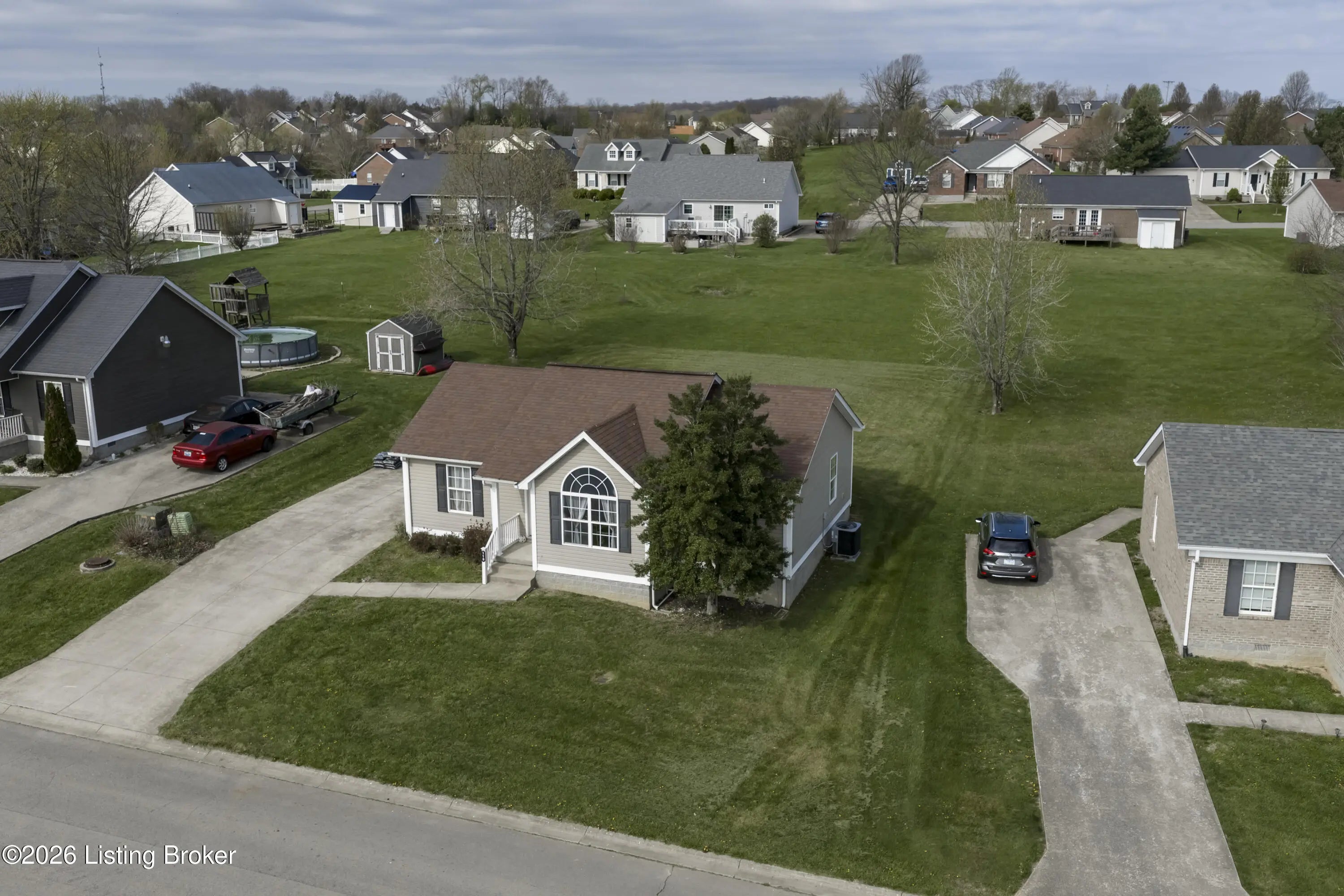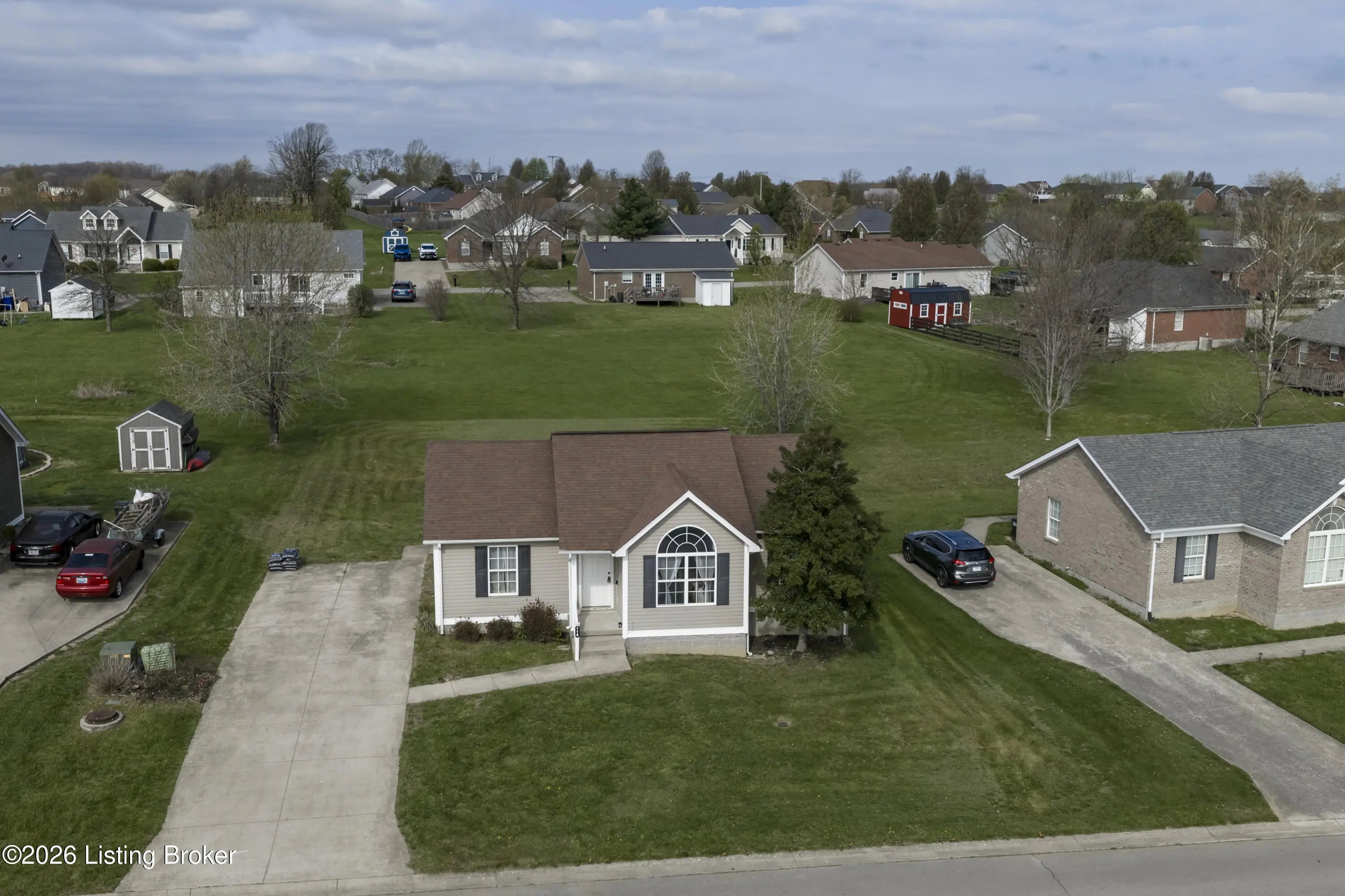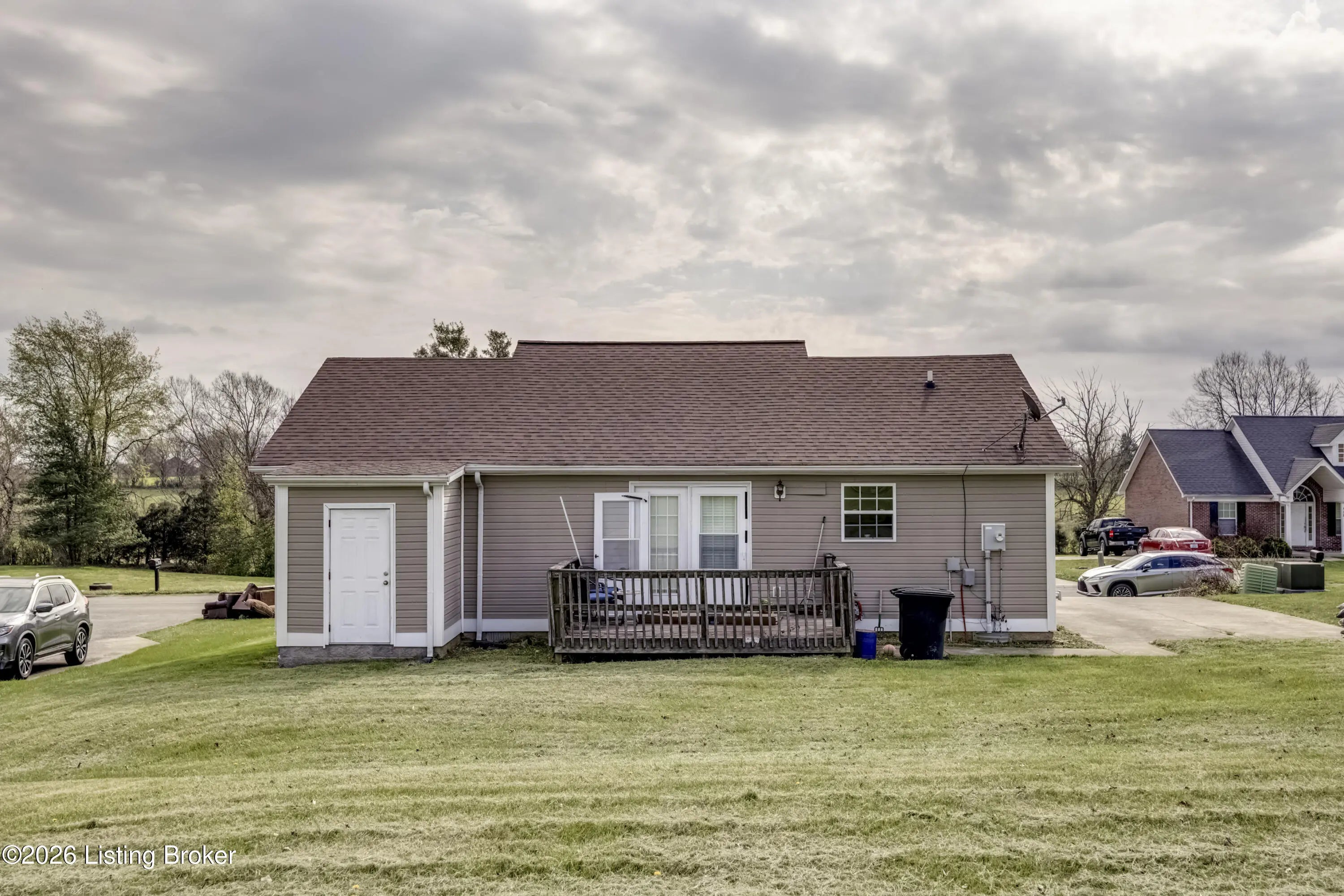 Nestled in the heart of gorgeous, historic Bardstown, Kentucky, this move-in ready ranch is the one you've been waiting for! With 3 bedrooms, 2 full baths, split floor plan, this home offers both comfort and privacy for the whole family. Step inside and feel instantly at home. The spacious family room boasts soaring vaulted ceilings that give the space an open, airy feel, perfect for relaxing evenings or gathering with friends. Fresh paint and new flooring give the home a crisp, updated look, while the new HVAC means worry free living from day one. Every inch of this home is thoughtfully laid out and easy to love. When it's time to unwind outdoors, step out back to your private deck and retreat, backing up to a beautiful greenspace and common area that offers that rare peaceful feeling of wide open space right in your backyard. All of this, set in one of Kentucky's most beloved and storied cities. Bardstown's rich history, charming downtown, and warm community spirit make this so much more than just a house . Don't miss your chance to call this gem home. Schedule your showing today!