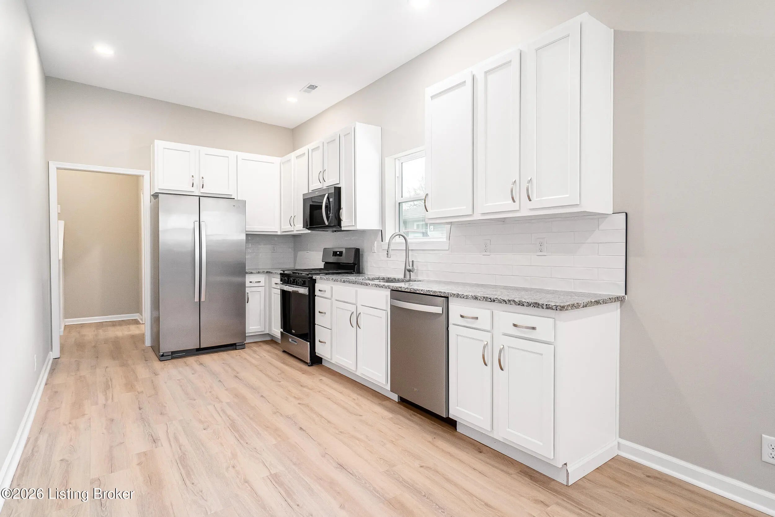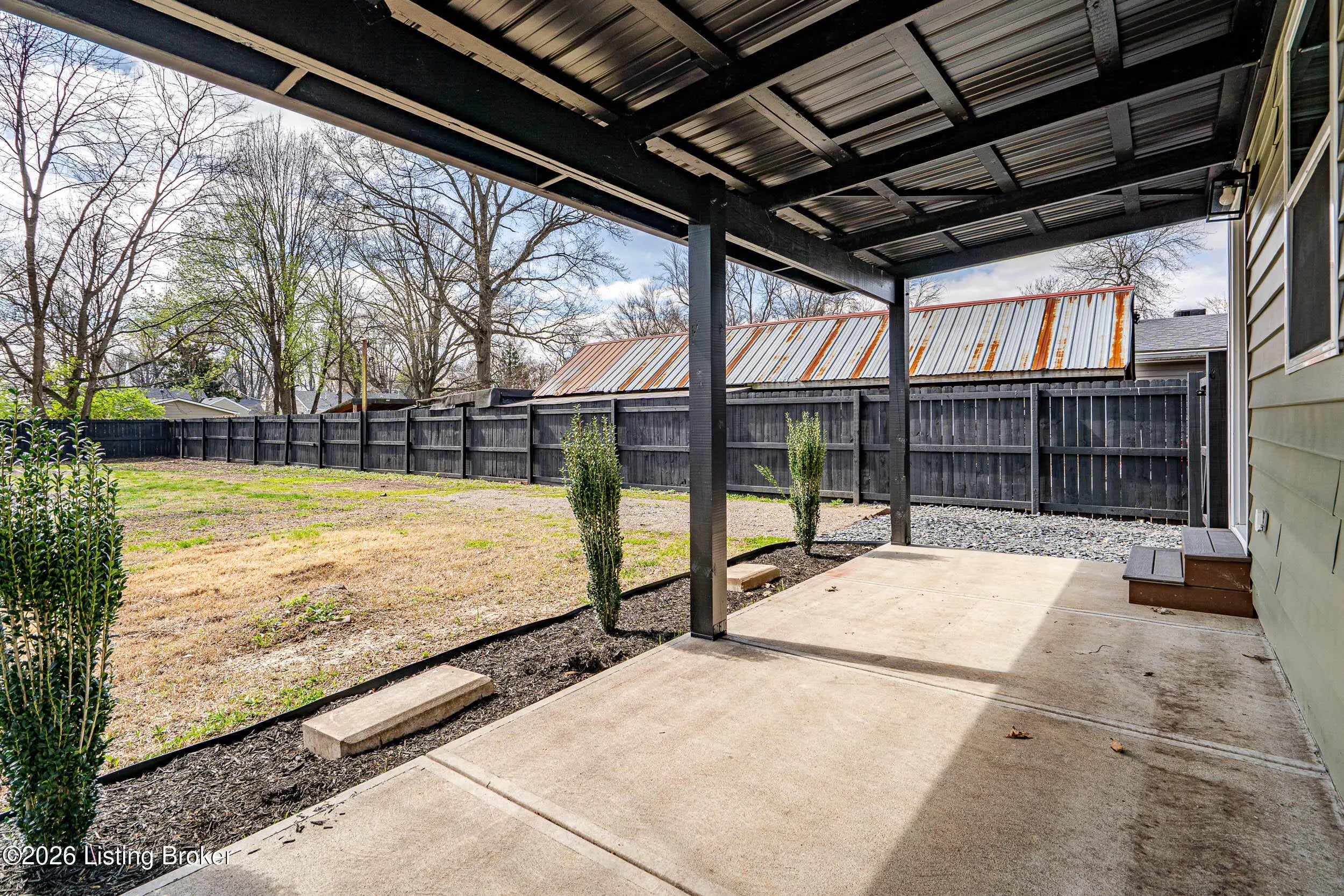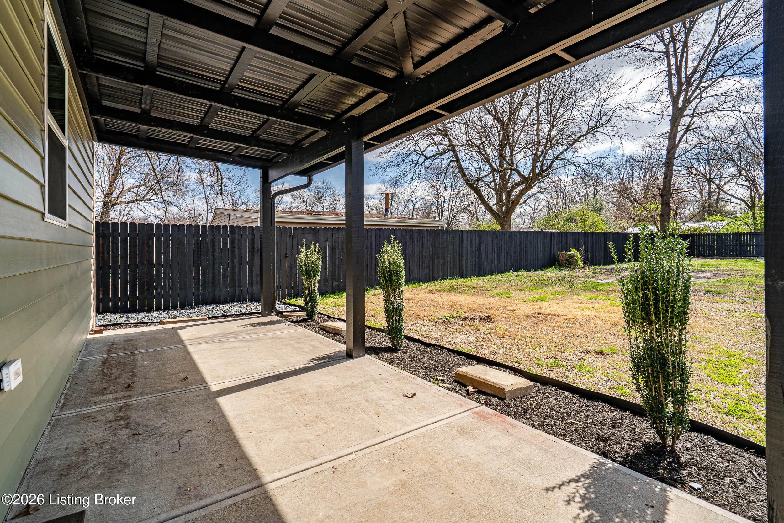 This move in ready nearly new build delivers quality craftsmanship, modern style, and low maintenance living. This 3 bedroom, 2 bath homes offers 1215 sq ft of comfort and modern finishes. Step inside to an open, inviting layout featuring durable LVT flooring and a bright kitchen equipped with white shaker style cabinets, granite countertops, and stainless steel appliances. Relax on the covered front porch, or enjoy outdoor dining and quiet evenings on the covered back patio with a metal roof. The large, fully fenced backyard provides privacy, security, and plenty of room for pets, play, or future landscaping dreams. Located close to all local amenities. A must see for buyers seeking value and comfort in a convenient location.