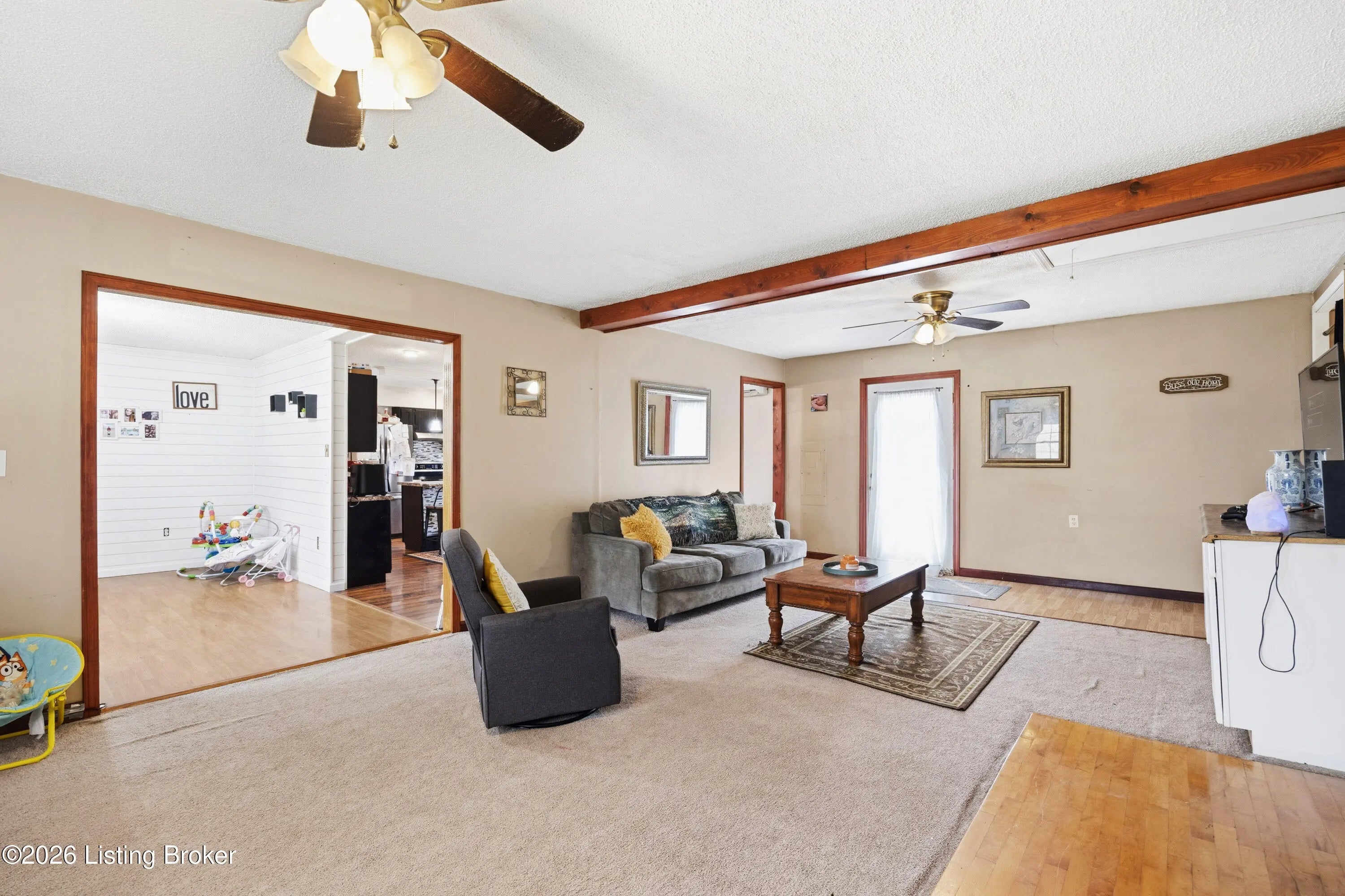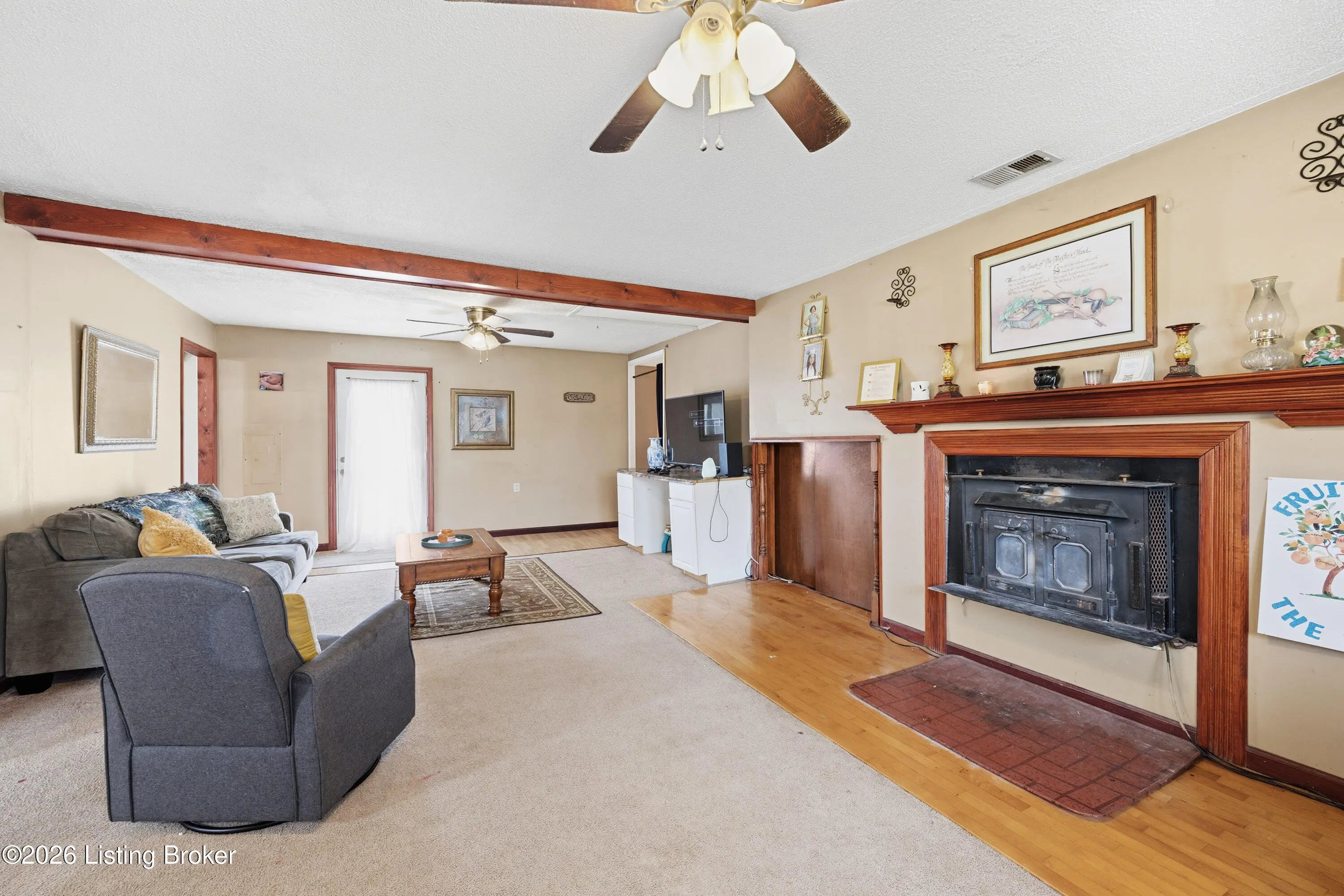 Welcome to your own private retreat just outside the city limits near the Bourbon Trail! Situated on a fully fenced one-acre lot with an automatic gated entry, this property offers space, privacy, and convenience, all within 7 miles of Shepherdsville's shopping and dining. This 3,100 square foot ranch-style home features 5 bedrooms and 2 updated bathrooms, all on one level for easy living. The spacious layout provides flexibility for a variety of needs including home office, gym, or guest space. The primary suite offers a large custom-tiled shower, jetted tub, dual vanity, and generous closet space. Enjoy quiet mornings on the enclosed front porch or relax out back on the large deck. A wood-burning stove adds warmth and character, while the 30' x 70' pole barn with oversized door provides excellent space for storage, hobbies, or workshop use. This home, offered as is, does need cosmetic updates and is priced accordingly, offering a great opportunity for buyers looking to add their personal touch and build equity quickly. Don't miss your chance to own a secluded property with incredible potential!