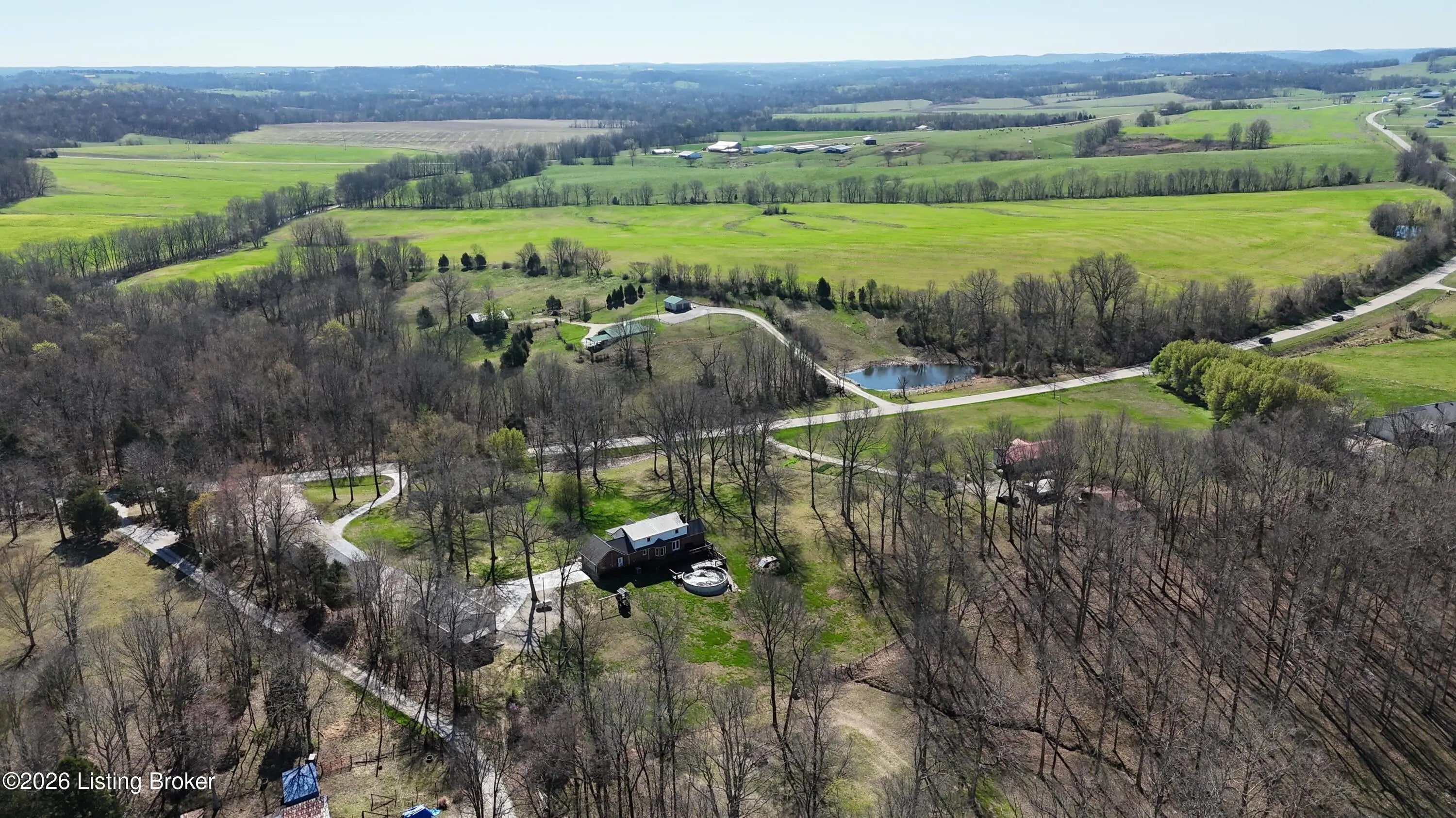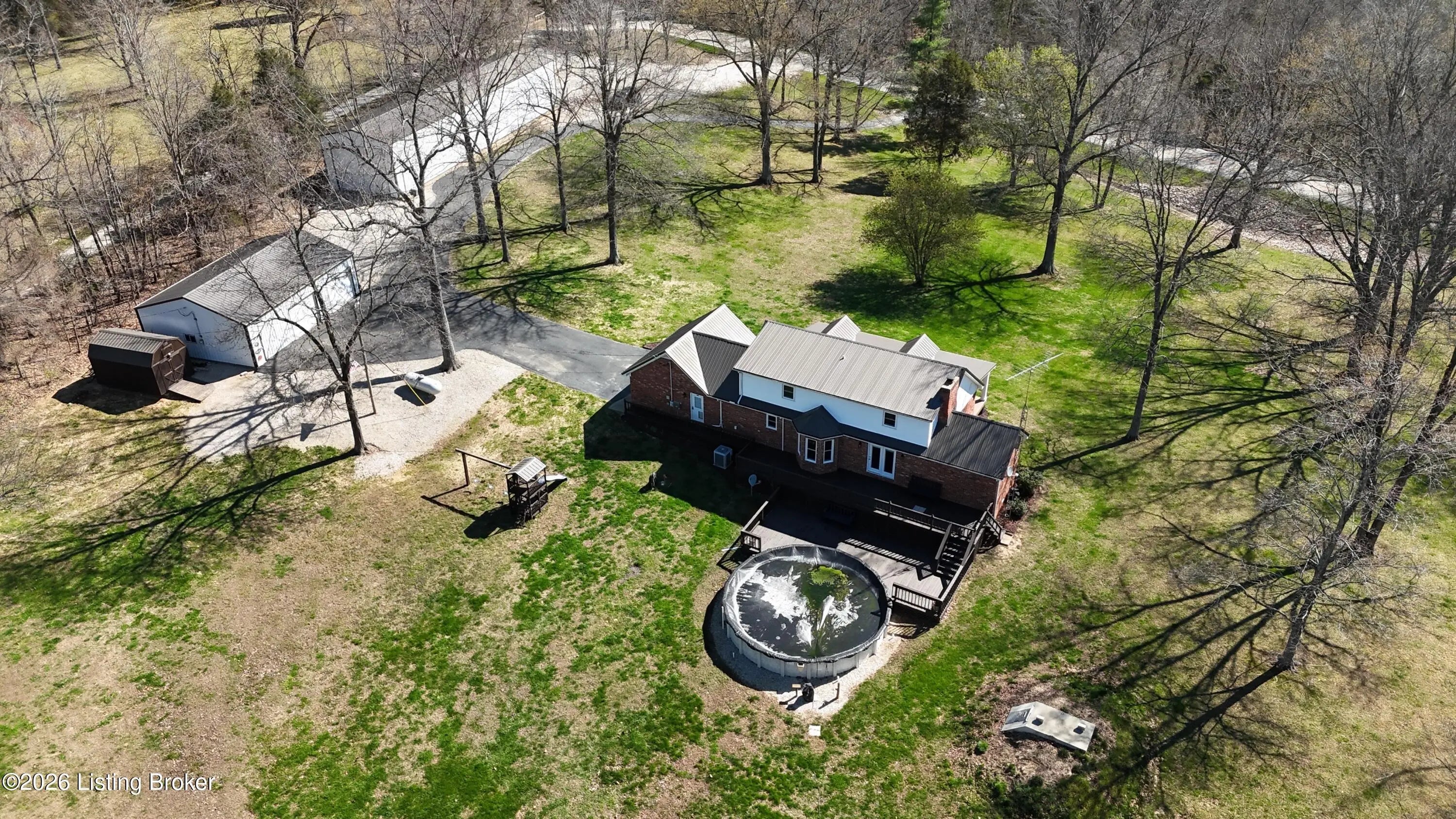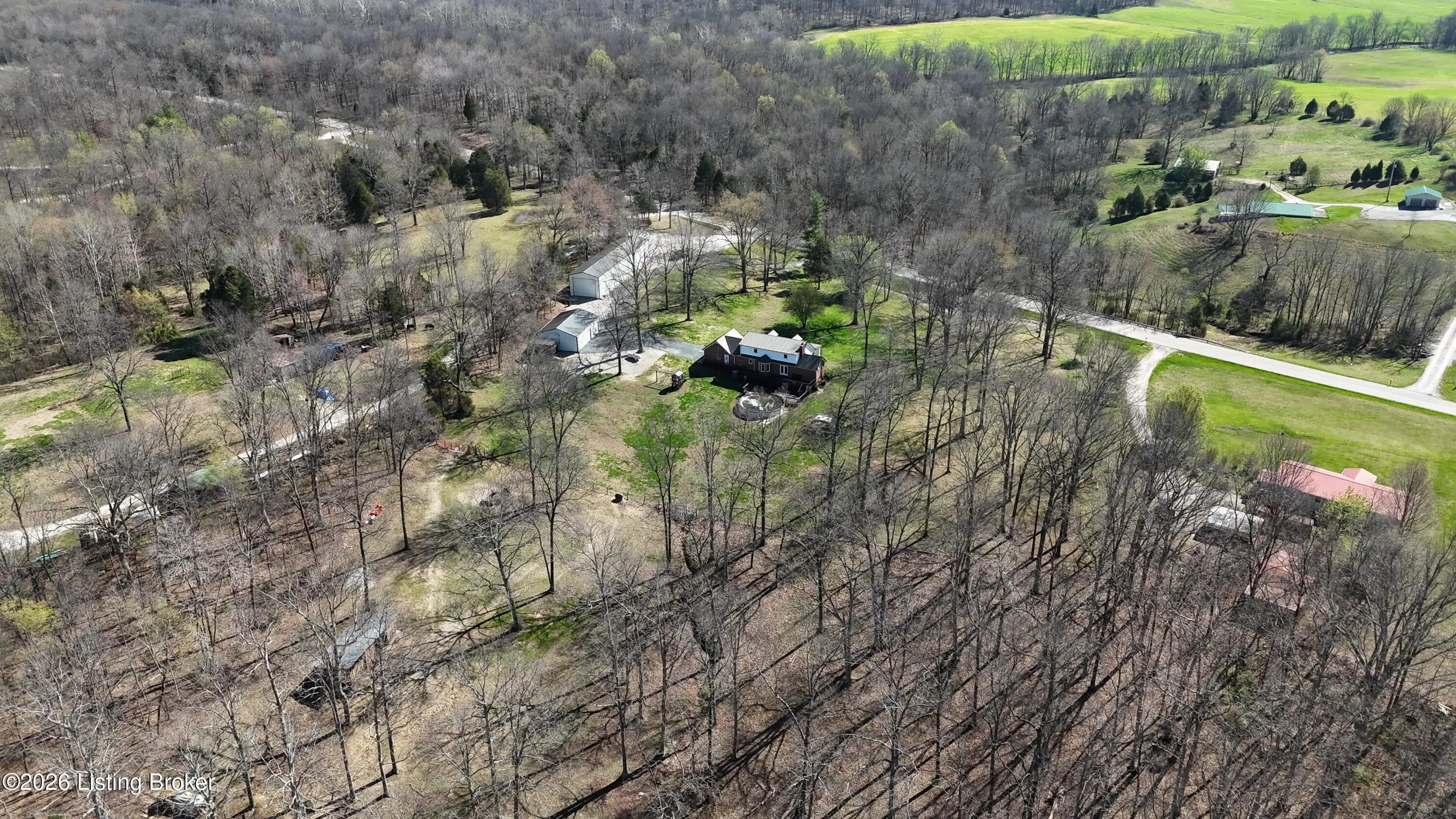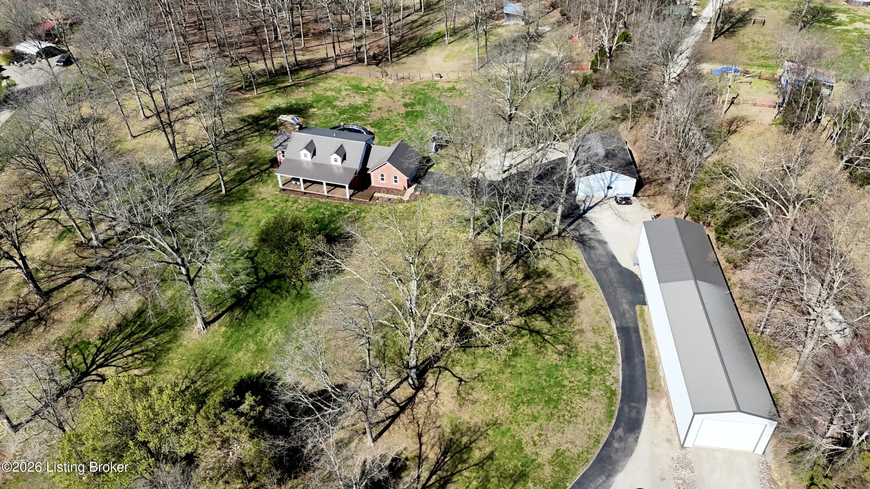 They call this God's Country. On your drive to 7218 S Hwy 105, you'll pass green pastures and wide open spaces. When you reach the destination, and pull into the drive with 2 entrances, you'll look up to see this beautiful brick home at the heart of the +/- 18.34 acre property. The right side of the drive conveniently connects to the 24 x 100 building, finished out with concrete floors, metal roof, spray foam insulation, three 14x18 big bay doors & electric. Behind the building, you'll find another detached 28x40 garage with concrete floors, metal roof, electric, loft for storage, spray foam insulation throughout, and single & double bay doors. Propane ran to the building, but was never used. Beyond that is an 18x30 shed with two storage lofts, where the owners kept their pool supplies. The paved left side of the drive winds alongside the detached buildings to the home with an attached side-facing two car garage. The Sellers have made many upgrades during their ownership, including a facelift to the front of the house with an expansive covered front porch. The +/- 2335 square foot traditional home offers a formal entry, half bathroom, living room, bedroom, and family room with gas log fireplace. The glass doors and bay window let light shine in from the back of the house. The kitchen does not disappoint. Loads of cabinet & counter space throughout. The warm wood tones are set off nicely by the stainless steel appliances. Gather in the informal breakfast area or the formal dining room for your meals. The large laundry room doubles as a mud room, with a sink, shelving for storage, and plenty of space, that directly connects to the attached garage. There's a lovely primary suite on one end of the second level, and a 3rd & 4th bedroom, connected by a full jack & jill bathroom, on the other end. This property truly has it all. Out back there is an above ground pool that's 27' wide & 52" tall, surrounded by decking prime for entertaining. Other added bonuses include a wooden play set, the concrete storm shelter, electric set up for generator, and invisible electric fence. While the home is on public water, the it also has an old well that has come in handy for the horses & watering on the property. There's also a barn with the option for three stalls. From the rolling land, to wood flooring, to every extra & offering this listing has, this special place is one where you can live, work & play happily!