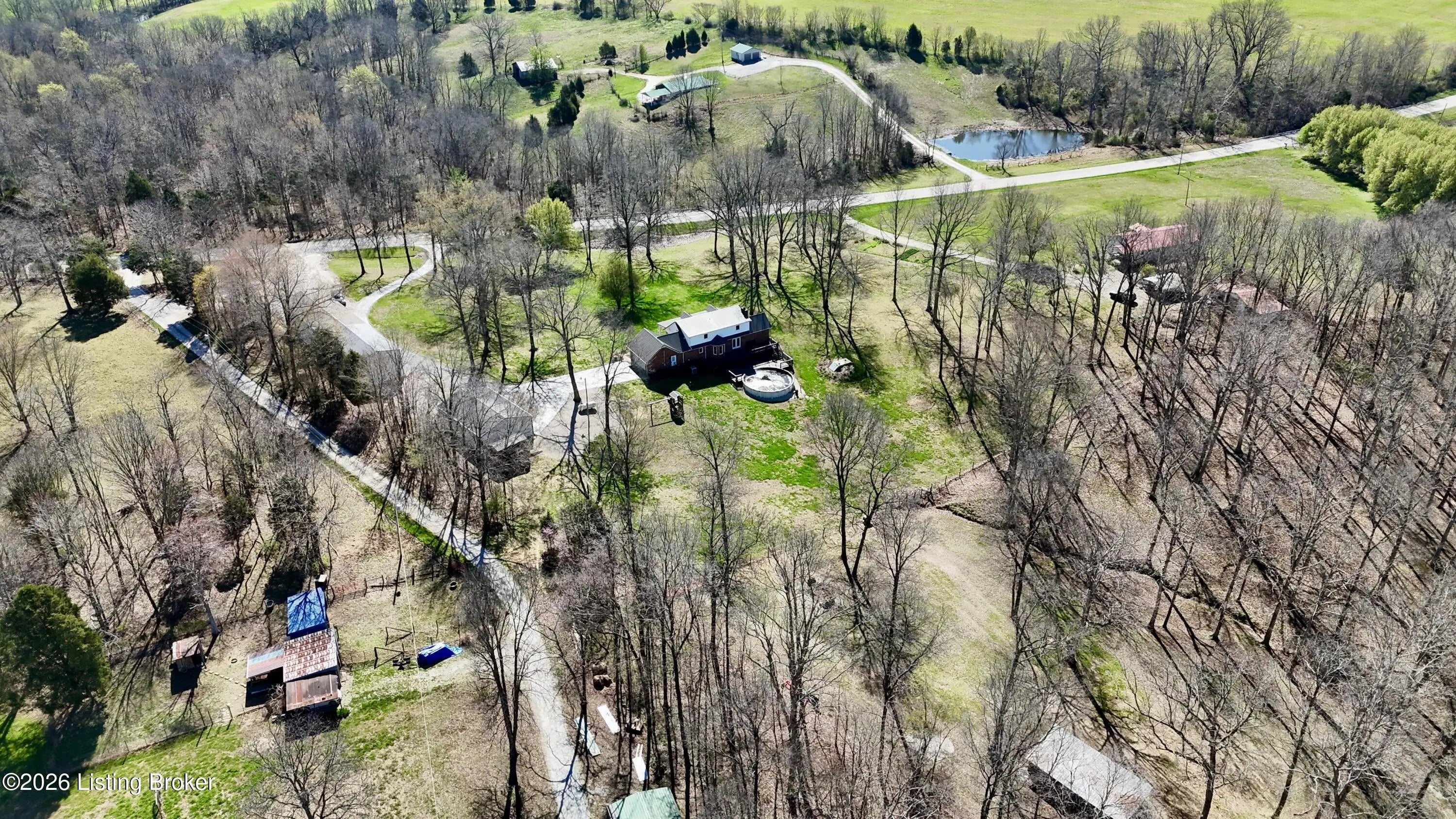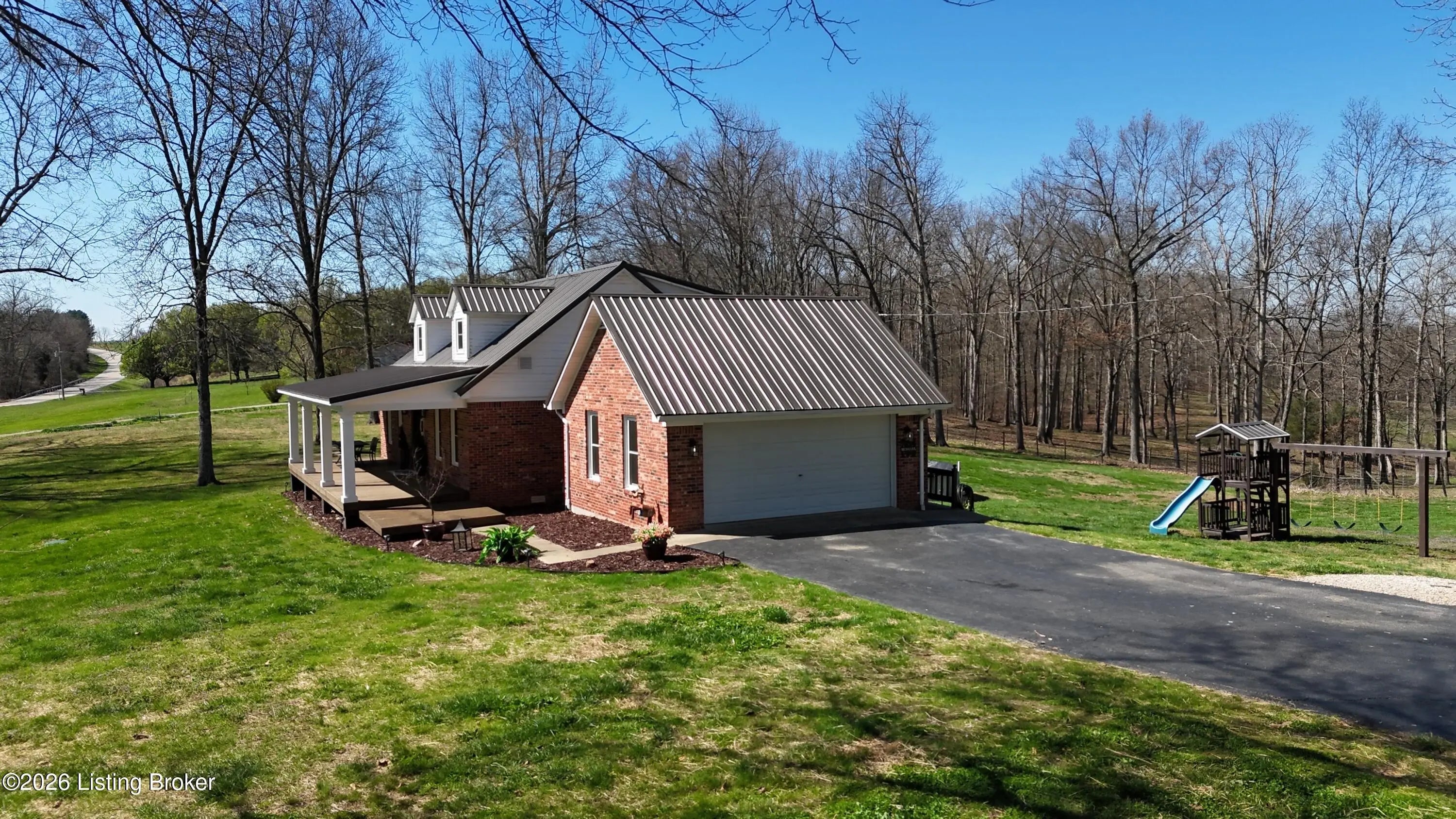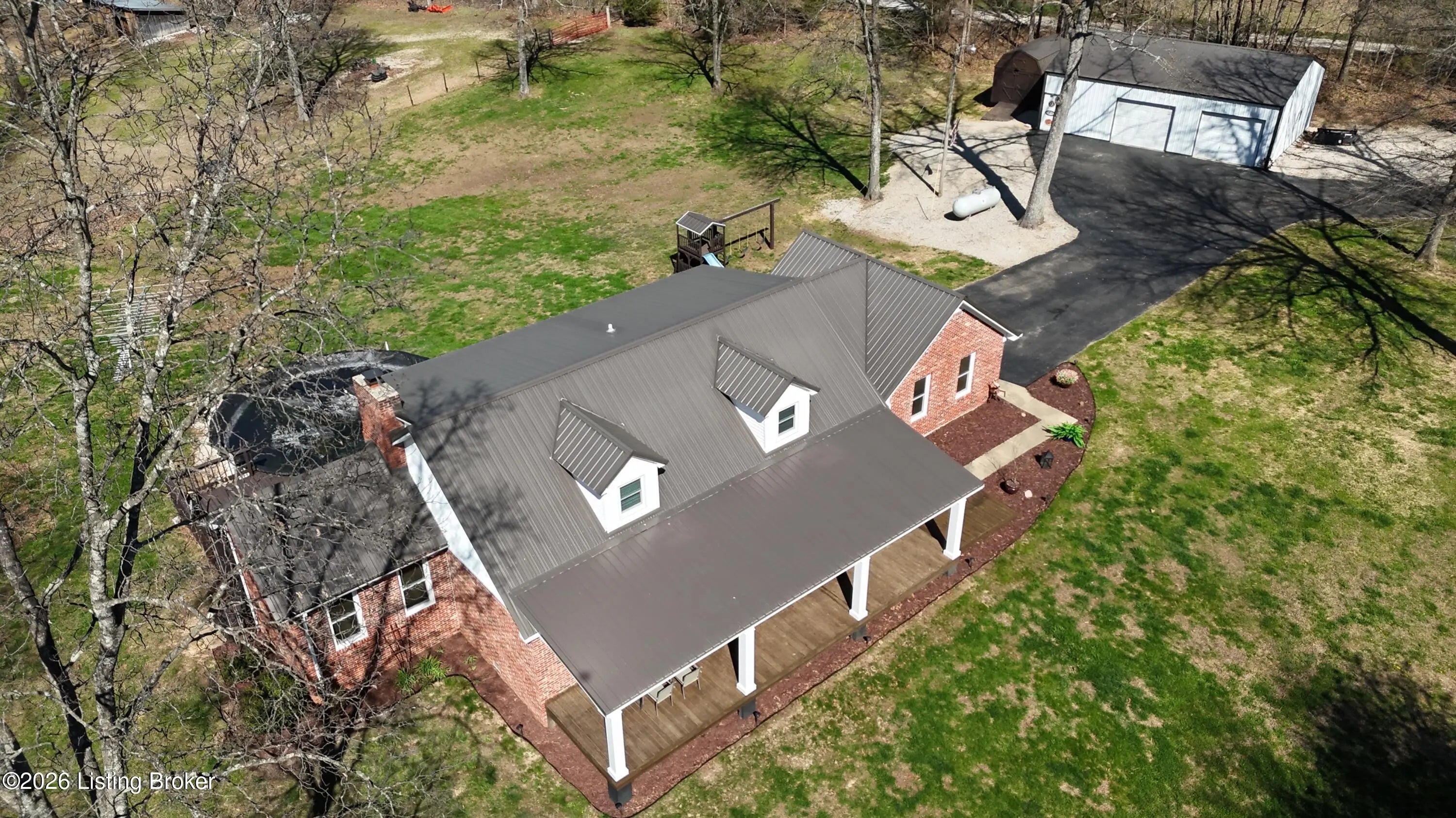 They call this God's Country. On your drive to 7218 S Hwy 105, you'll pass green pastures and wide open spaces. When you reach the destination, and pull into the drive with 2 entrances, you'll look up to see this beautiful brick home at the heart of the +/- 18.34 acre property. The right side of the drive conveniently connects to the 24 x 100 building, finished out with concrete floors, metal roof, spray foam insulation, three 14x18 big bay doors & electric. Behind the building, you'll find another detached 28x40 garage with concrete floors, metal roof, electric, loft for storage, spray foam insulation throughout, and single & double bay doors. Propane ran to the building, but was never used. Beyond that is an 18x30 shed with two storage lofts, where the owners kept their pool supplies. The paved left side of the drive winds alongside the detached buildings to the home with an attached side-facing two car garage. The Sellers have made many upgrades during their ownership, including a facelift to the front of the house with an expansive covered front porch. The +/- 2335 square foot traditional home offers a formal entry, half bathroom, living room, bedroom, and family room with gas log fireplace. The glass doors and bay window let light shine in from the back of the house. The kitchen does not disappoint. Loads of cabinet & counter space throughout. The warm wood tones are set off nicely by the stainless steel appliances. Gather in the informal breakfast area or the formal dining room for your meals. The large laundry room doubles as a mud room, with a sink, shelving for storage, and plenty of space, that directly connects to the attached garage. There's a lovely primary suite on one end of the second level, and a 3rd & 4th bedroom, connected by a full jack & jill bathroom, on the other end. This property truly has it all. Out back there is an above ground pool that's 27' wide & 52" tall, surrounded by decking prime for entertaining. Other added bonuses include a wooden play set, the concrete storm shelter, electric set up for generator, and invisible electric fence. While the home is on public water, the it also has an old well that has come in handy for the horses & watering on the property. There's also a barn with the option for three stalls. From the rolling land, to wood flooring, to every extra & offering this listing has, this special place is one where you can live, work & play happily!