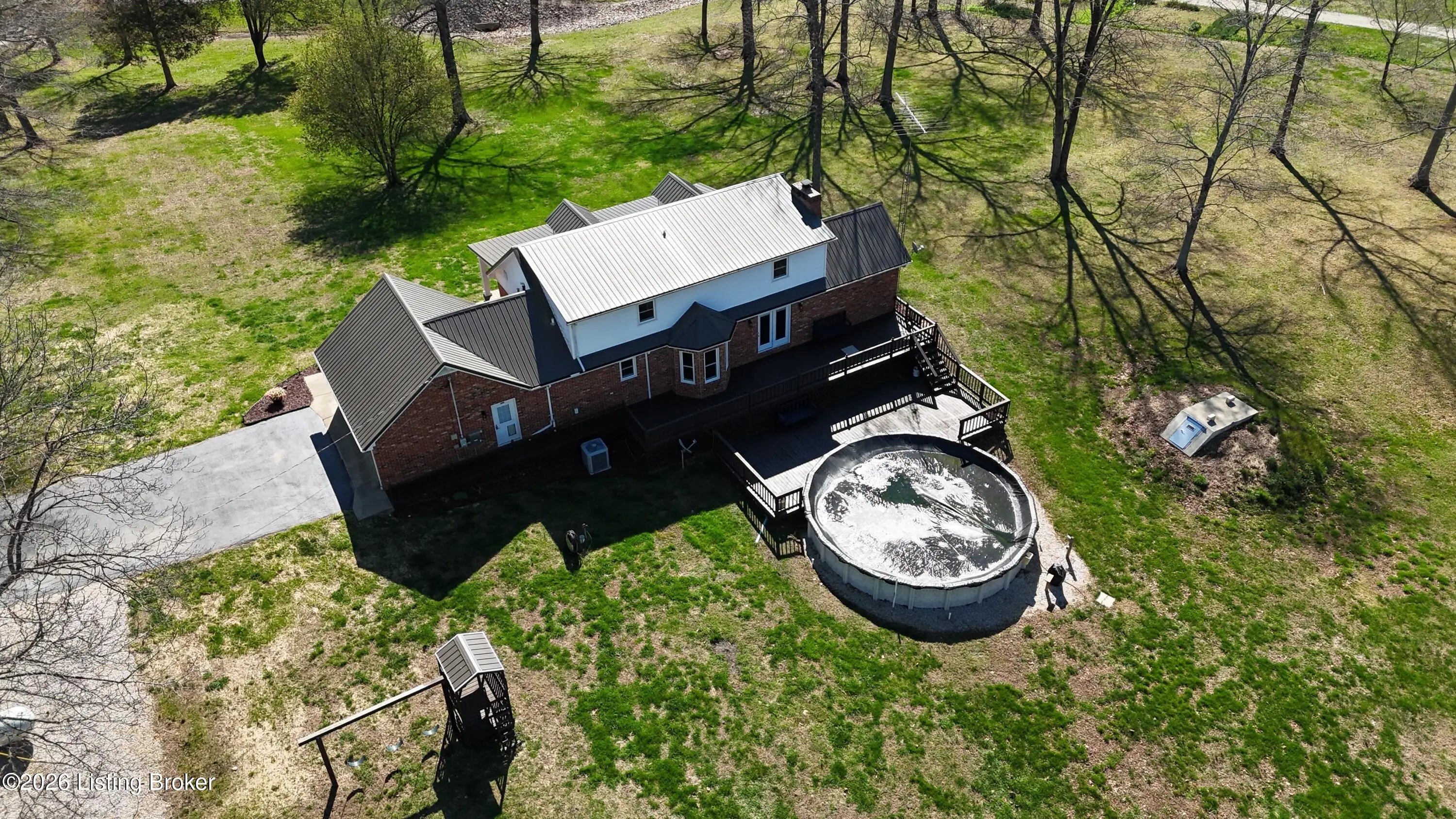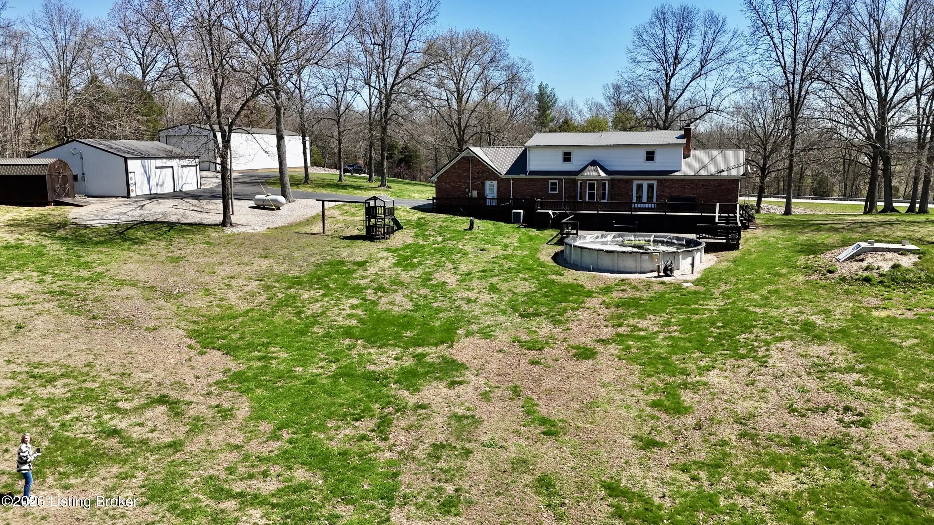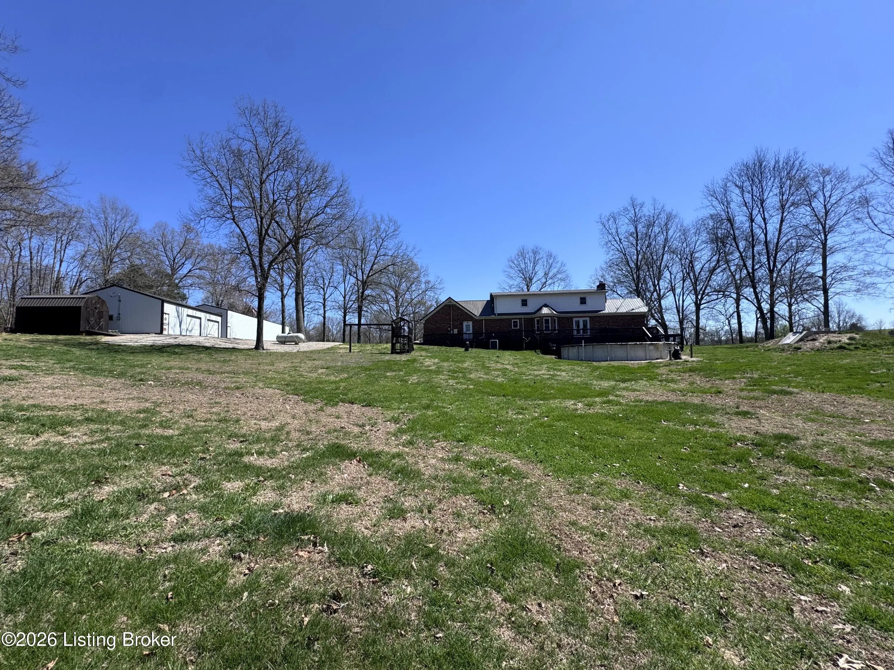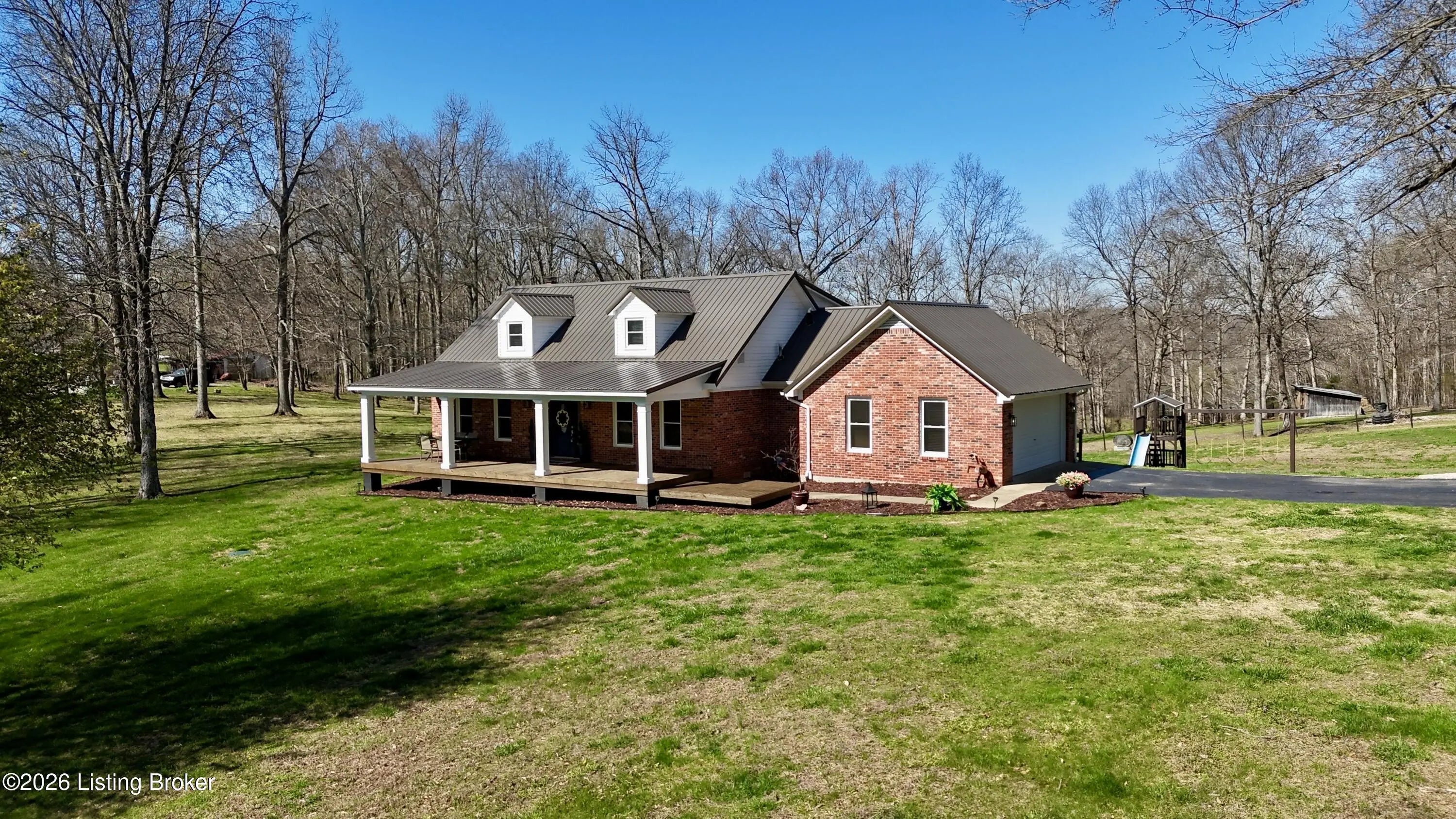 They call this God's Country. On your drive to 7218 S Hwy 105, you'll pass green pastures and wide open spaces. When you reach the destination, and pull into the drive with 2 entrances, you'll look up to see this beautiful brick home at the heart of the +/- 18.34 acre property. The right side of the drive conveniently connects to the 24 x 100 building, finished out with concrete floors, metal roof, spray foam insulation, three 14x18 big bay doors & electric. Behind the building, you'll find another detached 28x40 garage with concrete floors, metal roof, electric, loft for storage, spray foam insulation throughout, and single & double bay doors. Propane ran to the building, but was never used. Beyond that is an 18x30 shed with two storage lofts, where the owners kept their pool supplies. The paved left side of the drive winds alongside the detached buildings to the home with an attached side-facing two car garage. The Sellers have made many upgrades during their ownership, including a facelift to the front of the house with an expansive covered front porch. The +/- 2335 square foot traditional home offers a formal entry, half bathroom, living room, bedroom, and family room with gas log fireplace. The glass doors and bay window let light shine in from the back of the house. The kitchen does not disappoint. Loads of cabinet & counter space throughout. The warm wood tones are set off nicely by the stainless steel appliances. Gather in the informal breakfast area or the formal dining room for your meals. The large laundry room doubles as a mud room, with a sink, shelving for storage, and plenty of space, that directly connects to the attached garage. There's a lovely primary suite on one end of the second level, and a 3rd & 4th bedroom, connected by a full jack & jill bathroom, on the other end. This property truly has it all. Out back there is an above ground pool that's 27' wide & 52" tall, surrounded by decking prime for entertaining. Other added bonuses include a wooden play set, the concrete storm shelter, electric set up for generator, and invisible electric fence. While the home is on public water, the it also has an old well that has come in handy for the horses & watering on the property. There's also a barn with the option for three stalls. From the rolling land, to wood flooring, to every extra & offering this listing has, this special place is one where you can live, work & play happily!