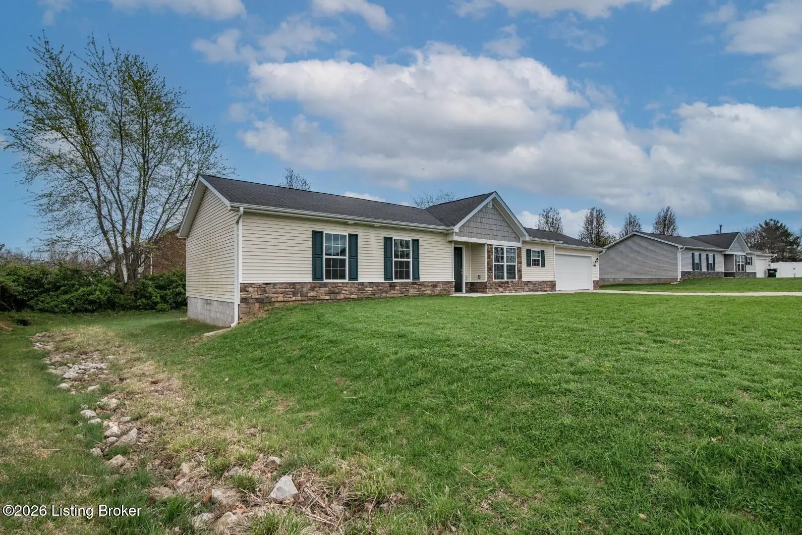 Welcome home to this stunning like-new residence built in 2022, where modern living meets unbeatable convenience! Nestled near the end of a quiet cul-de-sac, this beautifully crafted three-bedroom, two-bathroom home is ready to impress from the moment you step inside. The open concept floor plan is an entertainer's dream, with the living room flowing seamlessly into a fully equipped kitchen that will make even the most reluctant chef excited to cook. Vaulted ceilings in the living room create a dramatic sense of space, while oversized windows flood every corner with gorgeous natural light. The kitchen boasts elegant granite countertops, a smooth top oven, dishwasher, microwave, refrigerator and a pantry. Everything you need is right at your fingertips. Retreat to the spacious primary bedroom suite, complete with a walk-in closet that offers plenty of room for your wardrobe and then some. Two additional well-appointed bedrooms and a second full bathroom round out the interior with comfort and functionality. Step outside to enjoy your private deck, perfect for morning coffee or evenWelcome home to this stunning like-new residence built in 2022, where modern living meets unbeatable convenience! Nestled near the end of a quiet cul-de-sac, this beautifully crafted three-bedroom, two-bathroom home is ready to impress from the moment you step inside. The open concept floor plan is an entertainer's dream, with the living room flowing seamlessly into a fully equipped kitchen that will make even the most reluctant chef excited to cook. Vaulted ceilings in the living room create a dramatic sense of space, while oversized windows flood every corner with gorgeous natural light. The kitchen boasts elegant granite countertops, a smooth top oven, dishwasher, microwave, refrigerator and a pantry. Everything you need is right at your fingertips. ing relaxation. The concrete driveway and neighborhood sidewalks add curb appeal and connectivity, while the proximity to Fort Knox makes this location incredibly desirable for military families and professionals alike. Do not let this opportunity slip away — schedule your private showing today!