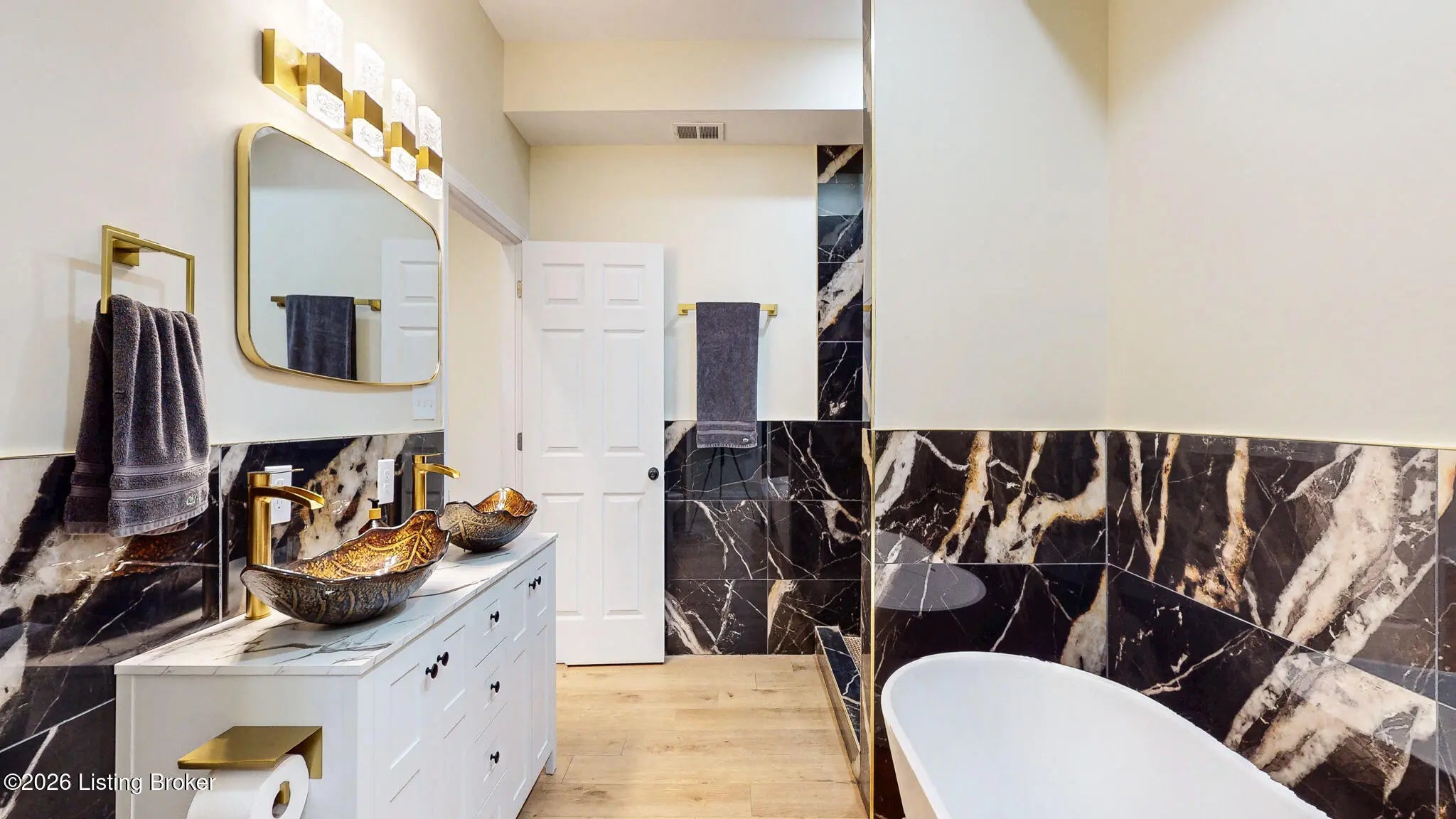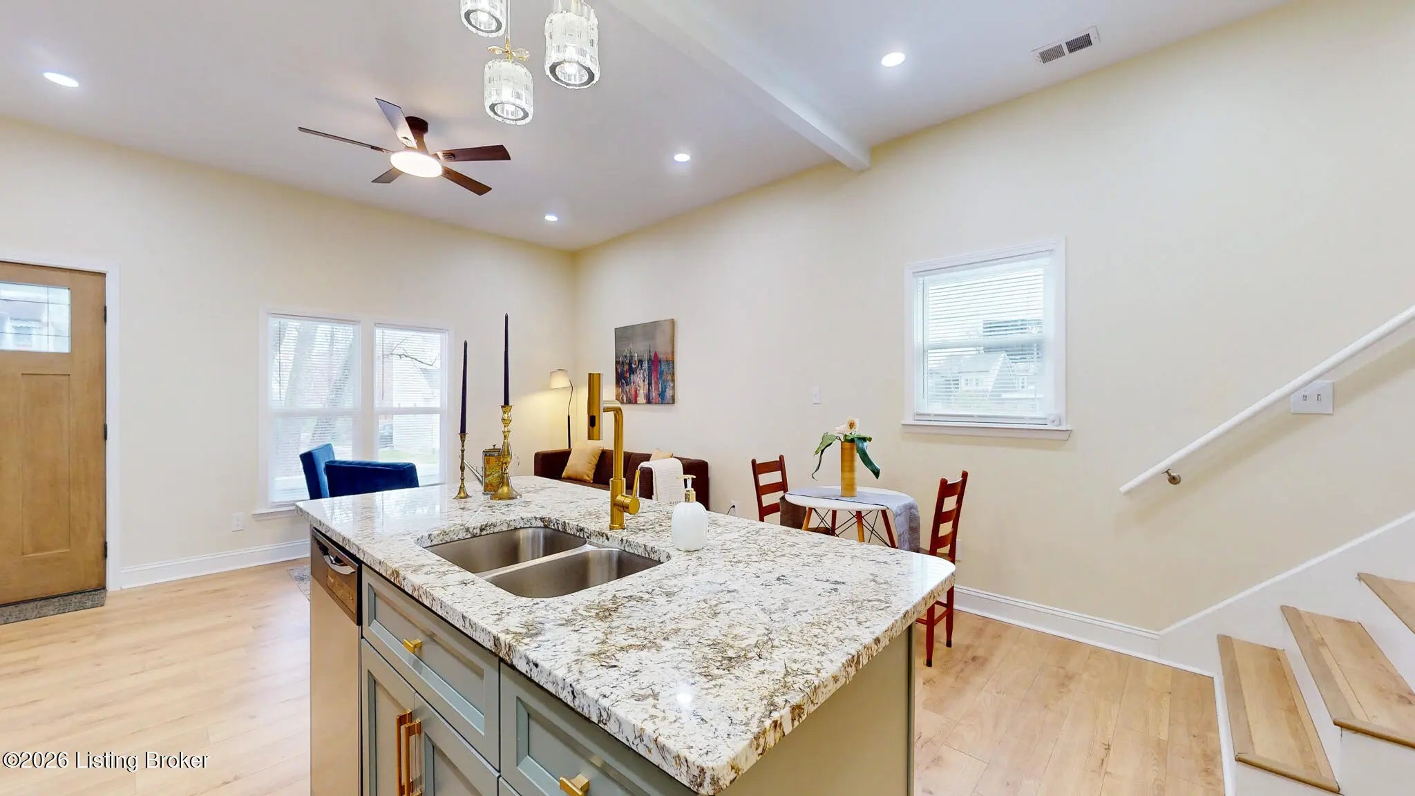 Step into timeless charm and modern comfort with this beautifully renovated home in Shelby Park. This home was taken down to the studs and offers all new insulation, drywall, electrical, plumbing, HVAC, windows, roof, and so much more. The open concept first floor offers an abundance of natural light, recessed lighting and new laminate flooring throughout. The kitchen has sage tone cabinetry with granite countertops, a subway tile backsplash and a full suite of stainless steel appliances. Off the kitchen is a conveniently located half bath. The large first floor primary suite has a gorgeous en suite bath complete with a custom tiled walk-in-shower, freestanding soaker tub and dual vanity. Attached is the over sized walk-in-closet as well as a stackable laundry closet. The partially finished basement offers endless opportunities and has an additional half bath. There are also two unfinished storage rooms and a second option for laundry. Upstairs, you'll find two generous bedrooms both with ample closet space and updated lighting. Separating the two bedrooms is the perfect space for a family room or home office. An adjoining full bath offers a modern floating vanity, tub with shower surround and all new fixtures. Located just minutes from S Shelby St and the many cafés, and restaurants, this home offers the best of urban convenience and neighborhood charm. Come experience the character, history, and community that make Shelby Park unique.