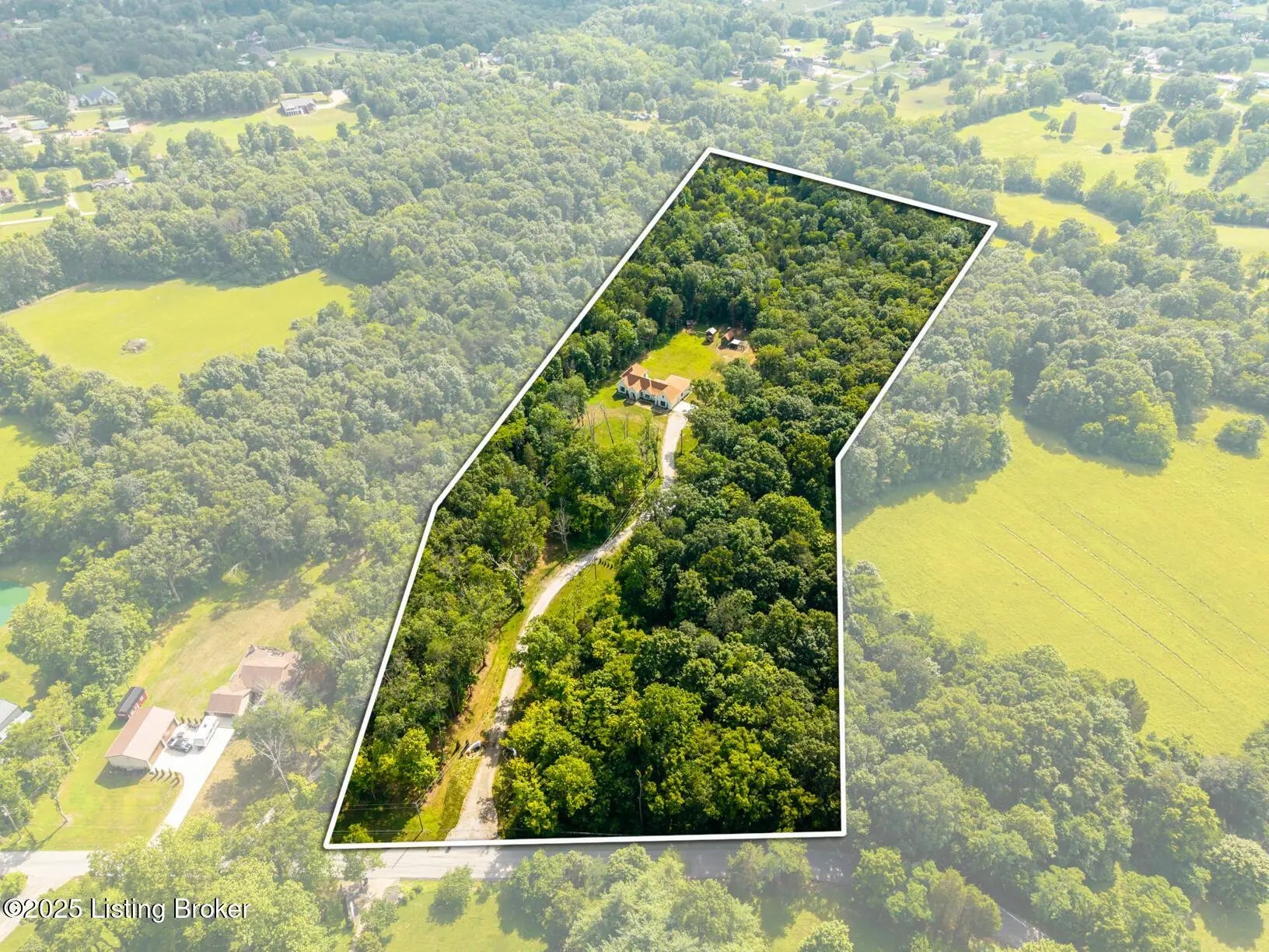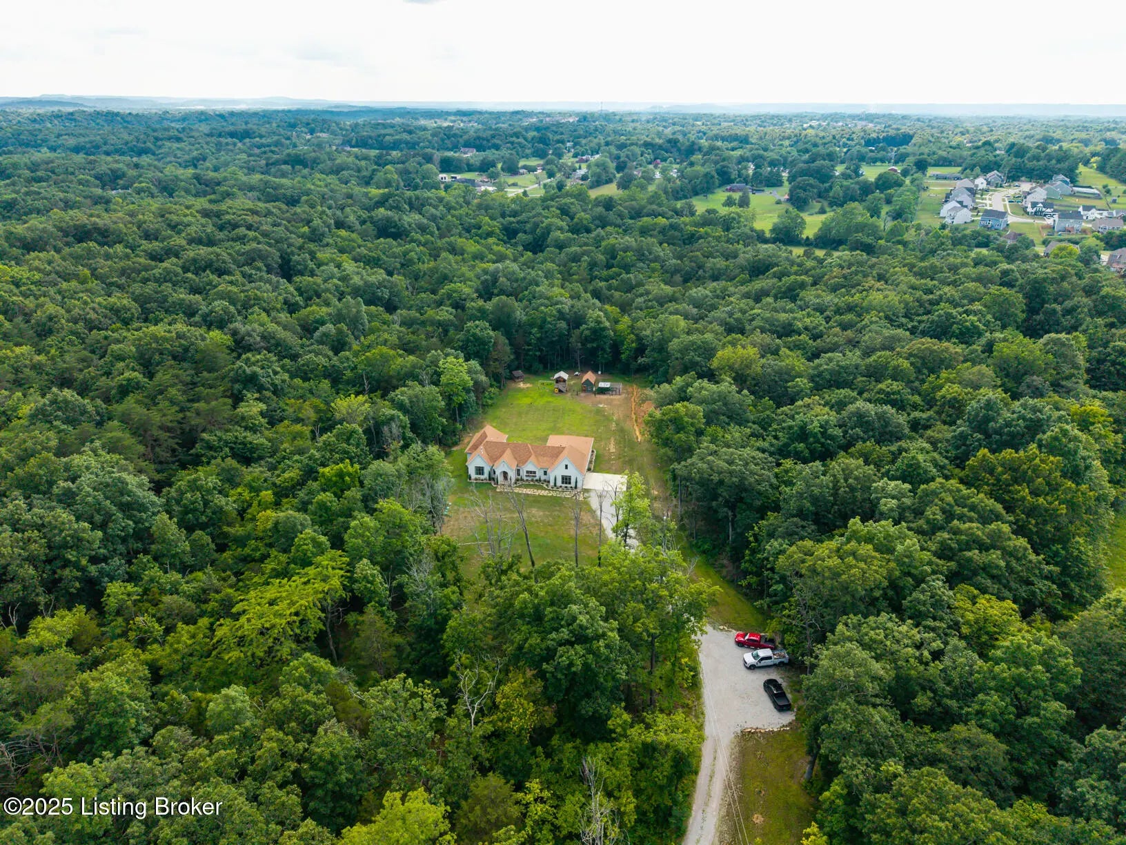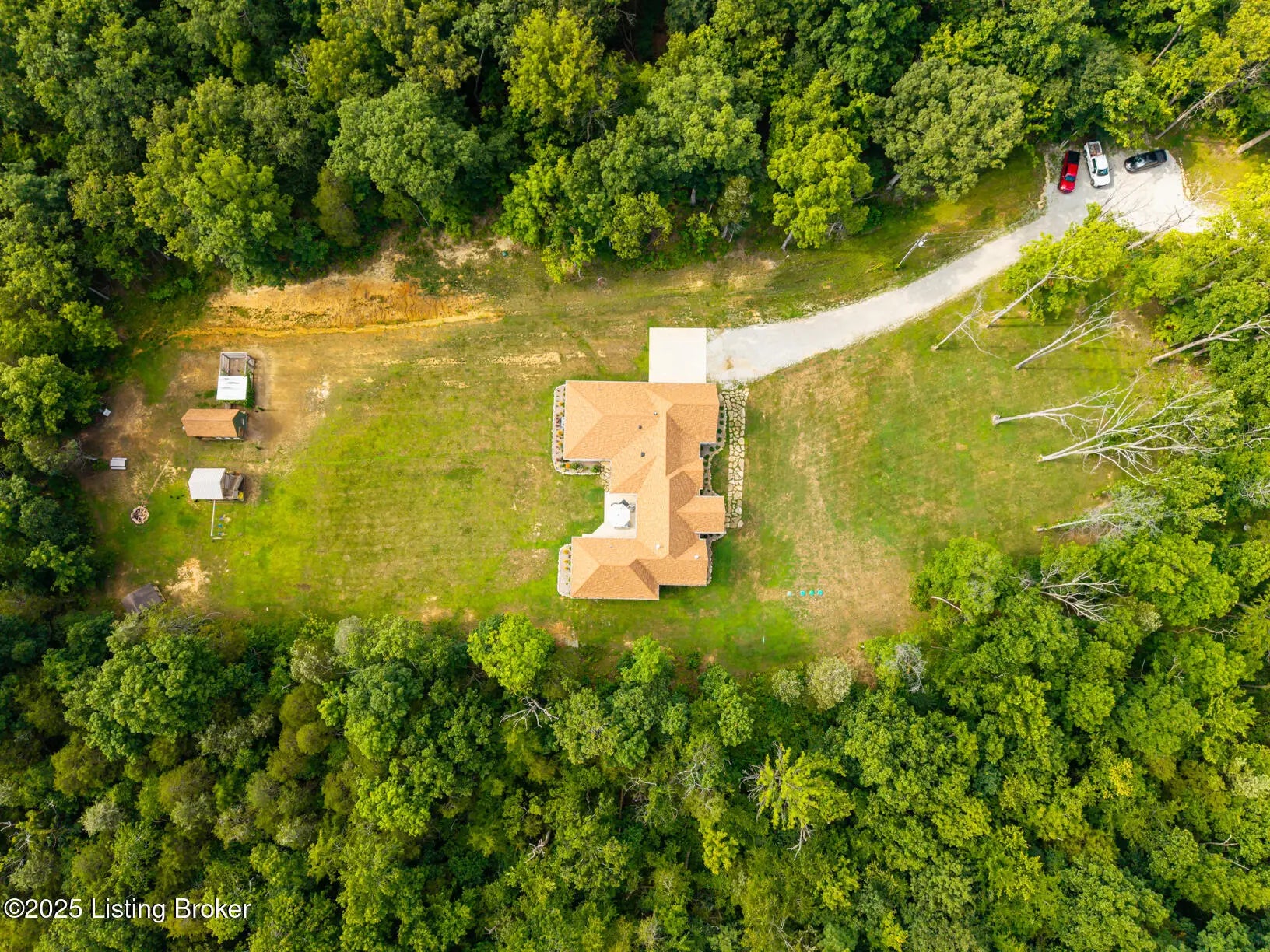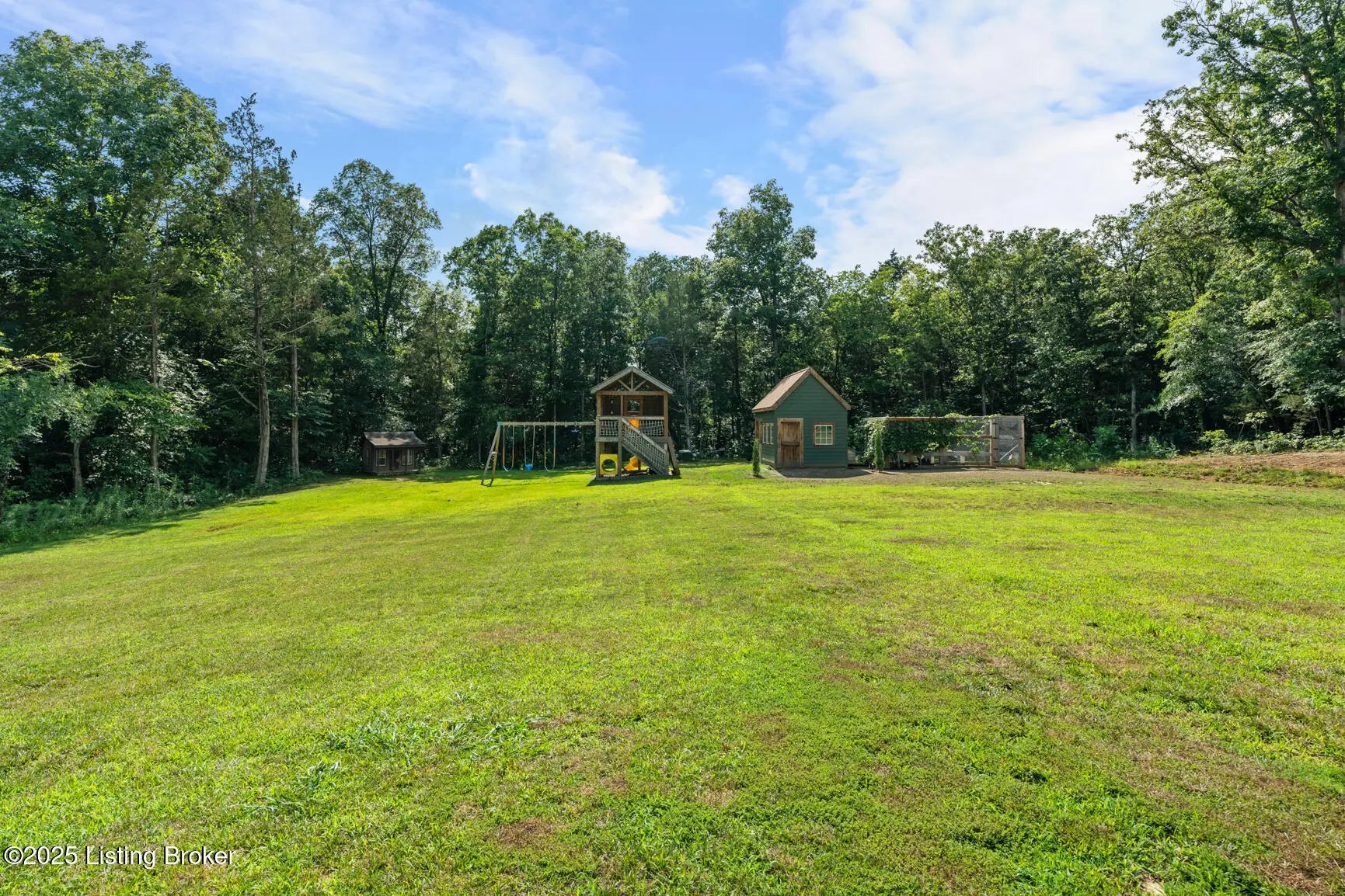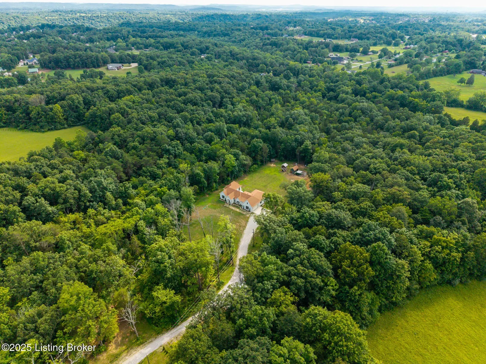Welcome to this stunning, custom-built cottage-style retreat nestled on 8.4 acres of private, wooded land. Country living, yet just minutes from shopping, dining, and everyday amenities. Built in 2022, this 3,334 sq. ft. home is the perfect balance of modern craftsmanship and timeless charm with 4-5 bedrooms and spacious living throughout. From the moment you arrive, you'll appreciate the long, gated driveway that offers both privacy and security. A stone walkway leads to a beautiful arched front door and into a bricked foyer, setting the tone for the custom finishes inside. The vaulted great room is both cozy and grand, with a white shiplap ceiling and beams, wide-plank oak floors, and a floor-to-ceiling stone fireplace as its focal point. The large windows and gorgeous 8ft glass doors let in tons of natural light and lead to a large concrete patio. The heart of the home is the chef's kitchen, featuring a six-burner gas range with two convection ovens and a stove top griddle, a pot filer faucet, granite countertops, a tiled backsplash, custom range hood, and a farmhouse sink framed by oversized windows. A massive (4.2x10.2) marble island includes lots of seating space and tons of cabinet storage below. Just off the kitchen is an adorable walk-in pantry with an abundance of cabinetry, butcher block countertops, and a charming six-lite wood door. Enjoy all your meals in the large dining area that looks out into the back property. The dream laundry/mudroom has a wall cubby with seating and storage, lots of cabinets and 2 butcher-block counters. The laundry/mud room is conveniently located coming in from the garage. The luxurious primary suite is a true retreat, with vaulted shiplap ceilings and beams, oversized windows, and a spa-like ensuite bathroom. Enjoy a soaking tub, walk-in tiled shower, double custom vanity, and a huge walk-in closet, all set on elegant travertine flooring. Tucked into a peaceful corner of the home is a dedicated coffee room, surrounded by floor-to-ceiling windows that frame views of the backyard and woods. With its own door to the patio, it's the perfect place to start your morning or unwind at the end of the day. This home features 4 large bedrooms, plus a versatile 5th room currently used as a playroom/study includes wall-to-wall built-ins, dual closets, and a private door leading to the back patio which makes it perfect for an additional bedroom. A split-bedroom layout provides excellent privacy, with a full hall bath offering double sinks, a custom-built vanity, and a large double closet. A linen closet in the hall for extra storage. The home also has an Aquasana OptimH20 Whole House Filter. Some of the Outdoor Highlights include: 8.4 private acres lined by woods. Two playhouses, including one with a slide and swings. Large chicken coop (chickens can stay if desired) Space for gardening, recreation, or simply enjoying peaceful country living. This one-of-a-kind home offers the best of both worlds: refined luxury and rustic charm, privacy and proximity. Whether you're raising a family, entertaining guests, or simply looking for a serene place to call home, this property is a rare find and an exceptional opportunity.