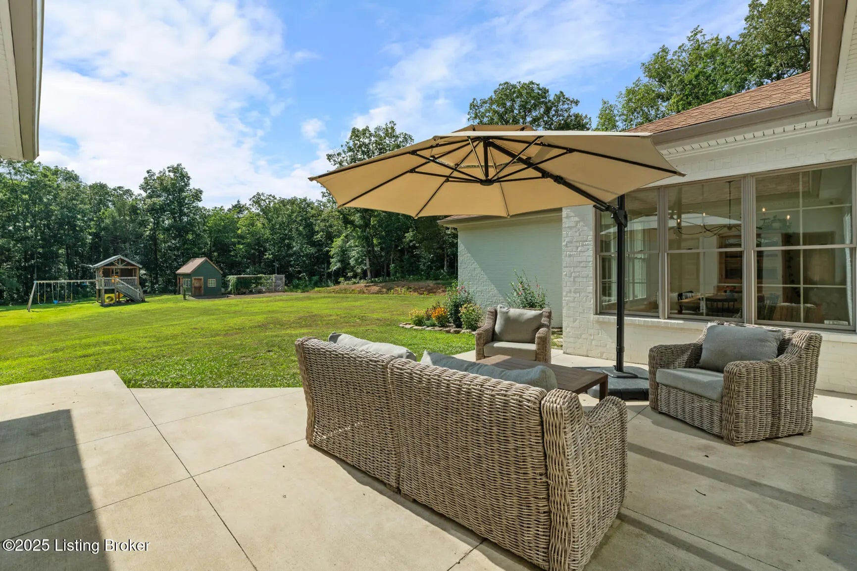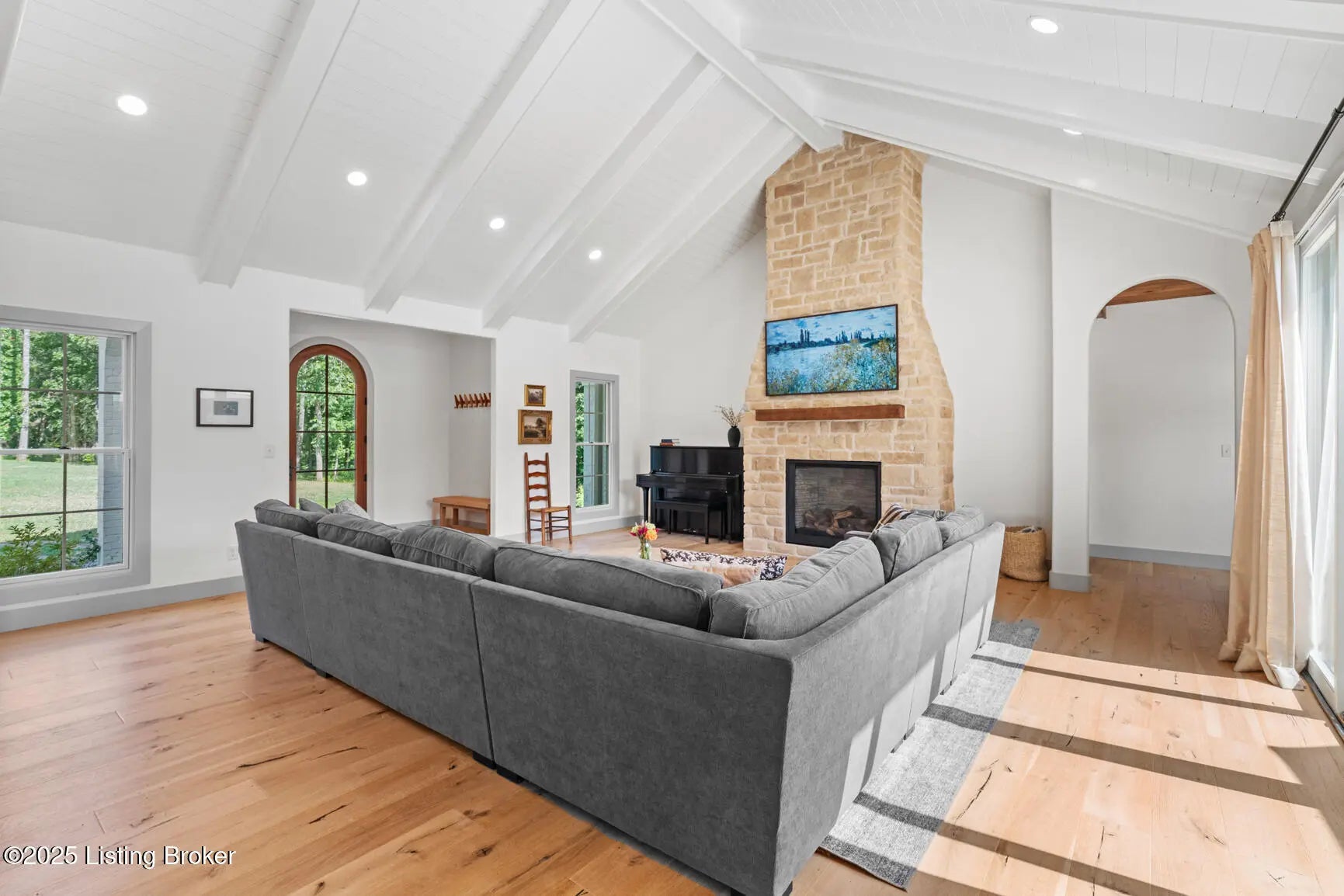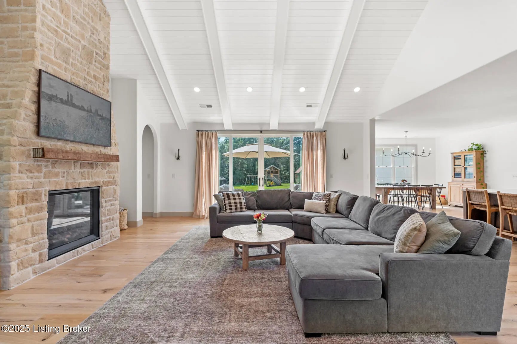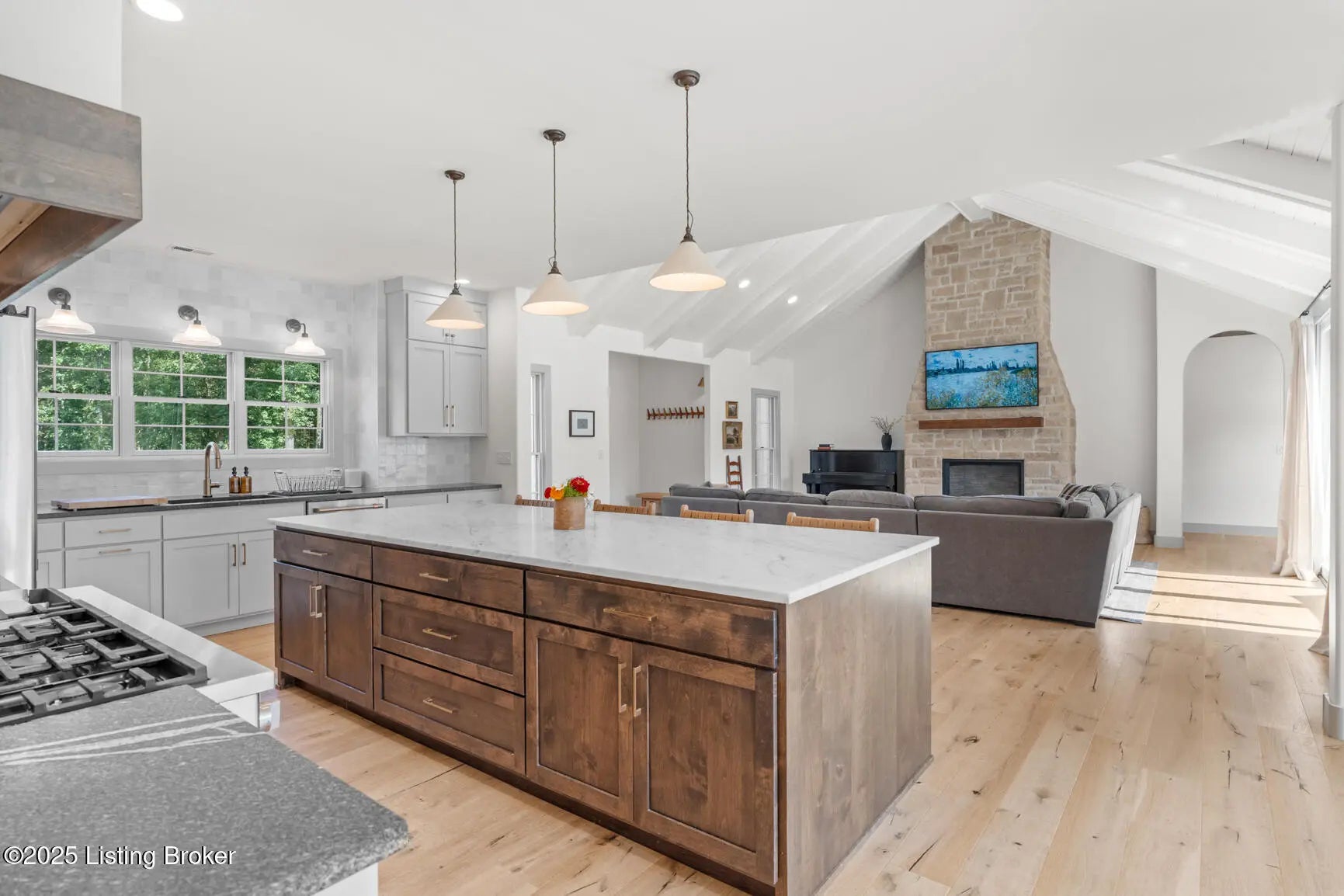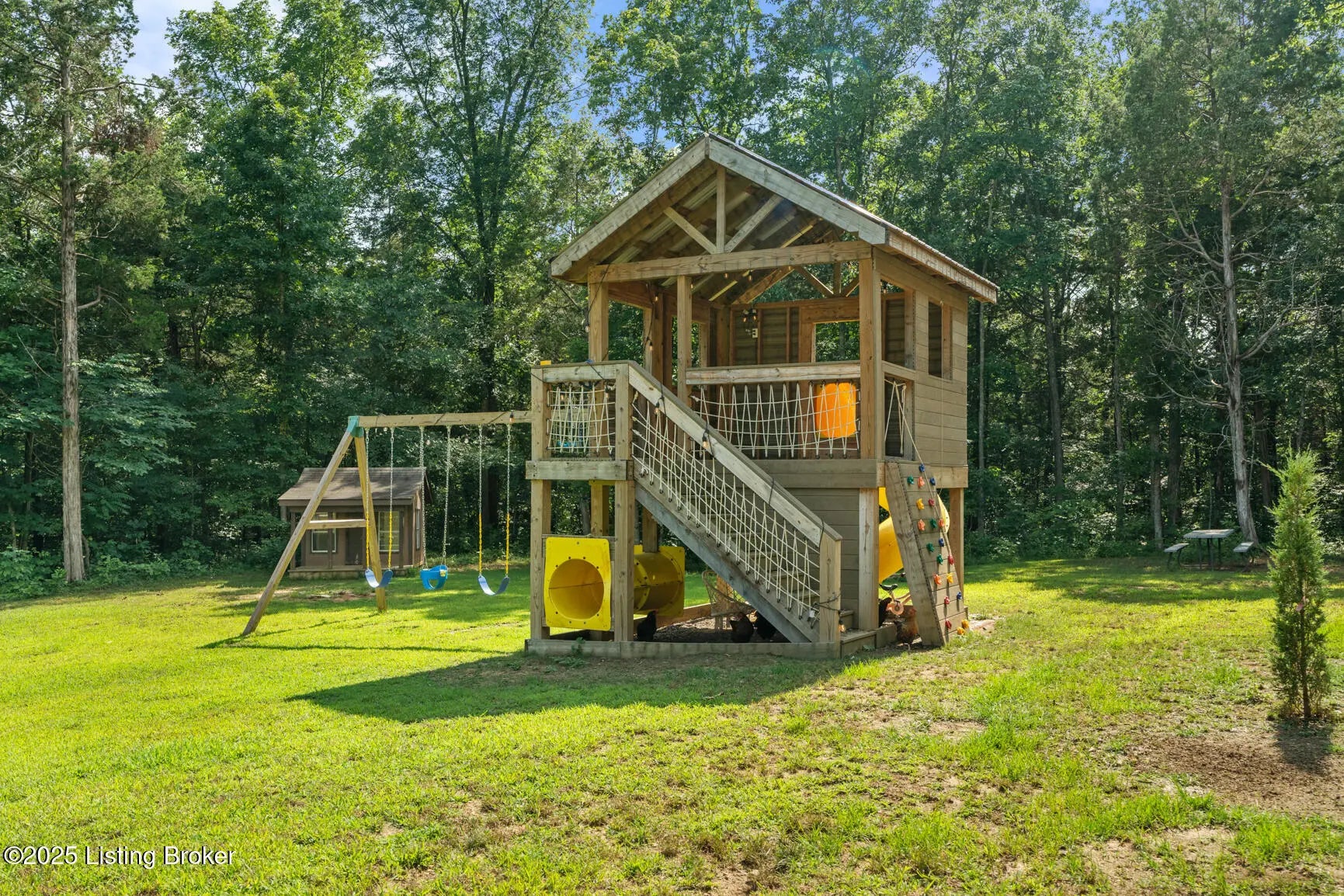 Welcome to this stunning, custom-built cottage-style retreat nestled on 8.4 acres of private, wooded land. Country living, yet just minutes from shopping, dining, and everyday amenities. Built in 2022, this 3,334 sq. ft. home is the perfect balance of modern craftsmanship and timeless charm with 4-5 bedrooms and spacious living throughout. From the moment you arrive, you'll appreciate the long, gated driveway that offers both privacy and security. A stone walkway leads to a beautiful arched front door and into a bricked foyer, setting the tone for the custom finishes inside. The vaulted great room is both cozy and grand, with a white shiplap ceiling and beams, wide-plank oak floors, and a floor-to-ceiling stone fireplace as its focal point. The large windows and gorgeous 8ft glass doors let in tons of natural light and lead to a large concrete patio. The heart of the home is the chef's kitchen, featuring a six-burner gas range with two convection ovens and a stove top griddle, a pot filer faucet, granite countertops, a tiled backsplash, custom range hood, and a farmhouse sink framed by oversized windows. A massive (4.2x10.2) marble island includes lots of seating space and tons of cabinet storage below. Just off the kitchen is an adorable walk-in pantry with an abundance of cabinetry, butcher block countertops, and a charming six-lite wood door. Enjoy all your meals in the large dining area that looks out into the back property. The dream laundry/mudroom has a wall cubby with seating and storage, lots of cabinets and 2 butcher-block counters. The laundry/mud room is conveniently located coming in from the garage. The luxurious primary suite is a true retreat, with vaulted shiplap ceilings and beams, oversized windows, and a spa-like ensuite bathroom. Enjoy a soaking tub, walk-in tiled shower, double custom vanity, and a huge walk-in closet, all set on elegant travertine flooring. Tucked into a peaceful corner of the home is a dedicated coffee room, surrounded by floor-to-ceiling windows that frame views of the backyard and woods. With its own door to the patio, it's the perfect place to start your morning or unwind at the end of the day. This home features 4 large bedrooms, plus a versatile 5th room currently used as a playroom/study includes wall-to-wall built-ins, dual closets, and a private door leading to the back patio which makes it perfect for an additional bedroom. A split-bedroom layout provides excellent privacy, with a full hall bath offering double sinks, a custom-built vanity, and a large double closet. A linen closet in the hall for extra storage. The home also has an Aquasana OptimH20 Whole House Filter. Some of the Outdoor Highlights include: 8.4 private acres lined by woods. Two playhouses, including one with a slide and swings. Large chicken coop (chickens can stay if desired) Space for gardening, recreation, or simply enjoying peaceful country living. This one-of-a-kind home offers the best of both worlds: refined luxury and rustic charm, privacy and proximity. Whether you're raising a family, entertaining guests, or simply looking for a serene place to call home, this property is a rare find and an exceptional opportunity.