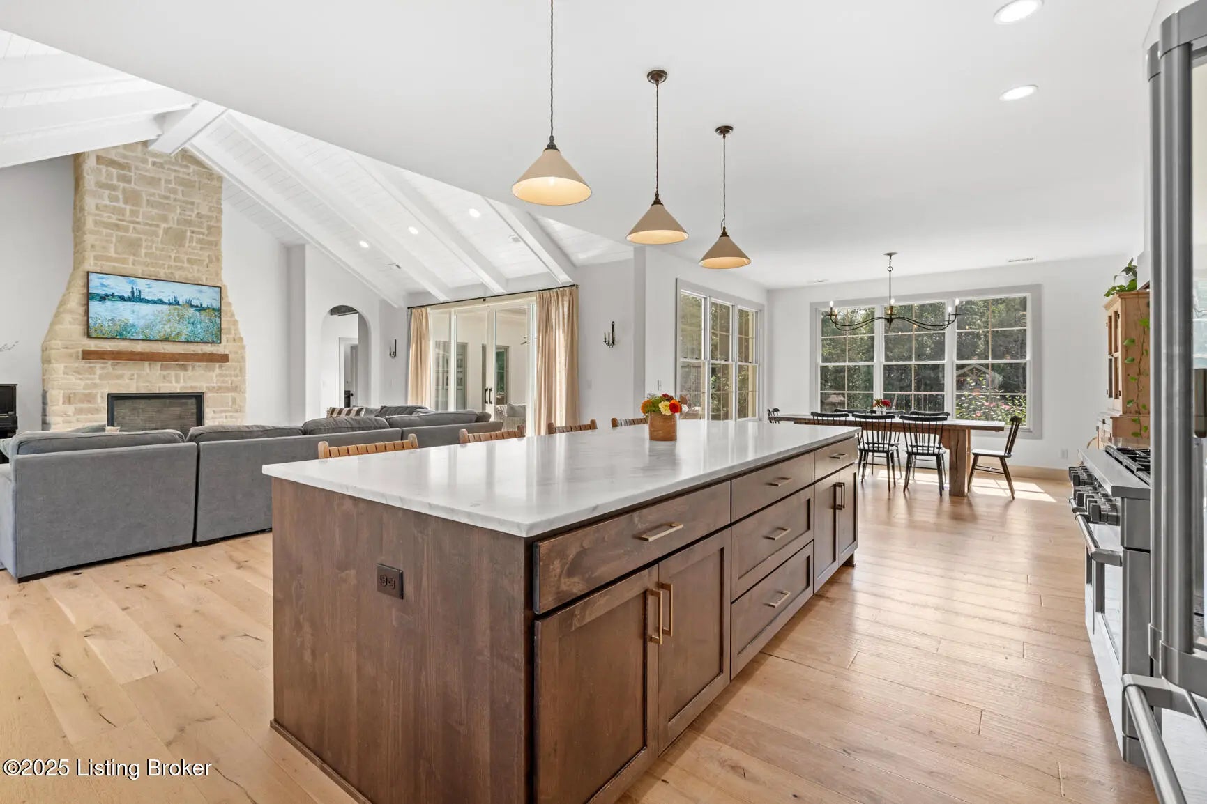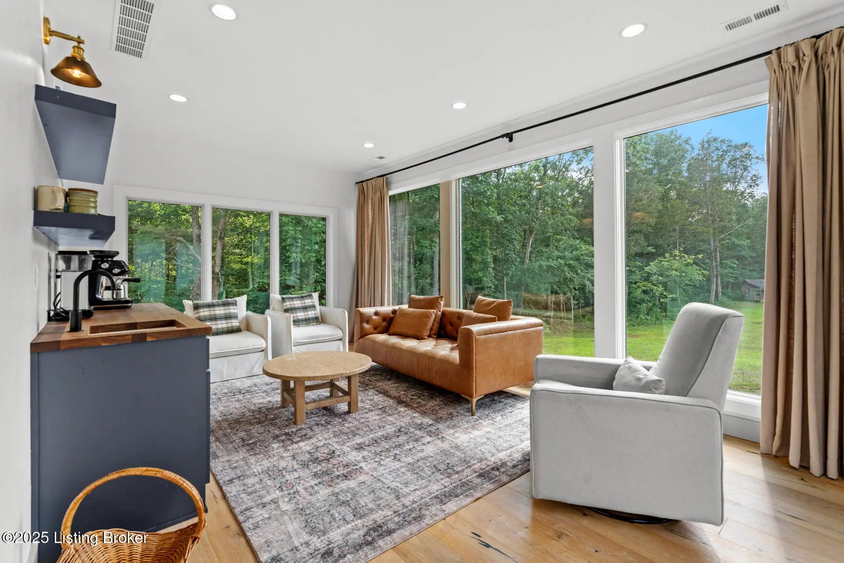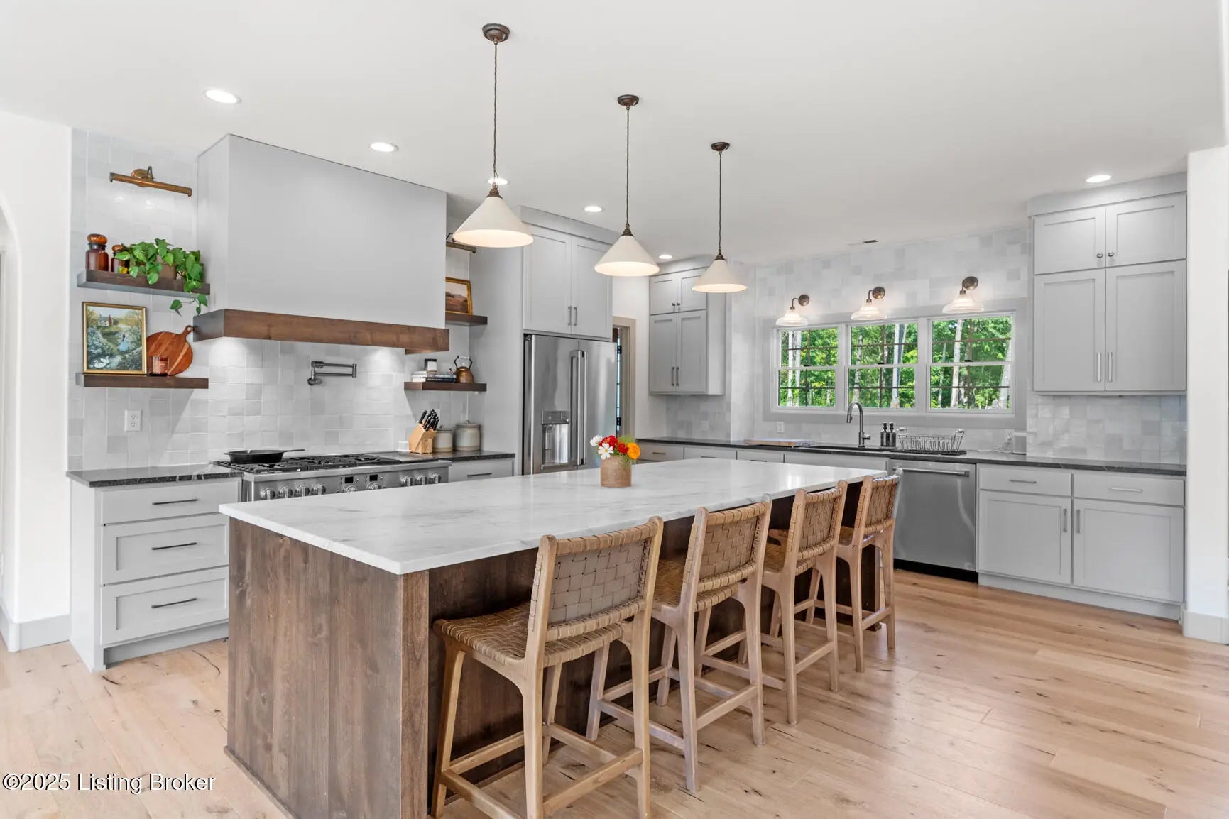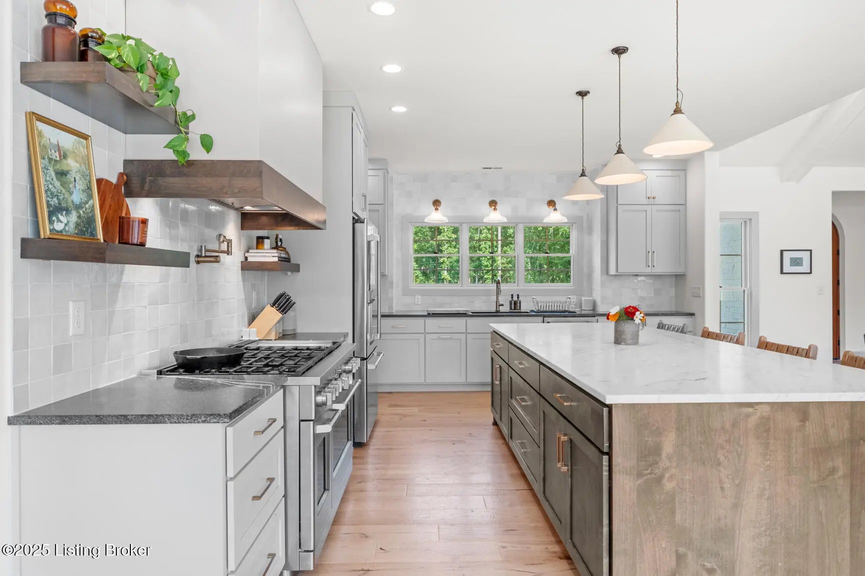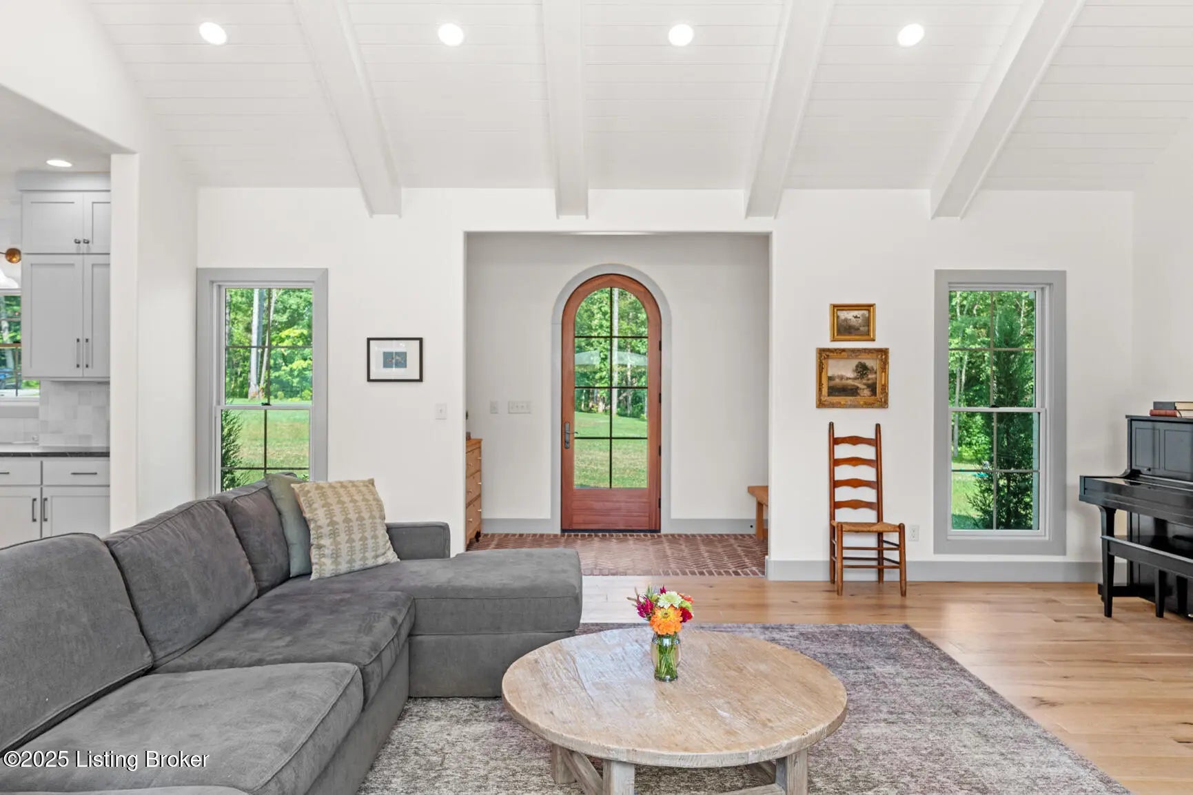 Welcome to this stunning, custom-built cottage-style retreat nestled on 8.4 acres of private, wooded land. Country living, yet just minutes from shopping, dining, and everyday amenities. Built in 2022, this 3,334 sq. ft. home is the perfect balance of modern craftsmanship and timeless charm with 4-5 bedrooms and spacious living throughout. From the moment you arrive, you'll appreciate the long, gated driveway that offers both privacy and security. A stone walkway leads to a beautiful arched front door and into a bricked foyer, setting the tone for the custom finishes inside. The vaulted great room is both cozy and grand, with a white shiplap ceiling and beams, wide-plank oak floors, and a floor-to-ceiling stone fireplace as its focal point. The large windows and gorgeous 8ft glass doors let in tons of natural light and lead to a large concrete patio. The heart of the home is the chef's kitchen, featuring a six-burner gas range with two convection ovens and a stove top griddle, a pot filer faucet, granite countertops, a tiled backsplash, custom range hood, and a farmhouse sink framed by oversized windows. A massive (4.2x10.2) marble island includes lots of seating space and tons of cabinet storage below. Just off the kitchen is an adorable walk-in pantry with an abundance of cabinetry, butcher block countertops, and a charming six-lite wood door. Enjoy all your meals in the large dining area that looks out into the back property. The dream laundry/mudroom has a wall cubby with seating and storage, lots of cabinets and 2 butcher-block counters. The laundry/mud room is conveniently located coming in from the garage. The luxurious primary suite is a true retreat, with vaulted shiplap ceilings and beams, oversized windows, and a spa-like ensuite bathroom. Enjoy a soaking tub, walk-in tiled shower, double custom vanity, and a huge walk-in closet, all set on elegant travertine flooring. Tucked into a peaceful corner of the home is a dedicated coffee room, surrounded by floor-to-ceiling windows that frame views of the backyard and woods. With its own door to the patio, it's the perfect place to start your morning or unwind at the end of the day. This home features 4 large bedrooms, plus a versatile 5th room currently used as a playroom/study includes wall-to-wall built-ins, dual closets, and a private door leading to the back patio which makes it perfect for an additional bedroom. A split-bedroom layout provides excellent privacy, with a full hall bath offering double sinks, a custom-built vanity, and a large double closet. A linen closet in the hall for extra storage. The home also has an Aquasana OptimH20 Whole House Filter. Some of the Outdoor Highlights include: 8.4 private acres lined by woods. Two playhouses, including one with a slide and swings. Large chicken coop (chickens can stay if desired) Space for gardening, recreation, or simply enjoying peaceful country living. This one-of-a-kind home offers the best of both worlds: refined luxury and rustic charm, privacy and proximity. Whether you're raising a family, entertaining guests, or simply looking for a serene place to call home, this property is a rare find and an exceptional opportunity.