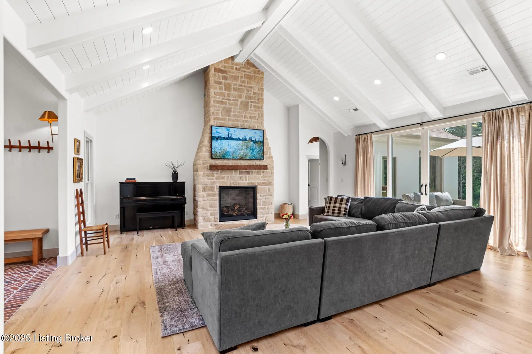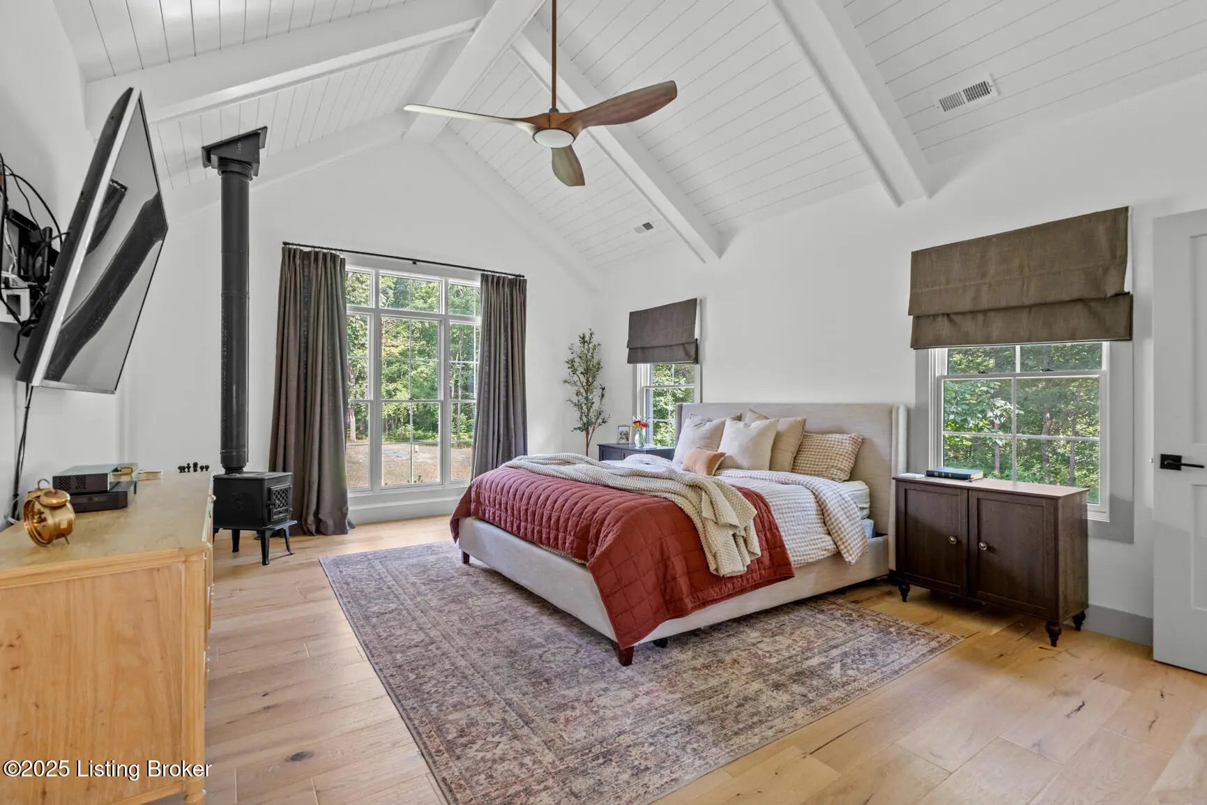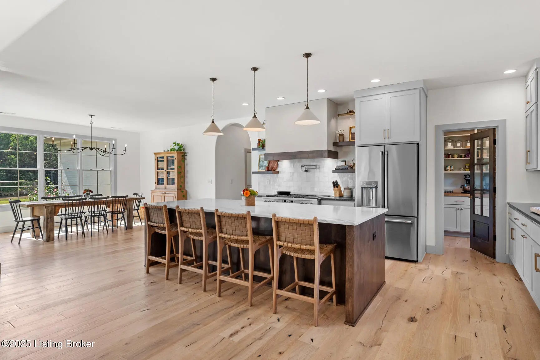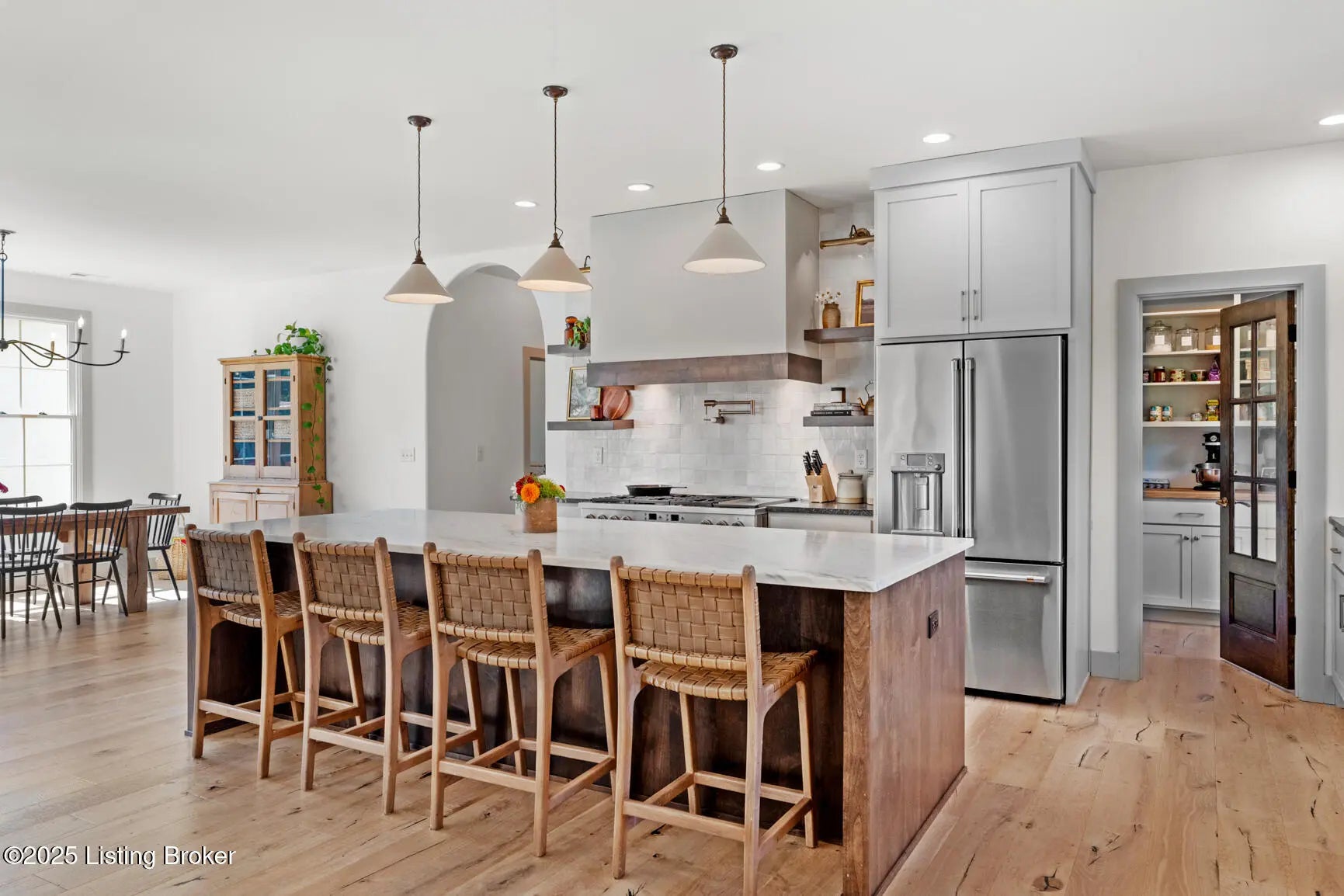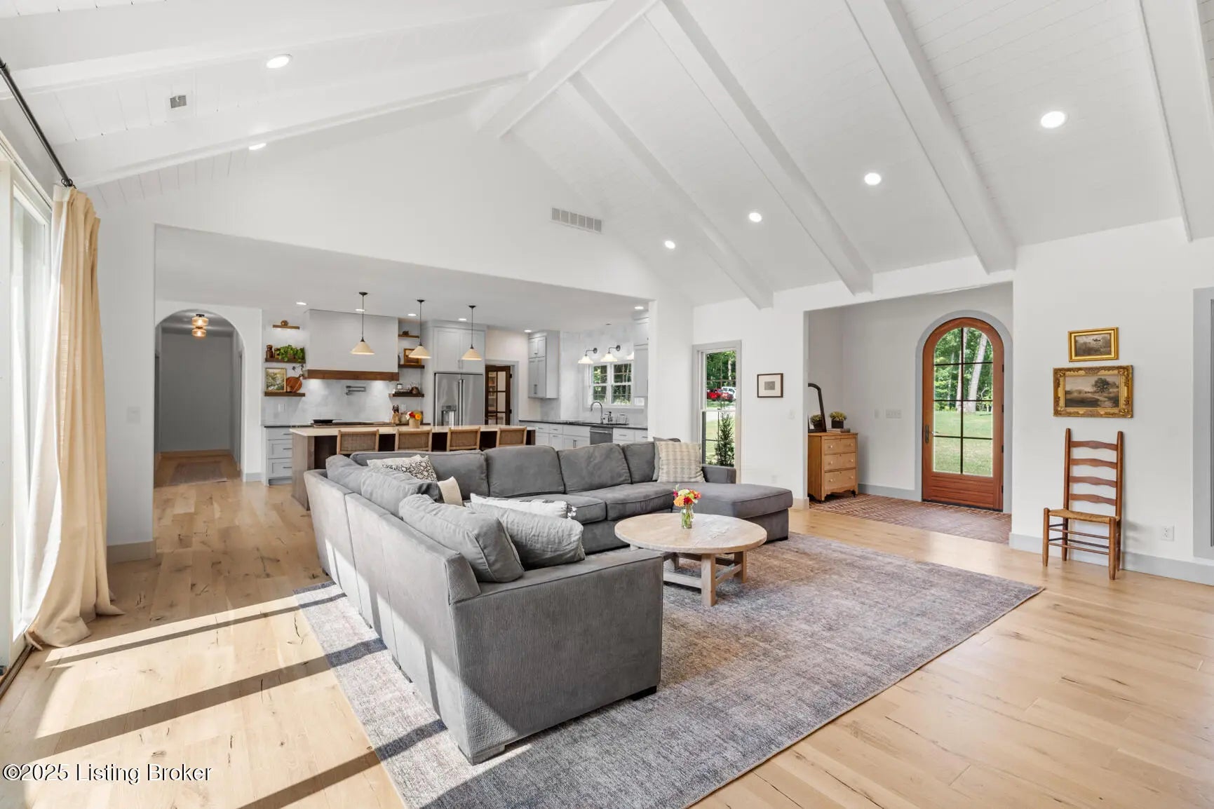 Welcome to this stunning, custom-built cottage-style retreat nestled on 8.4 acres of private, wooded land. Country living, yet just minutes from shopping, dining, and everyday amenities. Built in 2022, this 3,334 sq. ft. home is the perfect balance of modern craftsmanship and timeless charm with 4-5 bedrooms and spacious living throughout. From the moment you arrive, you'll appreciate the long, gated driveway that offers both privacy and security. A stone walkway leads to a beautiful arched front door and into a bricked foyer, setting the tone for the custom finishes inside. The vaulted great room is both cozy and grand, with a white shiplap ceiling and beams, wide-plank oak floors, and a floor-to-ceiling stone fireplace as its focal point. The large windows and gorgeous 8ft glass doors let in tons of natural light and lead to a large concrete patio. The heart of the home is the chef's kitchen, featuring a six-burner gas range with two convection ovens and a stove top griddle, a pot filer faucet, granite countertops, a tiled backsplash, custom range hood, and a farmhouse sink framed by oversized windows. A massive (4.2x10.2) marble island includes lots of seating space and tons of cabinet storage below. Just off the kitchen is an adorable walk-in pantry with an abundance of cabinetry, butcher block countertops, and a charming six-lite wood door. Enjoy all your meals in the large dining area that looks out into the back property. The dream laundry/mudroom has a wall cubby with seating and storage, lots of cabinets and 2 butcher-block counters. The laundry/mud room is conveniently located coming in from the garage. The luxurious primary suite is a true retreat, with vaulted shiplap ceilings and beams, oversized windows, and a spa-like ensuite bathroom. Enjoy a soaking tub, walk-in tiled shower, double custom vanity, and a huge walk-in closet, all set on elegant travertine flooring. Tucked into a peaceful corner of the home is a dedicated coffee room, surrounded by floor-to-ceiling windows that frame views of the backyard and woods. With its own door to the patio, it's the perfect place to start your morning or unwind at the end of the day. This home features 4 large bedrooms, plus a versatile 5th room currently used as a playroom/study includes wall-to-wall built-ins, dual closets, and a private door leading to the back patio which makes it perfect for an additional bedroom. A split-bedroom layout provides excellent privacy, with a full hall bath offering double sinks, a custom-built vanity, and a large double closet. A linen closet in the hall for extra storage. The home also has an Aquasana OptimH20 Whole House Filter. Some of the Outdoor Highlights include: 8.4 private acres lined by woods. Two playhouses, including one with a slide and swings. Large chicken coop (chickens can stay if desired) Space for gardening, recreation, or simply enjoying peaceful country living. This one-of-a-kind home offers the best of both worlds: refined luxury and rustic charm, privacy and proximity. Whether you're raising a family, entertaining guests, or simply looking for a serene place to call home, this property is a rare find and an exceptional opportunity.