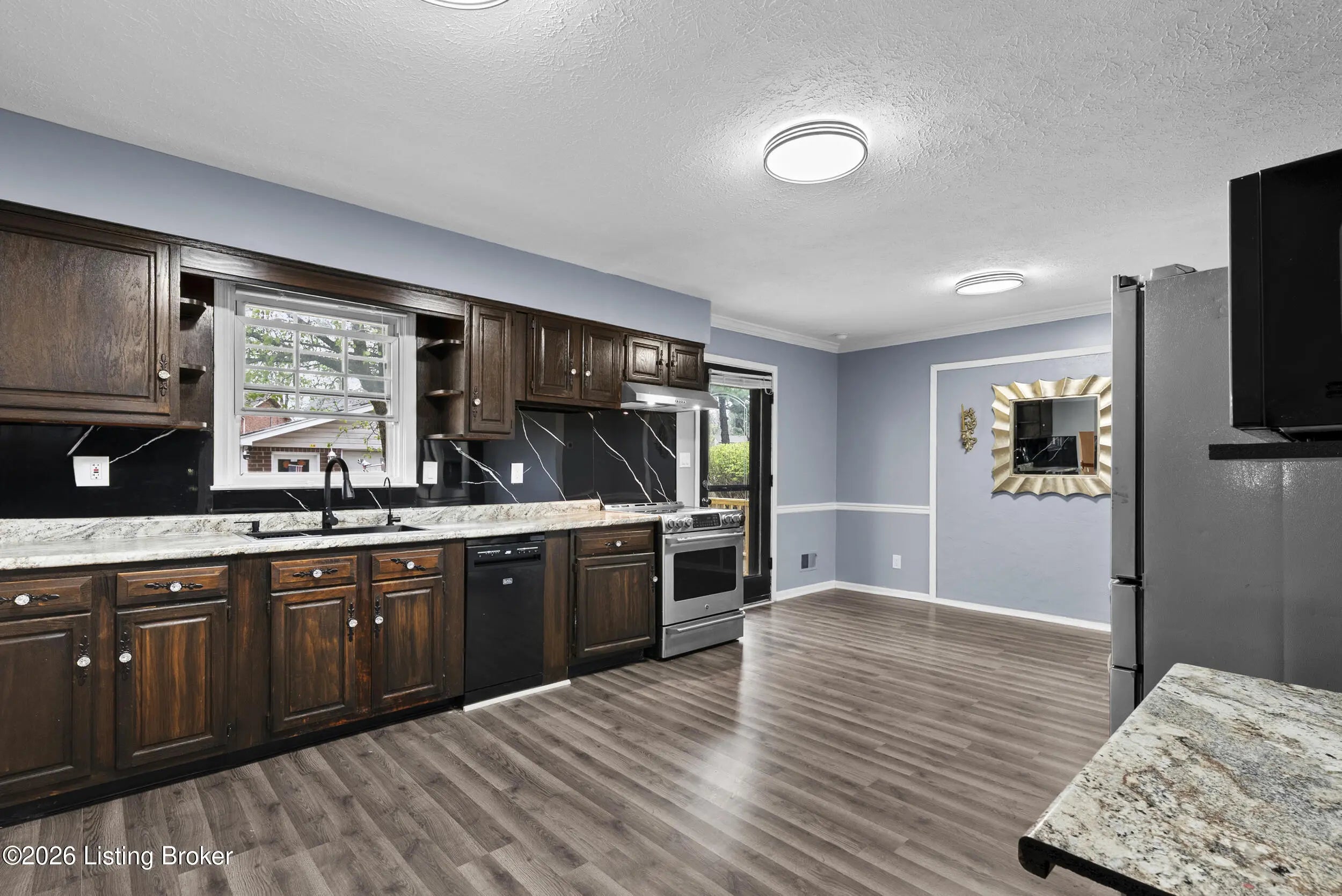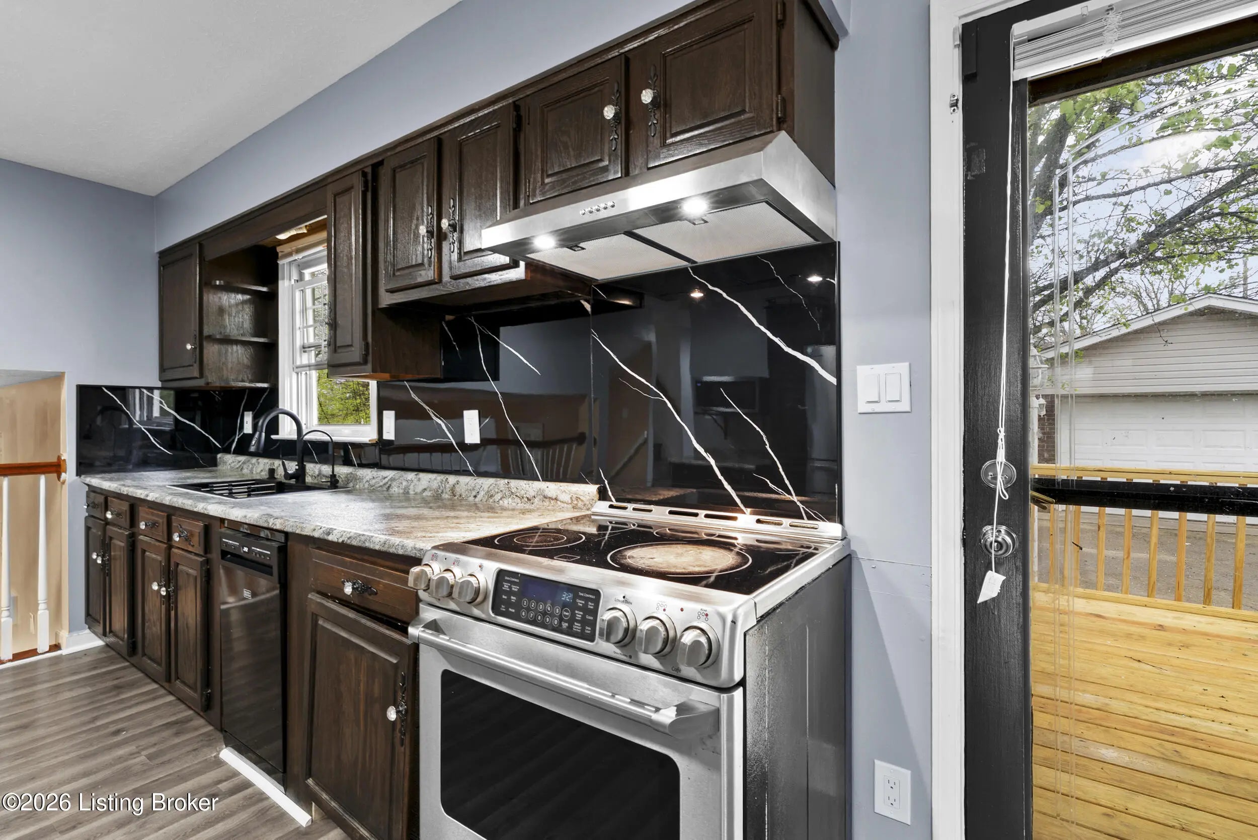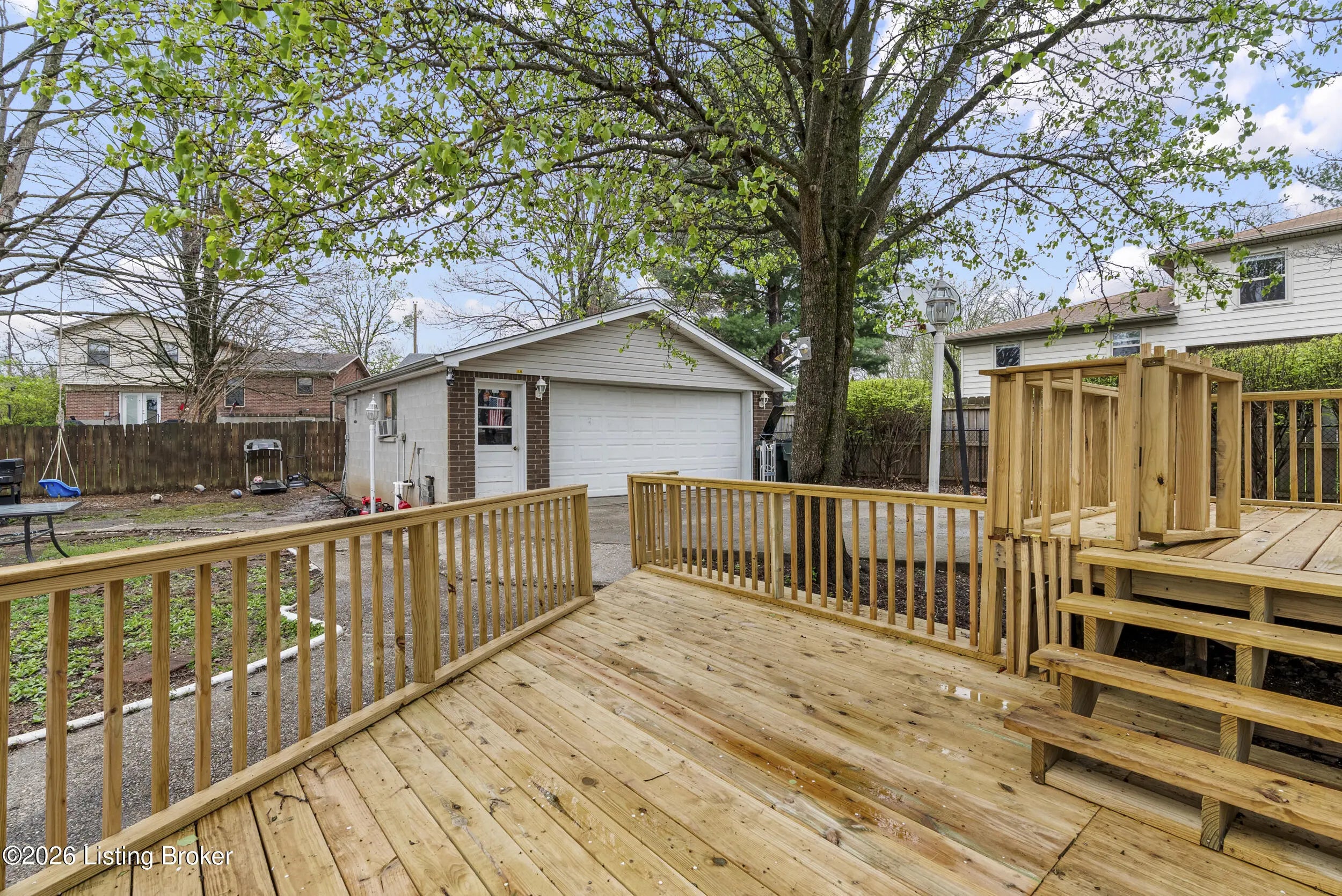 Beautifully updated 3-bedroom, 1.5-bath tri-level home in the desirable Chenoweth Hills subdivision, offering over 1,600 square feet of inviting living space. This move-in ready home features new flooring and fresh paint throughout, creating a clean and modern feel. The main level showcases a bright living room with a large picture window that fills the space with natural light. The spacious eat-in kitchen offers rich cabinetry, ample storage, and a comfortable dining. The lower level has an expansive family room with a stone fireplace and direct walkout access to the backyard. A versatile bonus area provides the perfect space for a home office, playroom, or additional lounge, along with a convenient half bath. Upstairs, you'll find three generously sized bedrooms and a well-appointed full bath complete with a double-sink vanity, soaking tub, and separate walk-in shower. Outdoor living shines with a brand-new double-tier deck, patio area, and a large backyard. The detached oversized two-car garage adds extra storage and convenience. HVAC replaced in 2025 for peace of mind. Ideally located in a quiet Jeffersontown neighborhood close to shopping, dining, and everyday amenities. Call today!