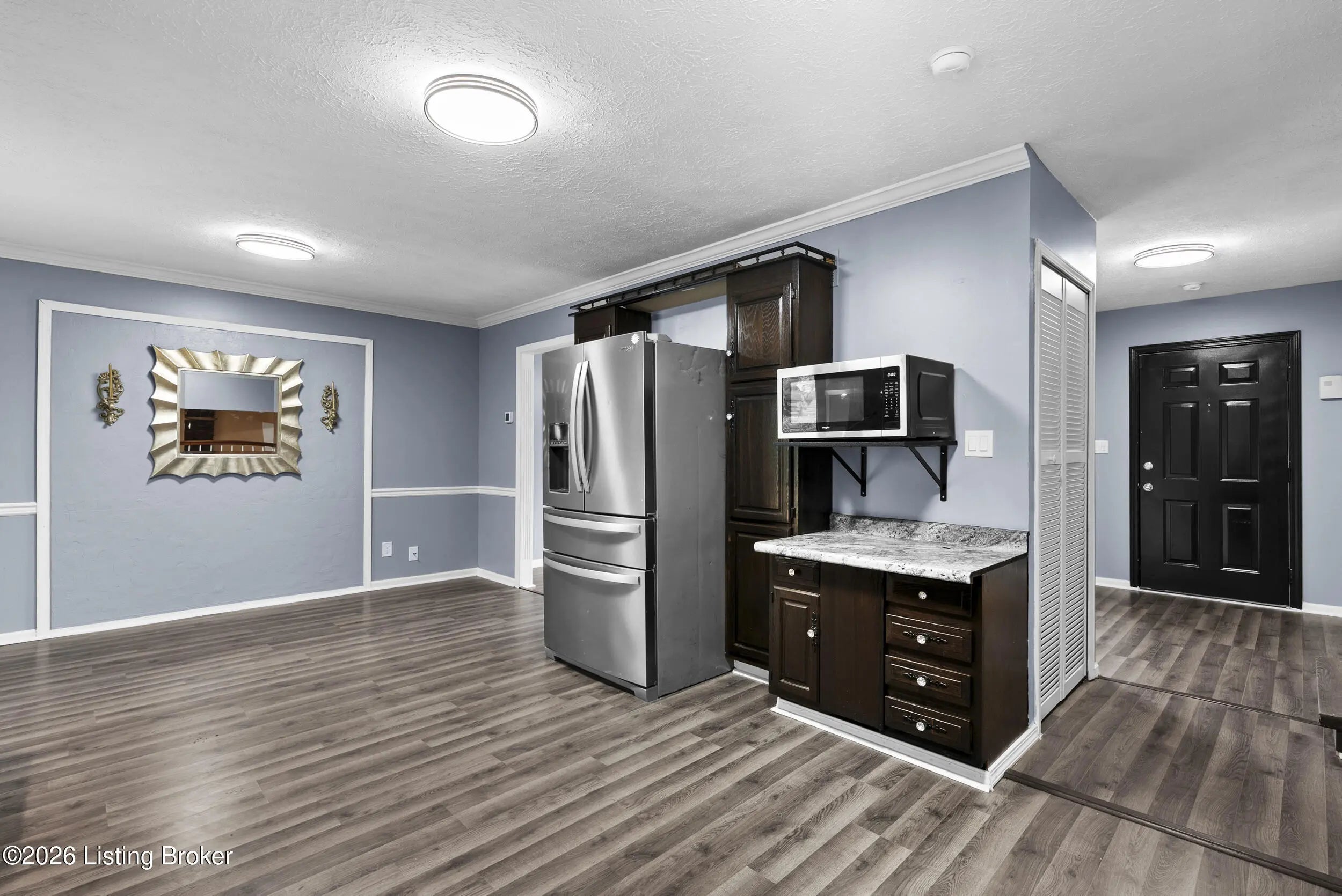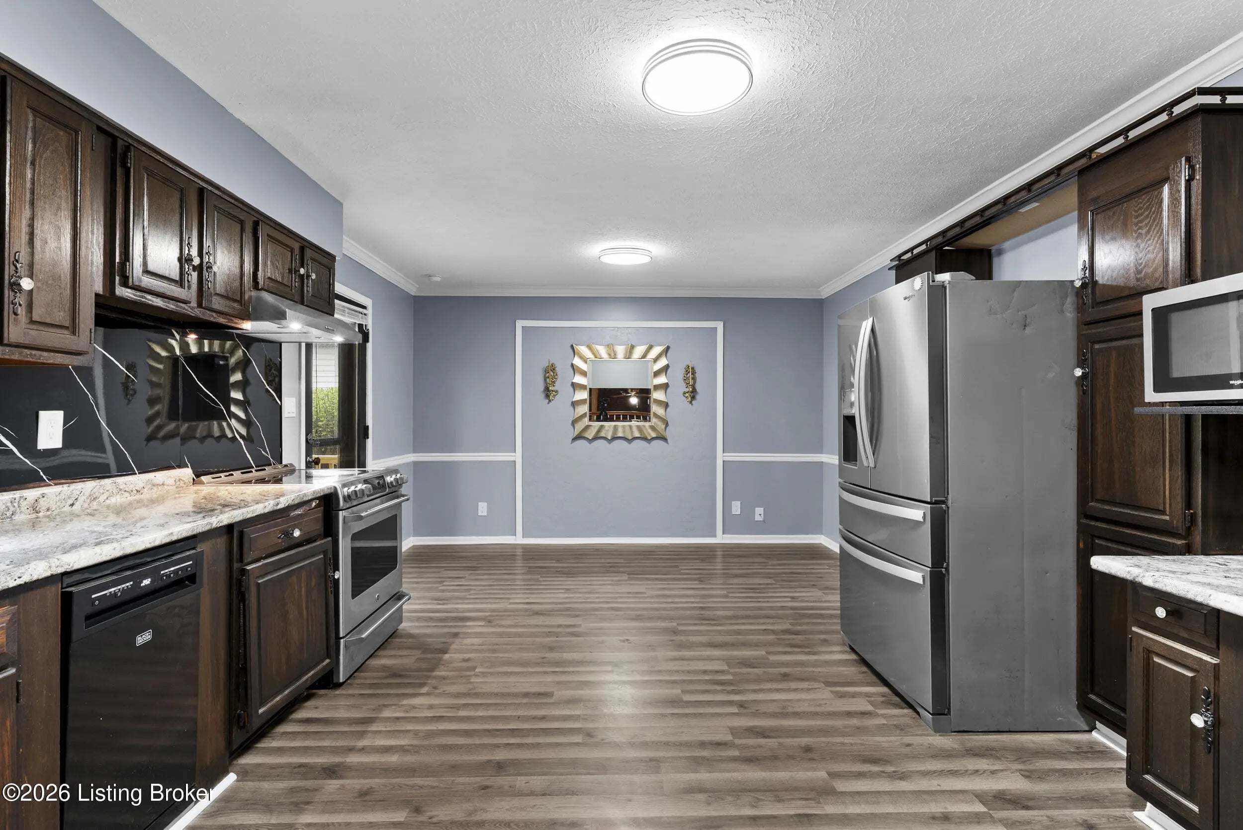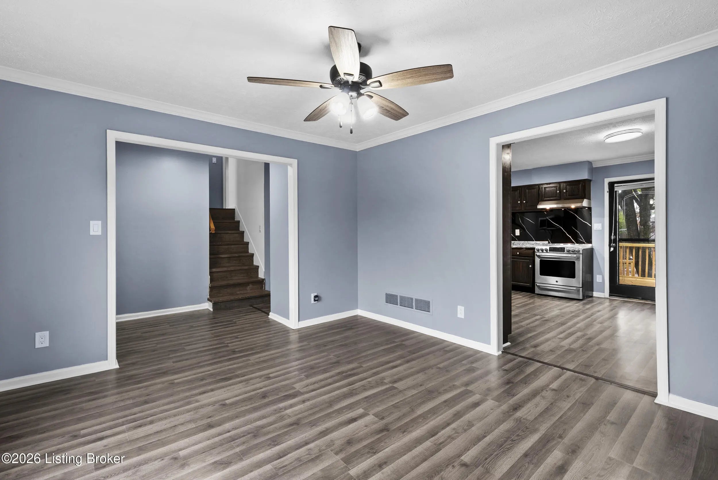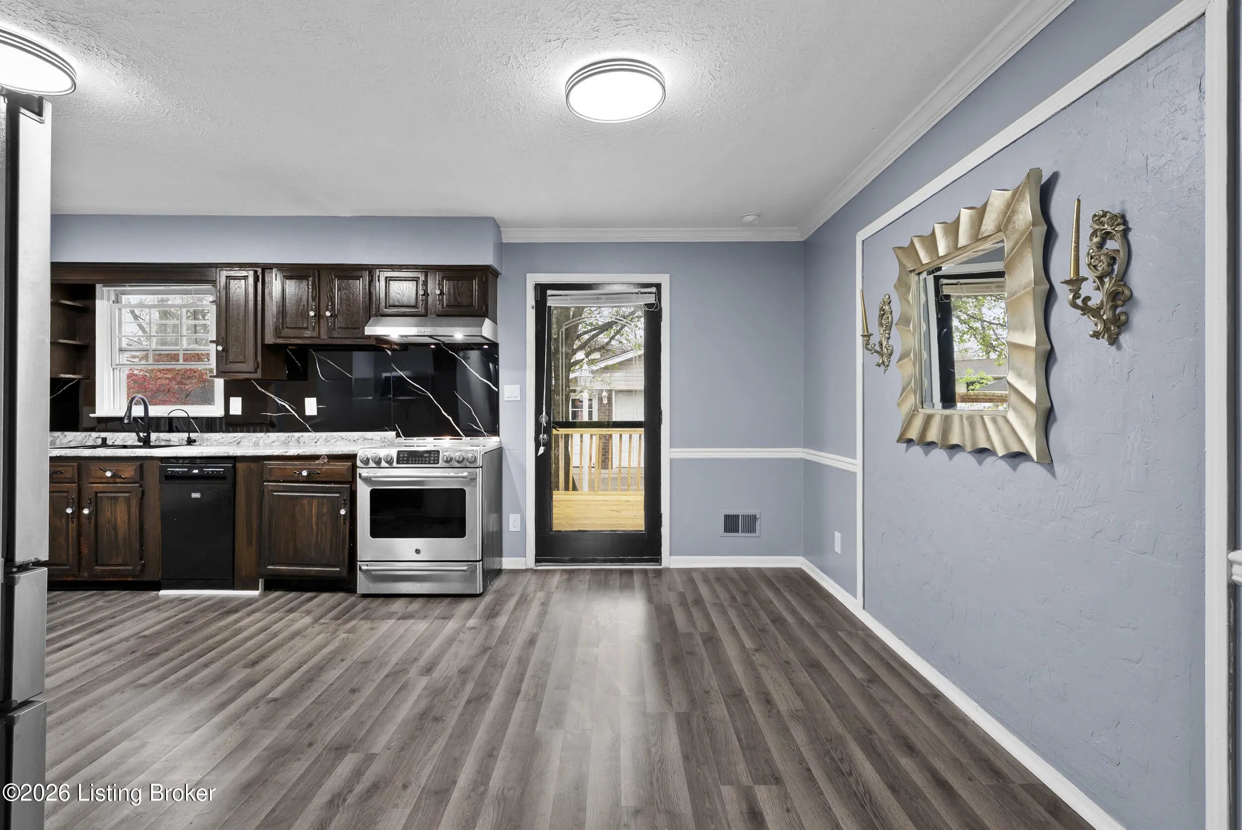 Beautifully updated 3-bedroom, 1.5-bath tri-level home in the desirable Chenoweth Hills subdivision, offering over 1,600 square feet of inviting living space. This move-in ready home features new flooring and fresh paint throughout, creating a clean and modern feel. The main level showcases a bright living room with a large picture window that fills the space with natural light. The spacious eat-in kitchen offers rich cabinetry, ample storage, and a comfortable dining. The lower level has an expansive family room with a stone fireplace and direct walkout access to the backyard. A versatile bonus area provides the perfect space for a home office, playroom, or additional lounge, along with a convenient half bath. Upstairs, you'll find three generously sized bedrooms and a well-appointed full bath complete with a double-sink vanity, soaking tub, and separate walk-in shower. Outdoor living shines with a brand-new double-tier deck, patio area, and a large backyard. The detached oversized two-car garage adds extra storage and convenience. HVAC replaced in 2025 for peace of mind. Ideally located in a quiet Jeffersontown neighborhood close to shopping, dining, and everyday amenities. Call today!