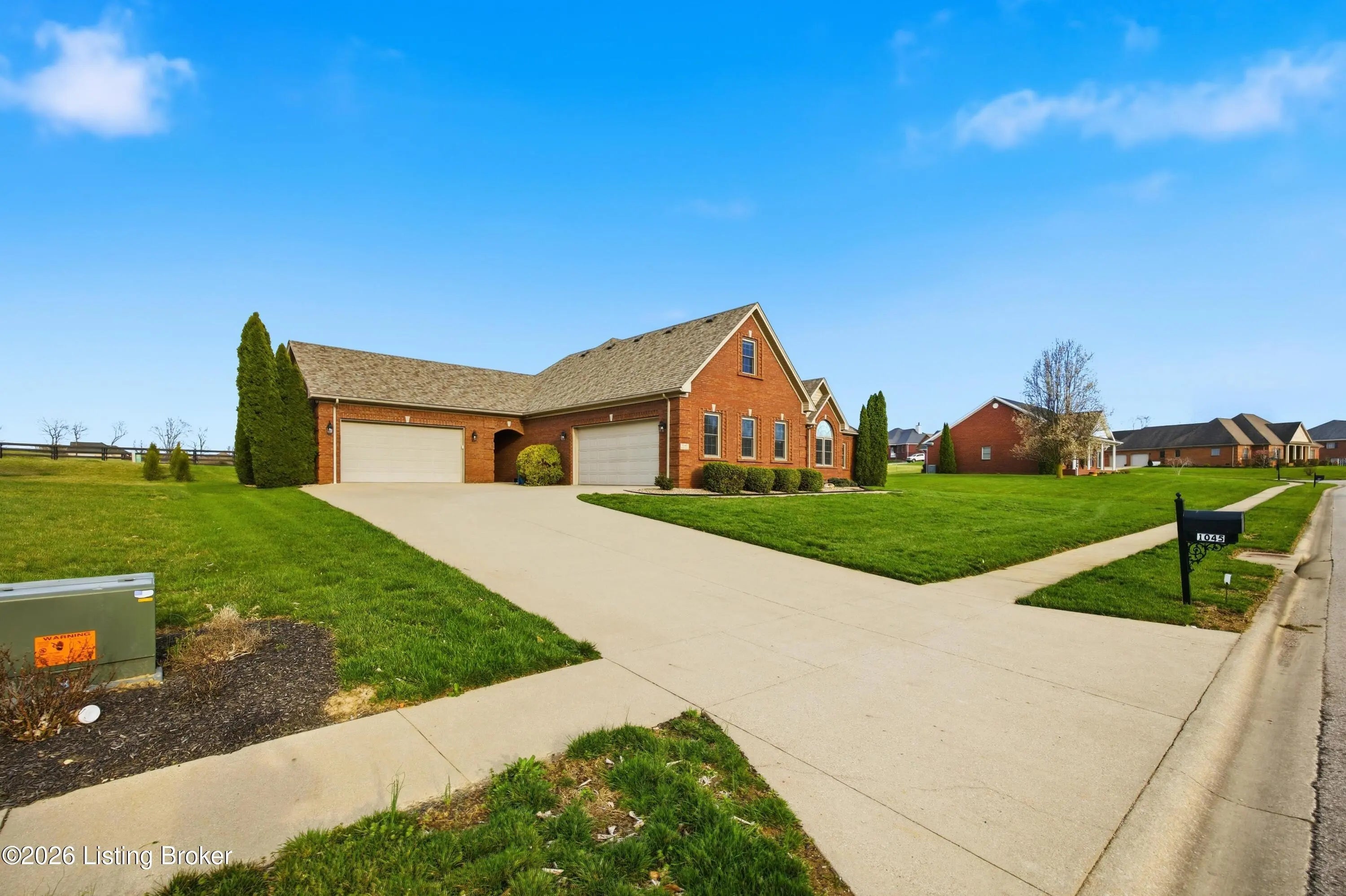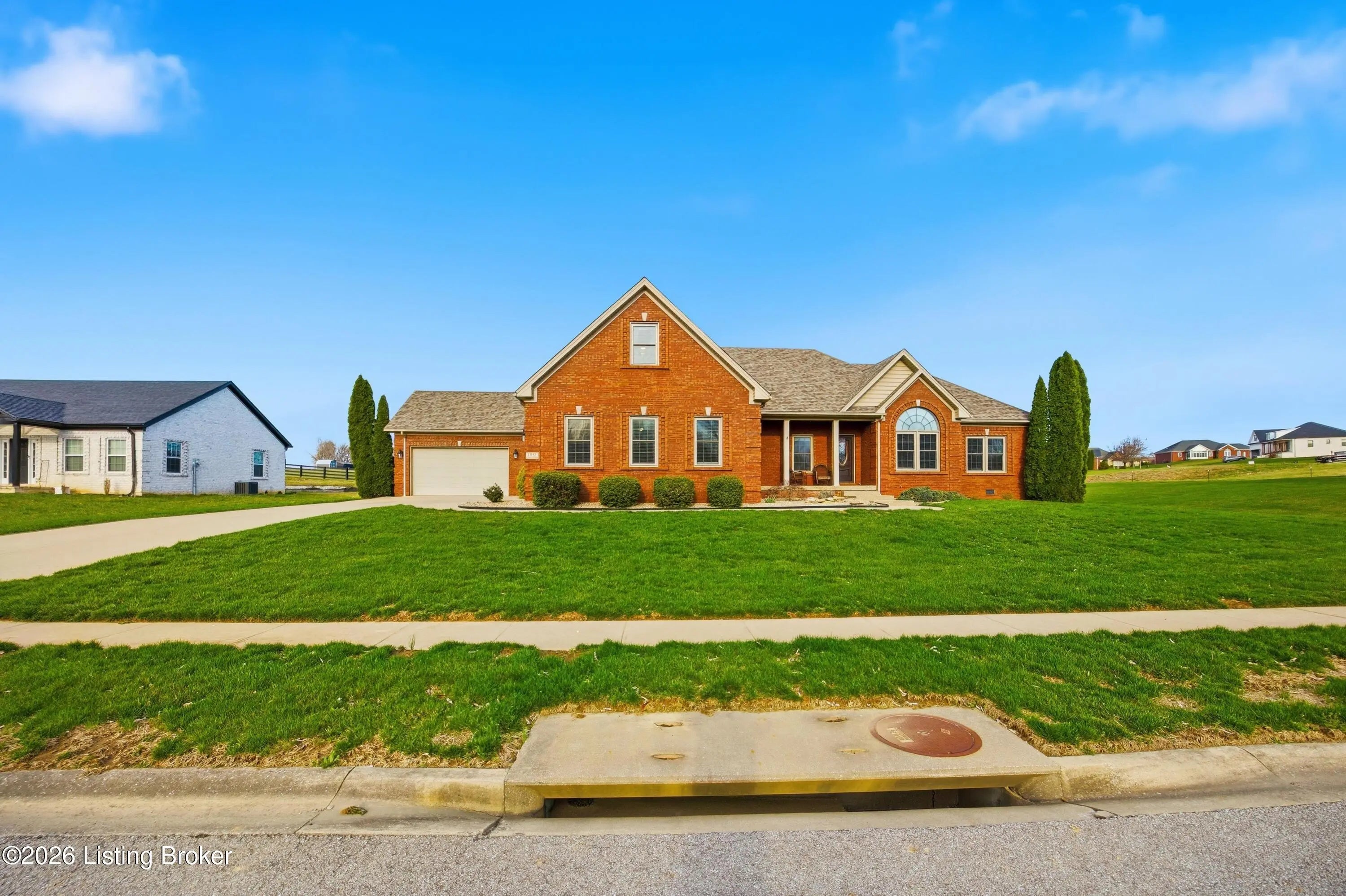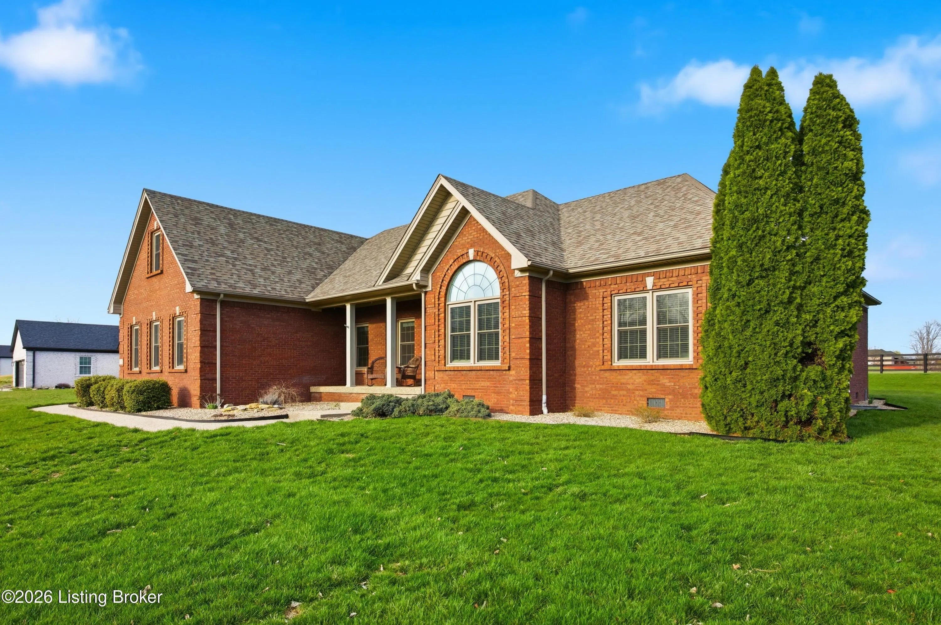 Welcome to 1045 Scenic Garden, a beautifully maintained all-brick ranch located in The Gardens and perfectly positioned along the golf course. This spacious home offers approximately 2,800 square feet of living space with four bedrooms, two full baths, and a thoughtfully designed layout ideal for both everyday living and entertaining. Inside, you'll find hardwood floors, neutral finishes, and a bright, inviting living area that flows easily into the kitchen and dining spaces. The spacious, private primary suite features a walk-in closet and a well-appointed bath with separate shower and tub. A large bonus room over the garage provides flexible space for a fourth bedroom or recreation area. Enjoy peaceful mornings or relaxing evenings on the covered porch or back patio. Additional highlights include generous storage and multiple garage spaces for vehicles, hobbies, or workshop needs. Conveniently located just minutes from Highway 127 with easy access to Lexington, Frankfort, and Louisville. This home offers the perfect blend of space, comfort, and golf course living in one of Lawrenceburg's most desirable neighborhoods.