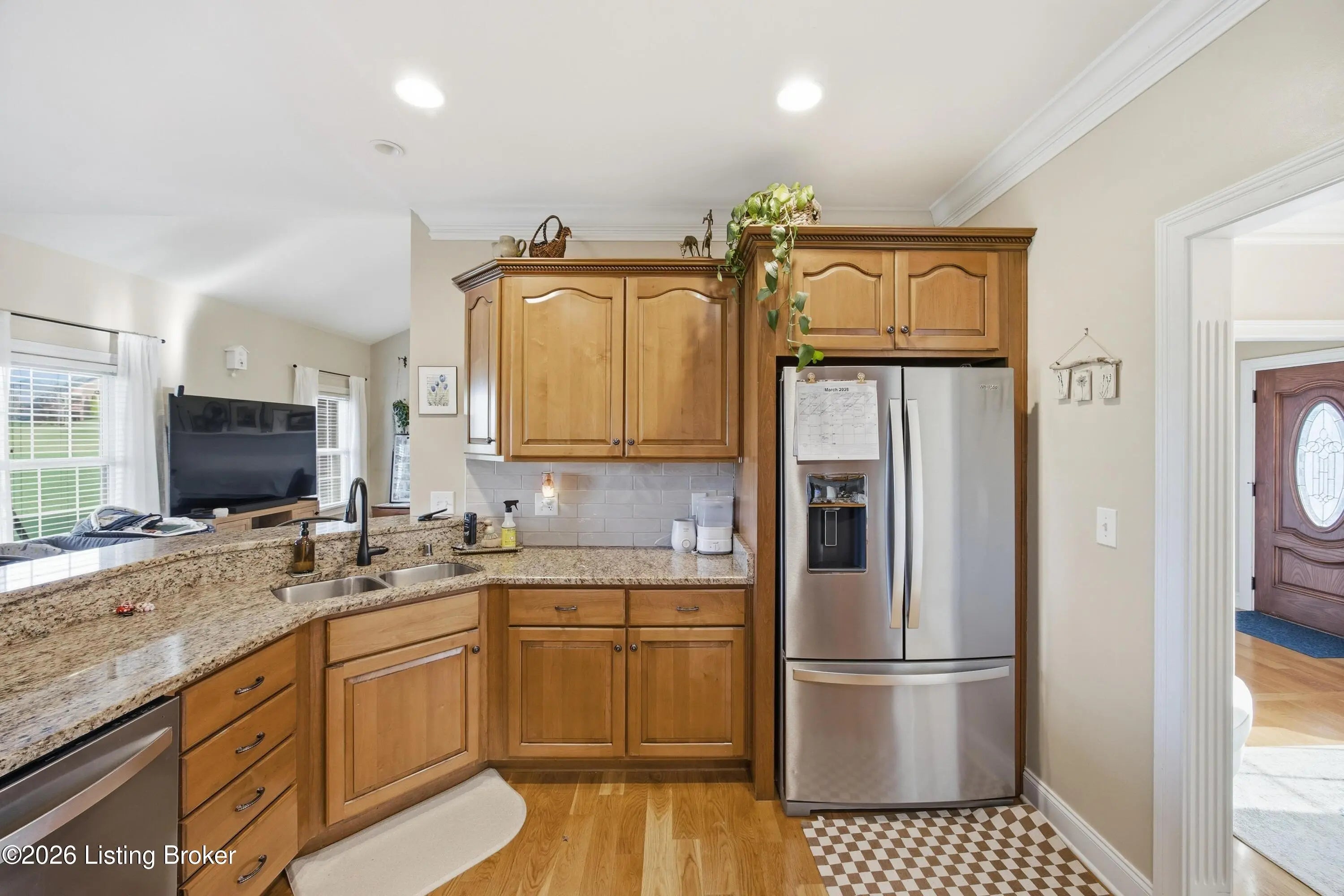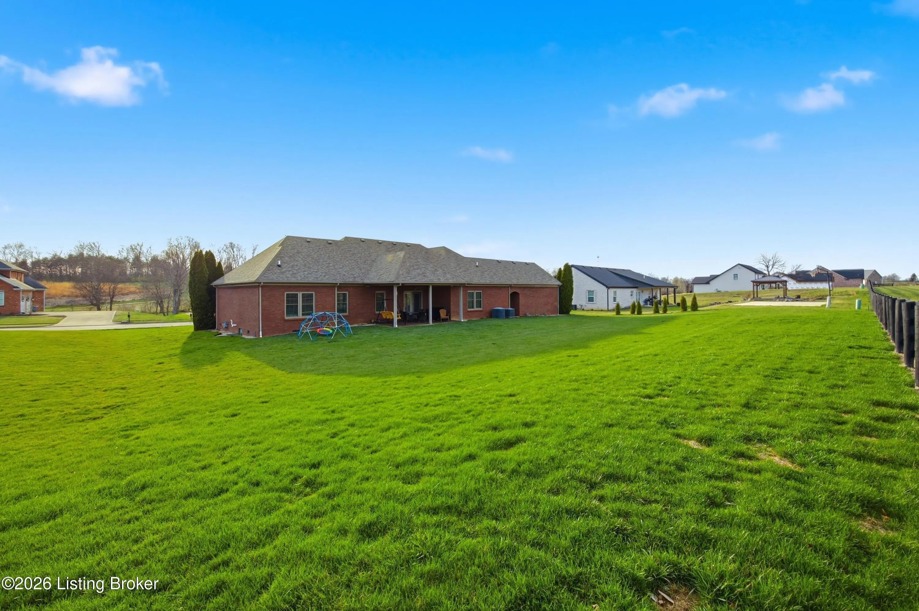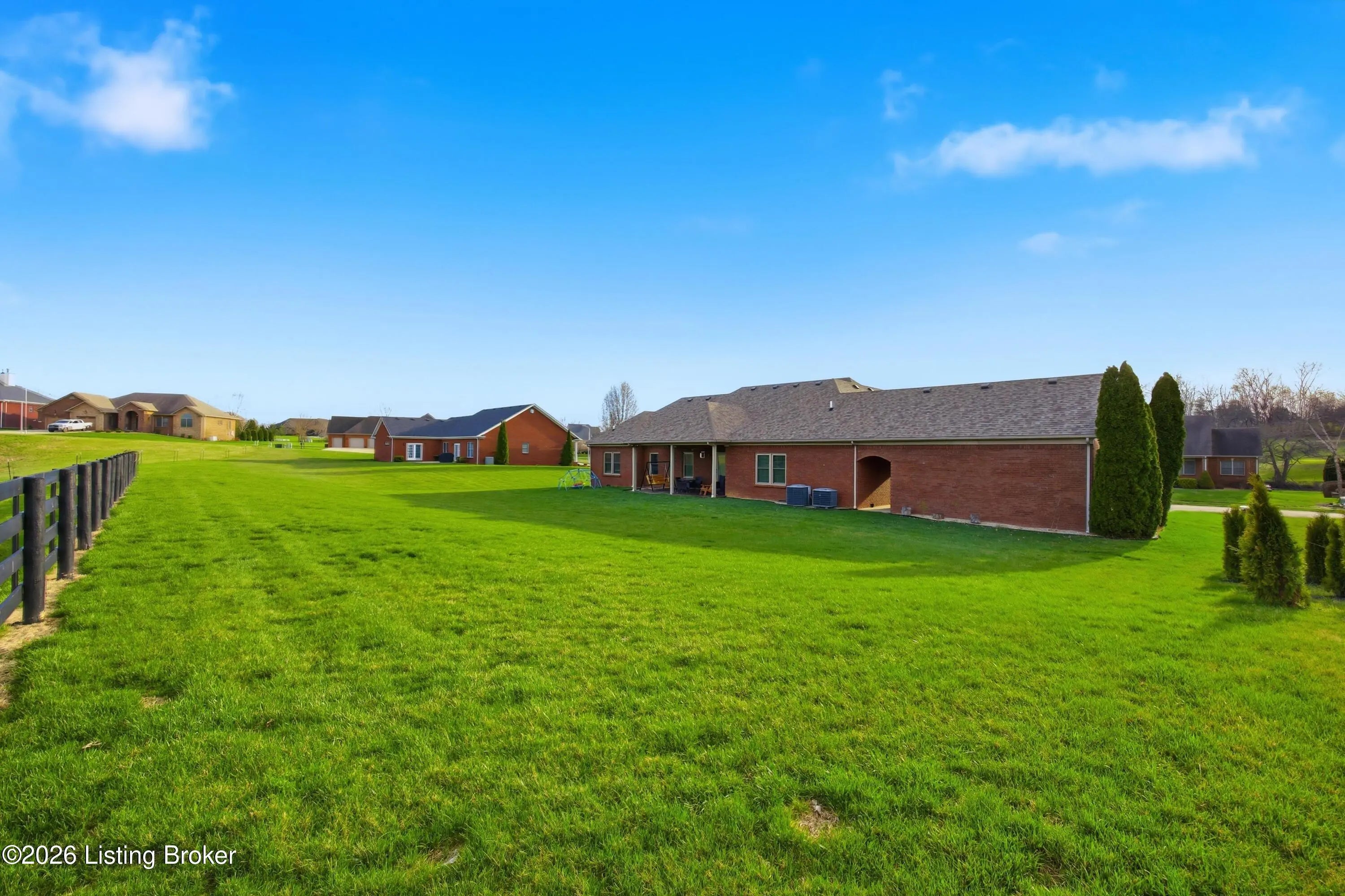 Welcome to 1045 Scenic Garden, a beautifully maintained all-brick ranch located in The Gardens and perfectly positioned along the golf course. This spacious home offers approximately 2,800 square feet of living space with four bedrooms, two full baths, and a thoughtfully designed layout ideal for both everyday living and entertaining. Inside, you'll find hardwood floors, neutral finishes, and a bright, inviting living area that flows easily into the kitchen and dining spaces. The spacious, private primary suite features a walk-in closet and a well-appointed bath with separate shower and tub. A large bonus room over the garage provides flexible space for a fourth bedroom or recreation area. Enjoy peaceful mornings or relaxing evenings on the covered porch or back patio. Additional highlights include generous storage and multiple garage spaces for vehicles, hobbies, or workshop needs. Conveniently located just minutes from Highway 127 with easy access to Lexington, Frankfort, and Louisville. This home offers the perfect blend of space, comfort, and golf course living in one of Lawrenceburg's most desirable neighborhoods.