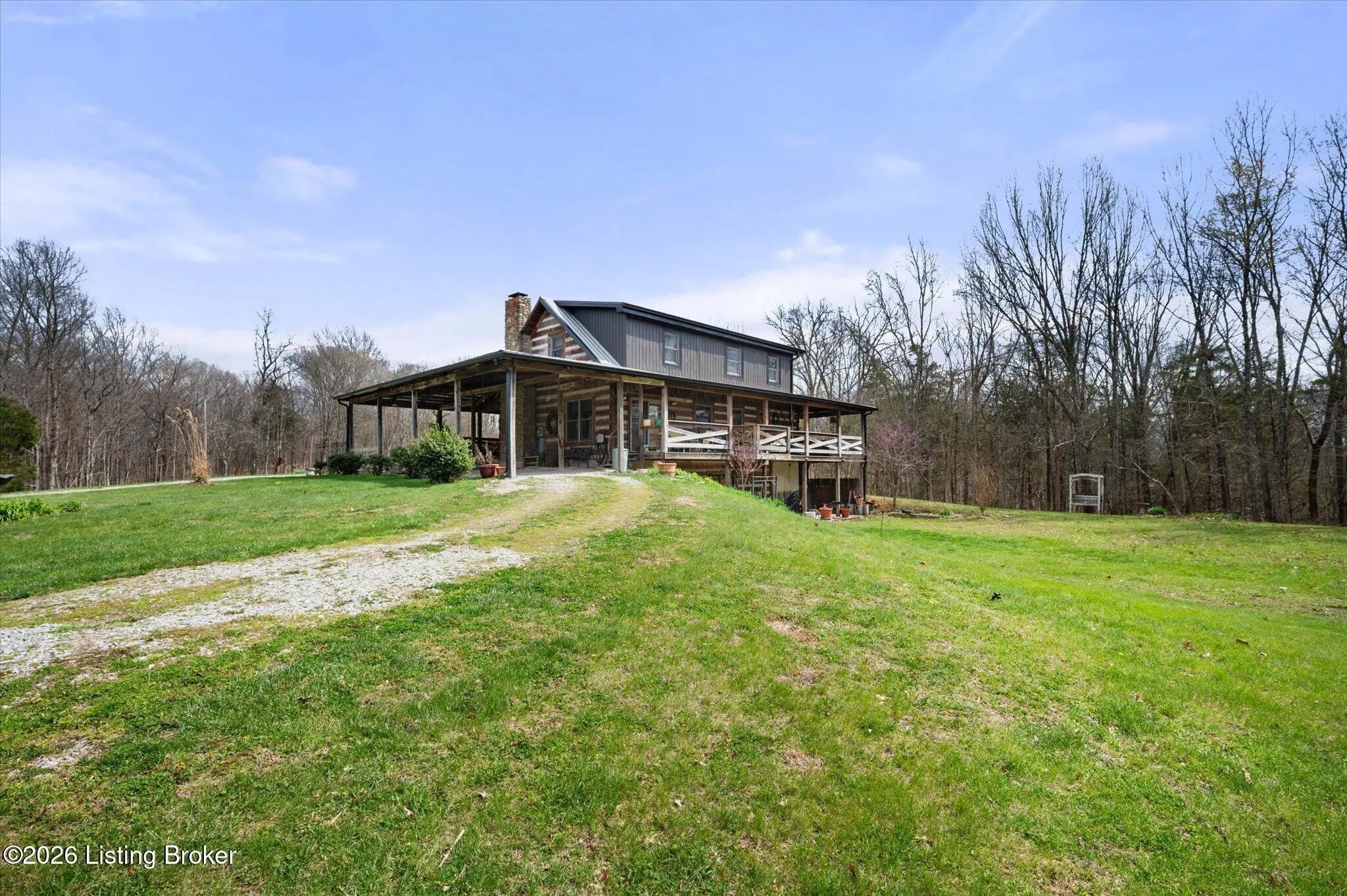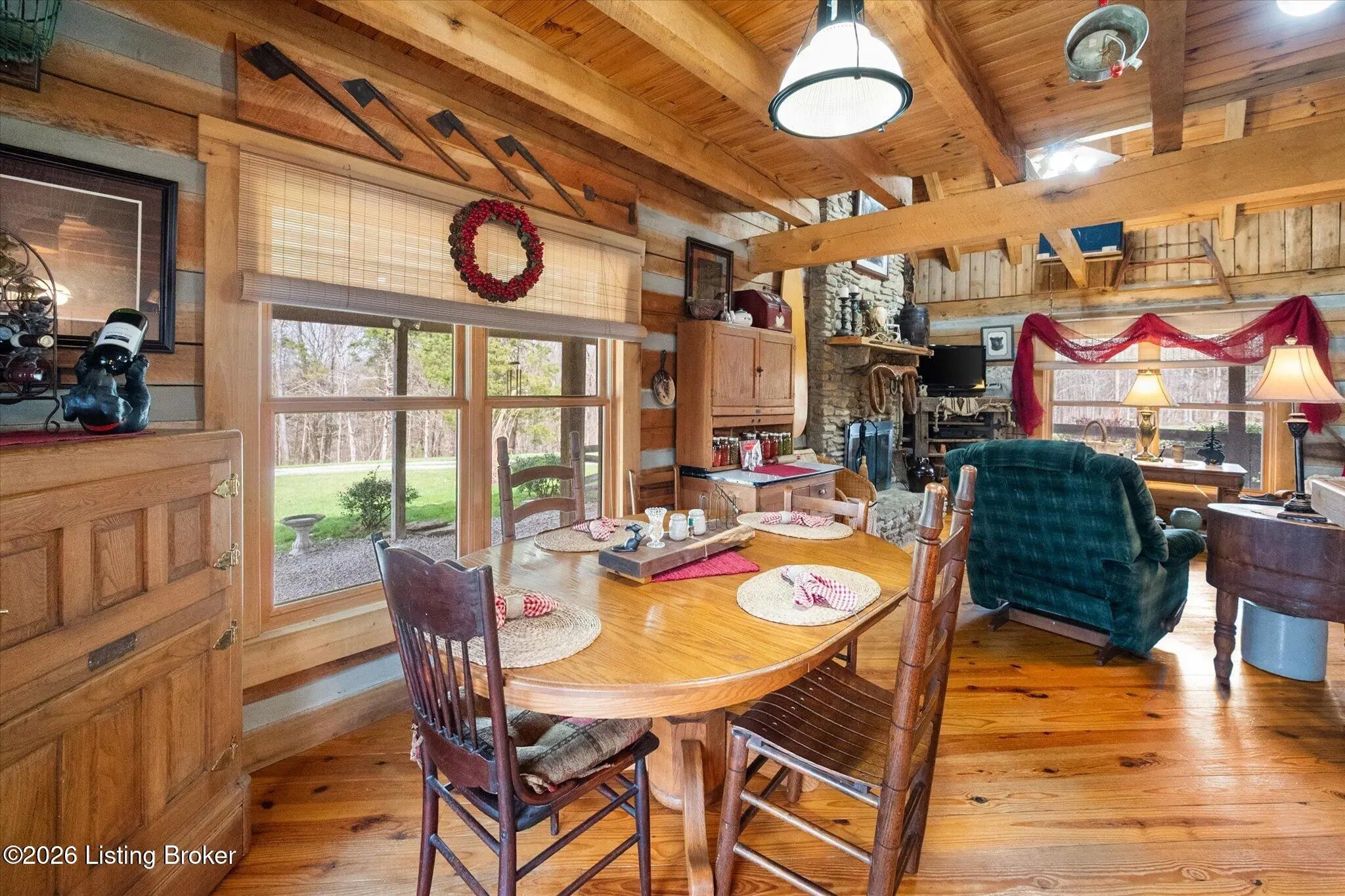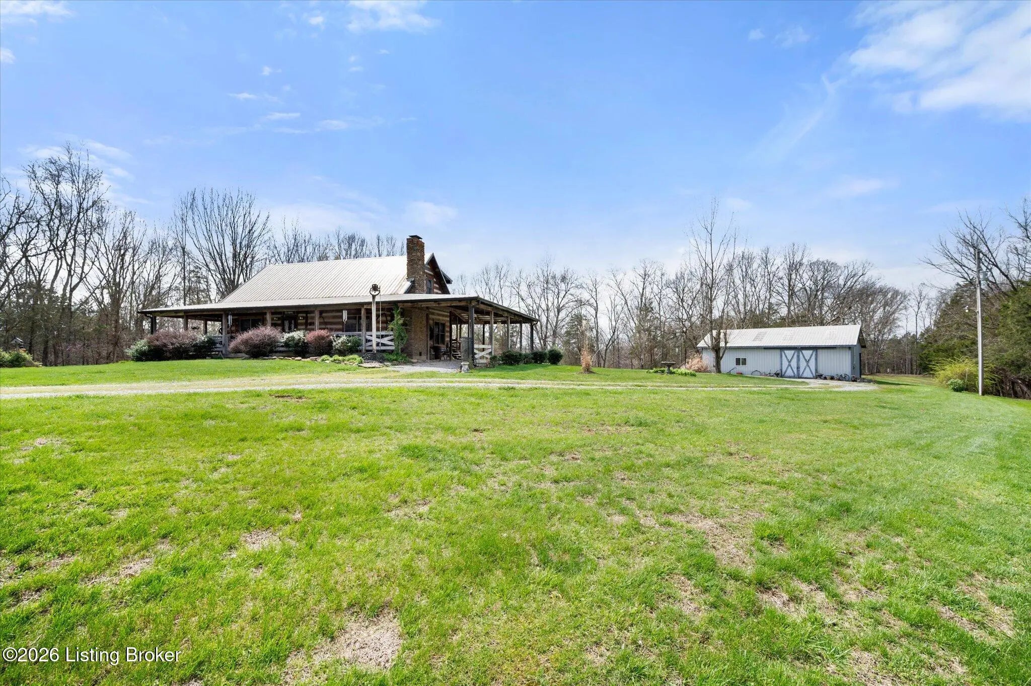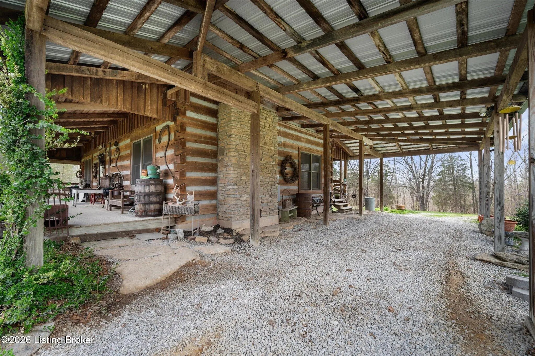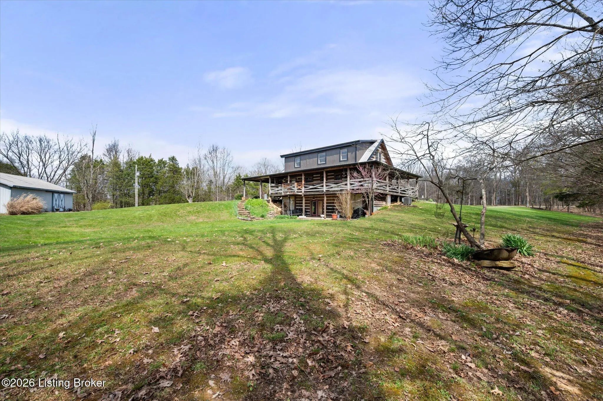 Are you looking for a log home with authentic rustic charm combined with a 22-acre wooded sanctuary? Then look no further!! Rough-cut Popular Log Home offers over 1600+ sqft of living space, 2 bedrooms, 2.5 bathrooms, and a loft area that could be easily converted to a 3rd bedroom. Walkout unfinished basement, attached 2-car carport. Private lakefrontage, 40X45 drive-through shop building with a half bath. This property is a nature lover's paradise with plenty of mature trees, wildlife, and fishing. Anchor your boat at the rear of your property that has 750' of frontage on Trailwood Lake (a 75-acre lake), not accessible to the general public, just the owners that border the lake. Extra Features: all pine hardwood flooring throughout, exposed log beams, metal roof, city water, all electric, heat pump with propane backup system, Central Air, covered wrap-around porch, lower-level patio area, 1/2 round gutters, newly wrapped gabbles with new vinyl siding, shared maintenance on the shared easement road driveway leading to your home. Shared with the 9 other lot owners. The first floor has an open floor plan with a living room with a vaulted ceiling, exposed beams, and a wood-burning creek rock fireplace, a kitchen with a dining eating area, and a large island with seating for 4. Appliances include a side-by-side refrigerator, range, and a new KitchenAid dishwasher. Appliances will remain. Half bath, main-level primary bedroom with a walk-in closet and a primary bath. On the 2nd floor, you will find an open loft area currently doubling as a guest room and office. The loft area could easily be converted to a 3rd bedroom if needed. Full hallway bath with a clawfoot tub, a nice-size 2nd bedroom with exposed beams, a vaulted ceiling, and double closets. Walk-out lower level (basement). Is ready for you to add your own personal finishing touches. Laundry room, rough-in full bath, storage area, and a wood-burning stove. Don't miss out on having your own piece of nature's paradise combined with comfortable living.