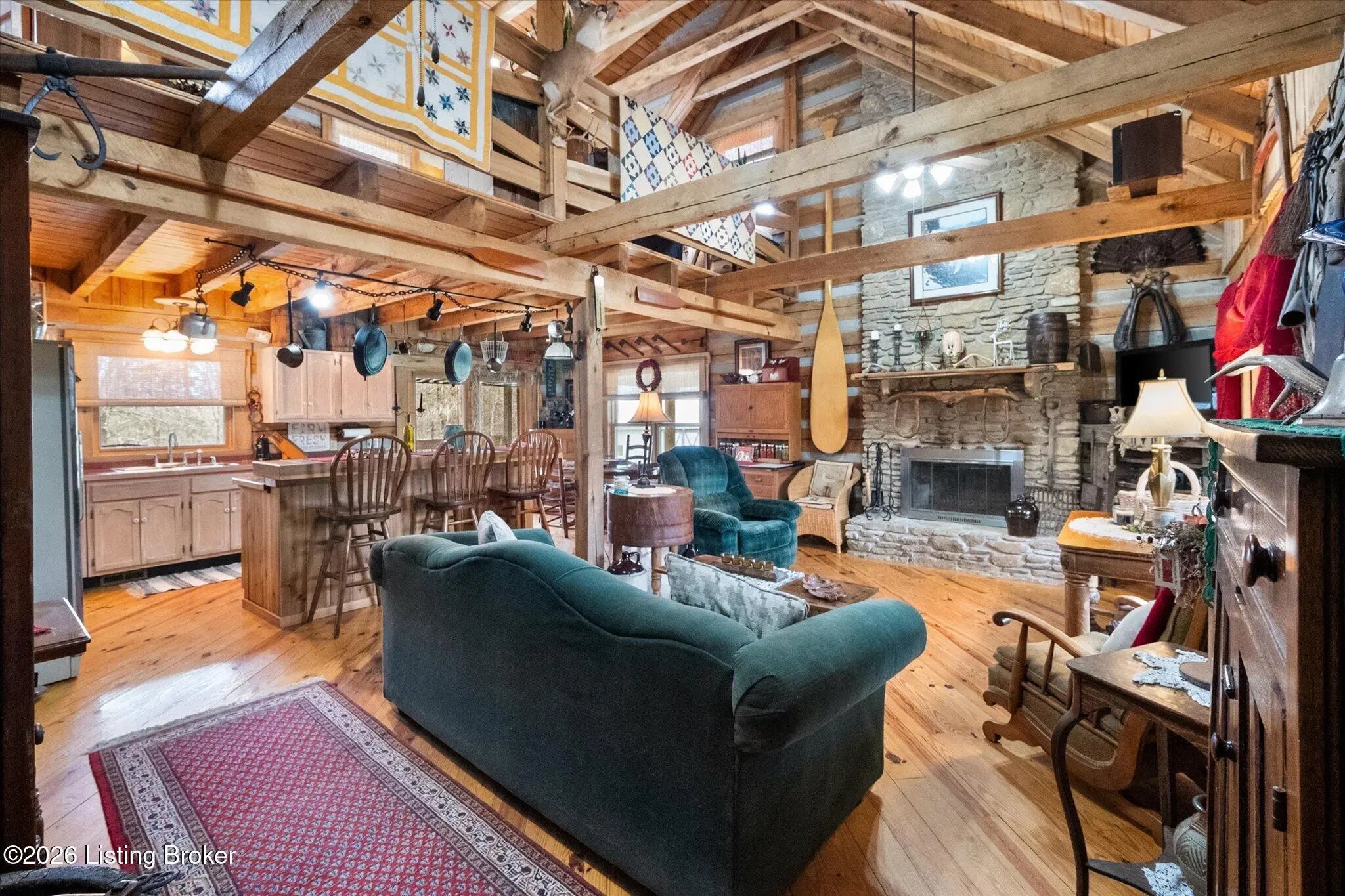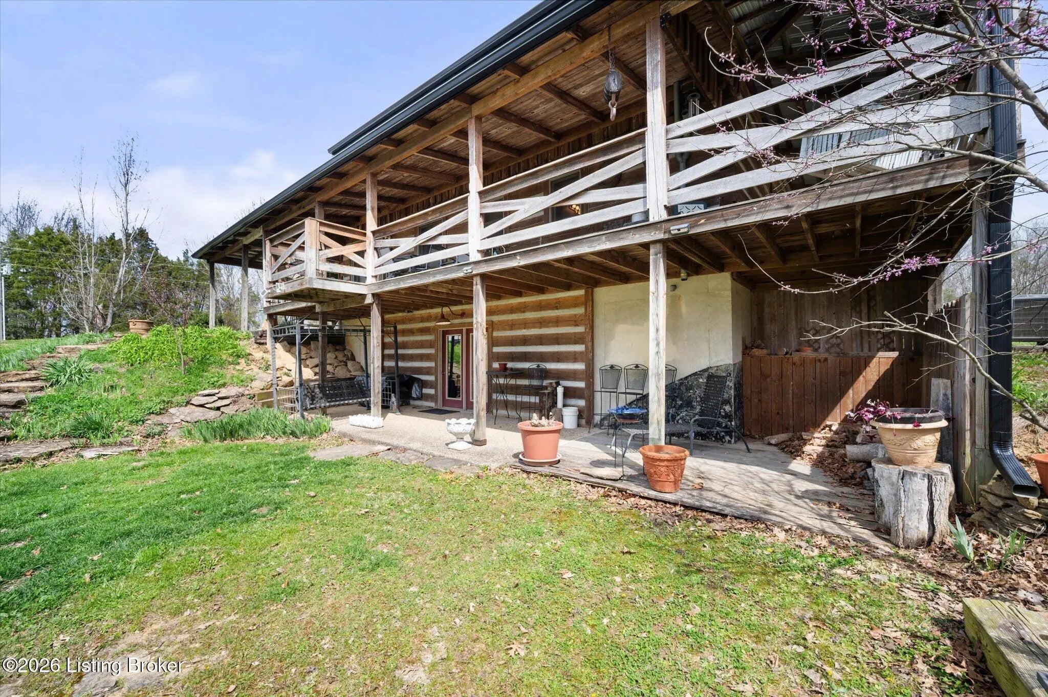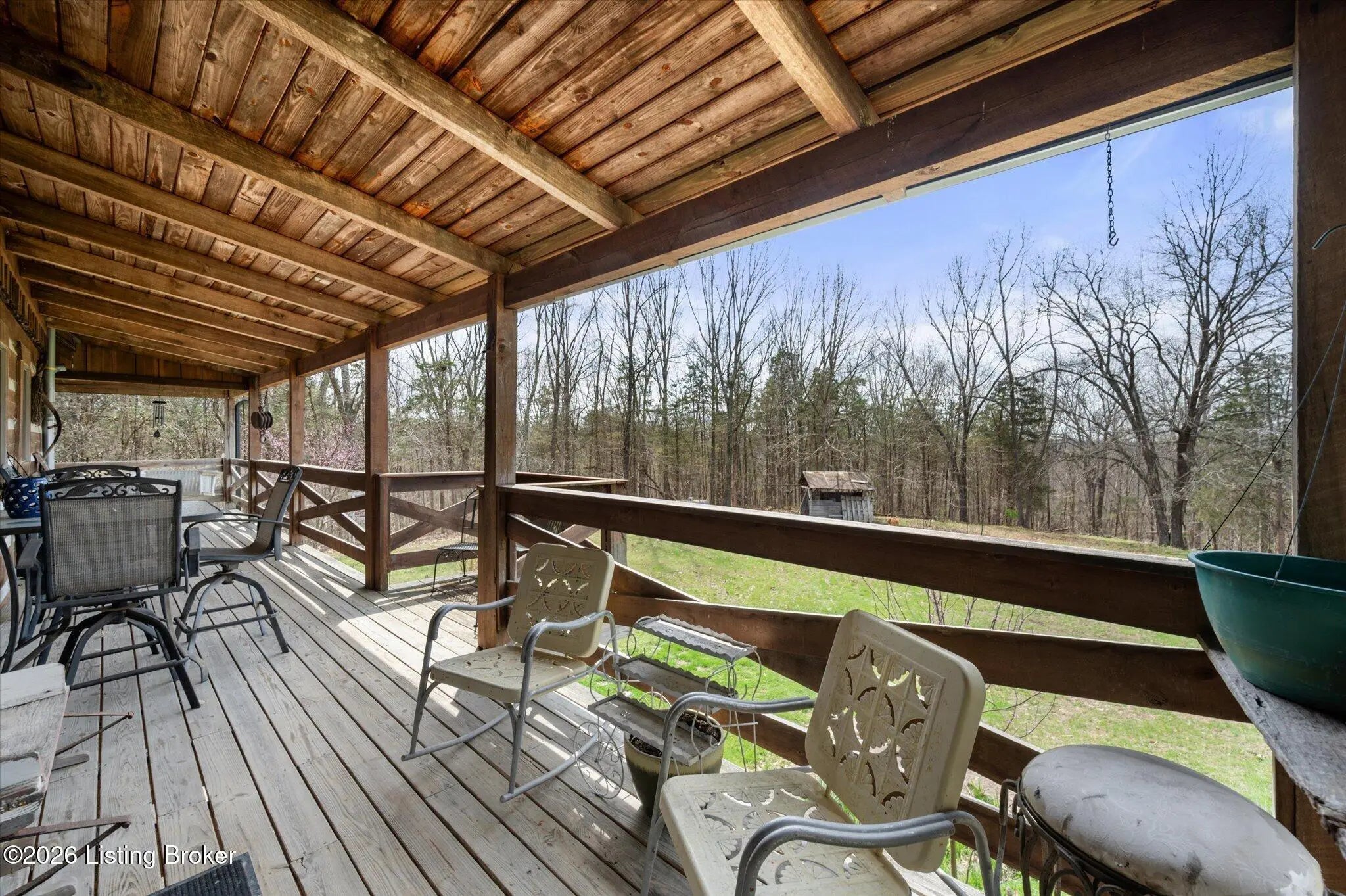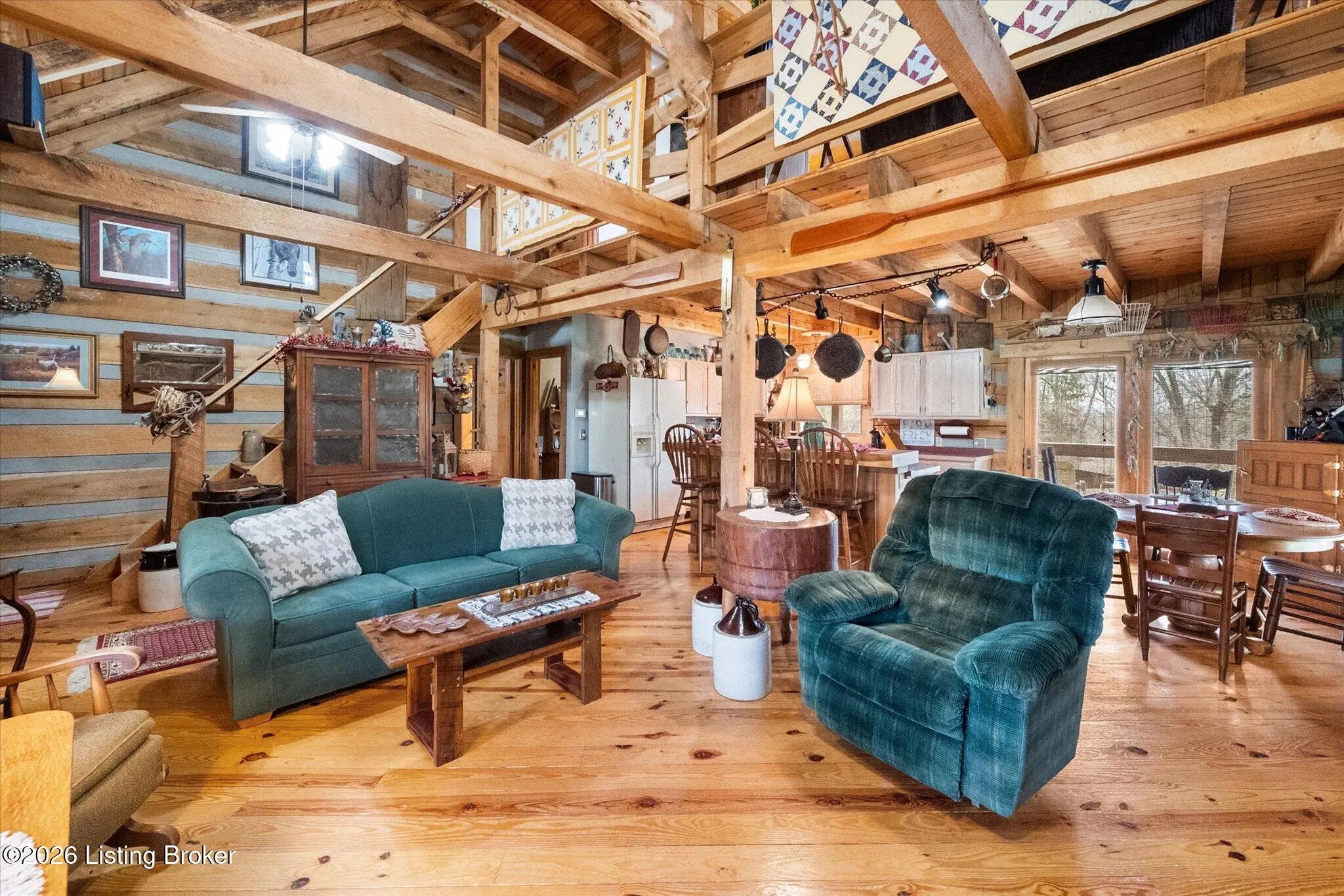 Are you looking for a log home with authentic rustic charm combined with a 22-acre wooded sanctuary? Then look no further!! Rough-cut Popular Log Home offers over 1600+ sqft of living space, 2 bedrooms, 2.5 bathrooms, and a loft area that could be easily converted to a 3rd bedroom. Walkout unfinished basement, attached 2-car carport. Private lakefrontage, 40X45 drive-through shop building with a half bath. This property is a nature lover's paradise with plenty of mature trees, wildlife, and fishing. Anchor your boat at the rear of your property that has 750' of frontage on Trailwood Lake (a 75-acre lake), not accessible to the general public, just the owners that border the lake. Extra Features: all pine hardwood flooring throughout, exposed log beams, metal roof, city water, all electric, heat pump with propane backup system, Central Air, covered wrap-around porch, lower-level patio area, 1/2 round gutters, newly wrapped gabbles with new vinyl siding, shared maintenance on the shared easement road driveway leading to your home. Shared with the 9 other lot owners. The first floor has an open floor plan with a living room with a vaulted ceiling, exposed beams, and a wood-burning creek rock fireplace, a kitchen with a dining eating area, and a large island with seating for 4. Appliances include a side-by-side refrigerator, range, and a new KitchenAid dishwasher. Appliances will remain. Half bath, main-level primary bedroom with a walk-in closet and a primary bath. On the 2nd floor, you will find an open loft area currently doubling as a guest room and office. The loft area could easily be converted to a 3rd bedroom if needed. Full hallway bath with a clawfoot tub, a nice-size 2nd bedroom with exposed beams, a vaulted ceiling, and double closets. Walk-out lower level (basement). Is ready for you to add your own personal finishing touches. Laundry room, rough-in full bath, storage area, and a wood-burning stove. Don't miss out on having your own piece of nature's paradise combined with comfortable living.