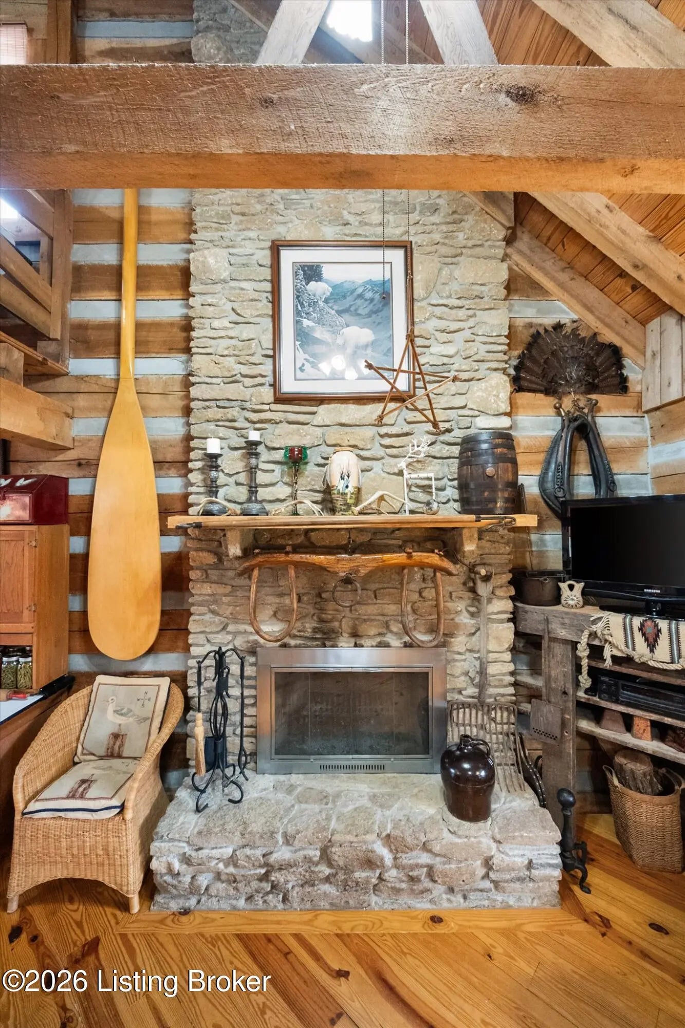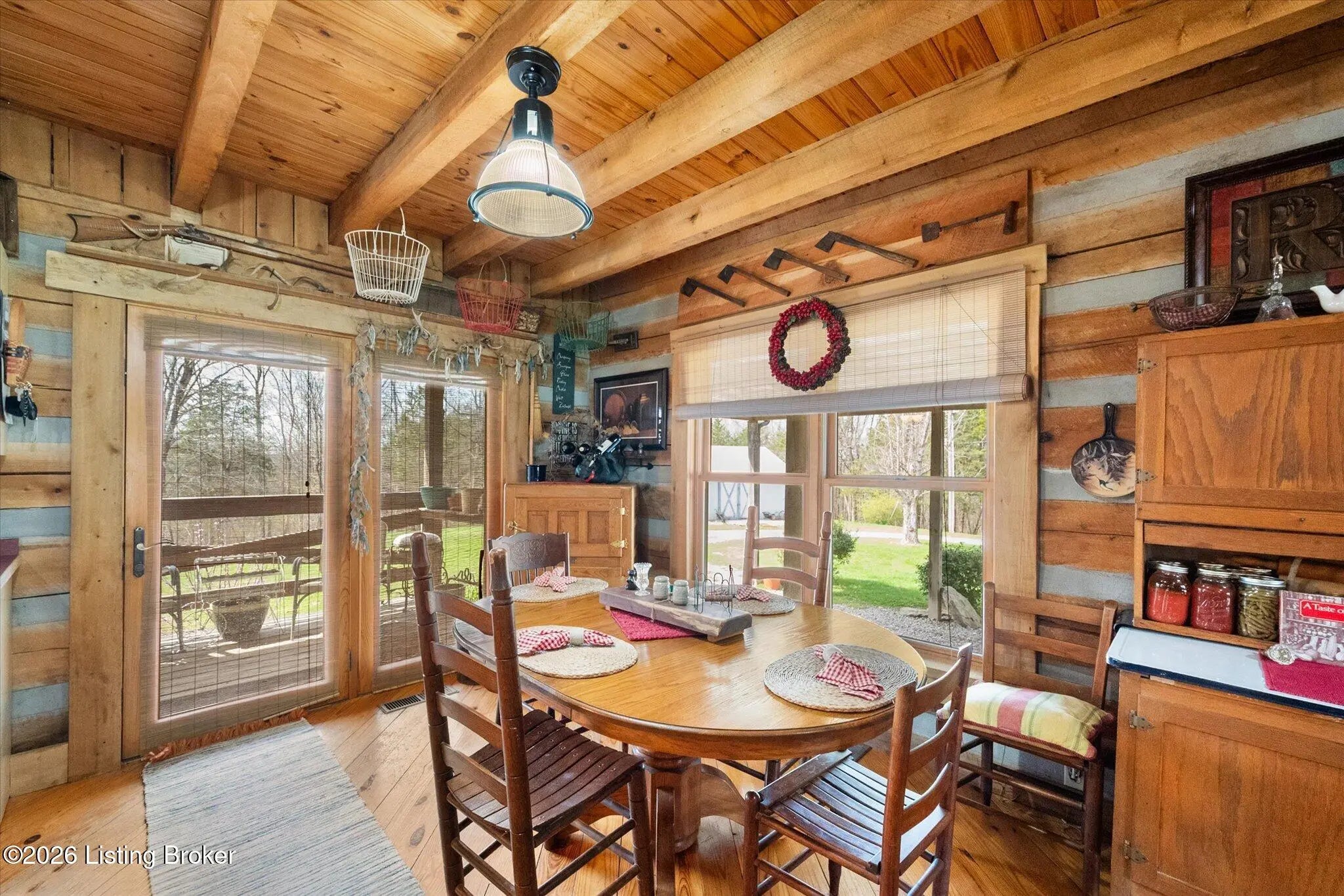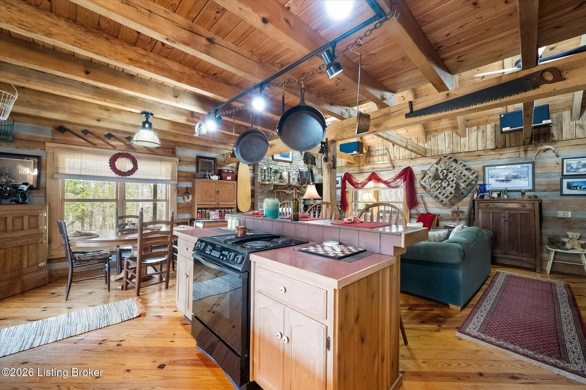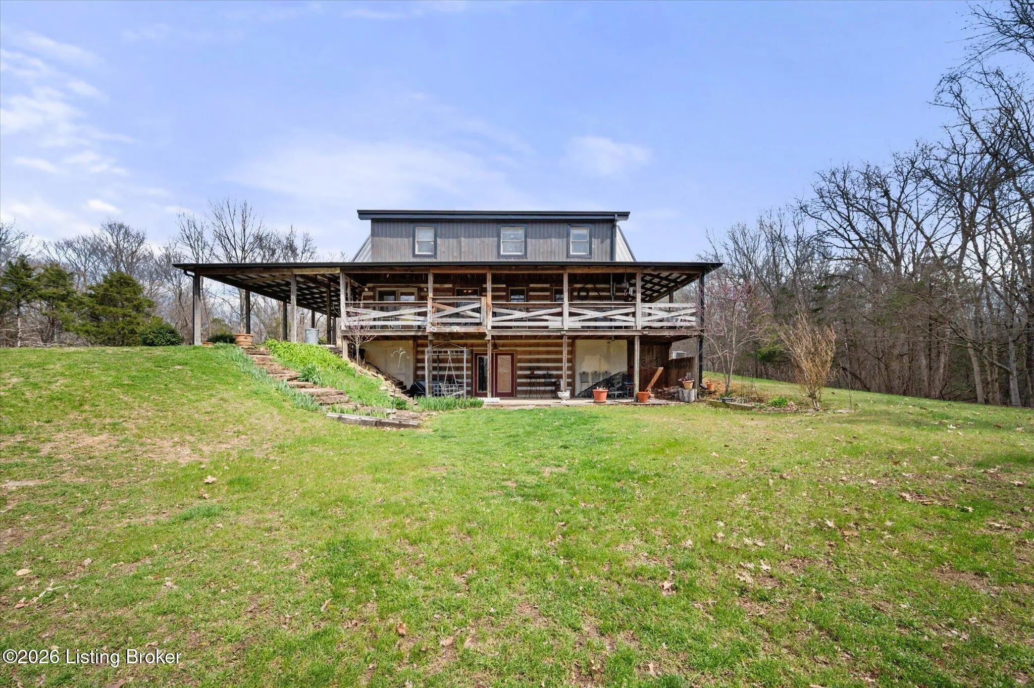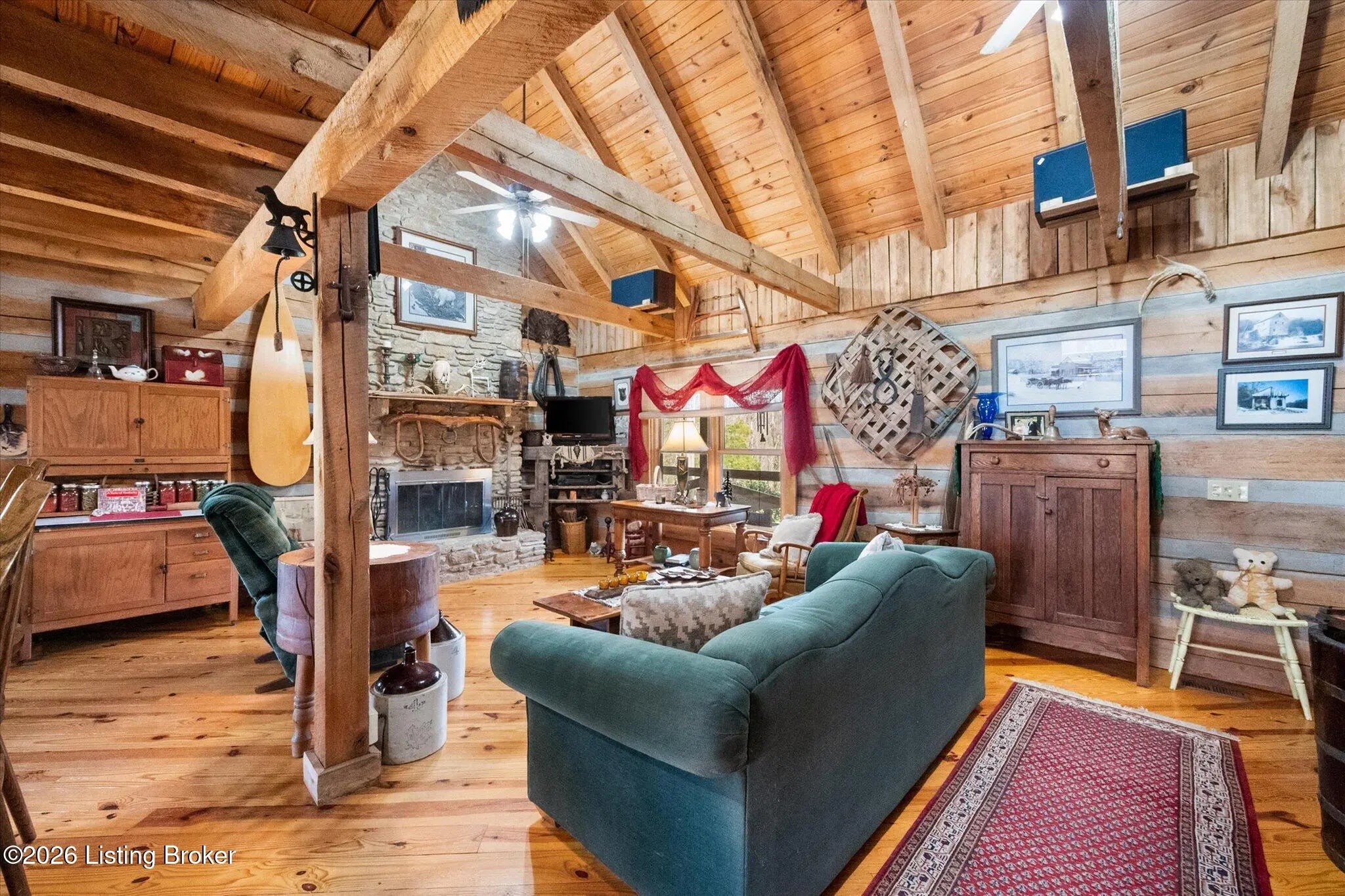 Are you looking for a log home with authentic rustic charm combined with a 22-acre wooded sanctuary? Then look no further!! Rough-cut Popular Log Home offers over 1600+ sqft of living space, 2 bedrooms, 2.5 bathrooms, and a loft area that could be easily converted to a 3rd bedroom. Walkout unfinished basement, attached 2-car carport. Private lakefrontage, 40X45 drive-through shop building with a half bath. This property is a nature lover's paradise with plenty of mature trees, wildlife, and fishing. Anchor your boat at the rear of your property that has 750' of frontage on Trailwood Lake (a 75-acre lake), not accessible to the general public, just the owners that border the lake. Extra Features: all pine hardwood flooring throughout, exposed log beams, metal roof, city water, all electric, heat pump with propane backup system, Central Air, covered wrap-around porch, lower-level patio area, 1/2 round gutters, newly wrapped gabbles with new vinyl siding, shared maintenance on the shared easement road driveway leading to your home. Shared with the 9 other lot owners. The first floor has an open floor plan with a living room with a vaulted ceiling, exposed beams, and a wood-burning creek rock fireplace, a kitchen with a dining eating area, and a large island with seating for 4. Appliances include a side-by-side refrigerator, range, and a new KitchenAid dishwasher. Appliances will remain. Half bath, main-level primary bedroom with a walk-in closet and a primary bath. On the 2nd floor, you will find an open loft area currently doubling as a guest room and office. The loft area could easily be converted to a 3rd bedroom if needed. Full hallway bath with a clawfoot tub, a nice-size 2nd bedroom with exposed beams, a vaulted ceiling, and double closets. Walk-out lower level (basement). Is ready for you to add your own personal finishing touches. Laundry room, rough-in full bath, storage area, and a wood-burning stove. Don't miss out on having your own piece of nature's paradise combined with comfortable living.