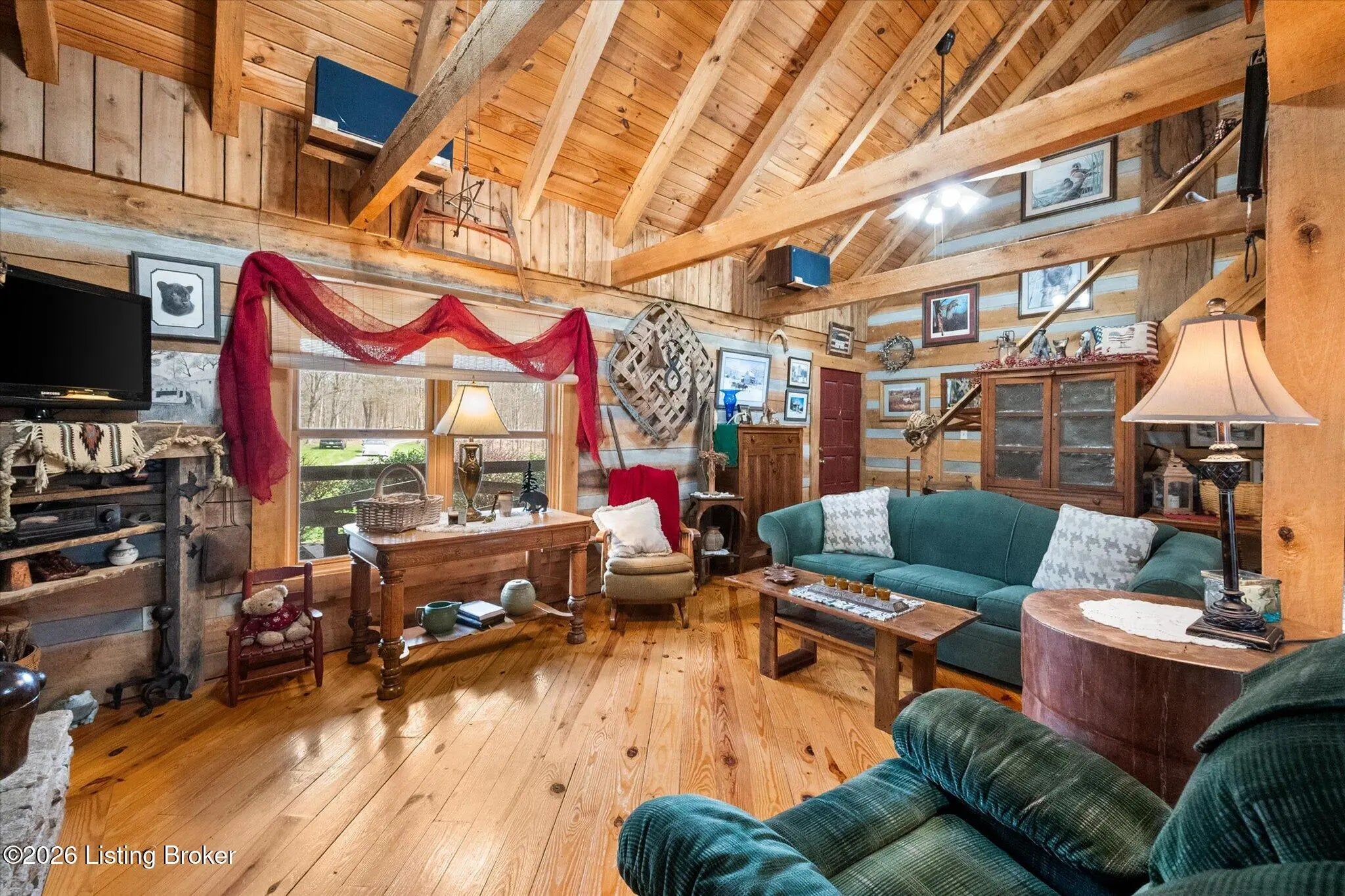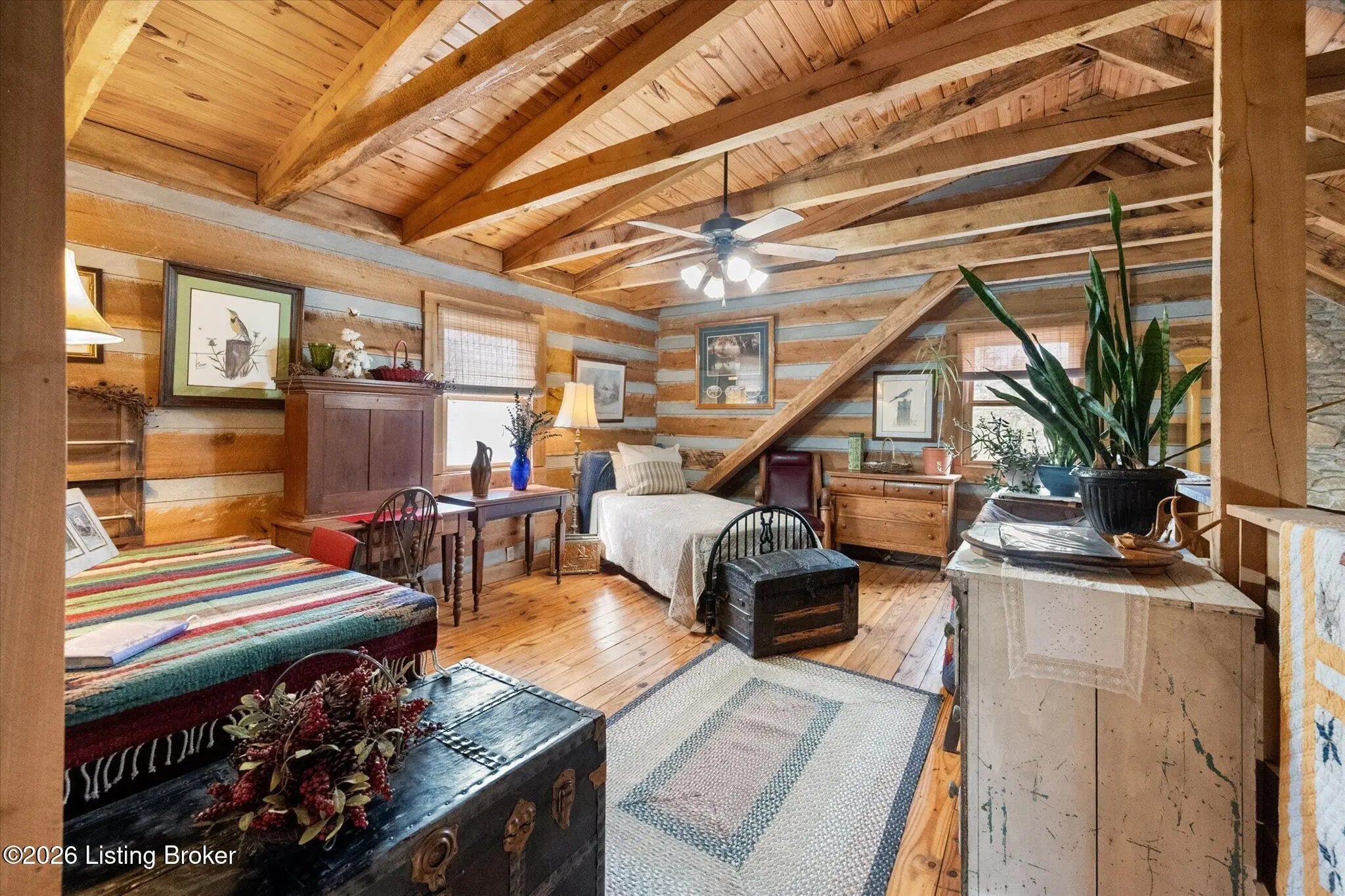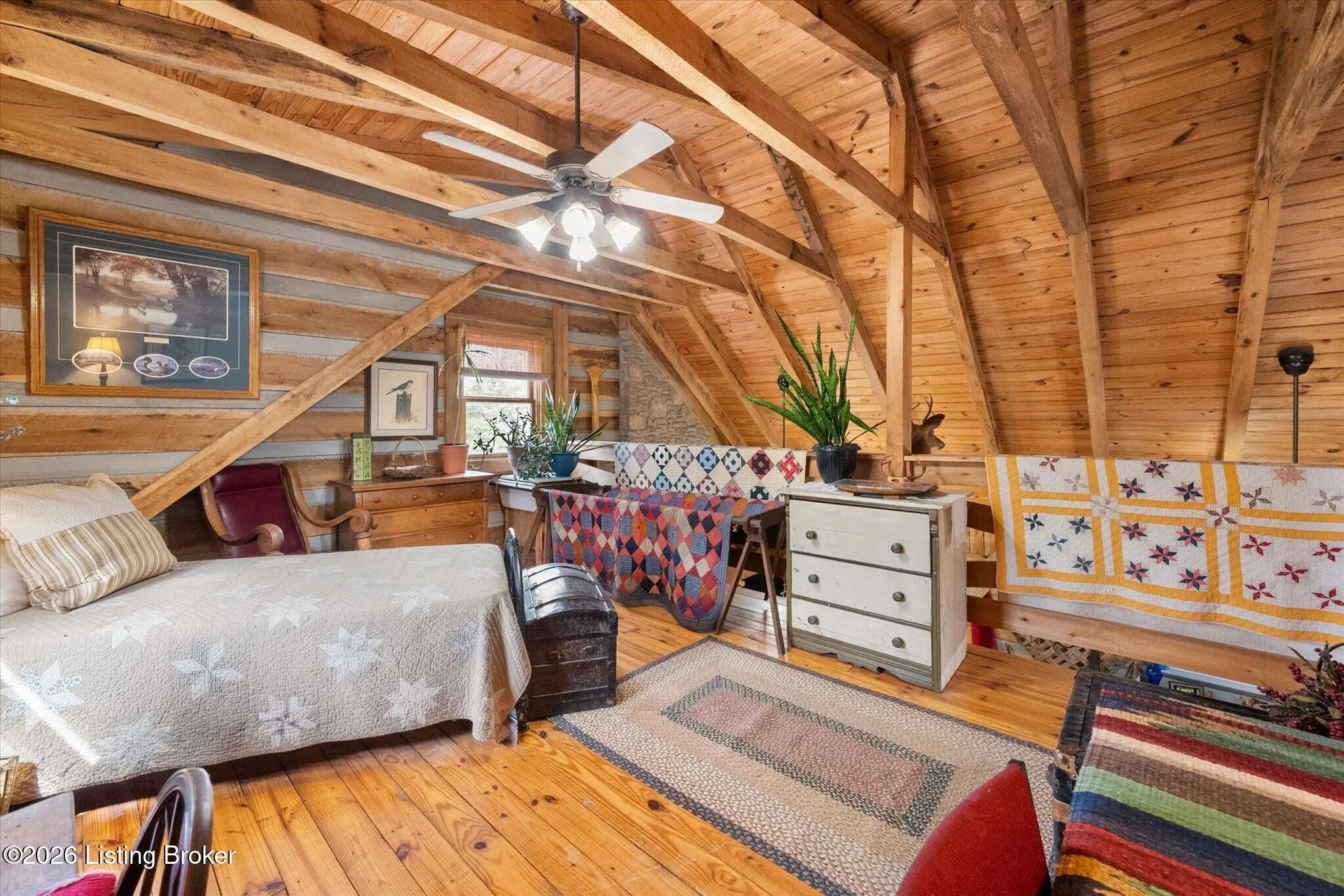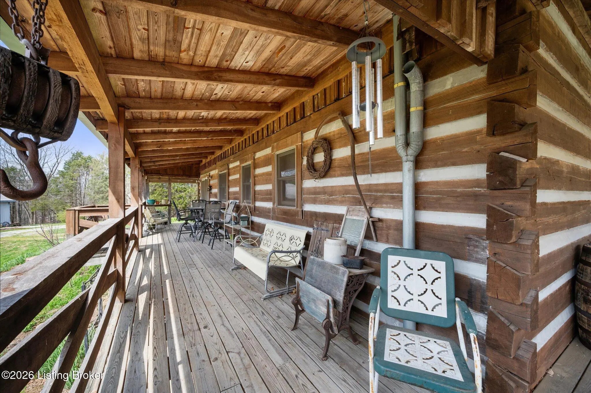 Are you looking for a log home with authentic rustic charm combined with a 22-acre wooded sanctuary? Then look no further!! Rough-cut Popular Log Home offers over 1600+ sqft of living space, 2 bedrooms, 2.5 bathrooms, and a loft area that could be easily converted to a 3rd bedroom. Walkout unfinished basement, attached 2-car carport. Private lakefrontage, 40X45 drive-through shop building with a half bath. This property is a nature lover's paradise with plenty of mature trees, wildlife, and fishing. Anchor your boat at the rear of your property that has 750' of frontage on Trailwood Lake (a 75-acre lake), not accessible to the general public, just the owners that border the lake. Extra Features: all pine hardwood flooring throughout, exposed log beams, metal roof, city water, all electric, heat pump with propane backup system, Central Air, covered wrap-around porch, lower-level patio area, 1/2 round gutters, newly wrapped gabbles with new vinyl siding, shared maintenance on the shared easement road driveway leading to your home. Shared with the 9 other lot owners. The first floor has an open floor plan with a living room with a vaulted ceiling, exposed beams, and a wood-burning creek rock fireplace, a kitchen with a dining eating area, and a large island with seating for 4. Appliances include a side-by-side refrigerator, range, and a new KitchenAid dishwasher. Appliances will remain. Half bath, main-level primary bedroom with a walk-in closet and a primary bath. On the 2nd floor, you will find an open loft area currently doubling as a guest room and office. The loft area could easily be converted to a 3rd bedroom if needed. Full hallway bath with a clawfoot tub, a nice-size 2nd bedroom with exposed beams, a vaulted ceiling, and double closets. Walk-out lower level (basement). Is ready for you to add your own personal finishing touches. Laundry room, rough-in full bath, storage area, and a wood-burning stove. Don't miss out on having your own piece of nature's paradise combined with comfortable living.