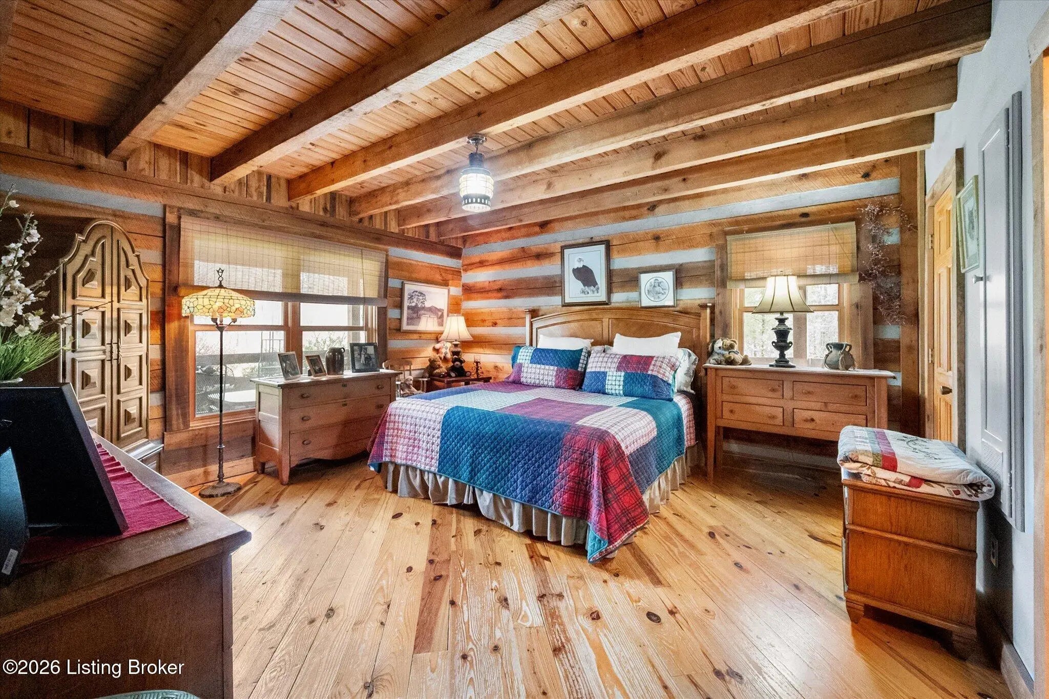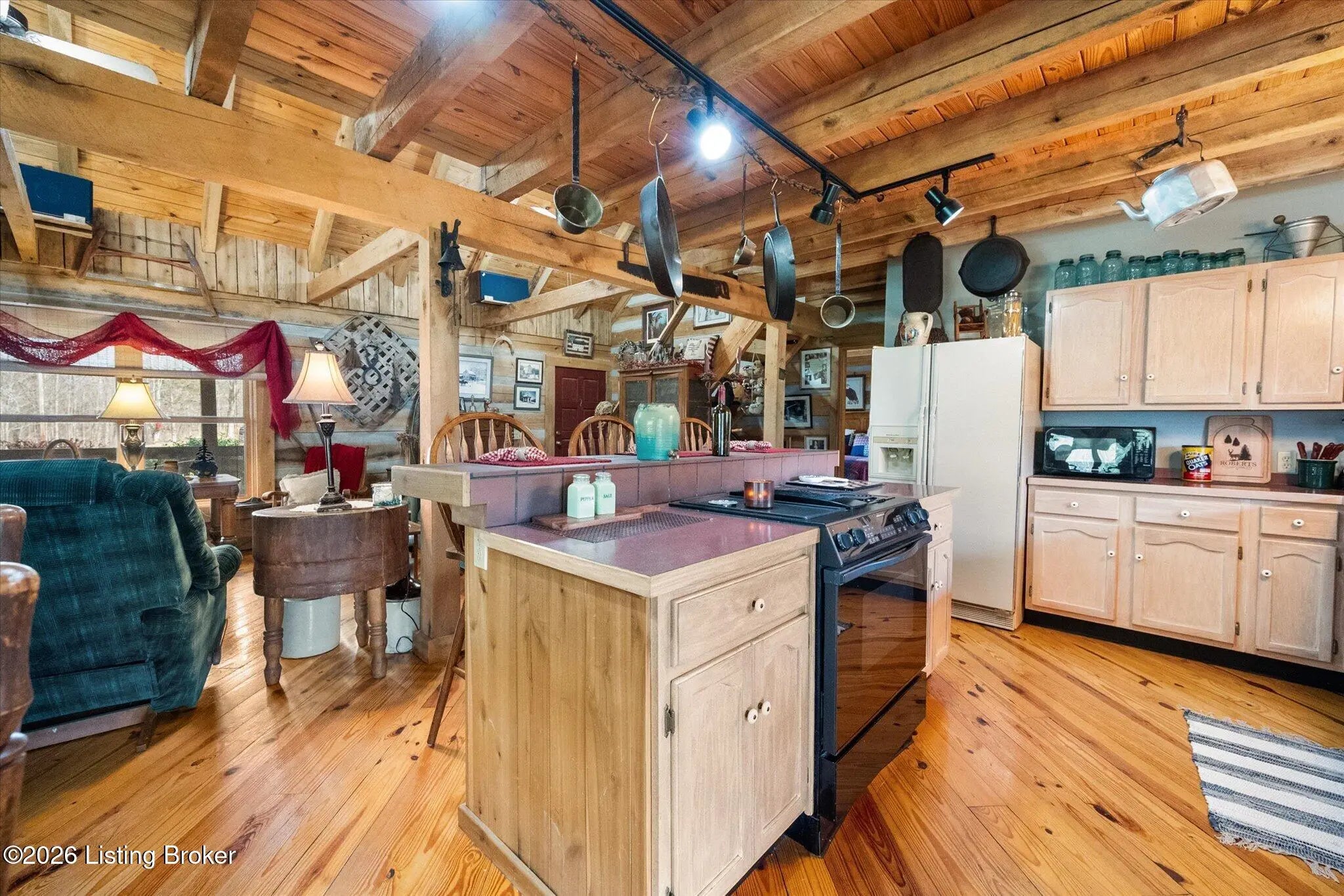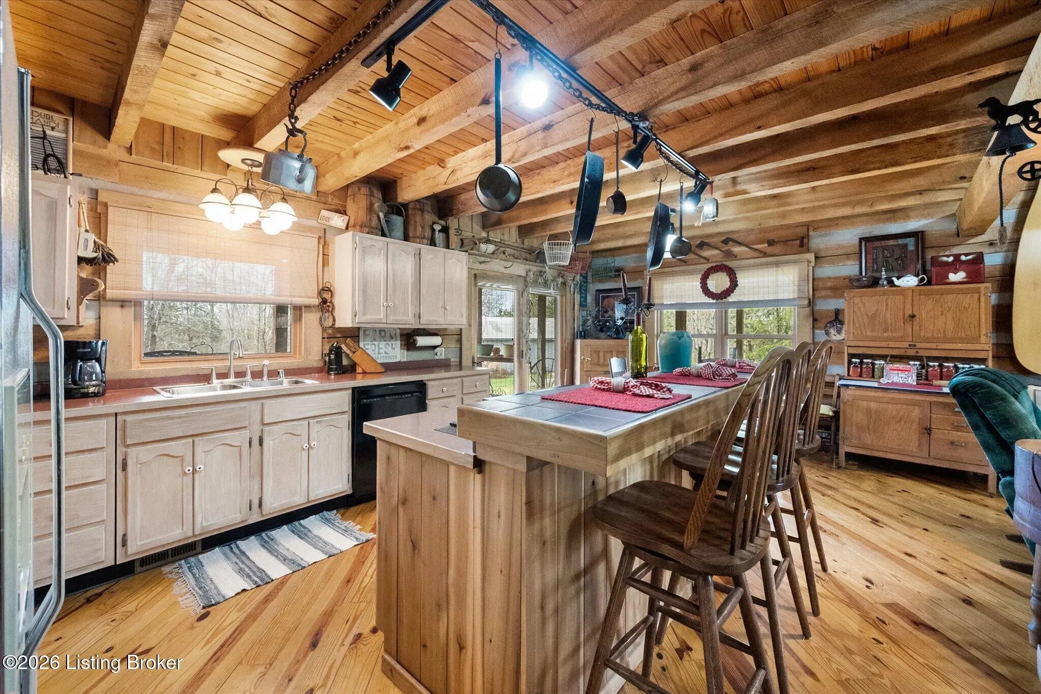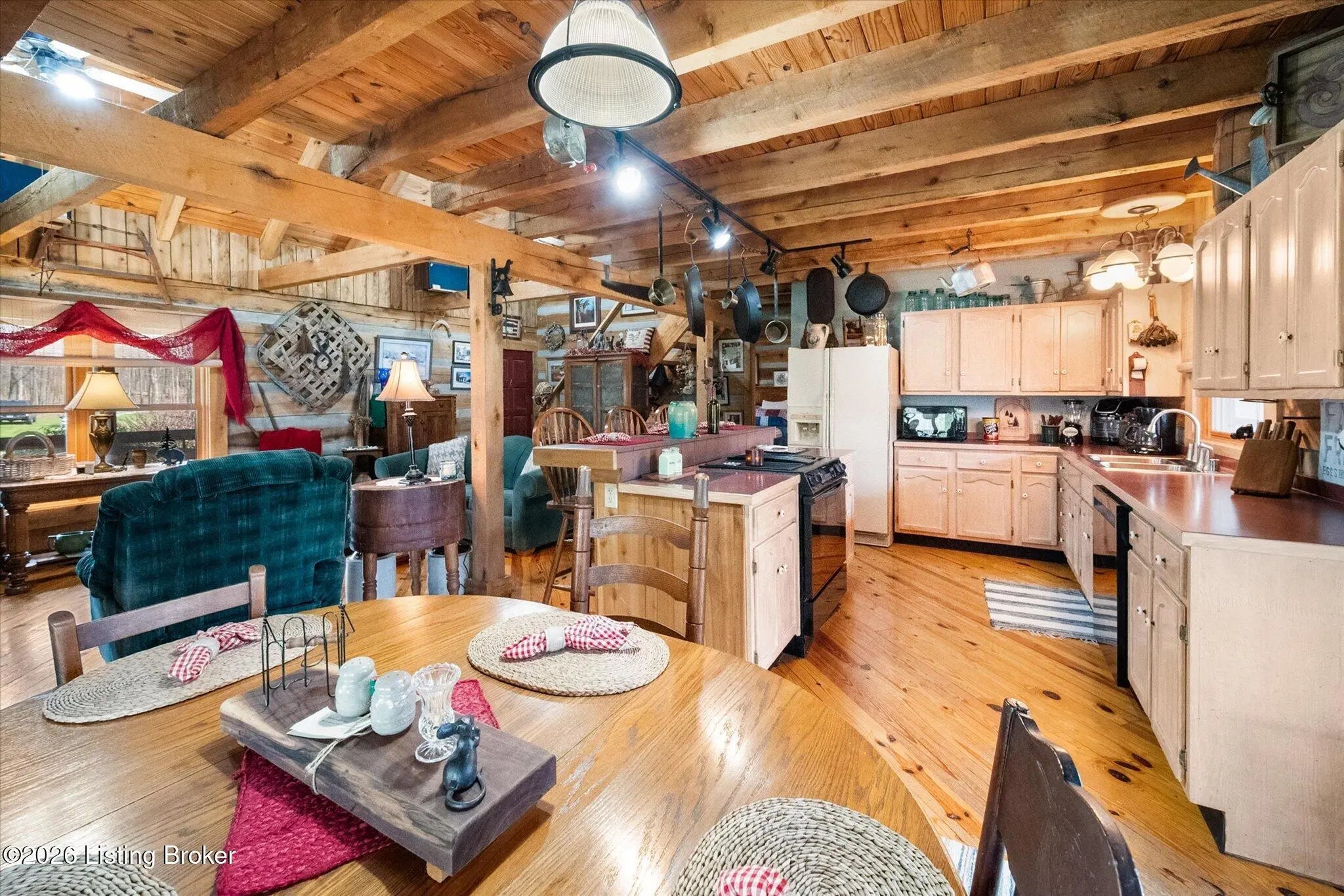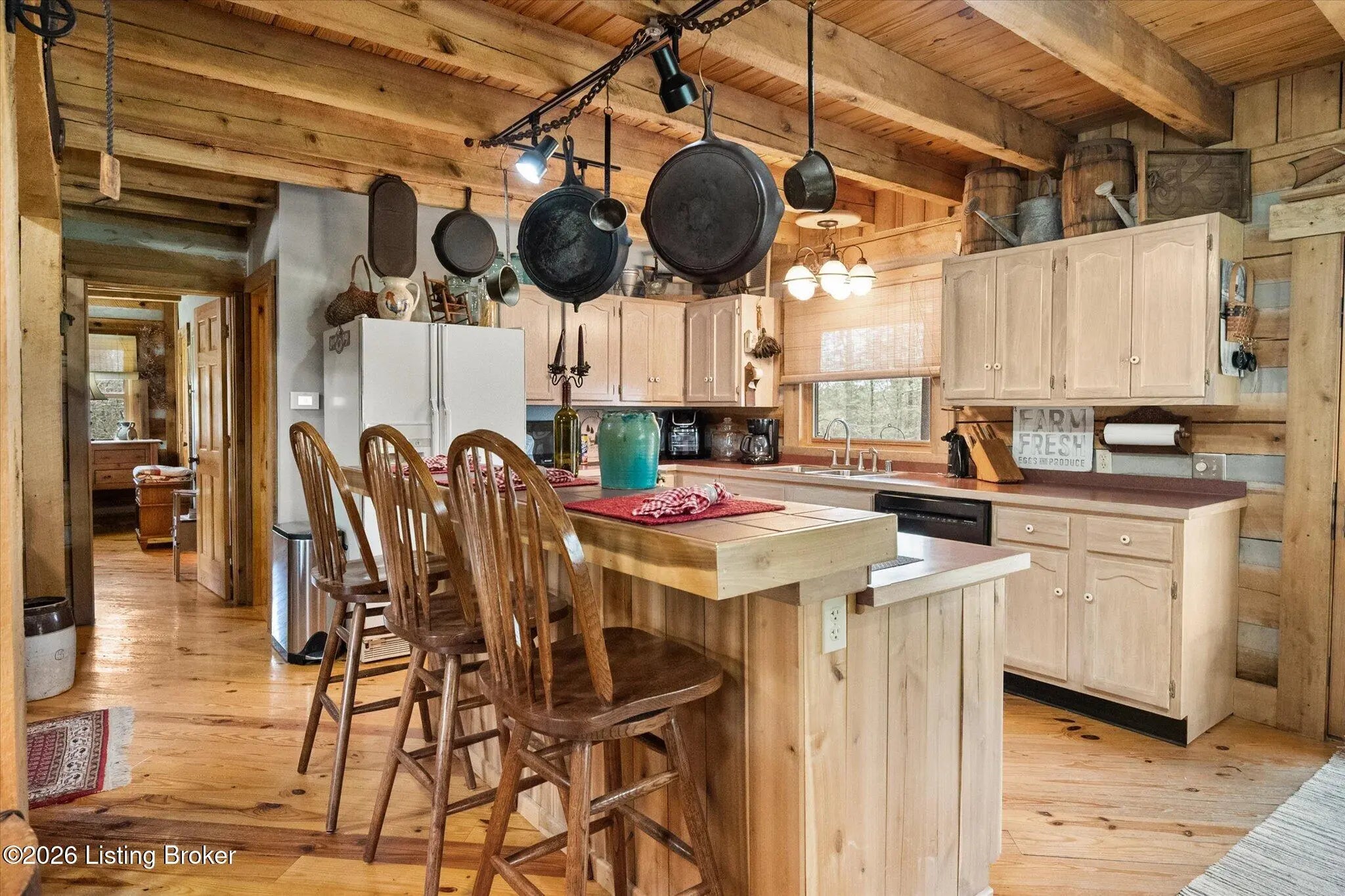 Are you looking for a log home with authentic rustic charm combined with a 22-acre wooded sanctuary? Then look no further!! Rough-cut Popular Log Home offers over 1600+ sqft of living space, 2 bedrooms, 2.5 bathrooms, and a loft area that could be easily converted to a 3rd bedroom. Walkout unfinished basement, attached 2-car carport. Private lakefrontage, 40X45 drive-through shop building with a half bath. This property is a nature lover's paradise with plenty of mature trees, wildlife, and fishing. Anchor your boat at the rear of your property that has 750' of frontage on Trailwood Lake (a 75-acre lake), not accessible to the general public, just the owners that border the lake. Extra Features: all pine hardwood flooring throughout, exposed log beams, metal roof, city water, all electric, heat pump with propane backup system, Central Air, covered wrap-around porch, lower-level patio area, 1/2 round gutters, newly wrapped gabbles with new vinyl siding, shared maintenance on the shared easement road driveway leading to your home. Shared with the 9 other lot owners. The first floor has an open floor plan with a living room with a vaulted ceiling, exposed beams, and a wood-burning creek rock fireplace, a kitchen with a dining eating area, and a large island with seating for 4. Appliances include a side-by-side refrigerator, range, and a new KitchenAid dishwasher. Appliances will remain. Half bath, main-level primary bedroom with a walk-in closet and a primary bath. On the 2nd floor, you will find an open loft area currently doubling as a guest room and office. The loft area could easily be converted to a 3rd bedroom if needed. Full hallway bath with a clawfoot tub, a nice-size 2nd bedroom with exposed beams, a vaulted ceiling, and double closets. Walk-out lower level (basement). Is ready for you to add your own personal finishing touches. Laundry room, rough-in full bath, storage area, and a wood-burning stove. Don't miss out on having your own piece of nature's paradise combined with comfortable living.