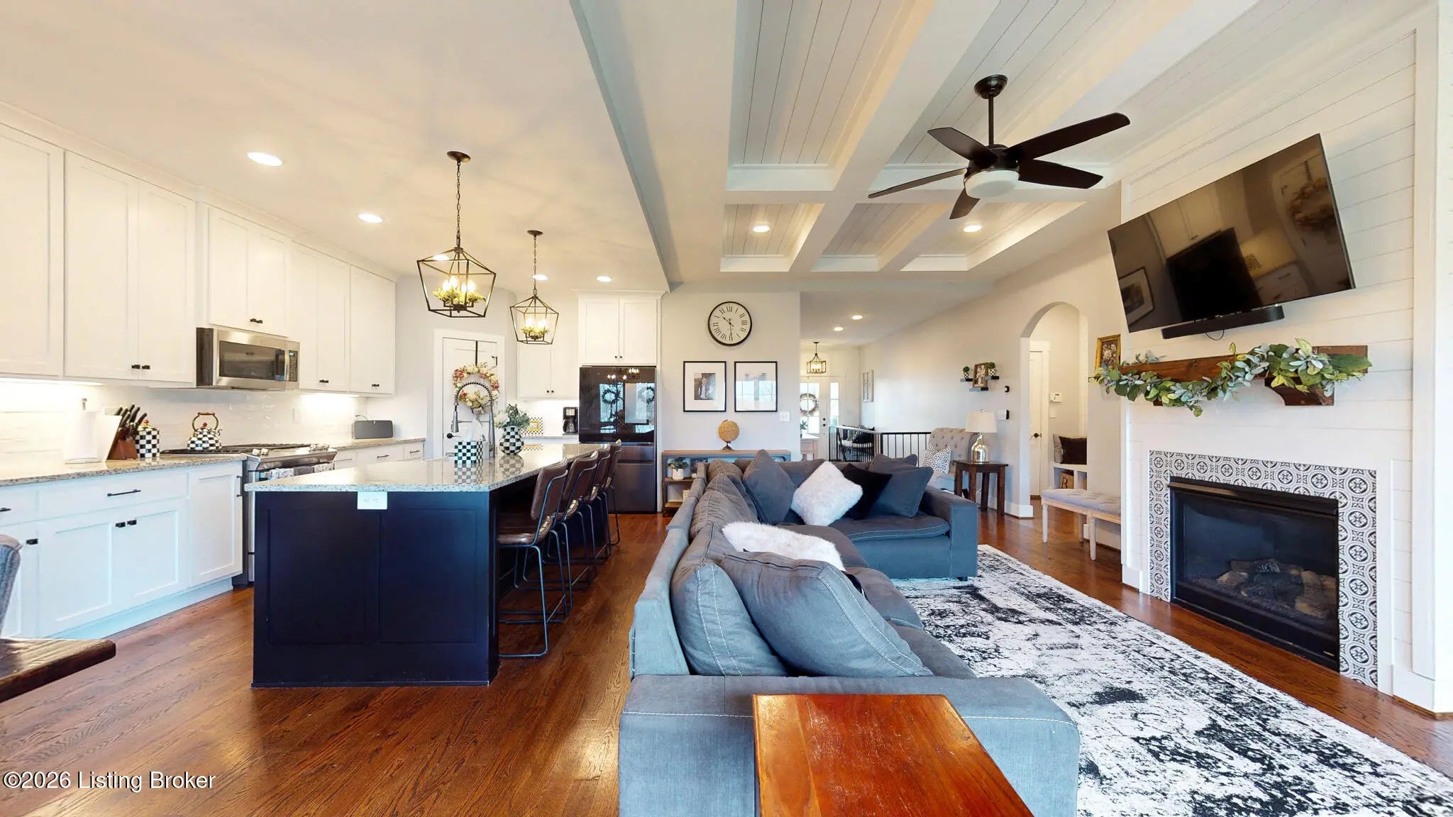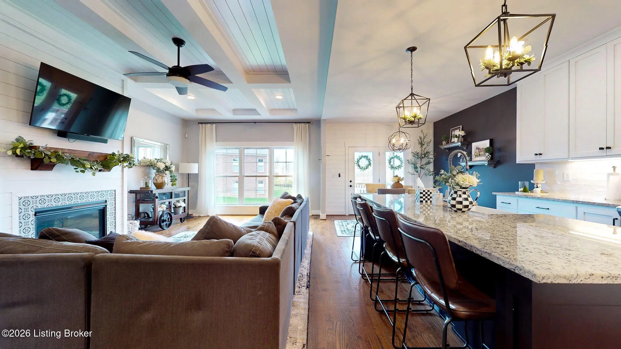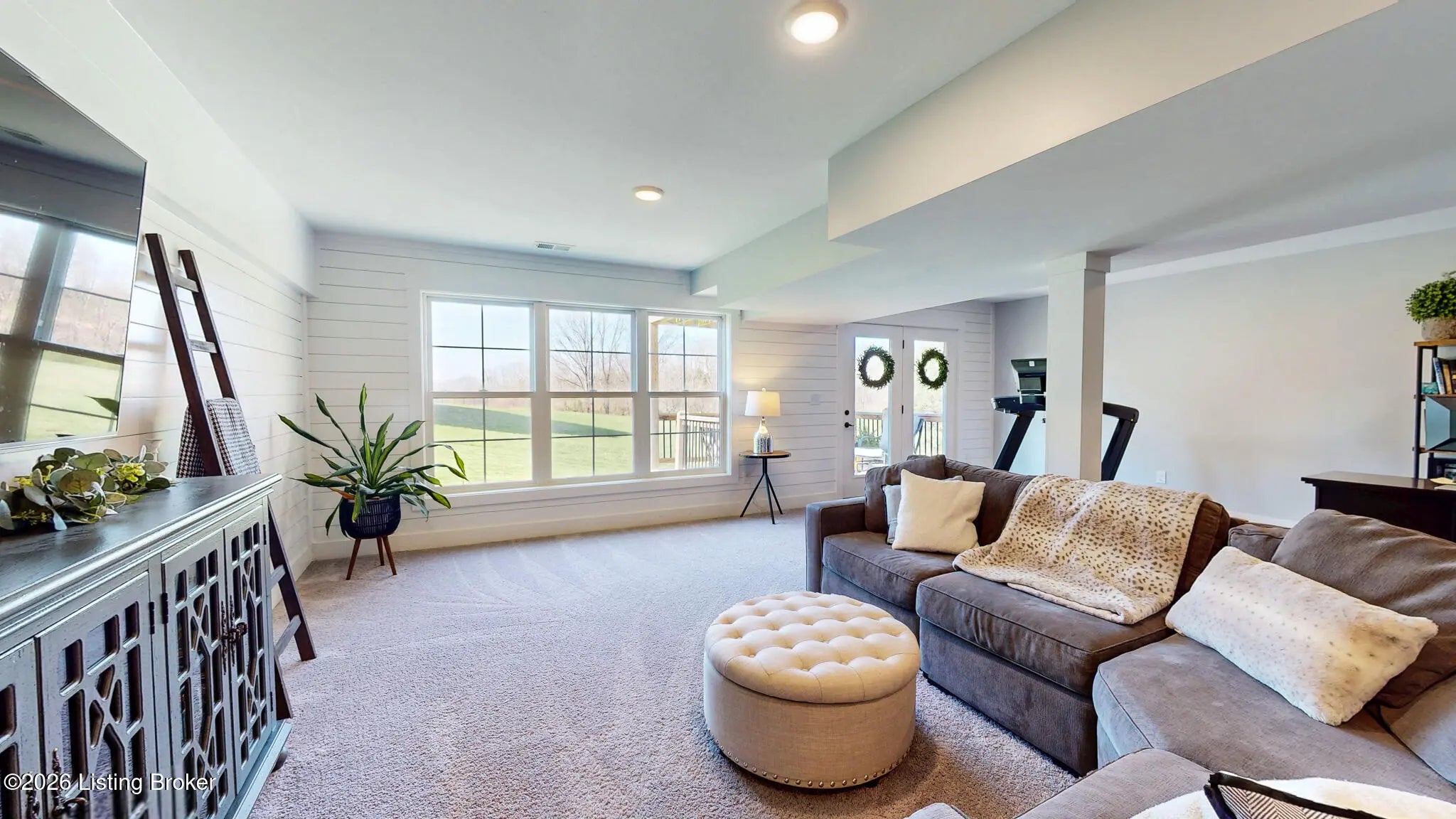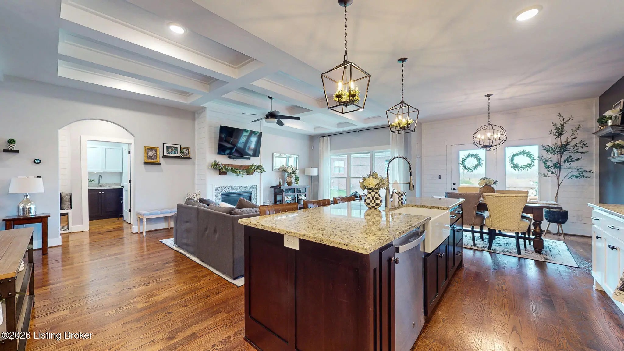 Welcome to this fabulous Catalpa Farms ranch home featuring an open floor plan with beautiful sand and stained hardwood floors throughout the main living areas and master bedroom. In the great room you will find a gas fireplace with shiplap and tile. Custom hand-crafted iron railing can be seen in the open area of the great room leading to the basement. The kitchen is open to the great room and offers stainless steel appliances, custom shaker cabinets, granite countertops and a large center island. The large primary bedroom is located on the first floor and features a tray ceiling with shiplap. The primary bath comes with a double bowl vanity, large tile walk-in shower with frameless glass and massive primary closet. All the bathrooms in the home have been customized with tile floors and granite countertops. There are two secondary bedrooms on the main floor with walk in closets. The finished lower level walk-out is great for entertaining and includes a family room, bedroom, and a full bath. There is also plenty of storage which is currently being used as a workout room. The walk-out basement also leads to a second outdoor entertaining space with a covered deck overlooking green space. Additional features include a covered deck off the kitchen, wi-fi enabled garage door, and security system. Catalpa Farms is located just minutes from the Parklands of Floyds Fork.