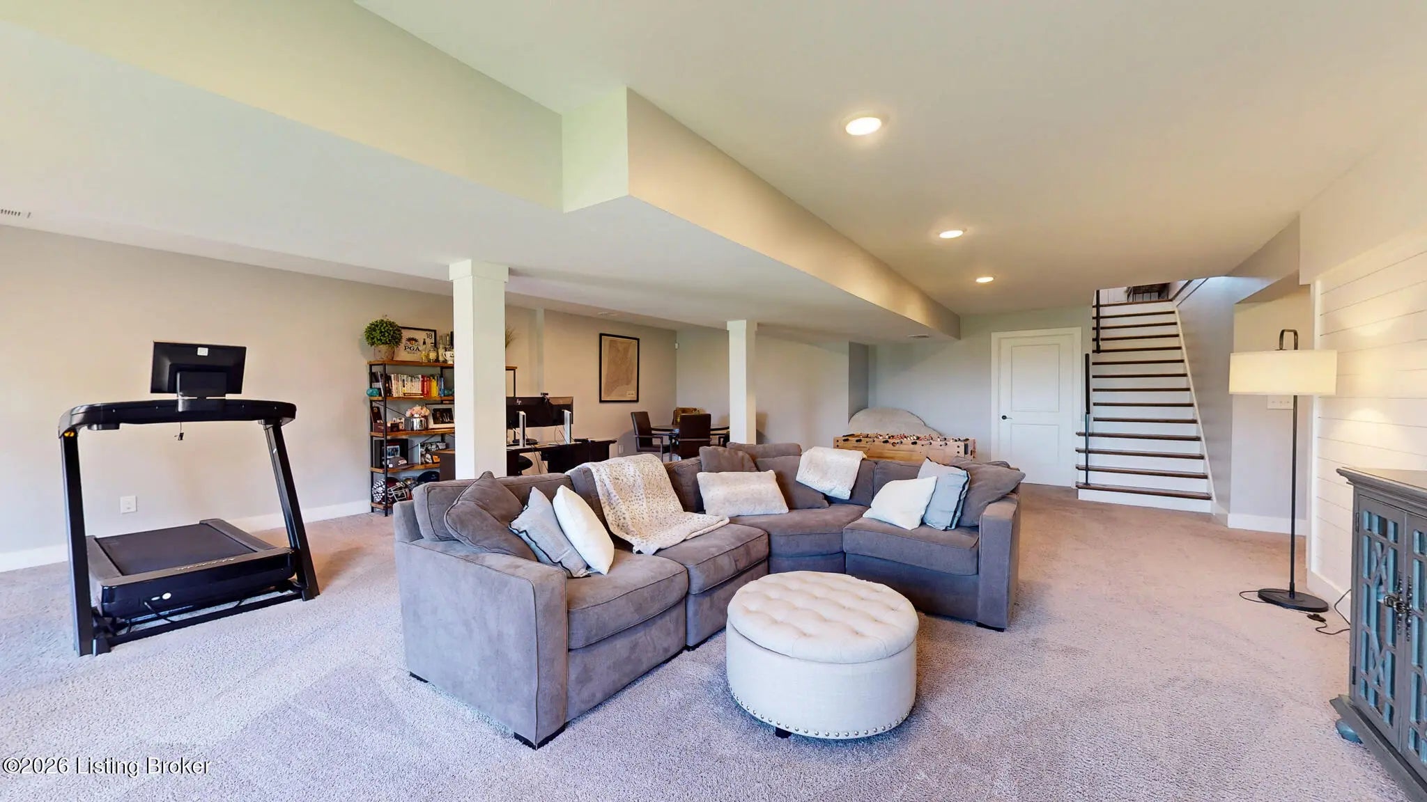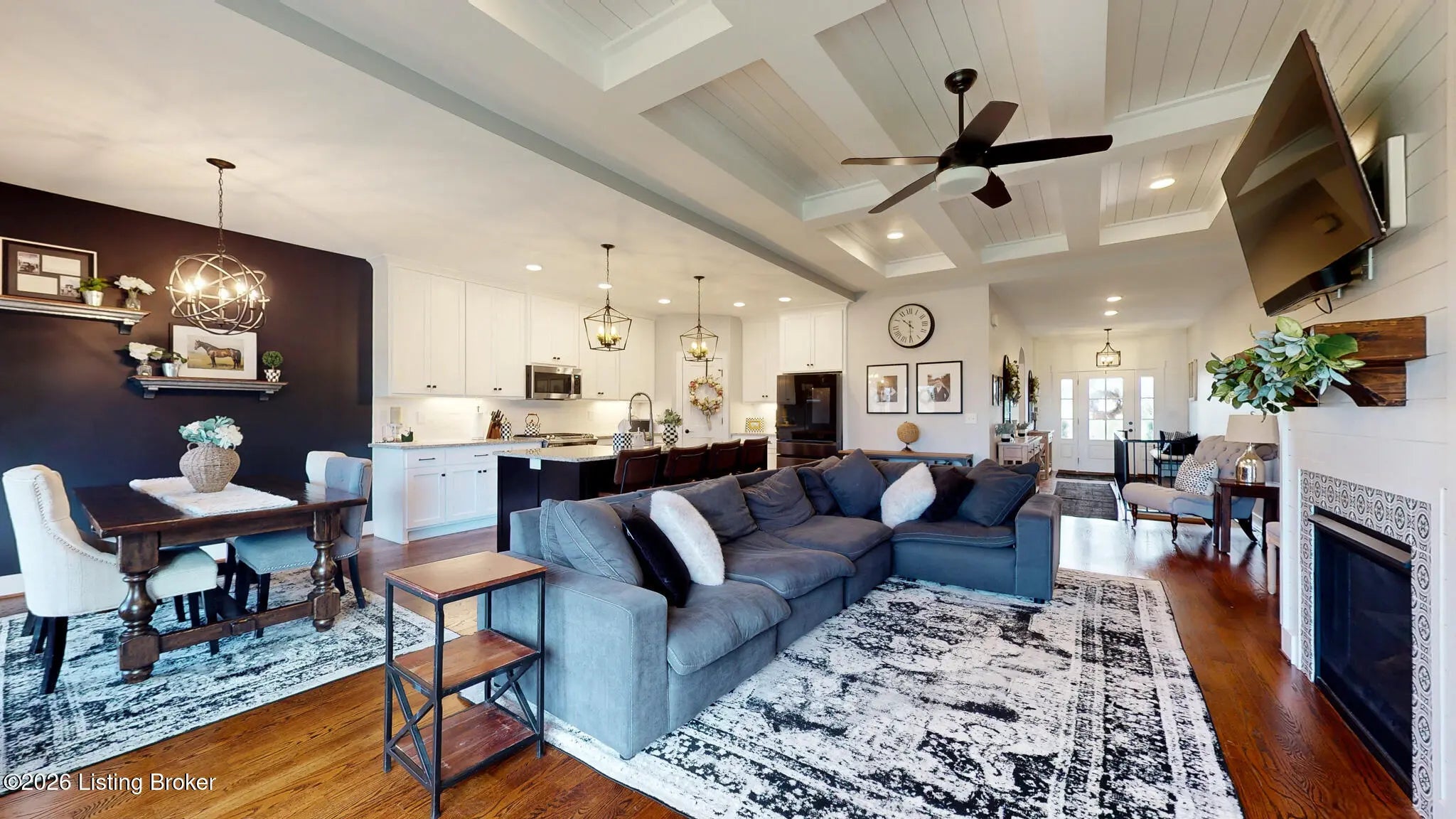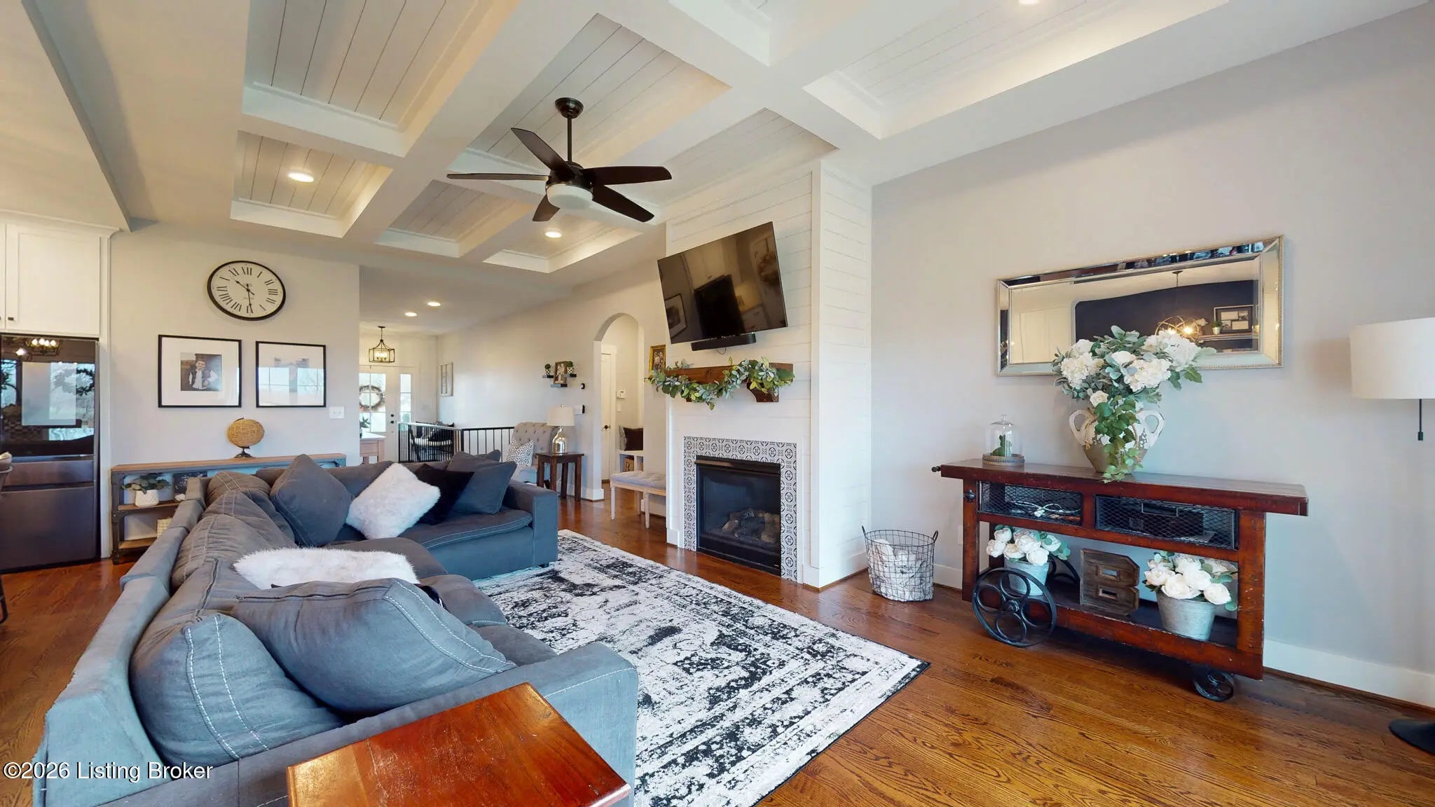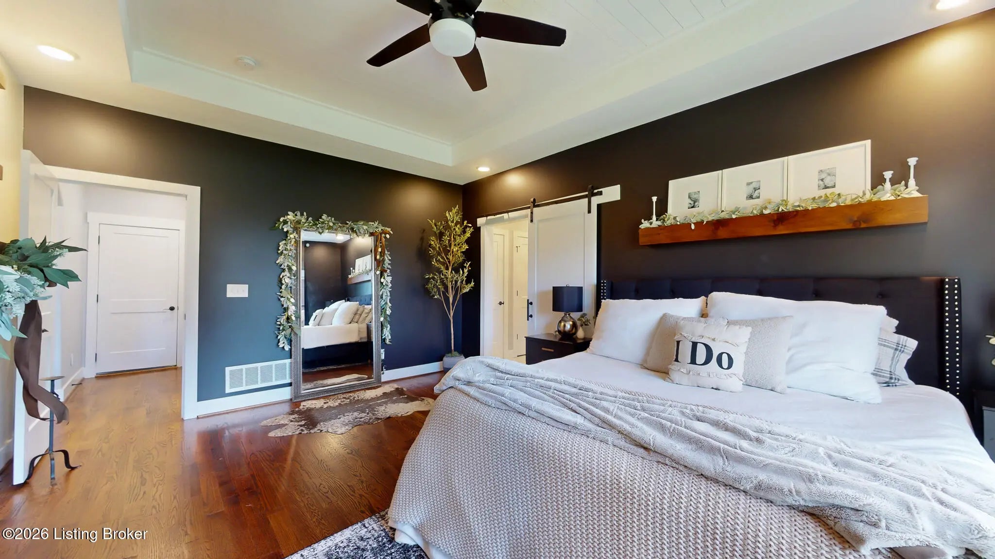 Welcome to this fabulous Catalpa Farms ranch home featuring an open floor plan with beautiful sand and stained hardwood floors throughout the main living areas and master bedroom. In the great room you will find a gas fireplace with shiplap and tile. Custom hand-crafted iron railing can be seen in the open area of the great room leading to the basement. The kitchen is open to the great room and offers stainless steel appliances, custom shaker cabinets, granite countertops and a large center island. The large primary bedroom is located on the first floor and features a tray ceiling with shiplap. The primary bath comes with a double bowl vanity, large tile walk-in shower with frameless glass and massive primary closet. All the bathrooms in the home have been customized with tile floors and granite countertops. There are two secondary bedrooms on the main floor with walk in closets. The finished lower level walk-out is great for entertaining and includes a family room, bedroom, and a full bath. There is also plenty of storage which is currently being used as a workout room. The walk-out basement also leads to a second outdoor entertaining space with a covered deck overlooking green space. Additional features include a covered deck off the kitchen, wi-fi enabled garage door, and security system. Catalpa Farms is located just minutes from the Parklands of Floyds Fork.