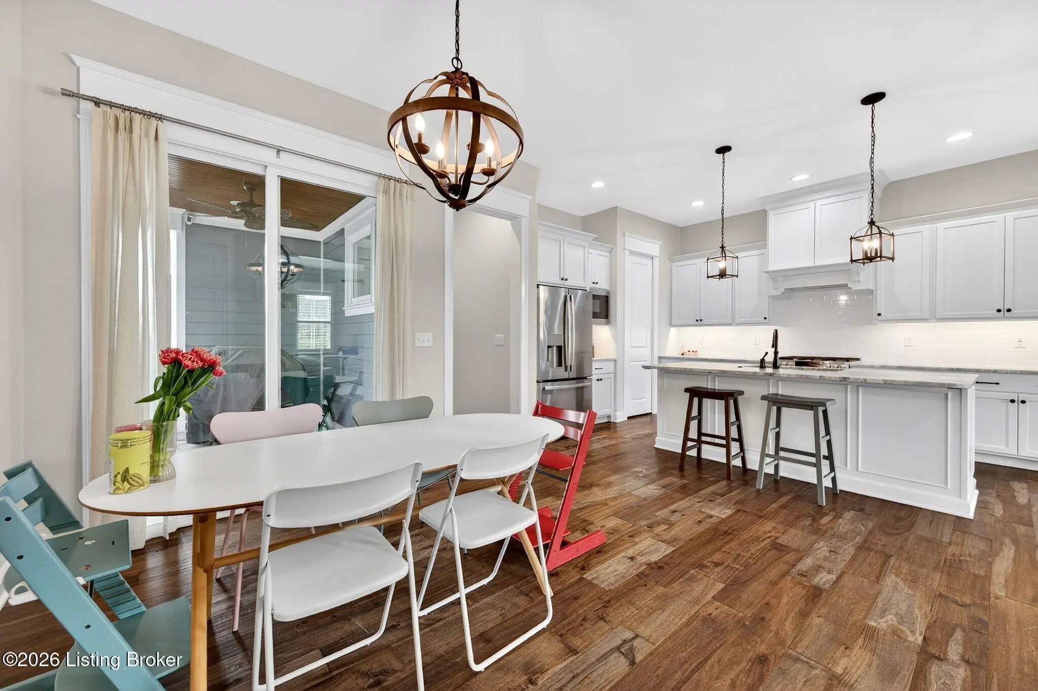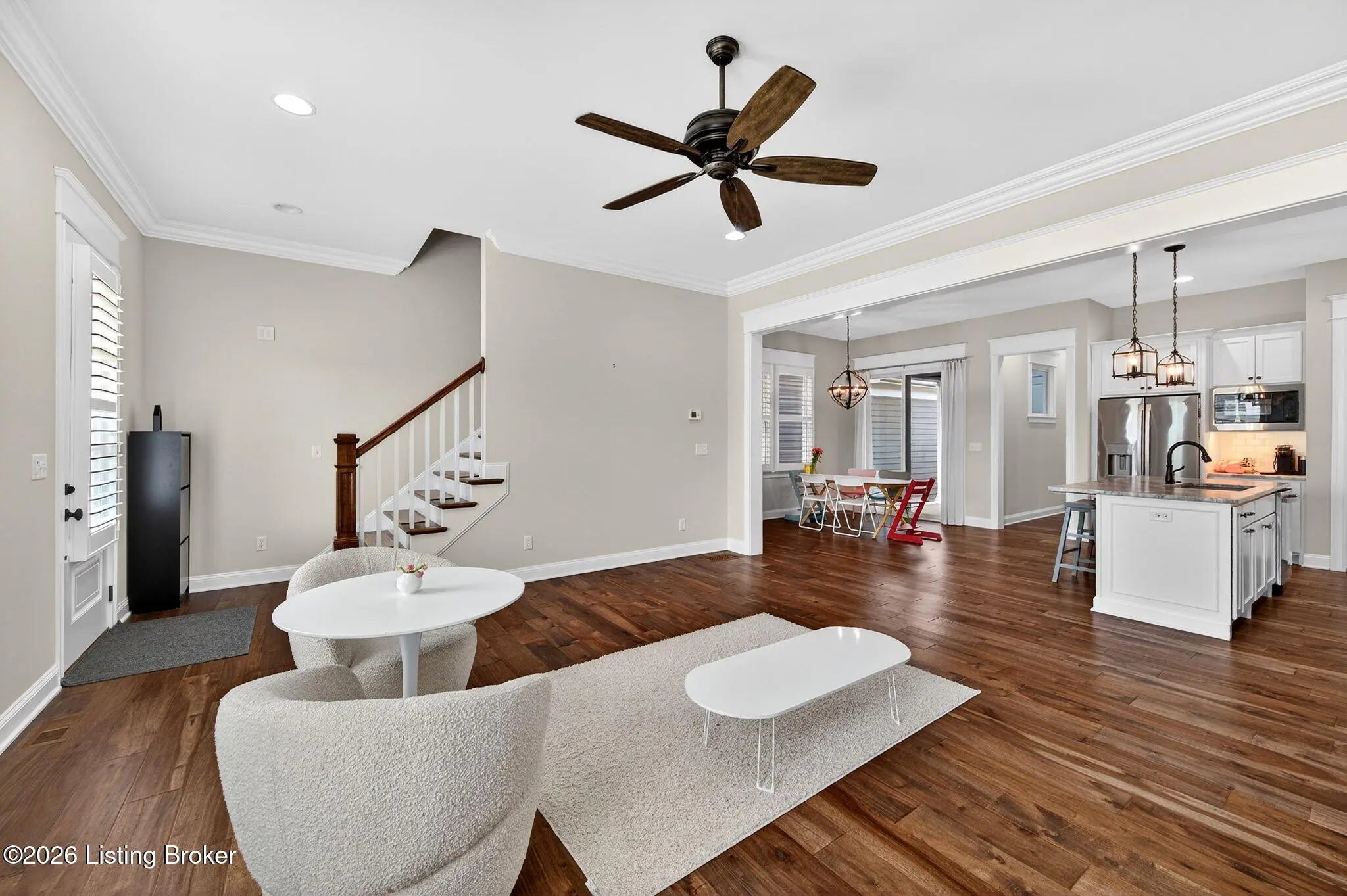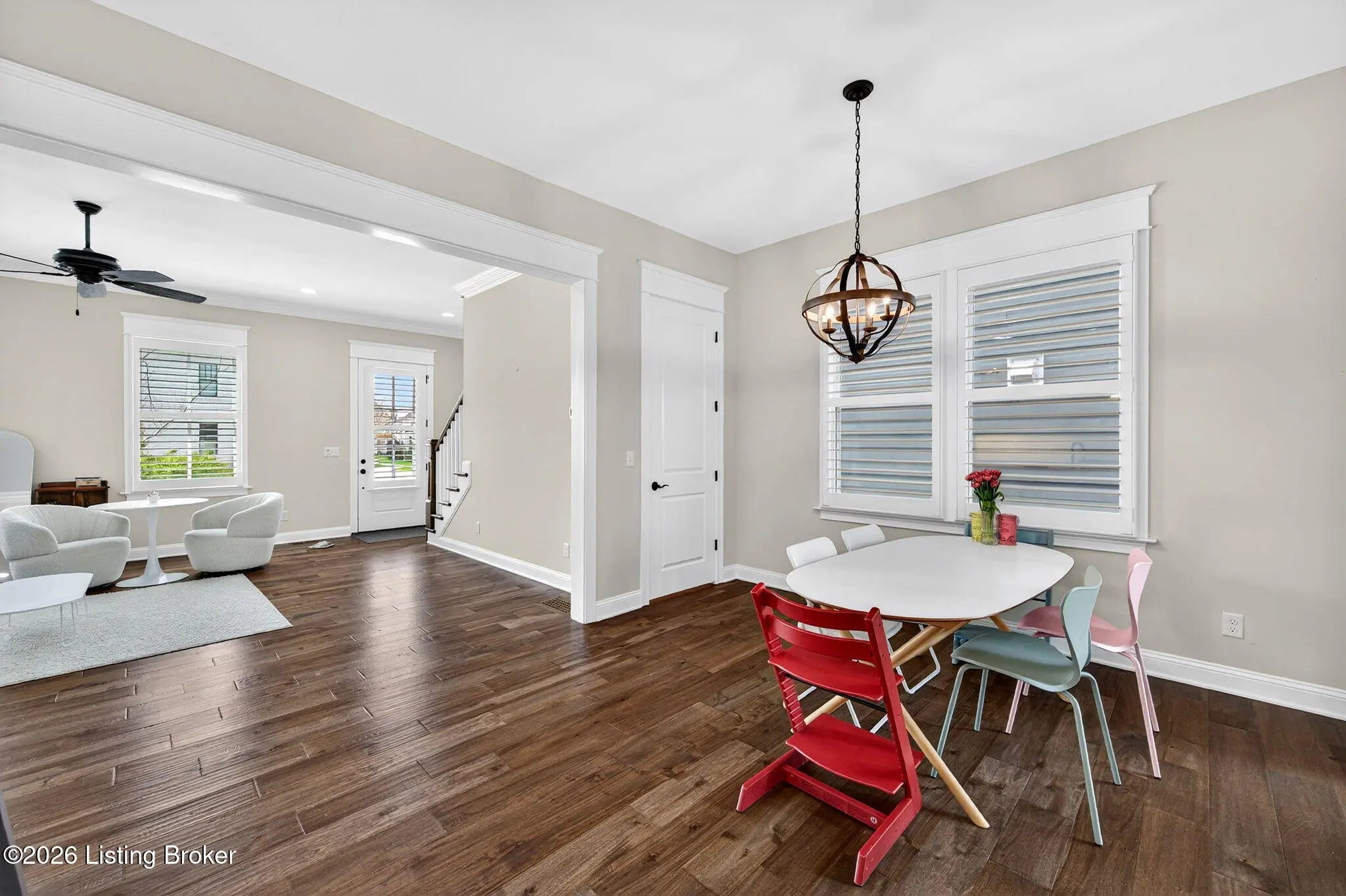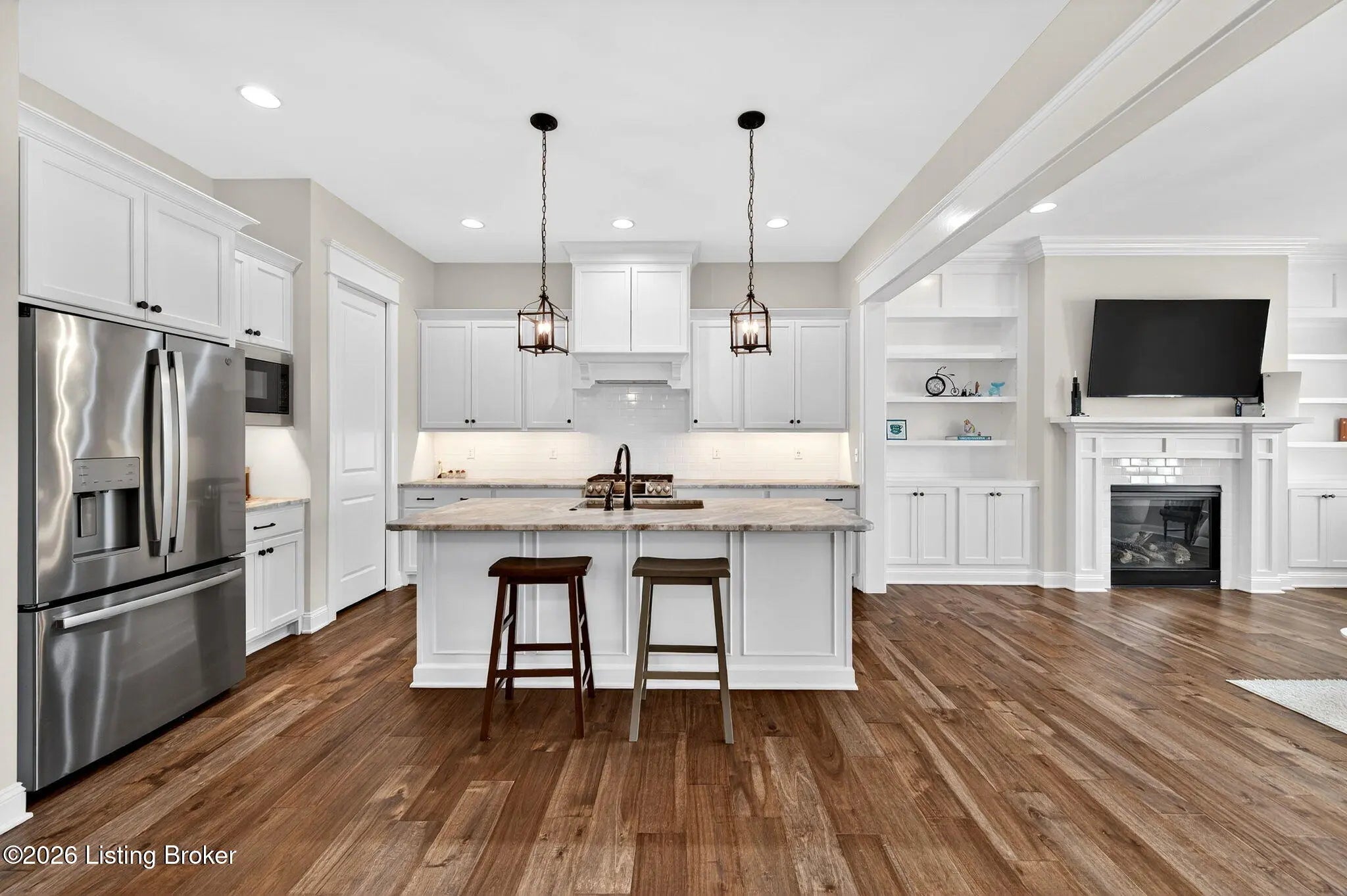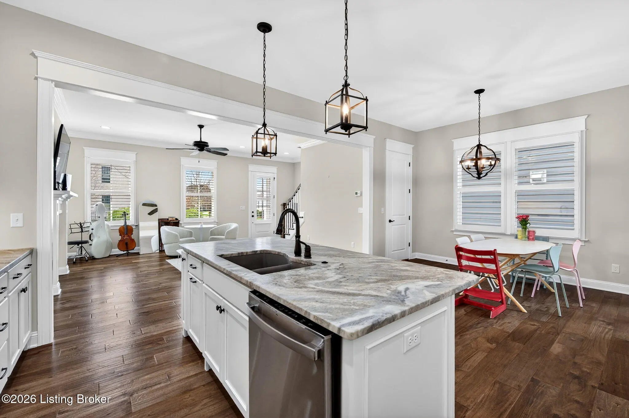 WONDERFUL and IMMACULATE two story 4 BEDROOM, 3 FULL BATH, FINISHED BASEMENT, CUSTOM BUILT home by Built by Mastercraft Homes, LLC that FEELS LIKE BRAND NEW!! Elegant trim work, 10 ft ceilings, hardwood floors throughout first floor, custom built ins, bookshelves, fireplace, lots of natural light, plantation shutters, custom cabinets in the kitchen, large island, nice sized pantry, stainless steel appliances, this home has it all! Be welcomed into the warm open floor plan with a brilliant great room flowing into the kitchen and dining area and then out to the covered side porch though the glass doors. The back entrance off the attached garage has a mud room with cubbies and a half bath. The amazing kitchen has lots of counter space and pantry has wood shelves for storage. The second floor has a private primary suite with two walk-in closets, and serene primary bathroom with tiled shower. There are two additional bedrooms, with a Jack and Jill 2nd full bath with tile surround in the tub/shower and a very nice laundry room with cabinets for storage. There is also an oversized large linen closet with wood shelving in the hallway. The basement has been professionally completed with a nice size family room with built in shelving with mini refrigerator. There is also a 4th bedroom with an egress window and attached full bathroom with tiled bath! Geothermal HVAC system and a very young roof make this home move in ready and maintenance free living! Be steps away or ride in a few minutes to restaurants, shopping, doctors offices, parks, 3 pools, music by the water events and SO many great activities available in NORTON COMMONS!!