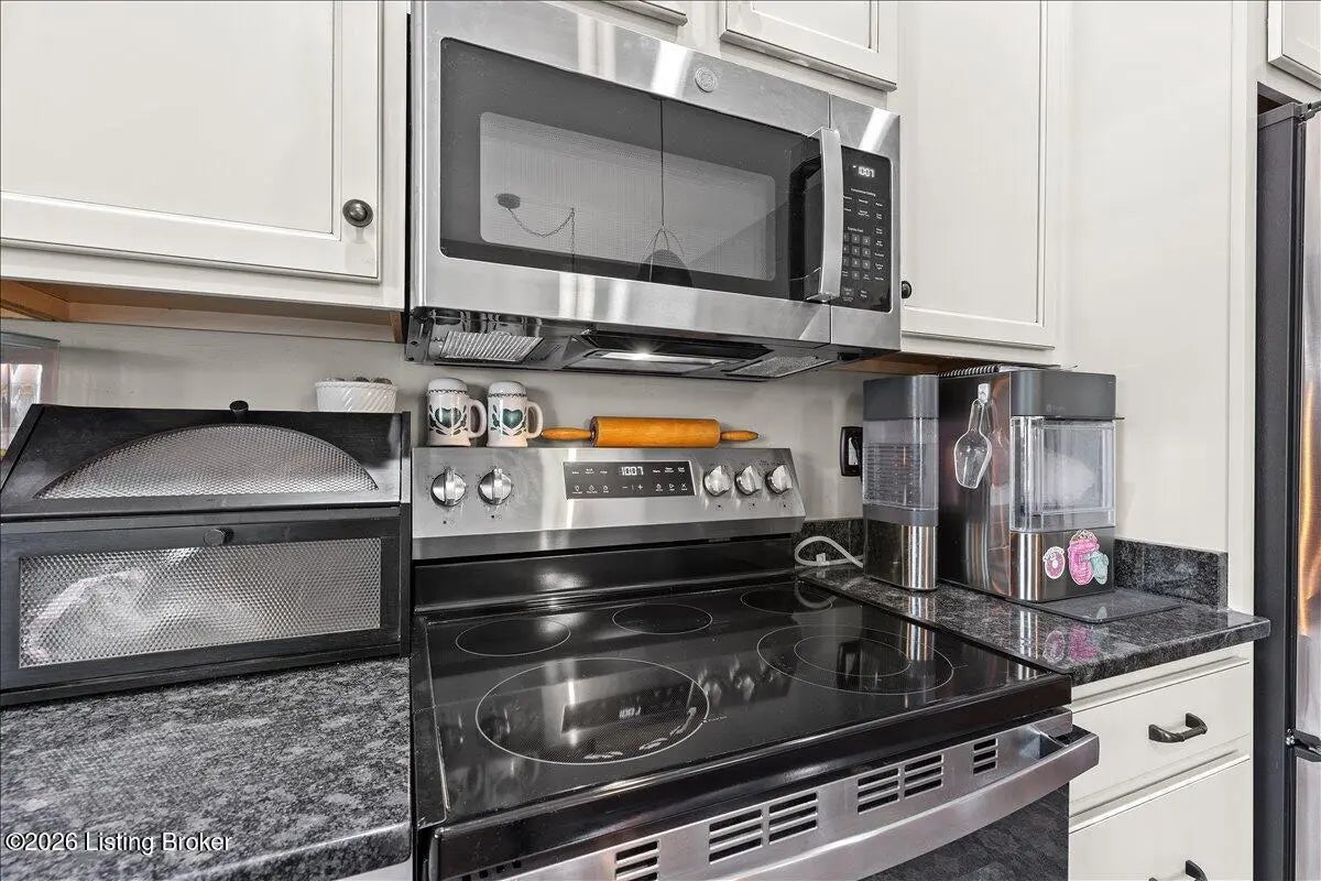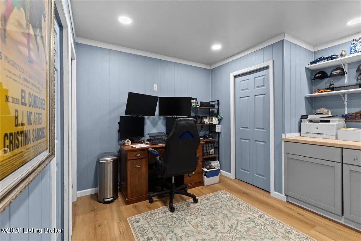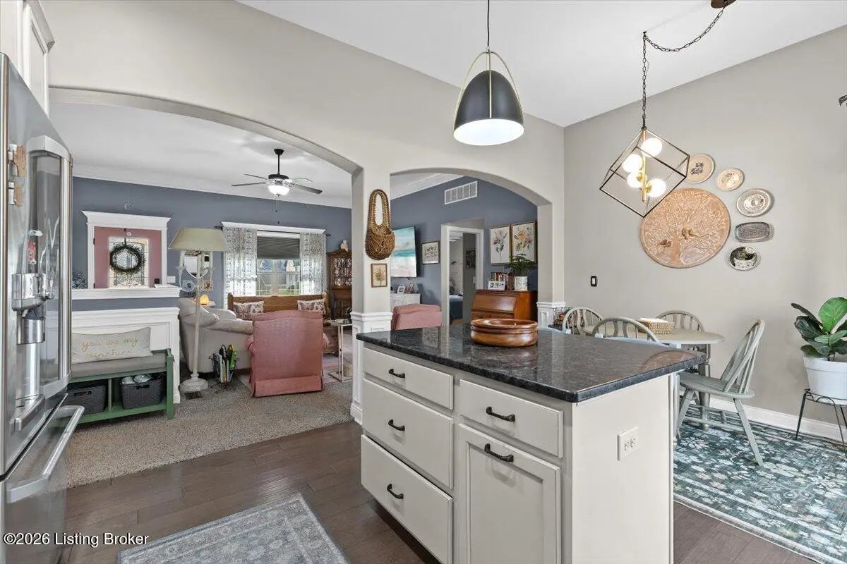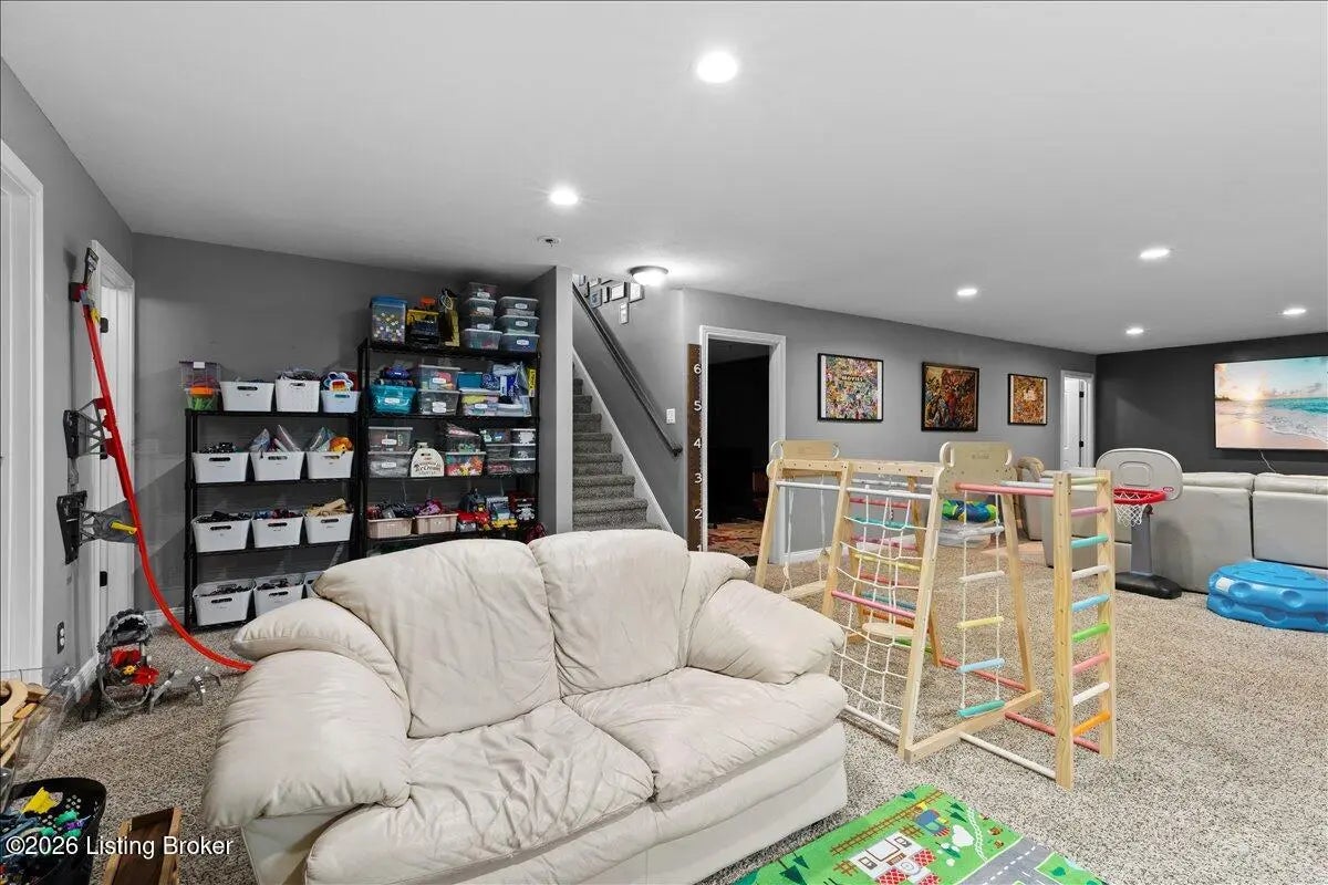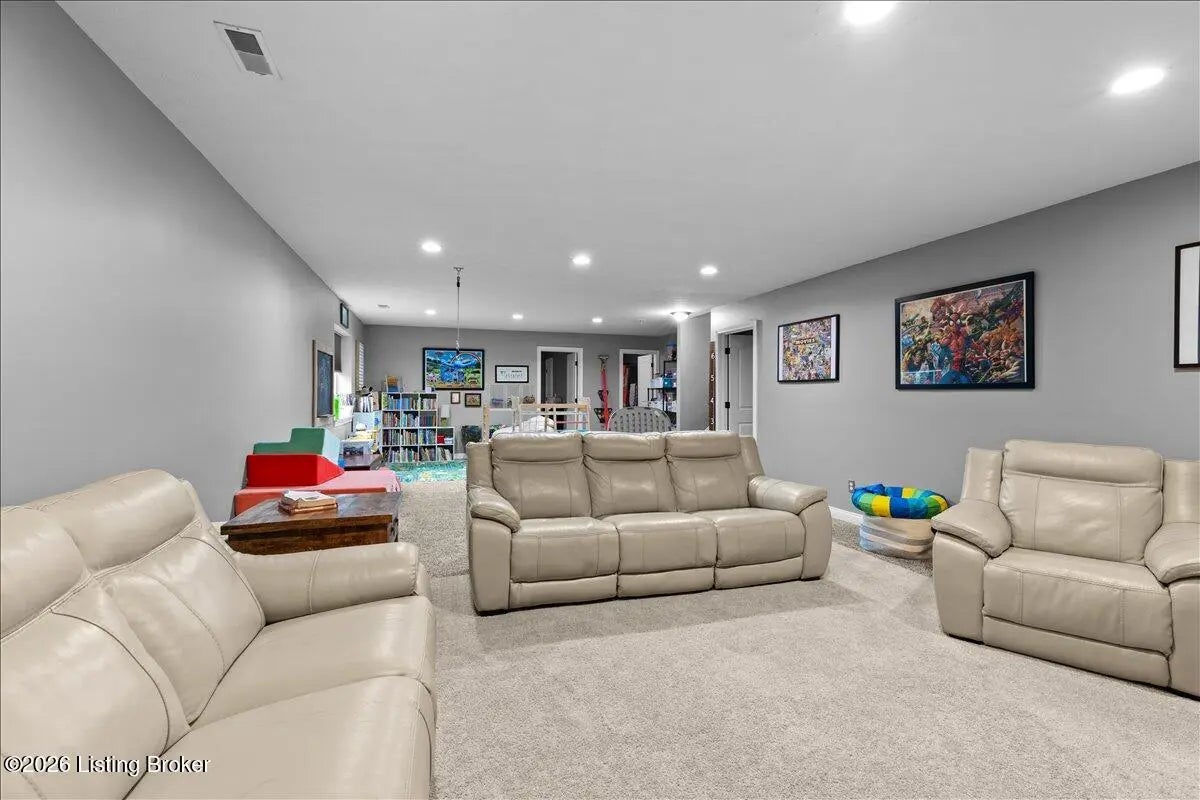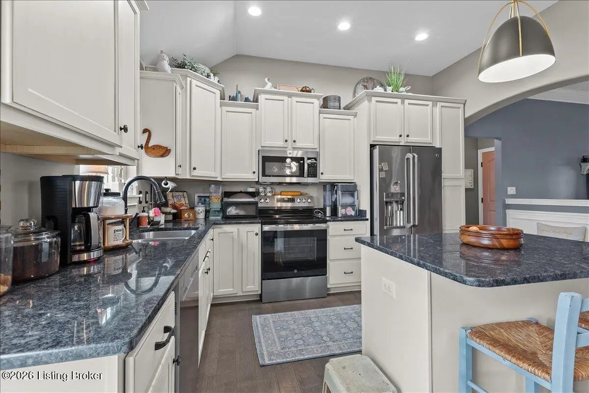 Welcome Home! Located in Oldham County, this brick ranch features a well designed layout with stylish finishes throughout. With over 2,900 finished square footage and brand new HVAC and water heater, highlights include an arched stone front porch, flat driveway, and beautifully maintained landscaping. Inside, the open-concept great room, kitchen, and dining area offer tall ceilings, granite countertops, NEW stainless steel appliances, and a center island, with easy access to a rear deck and fenced backyard. The home offers 4 bedrooms and 3 full bathrooms, including a spacious primary suite with tray ceiling, custom walk-in closet, and tiled walk-in shower. The finished lower level adds a large family room, additional bedroom, office/flex space, a full bath, and extra storage. Conveniently located near restaurants, shopping, the YMCA and I-71. Just minutes from downtown LaGrange. Schedule your private showing today!
