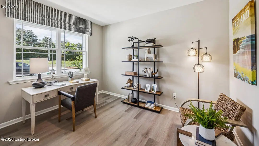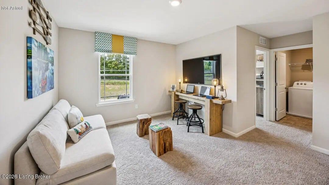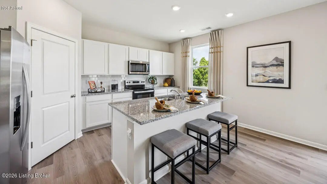 Presenting 154 Shoemaker Lane, Elizabethtown, KY, a new home in our beautiful Meadows at Cowley Crossing community! This home features a covered front porch, stone accents, and dimensional shingles for timeless curb appeal. Step inside to find luxury vinyl plank flooring flowing throughout the foyer, kitchen, dining area, great room, study, and bathrooms. The open-concept design creates a seamless transition from the kitchen to the great room— perfect for entertaining or simply relaxing at home. The kitchen has a spacious center island with seating, stone-gray shaker-style cabinetry with soft-close doors, quartz countertops, stainless steel appliances, and a walk-in pantry to make meal prep and hosting effortless. Just off the entry, a flexible front room offers the perfect space for a home office, playroom, or additional living area. Upstairs, you'll find a generous loft, four bedrooms, two full bathrooms, and a conveniently located laundry room. The private primary suite features a large walk-in closet and an en-suite bath complete with a double bowl vanity, linen closet, and a tiled walk-in shower. Additional highlights include 9' ceilings on the main level, fully drywalled garage with opener, exterior coach lights, sodded front yard, smart home package, and a builder's warranty. Contact us today to schedule your tour of the Stamford in Meadows at Cowley Crossing! Photos are representative of the plan only and may vary as built. Estimated completion is June/July 2026.