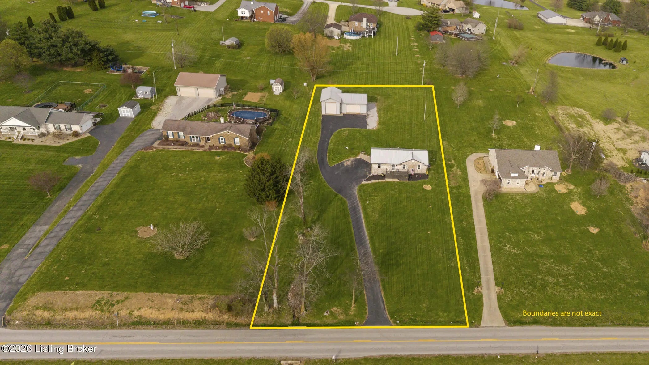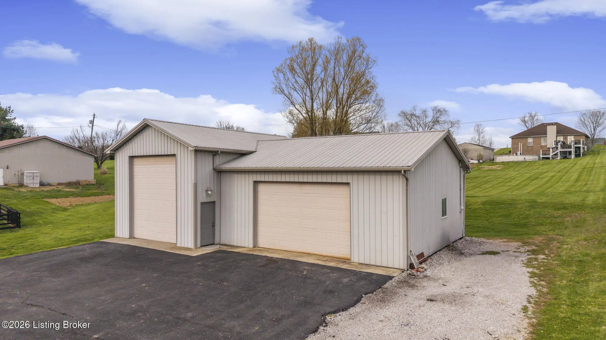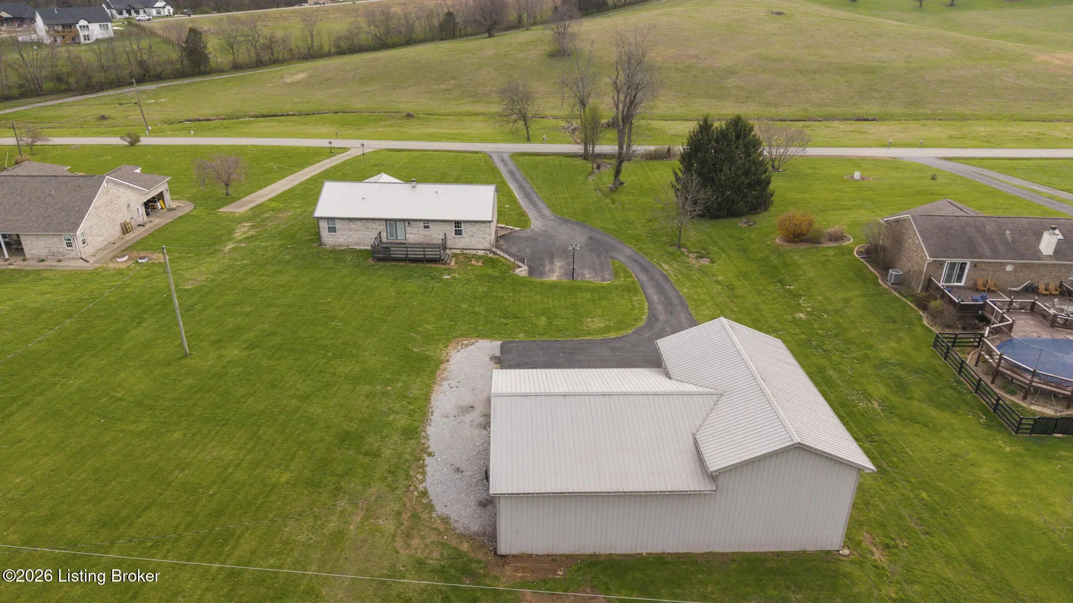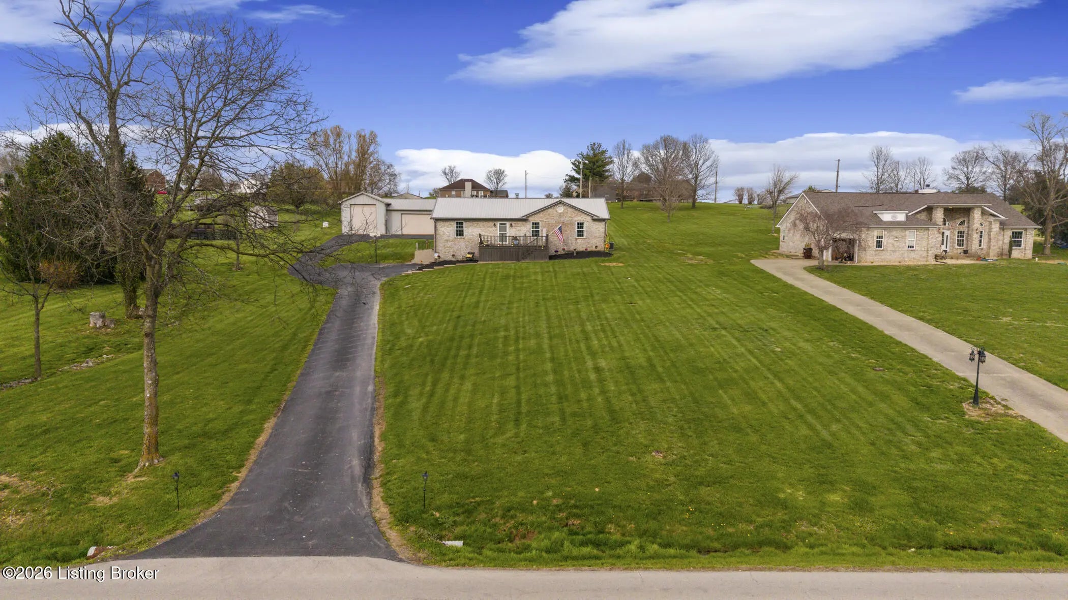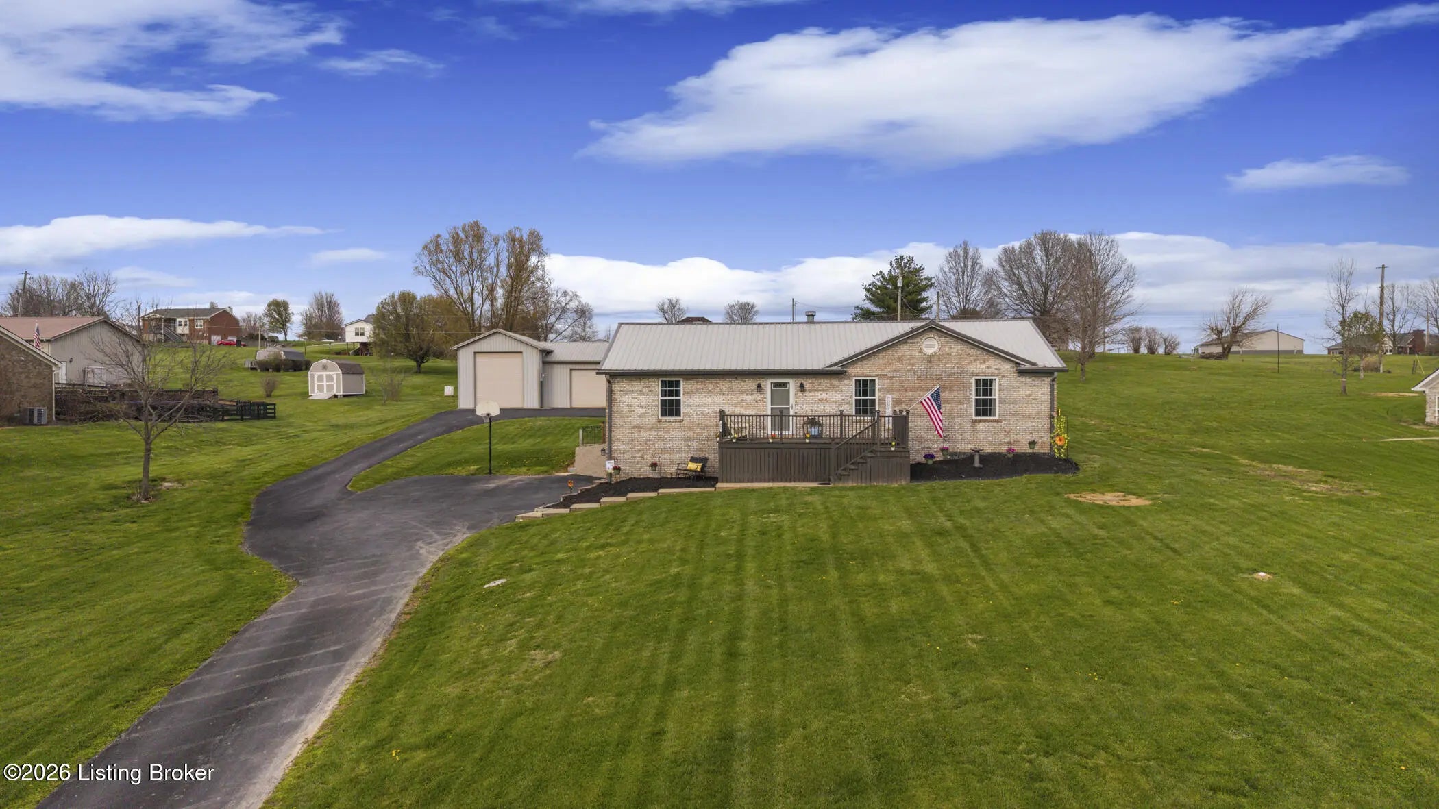 Are you searching for a fantastic brick ranch home on a little bit of land? Do you need space for your boat or RV and would prefer a home without an HOA? This three bedroom, two-and-a-half bath home with over 2,300 square feet of finished space and a HUGE additional detached garage may be the perfect home for you. Enjoy the big blue Kentucky skies from the front porch or the back deck that look out on the 1.2+ acre property. This split ranch home opens to a spacious family room with a cozy electric fireplace and vaulted ceilings. Leading to the kitchen, you will find a tall granite counter, plenty of cabinet space, eat-in dining room space, and a large pantry/laundry room. Off to one side you will find the spacious primary bedroom with soaker tub, double vanity, and stand-up shower. Across the house you will find the other two bedrooms, and another full bathroom. Downstairs you will find a finished walkout-basement with the current lower-level attached garage being used as unfinished basement game room space and another half bathroom. Outside this home boasts an economical 50-year metal roof, freshly paved extra-long blacktop driveway that leads to the house and continues back to the massive secondary garage/workshop. The second garage is 50' wide with a 20' section that is 35' deep (but the Seller says it could be extended to 50' deep if needed) and a 30' section that is 30' deep. The entire garage is on its own electrical service and would make a mechanic's dream come true. If you are looking for a home with NO HOA, privacy, and phenomenal location, then call now for your private showing.
