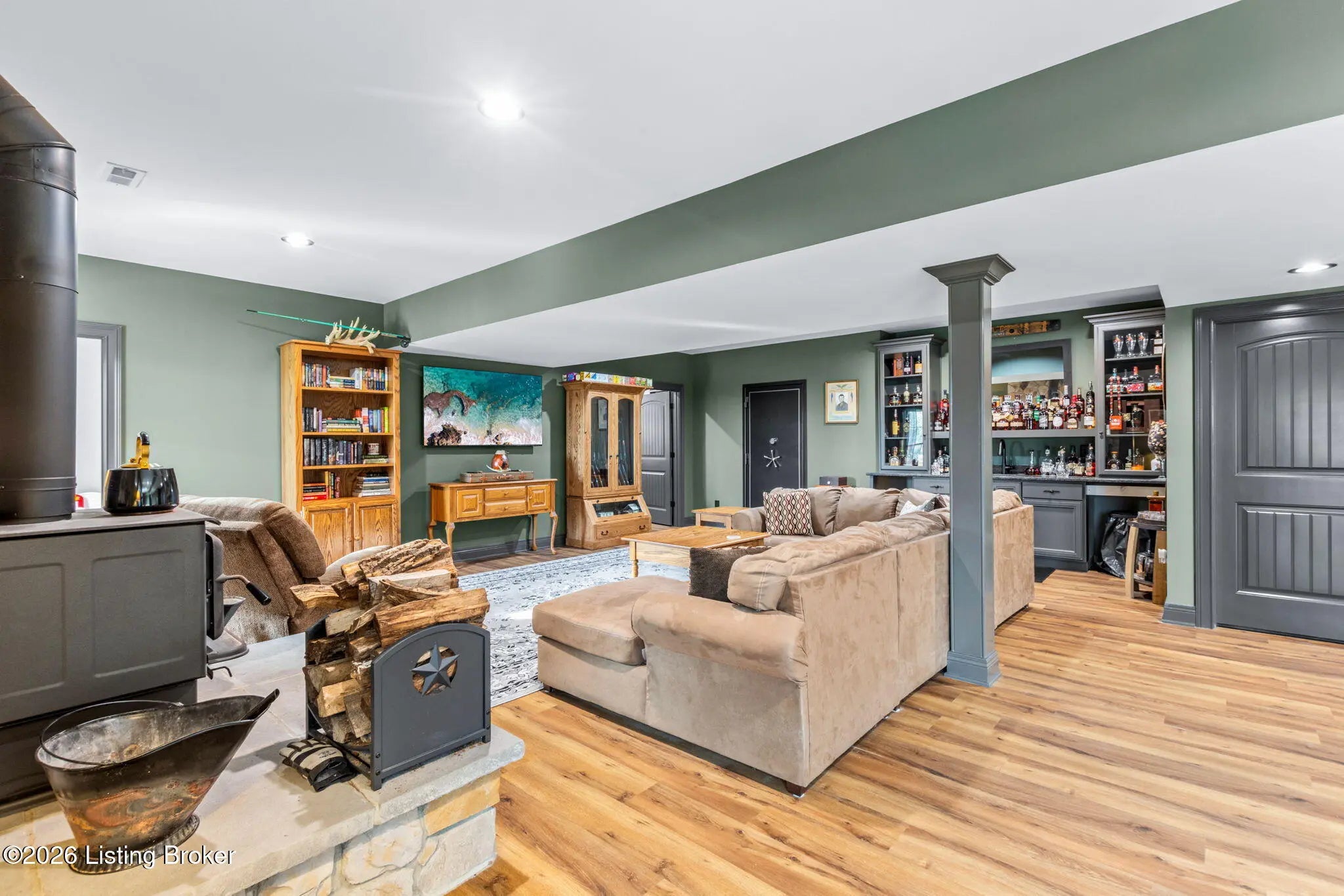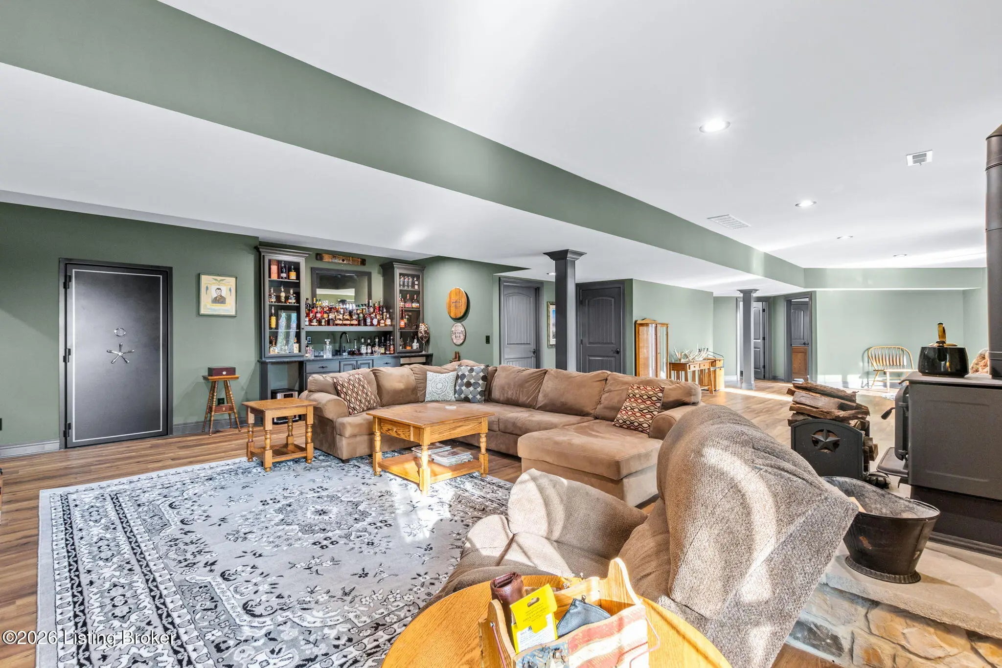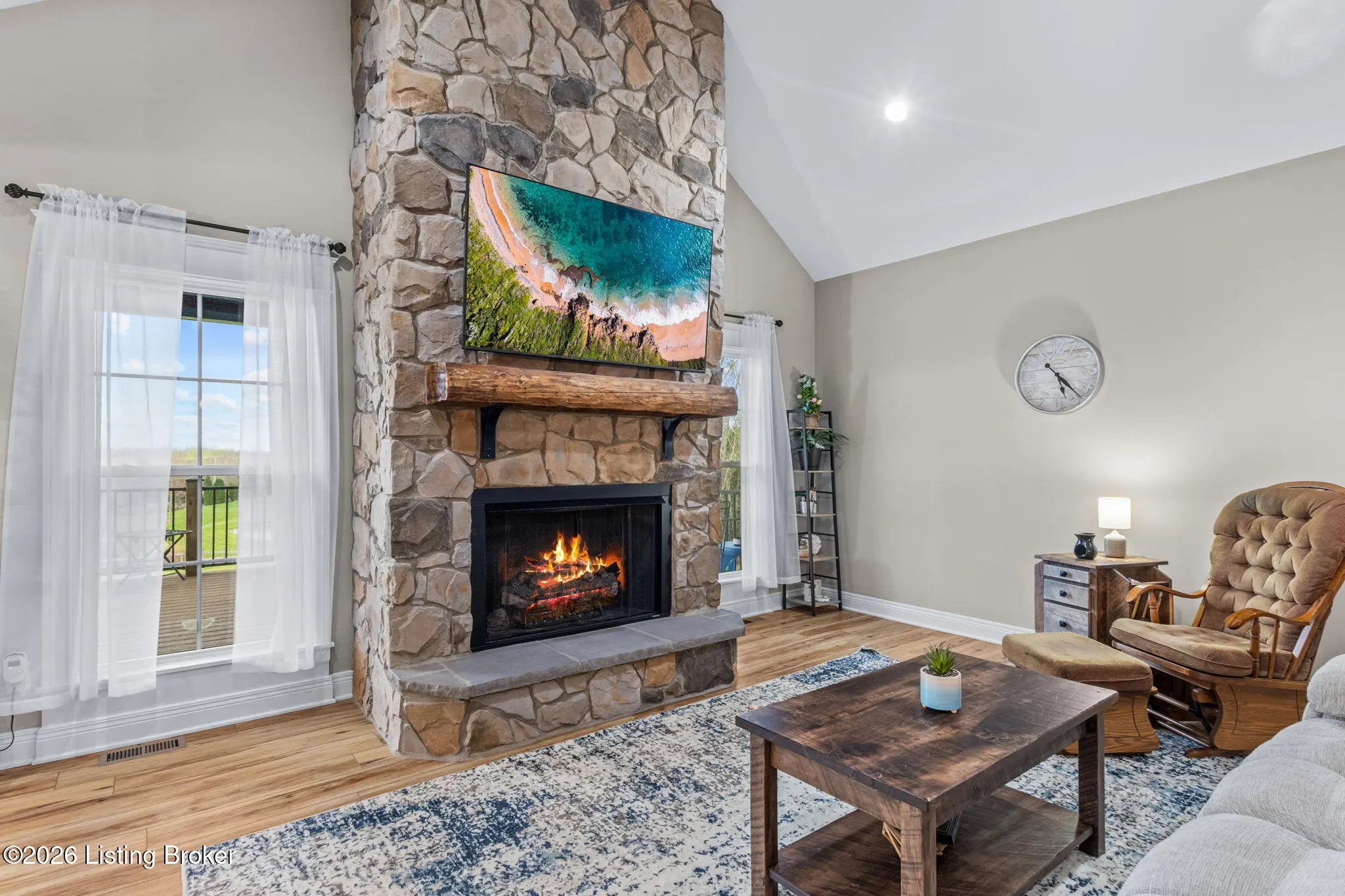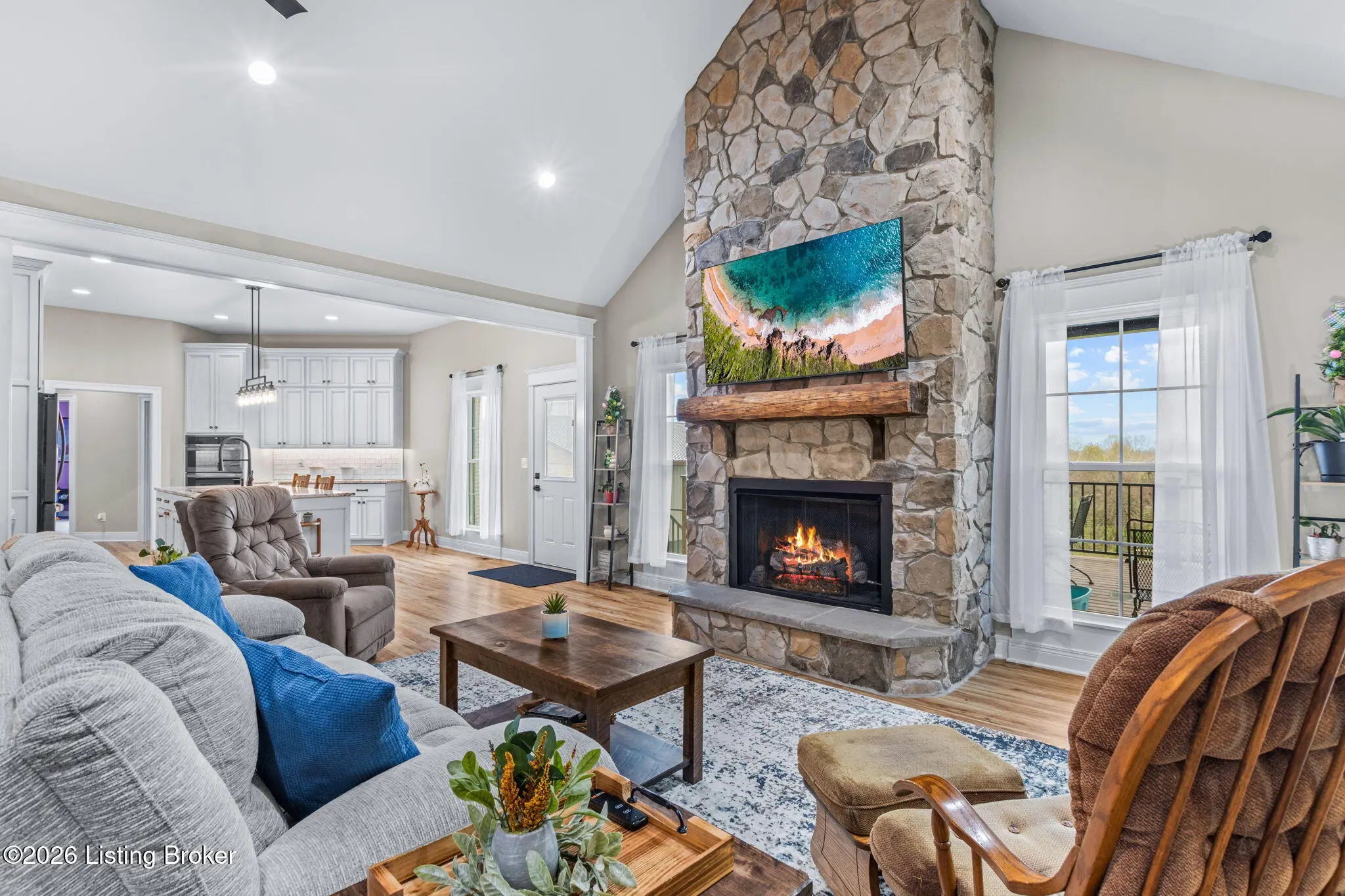 Get ready to fall in love with this place! Welcome to 178 Clayleen Way. A nearly new, custom-built home on 3.71 stunning acres, offering the perfect blend of privacy and functionality... all just 6 minutes from Taylorsville Lake. As you step inside, you're immediately drawn to the floor-to-ceiling stone fireplace, anchored by a truly one-of-a-kind centerpiece, a custom mantle crafted from a 200+ year-old reclaimed log, bringing history & character into the heart of the home. It's a feature you simply can't replicate. Soaring vaulted ceilings with exposed cedar beams, combined with high-end finishes & real stone throughout, give the home a rich, upscale feel while still feeling warm and inviting. The kitchen is equally impressive, featuring custom cabinets, granite counters, a gas range, a walk-in pantry & a large island. With 4 bedrooms, 3 full bathrooms, plus 2 additional bonus rooms, the layout offers incredible flexibility, easily functioning as a 5-6 bedroom home, office setup, or multi-purpose living space. The walk-out basement is built for entertaining, featuring a large open area and a bar space already roughed in for water hookup, ready for your vision. For added peace of mind, the home includes a fully reinforced concrete and steel safe room/gun vault, built with 18-inch walls, a 10-inch ceiling, and a vault-style steel door, a rare and highly valuable feature. Step outside onto the covered back deck with a cedar-lined ceiling and take in the views of your land, the perfect place to relax after a day at the lake. The 40x50 RV barn with 14-foot clearance offers space for your boat, camper & all your weekend toys, and is already prepped for electric and plumbing, giving you endless possibilities. Built for both comfort and resilience, the home features gas appliances, a wood/coal-burning stove, and the ability to function during power outages. This is more than a home, it's a rare combination of craftsmanship and modern functionality, all in one incredible property!