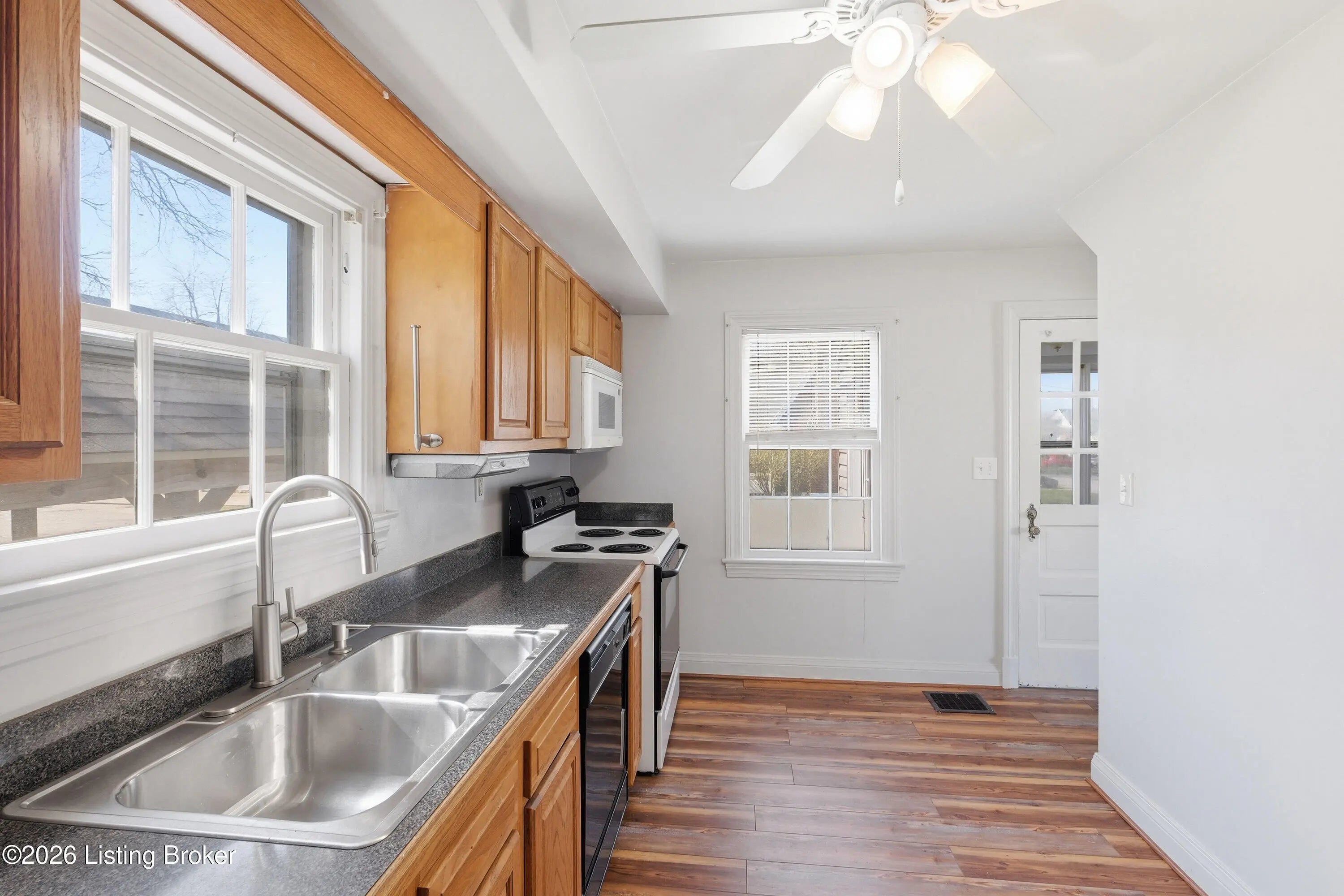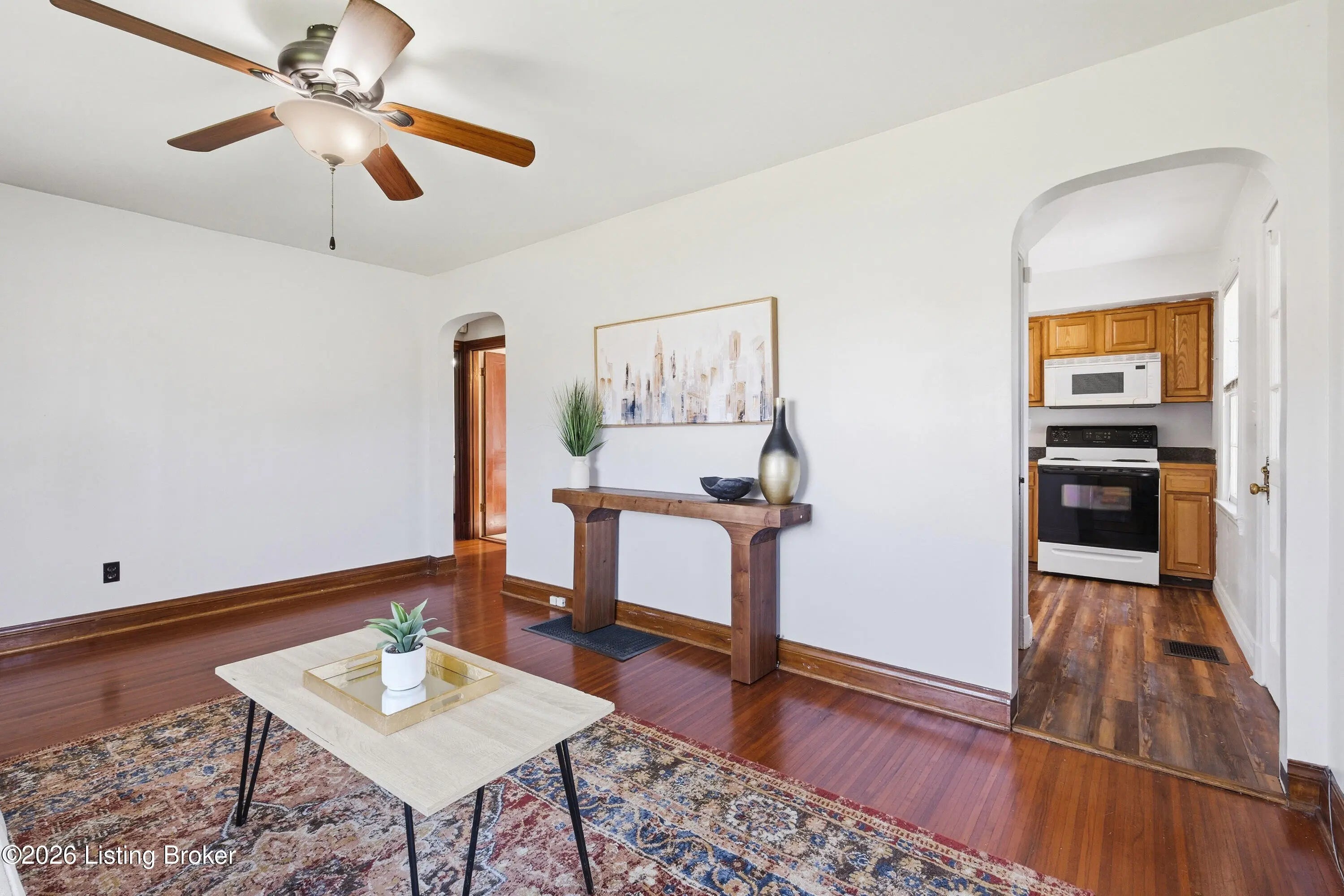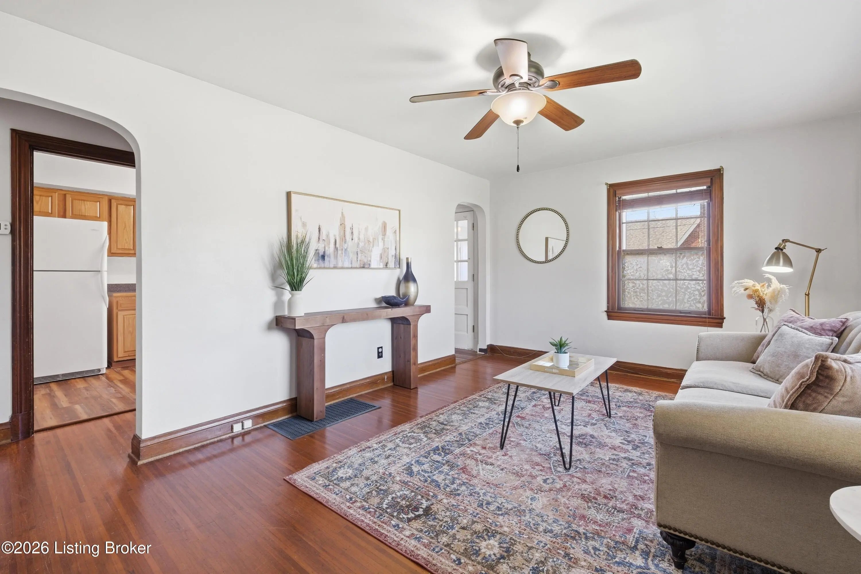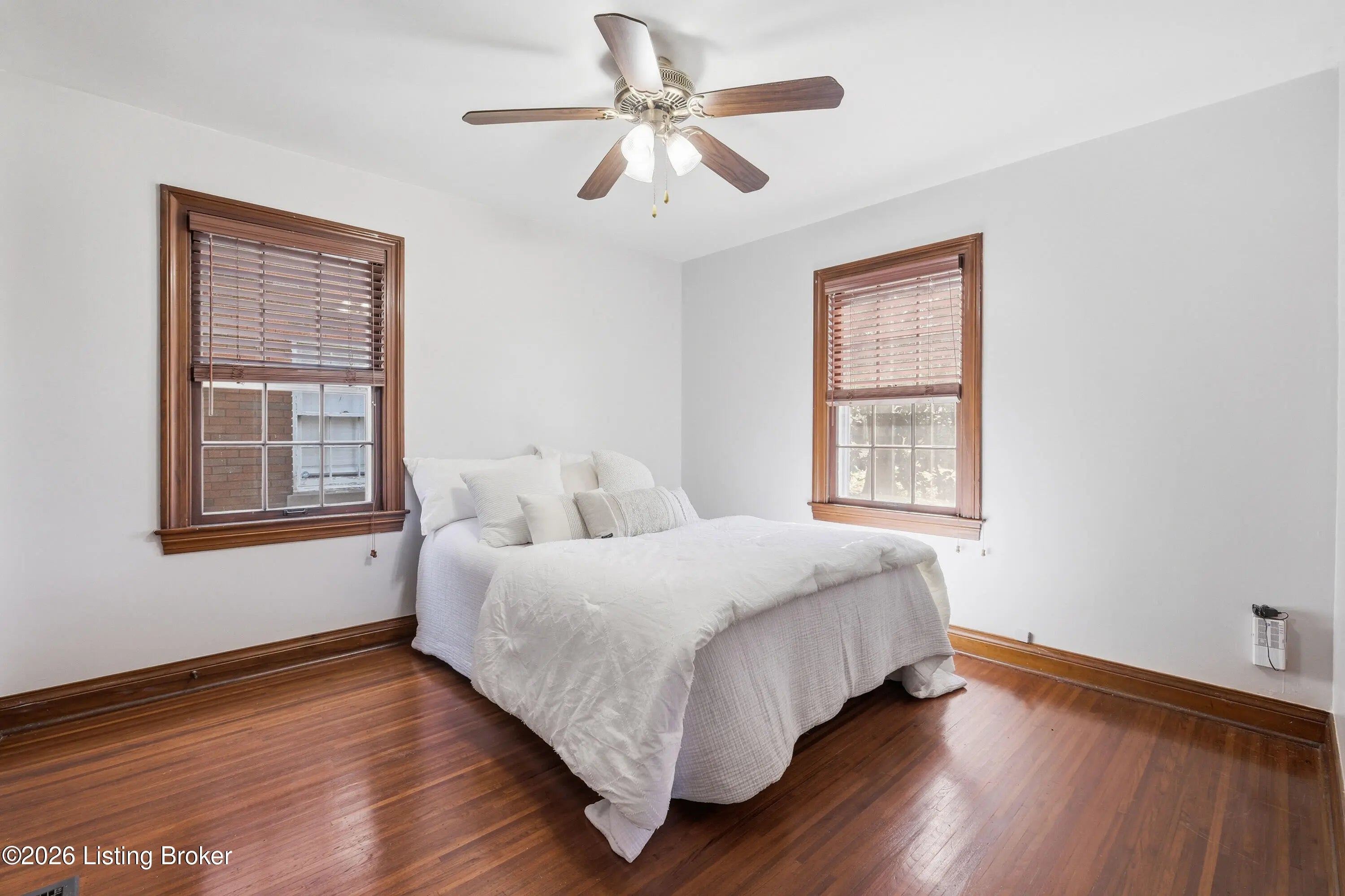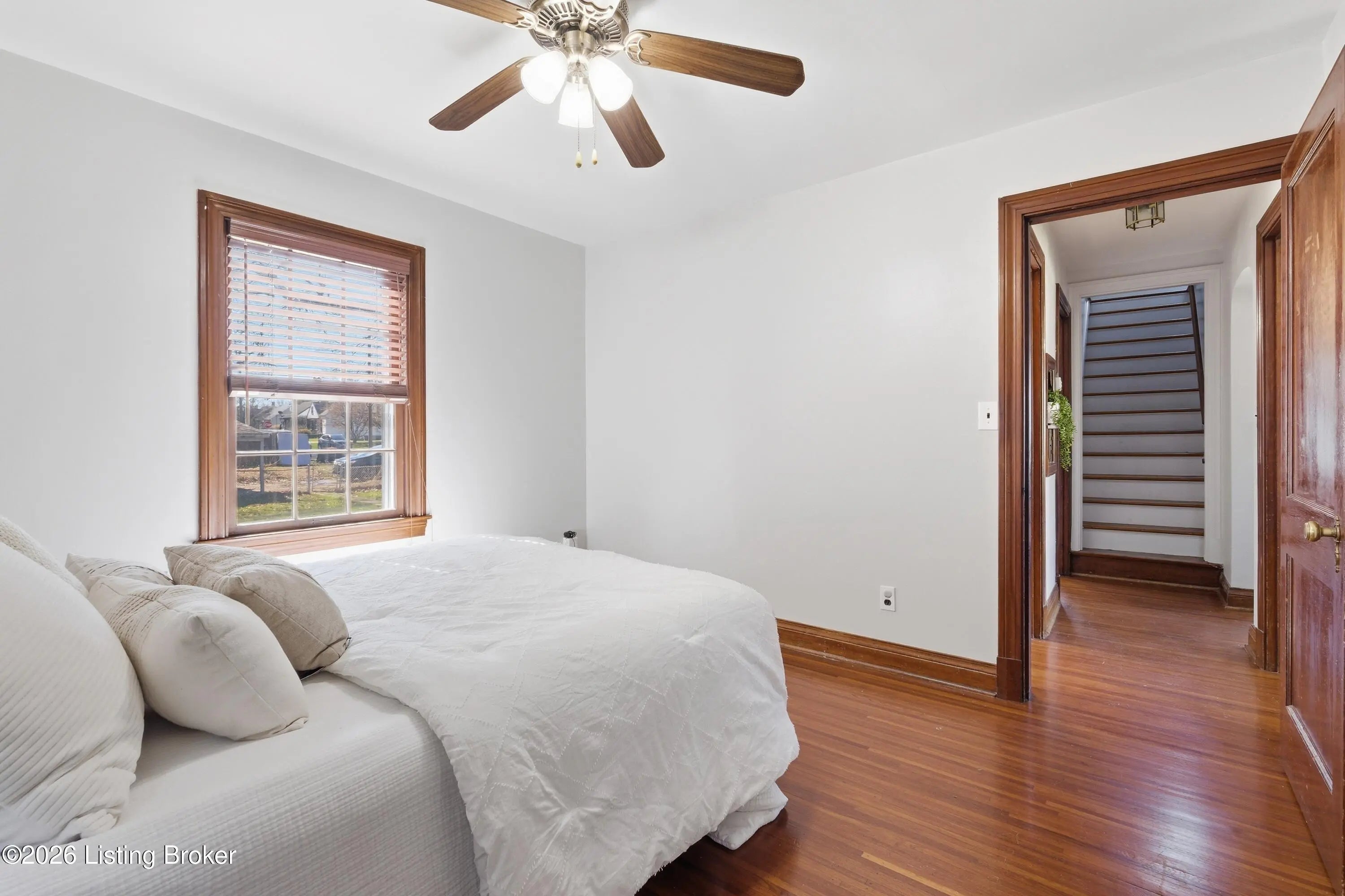 Welcome to this charming, cottage-style Cape Cod perfectly situated on a desirable corner lot, one you'll fall in love with from the moment you arrive. Step inside to discover beautiful hardwood floors that flow seamlessly throughout both the first and second levels, adding warmth and timeless appeal. The main floor features two spacious bedrooms and a full bath. The kitchen offers oak cabinetry, ample counter space, and a full suite of appliances. Upstairs, you'll find a third bedroom with an oversized cedar lined closet and an additional bonus space along with convenient extra storage, all thoughtfully finished to maximize space and comfort. The finished basement expands your living area with recessed lighting and plenty of room for a family or recreation space. A separate laundry area and an additional full bathroom make the basement both functional and versatile. Just off the kitchen, a light-filled mudroom with abundant windows leads to the fully fenced backyard. Here, you'll enjoy a covered patio, perfect for entertaining, relaxing, or hosting summer cookouts. The concrete patio and walkway connect to a detached garage with an attached carport for added convenience. Throughout the home, you'll appreciate the beautiful natural woodwork, charming interior arches, neutral color palette, and ceiling fans that create a move-in ready experience. Located just one block from George Rogers Clark Park, featuring walking trails, sports courts, and open green space, and within close proximity to St. X High School, and all the restaurants and shops off Poplar Level Rd, this home offers both character and convenience in a fantastic location.