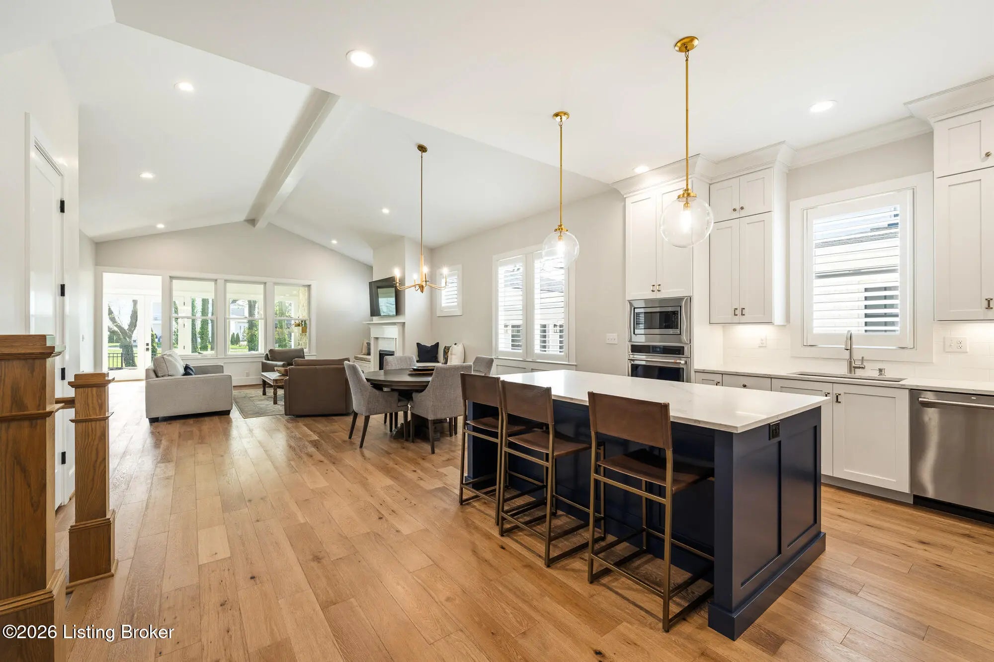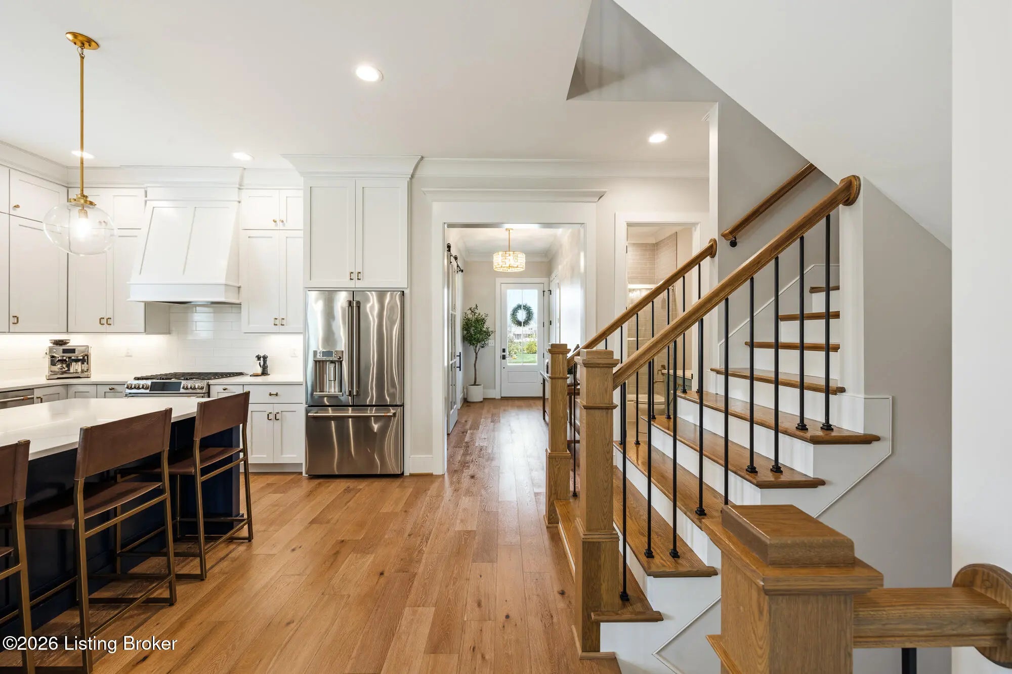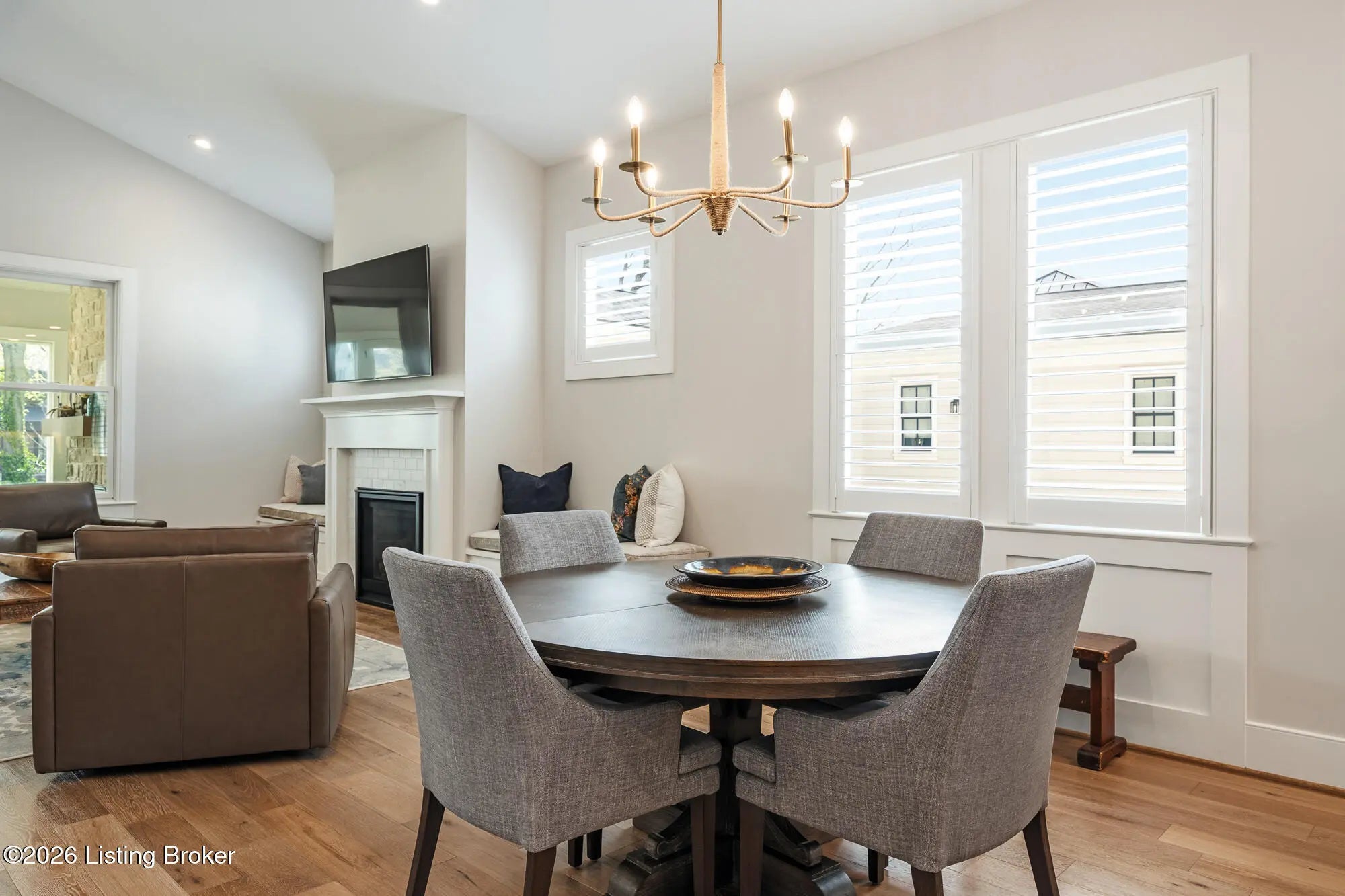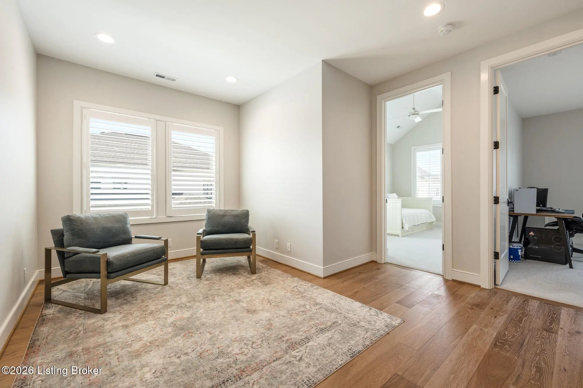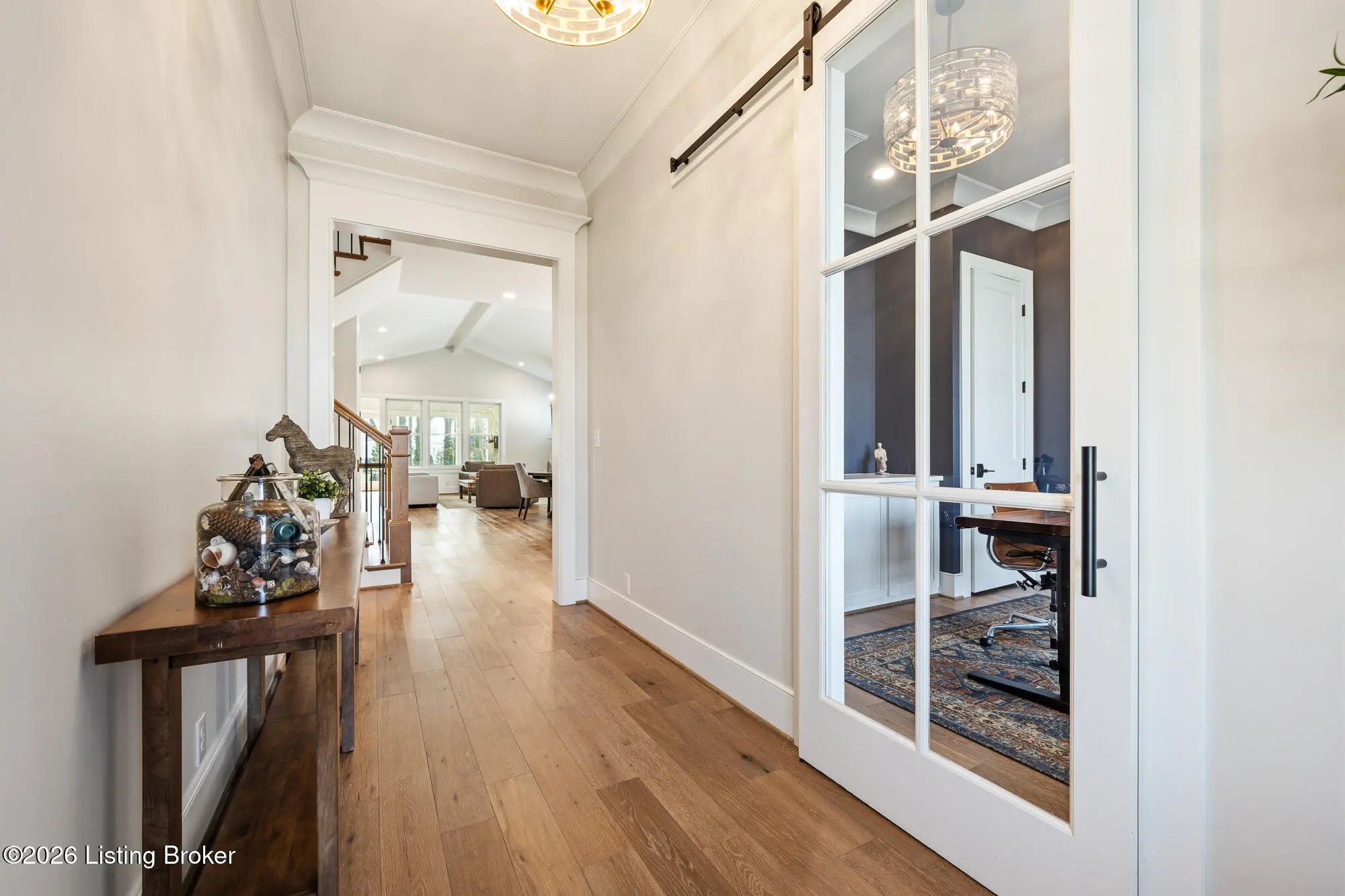 Nestled in highly sought-after Norton Commons, this exceptional newer home offers a thoughtful blend of luxury, comfort, and everyday livability. A perfectly manicured yard and inviting front porch set the tone, welcoming you into a light-filled interior anchored by beautiful wood floors and an open, flowing floor plan designed for both entertaining and relaxed living. The kitchen is as functional as it is stylish, featuring abundant storage, an oversized island, and a dining area that opens to the family room with fireplace. From there, step into the expansive sunroom, complete with its own fireplace, creating a warm, year-round retreat that opens to the outdoor patio. The first floor also includes a dedicated office with closet space, a full bath, and a well-appointed laundry room. The first-floor primary suite is a private haven with a large walk-in closet and a spa-like bath featuring double vanities, a soaking tub, and a separate walk-in shower. Upstairs, an open sitting area can be used as study area or cozy reading nook providing additional flexibility, along with two large bedrooms and a full bath. The finished basement expands your living space with a generous family room, game room with a Full Swing sport golf simulator, a workout room, and a full bath. Outdoors the fenced patio, with built-in gas grill, is adjacent to a park offering a true backyard retreat. A two-car garage plus a one-car garage wired for an EV charger and extended driveway provide ample parking. Geothermal systems provide energy-efficient comfort year-round. Living in Norton Commons in the Oldham County school district offers a true sense of community, with walkable access to neighborhood parks, dining, shops, and year-round events. Schedule your showing today!