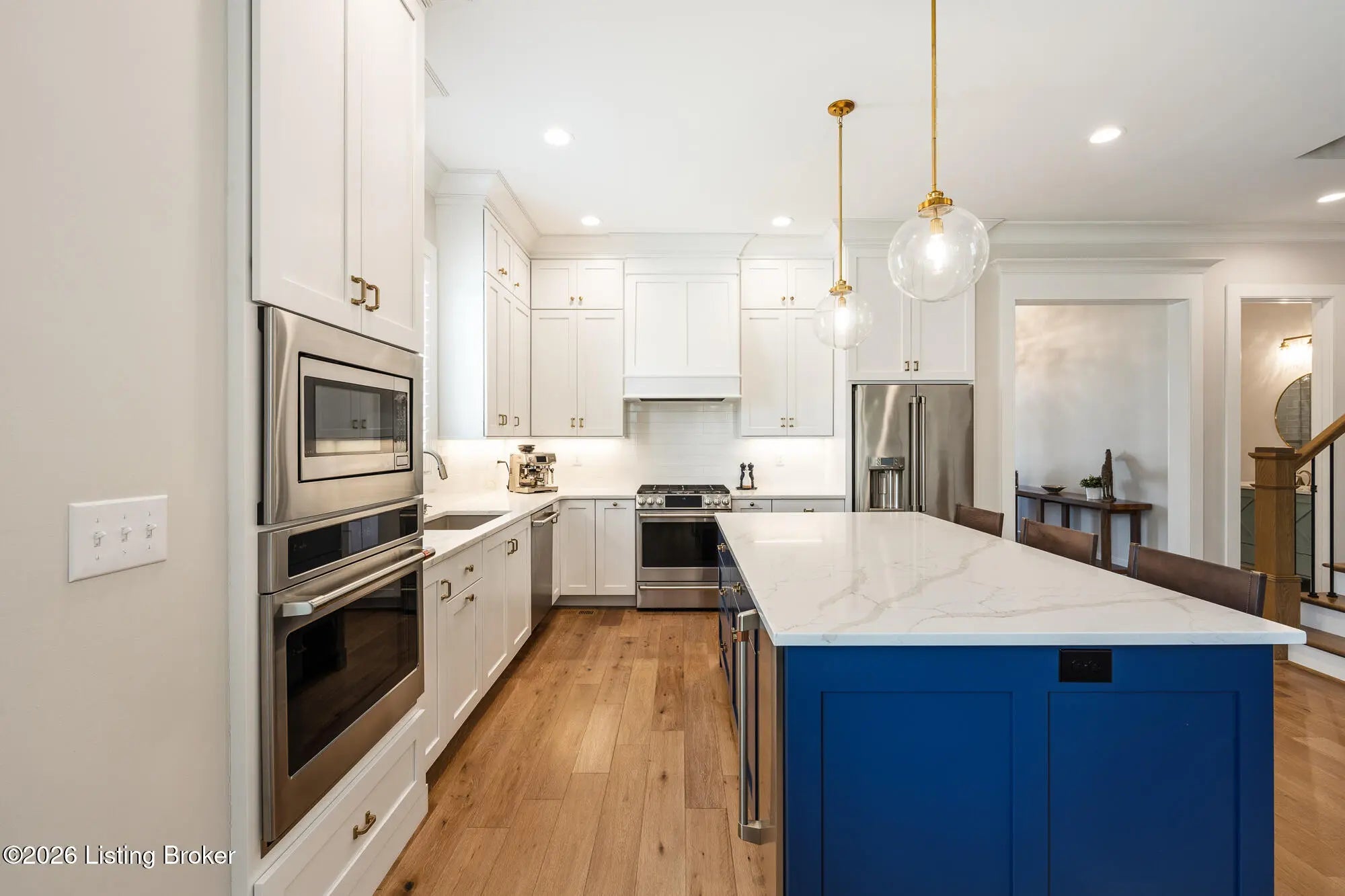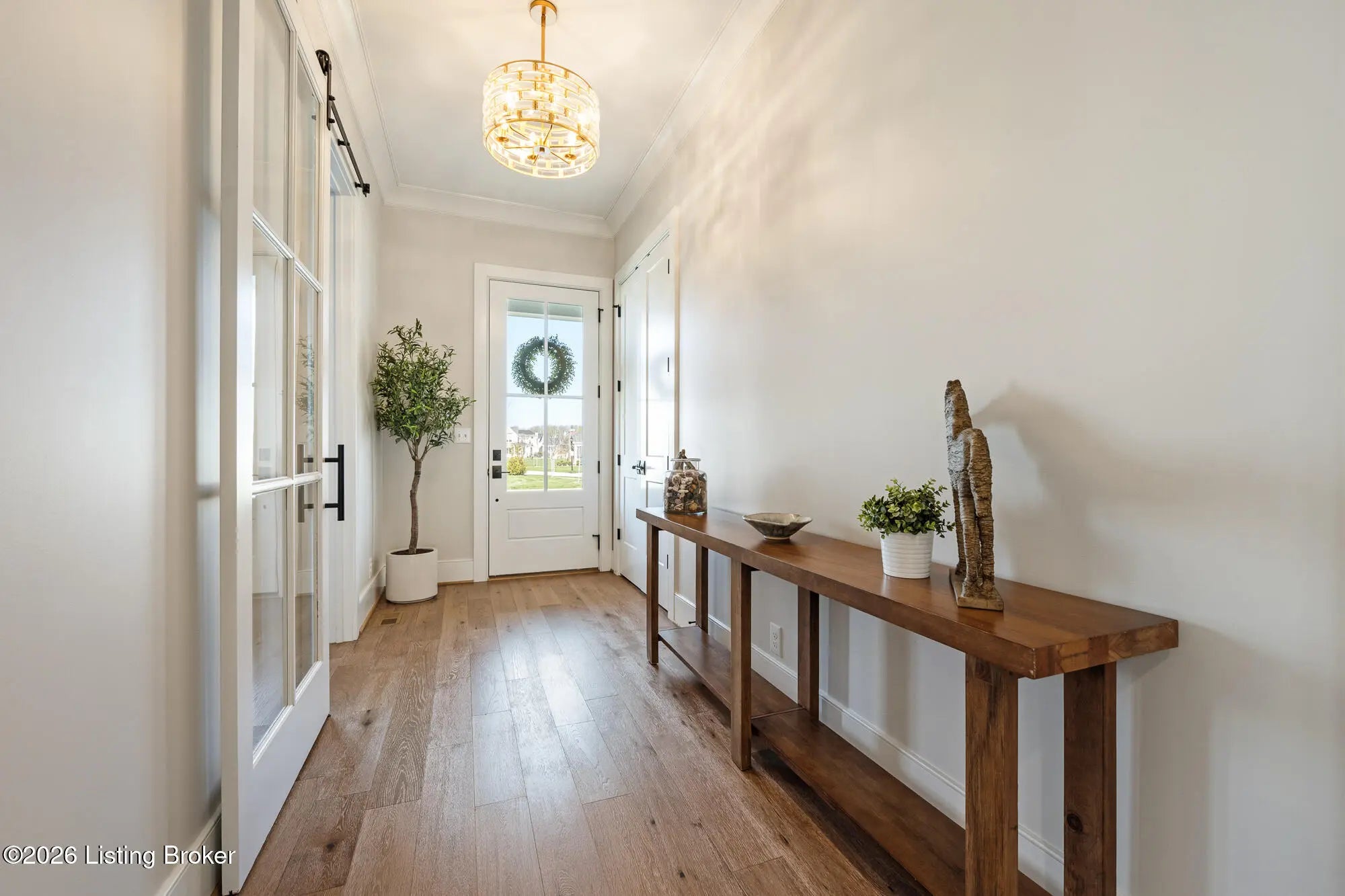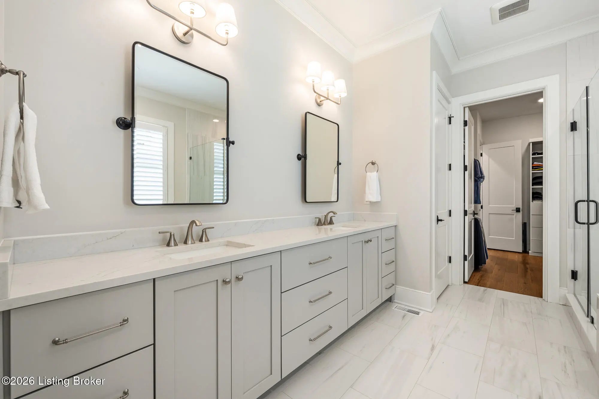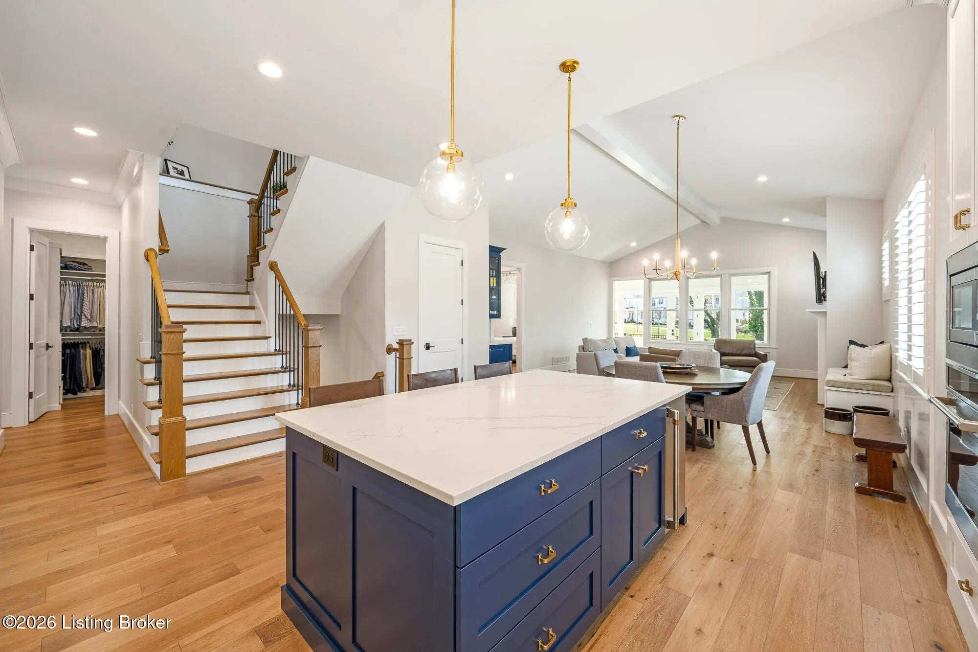 Nestled in highly sought-after Norton Commons, this exceptional newer home offers a thoughtful blend of luxury, comfort, and everyday livability. A perfectly manicured yard and inviting front porch set the tone, welcoming you into a light-filled interior anchored by beautiful wood floors and an open, flowing floor plan designed for both entertaining and relaxed living. The kitchen is as functional as it is stylish, featuring abundant storage, an oversized island, and a dining area that opens to the family room with fireplace. From there, step into the expansive sunroom, complete with its own fireplace, creating a warm, year-round retreat that opens to the outdoor patio. The first floor also includes a dedicated office with closet space, a full bath, and a well-appointed laundry room. The first-floor primary suite is a private haven with a large walk-in closet and a spa-like bath featuring double vanities, a soaking tub, and a separate walk-in shower. Upstairs, an open sitting area can be used as study area or cozy reading nook providing additional flexibility, along with two large bedrooms and a full bath. The finished basement expands your living space with a generous family room, game room with a Full Swing sport golf simulator, a workout room, and a full bath. Outdoors the fenced patio, with built-in gas grill, is adjacent to a park offering a true backyard retreat. A two-car garage plus a one-car garage wired for an EV charger and extended driveway provide ample parking. Geothermal systems provide energy-efficient comfort year-round. Living in Norton Commons in the Oldham County school district offers a true sense of community, with walkable access to neighborhood parks, dining, shops, and year-round events. Schedule your showing today!