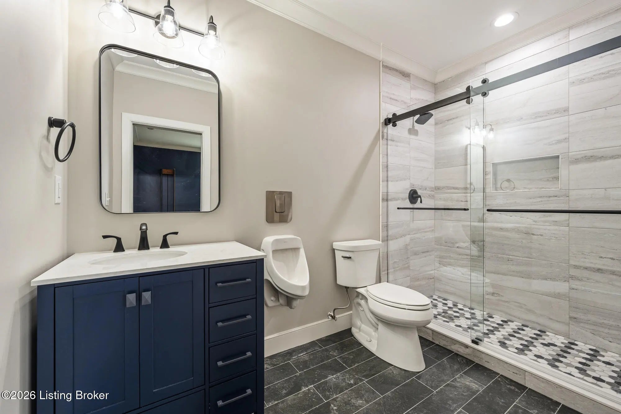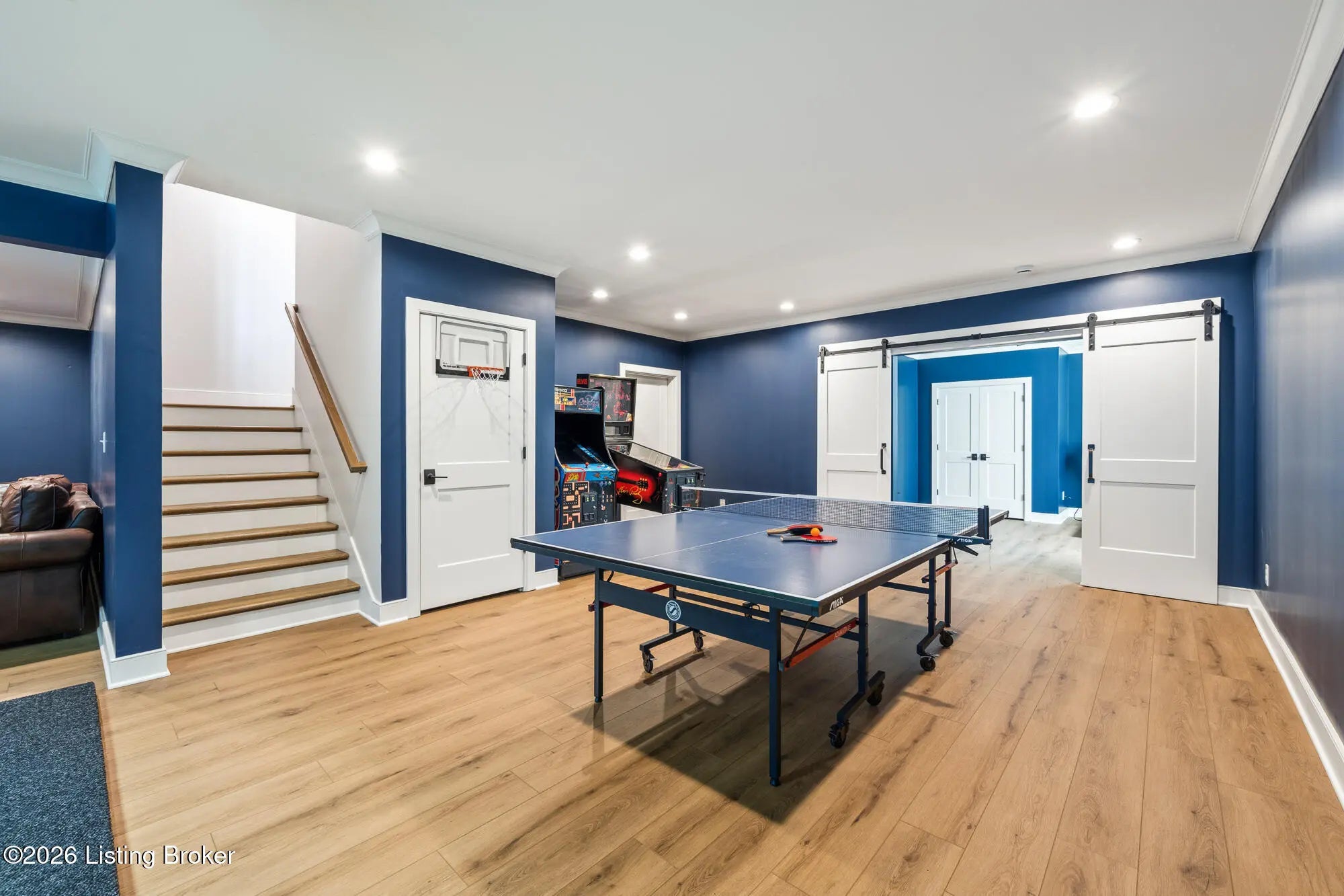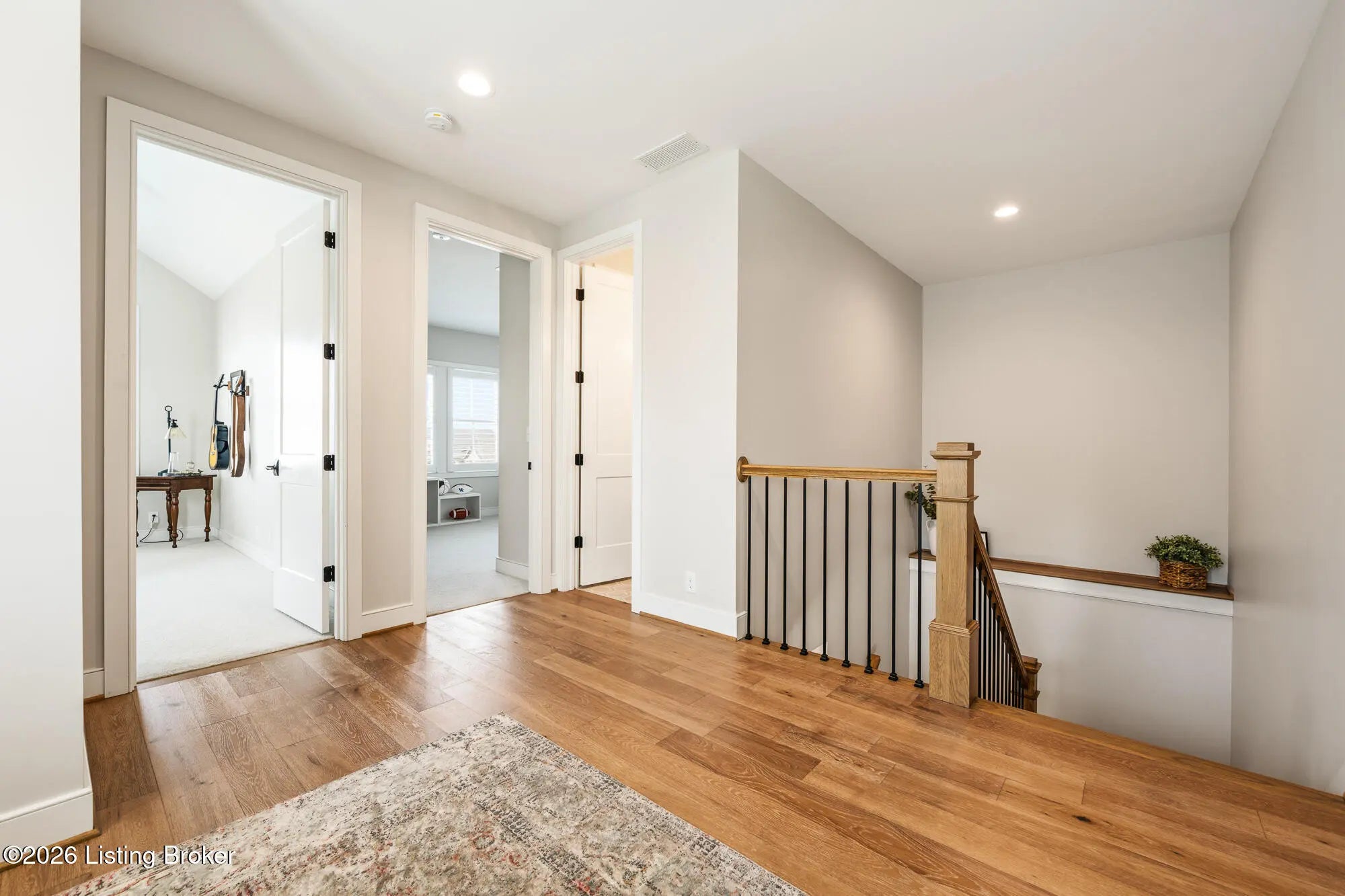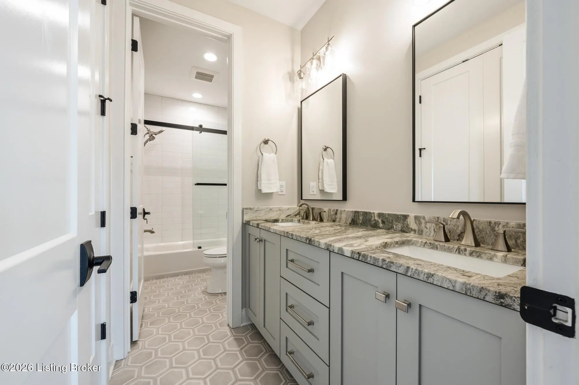 Nestled in highly sought-after Norton Commons, this exceptional newer home offers a thoughtful blend of luxury, comfort, and everyday livability. A perfectly manicured yard and inviting front porch set the tone, welcoming you into a light-filled interior anchored by beautiful wood floors and an open, flowing floor plan designed for both entertaining and relaxed living. The kitchen is as functional as it is stylish, featuring abundant storage, an oversized island, and a dining area that opens to the family room with fireplace. From there, step into the expansive sunroom, complete with its own fireplace, creating a warm, year-round retreat that opens to the outdoor patio. The first floor also includes a dedicated office with closet space, a full bath, and a well-appointed laundry room. The first-floor primary suite is a private haven with a large walk-in closet and a spa-like bath featuring double vanities, a soaking tub, and a separate walk-in shower. Upstairs, an open sitting area can be used as study area or cozy reading nook providing additional flexibility, along with two large bedrooms and a full bath. The finished basement expands your living space with a generous family room, game room with a Full Swing sport golf simulator, a workout room, and a full bath. Outdoors the fenced patio, with built-in gas grill, is adjacent to a park offering a true backyard retreat. A two-car garage plus a one-car garage wired for an EV charger and extended driveway provide ample parking. Geothermal systems provide energy-efficient comfort year-round. Living in Norton Commons in the Oldham County school district offers a true sense of community, with walkable access to neighborhood parks, dining, shops, and year-round events. Schedule your showing today!