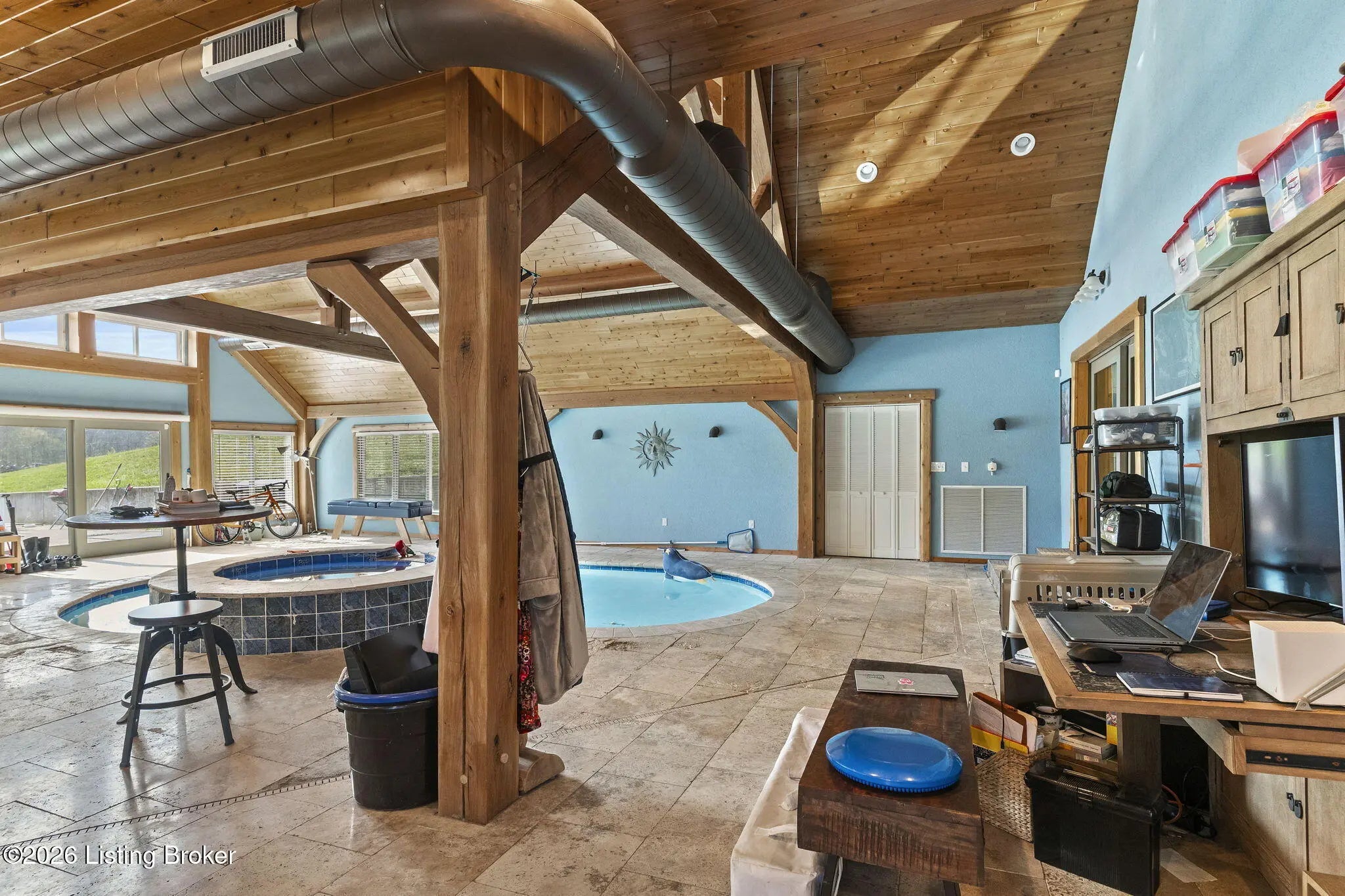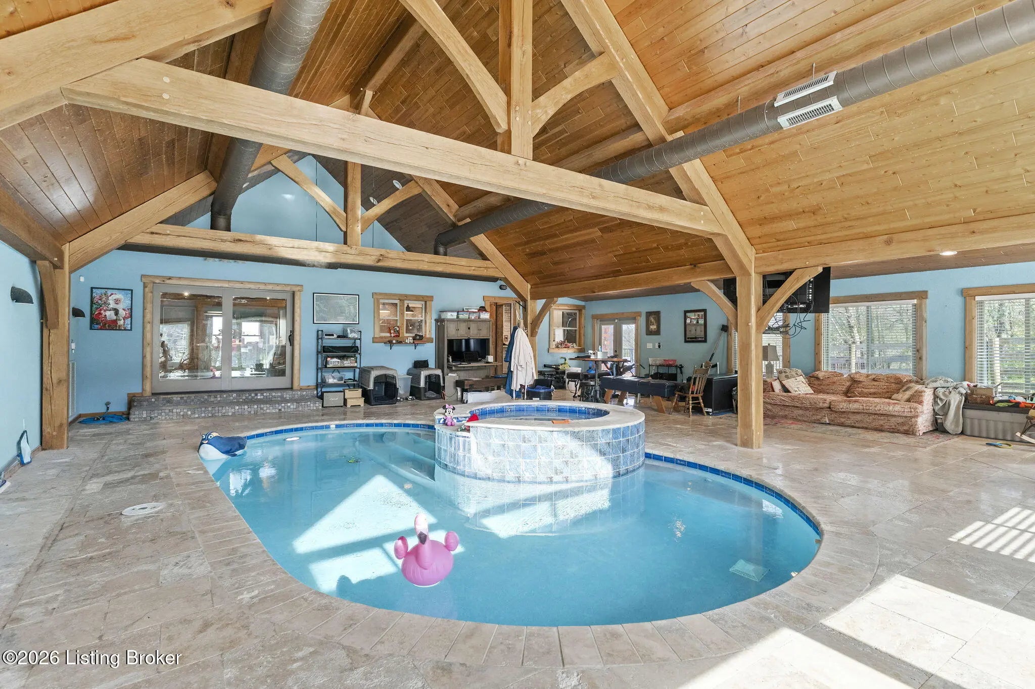 Welcome to a rare opportunity in Carroll County—this stunning 3 bedroom, 3 full bath log home sits on approximately 250 acres just minutes from I-71, offering the perfect blend of privacy, recreation, and convenience. The property is truly a sportsman's paradise, with roughly 220 acres of mature wooded land featuring an established trail system that provides easy access throughout. Whether you're heading to one of the ponds, exploring the creeks that run through the property, or setting up in one of several prime hunting locations, this land is built for outdoor enjoyment. The area is well known for abundant wildlife, including mature whitetail bucks and strong turkey populations. Across the road, additional acreage is currently in tillable production, adding both versatility and income potential. The home itself has recently undergone a substantial remodel and showcases a beautifully updated kitchen with high-end finishes, top-of-the-line appliances, and impressive countertops and island space—perfect for entertaining or everyday living. What truly sets this property apart is the expansive, nearly 1,500 square foot indoor pool addition. Designed as a multi-purpose living space, this area is comfortably maintained year-round by a specialty HVAC system engineered specifically for pool environments. Whether you're swimming, relaxing in the hot tub, or simply unwinding while watching TV, this space offers a unique lifestyle feature rarely found in properties like this. With the option to divide the acreage, this property presents flexibility for a variety of buyers—whether you're seeking a private estate, recreational retreat, or investment opportunity. Properties like this don't come around often. Schedule your private showing today.