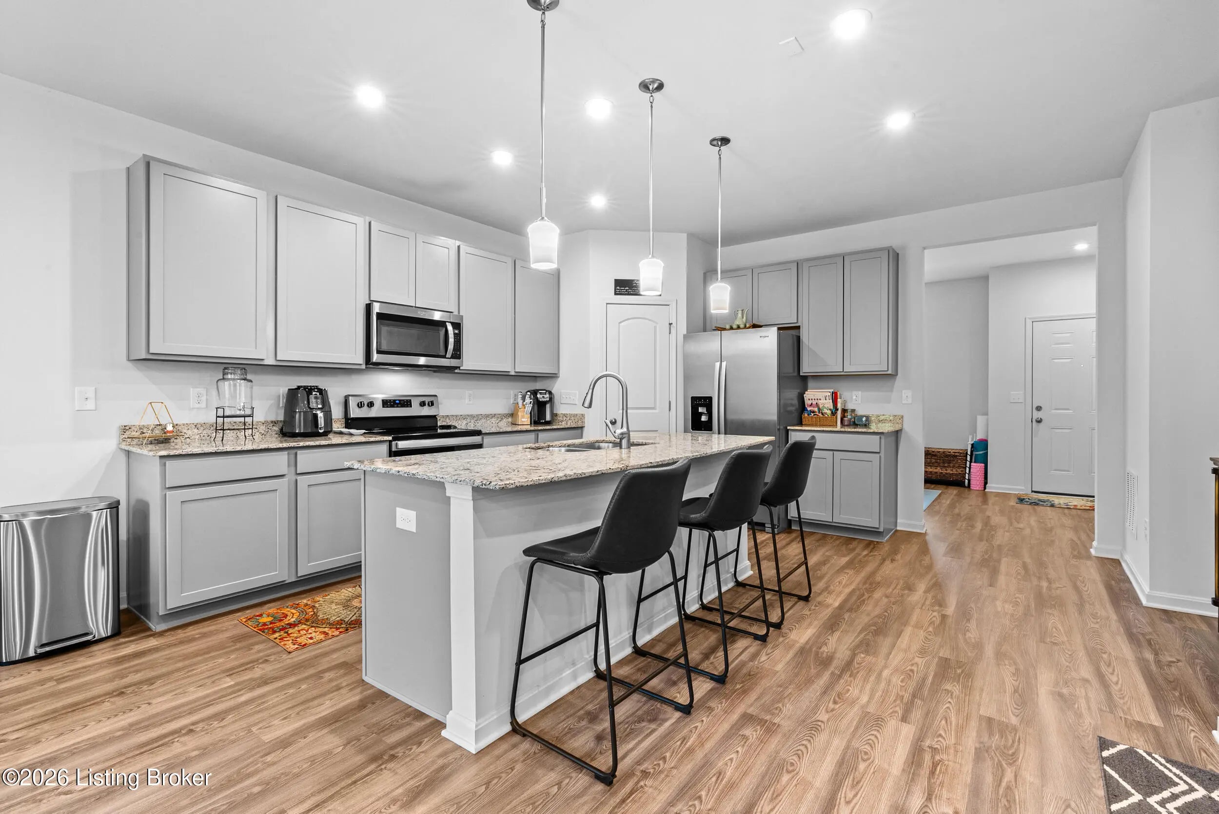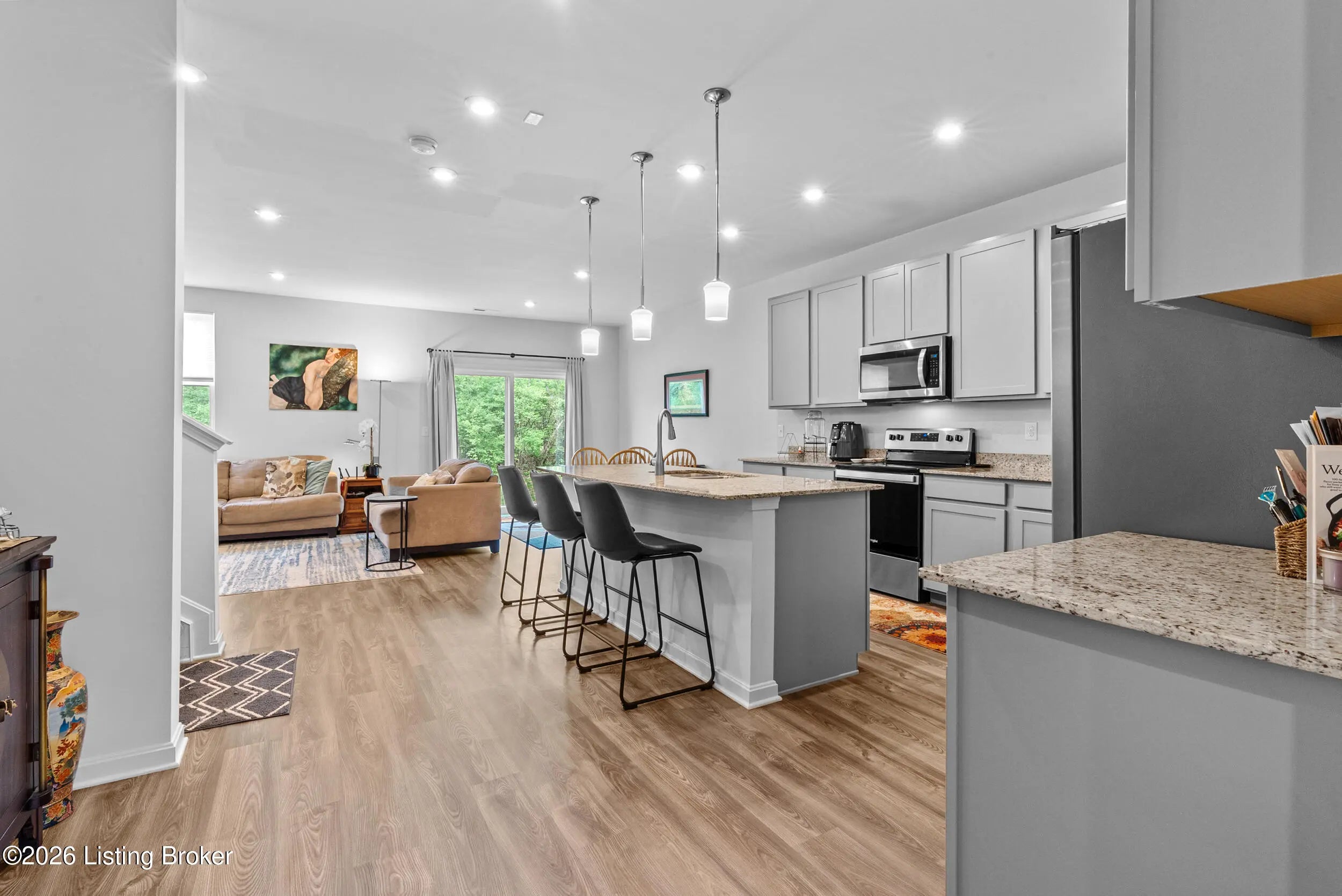 Welcome home to this beautifully designed 4-bedroom home offering over 2600 square feet of thoughtfully planned living space. This home features 4 bedrooms, 2.5 bathrooms, and a versatile loft, making it ideal for today's lifestyle. The first floor welcomes you with a flexible front room off the foyer, perfect for a formal dining room, home office, formal sitting area, or playroom. The heart of the home opens to a spacious family room, dining area, and kitchen, creating a seamless open-concept layout ideal for entertaining and everyday living. The kitchen features granite countertops, ample cabinetry, a pantry, and a large island overlooking the main living space. A flex room conveniently located on the first floor and a half bathroom completes the main level, along with easy access to the Welcome home to this beautifully designed 4-bedroom home offering over 2600 square feet of thoughtfully planned living space. This home features 4 bedrooms, 2.5 bathrooms, and a versatile loft, making it ideal for today's lifestyle. The first floor welcomes you with a flexible front room off the foyer, perfect for a formal dining room, home office, formal sitting area, or playroom. The heart of the home opens to a spacious family room, dining area, and kitchen, creating a seamless open-concept layout ideal for entertaining and everyday living. The kitchen features granite countertops, ample cabinetry, a pantry, and a large island overlooking the main living space. A flex room conveniently located on the first floor and a half bathroom completes the main level, along with easy access to the attached garage. Upstairs, the generously sized primary suite offers a private retreat with a walk-in closet and an en-suite bathroom. Three large additional bedrooms, a full bathroom, and a centrally located loft/sitting area provide plenty of room for family, guests, or work-from-home needs. The upper-level layout offers both comfort and privacy with excellent separation of spaces. Step outside to enjoy a backyard that backs up to a tree line and green space.. Schedule your private showing today.
