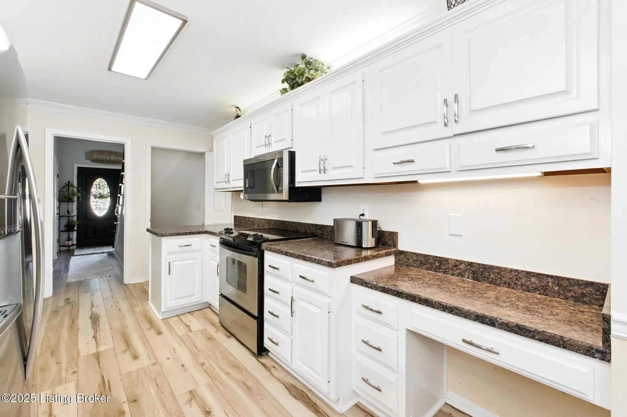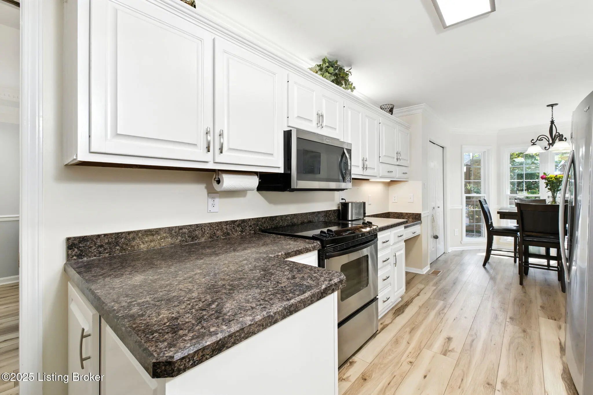 First time on the market and almost 10 years and the care and love for this home shows! Great value at this price compared to other homes in the area with the same size and condition! 4 bedroom, 3 full bath, 2 fireplaces; balcony off of the primary bedroom, finished basement and updates that include: air-conditioning and furnace both replaced four years ago, hot water less than a year ago, windows have been replaced, three doors have been replaced, entire length of the house deck for backyard, entertainment; updated and stylish, bathrooms, and kitchen; House had white siding / windows installed - 2022, Laminate floors approximately 2022, carpet 2025, Kitchen countertops refinished and painted 2022 wet bar for your bourbon collection; stainless steel kitchen appliances that remain; updated, vinyl flooring; as big of a walk-in closet as you find; the see-through fireplace from three angles in the primary bedroom make for cozy atmosphere; spacious basement has finished space and plenty of storage; fast possession available, dead in street makes for low traffic and minutes away from Iroquois Park, Gene Snyder and Dixie Highway!