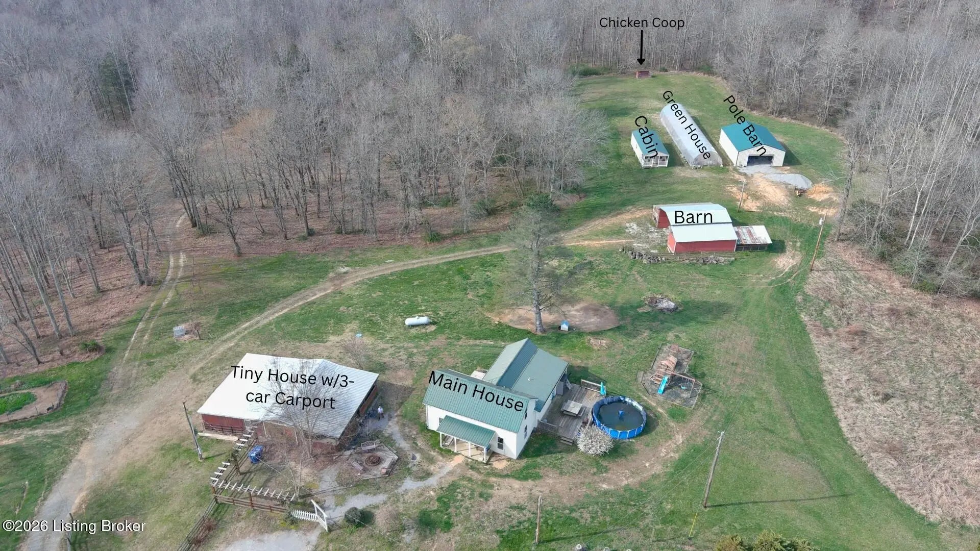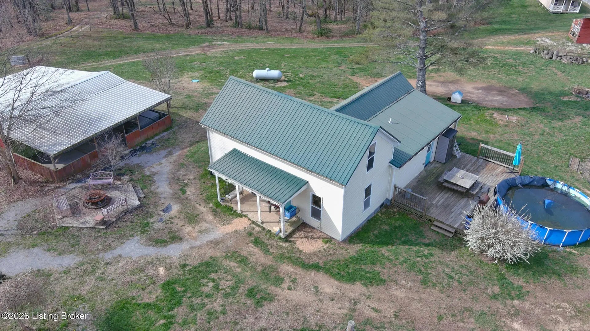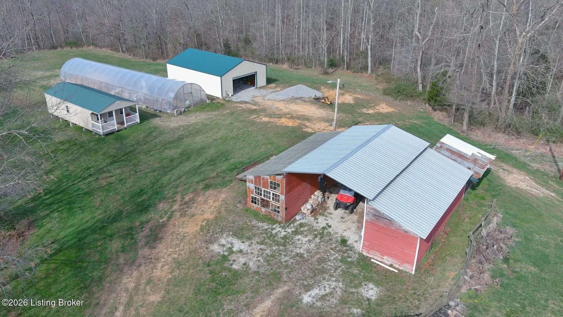 Private Retreat on 44.77 Acres. Welcome to your own slice of countryside, where a paved road winds through rolling, scenic farmland & leads you to this rare property offering the perfect blend of cleared and wooded land already subdivided into 5 lots for added flexibility & future potential. Conveniently located just 14 min. to Hodgenville, 30 min. to Elizabethtown, 48 min. to Fort Knox, & within an hour to Louisville, this property delivers peaceful seclusion without sacrificing accessibility. The home has seen extensive updates & improvements, giving buyers confidence & peace of mind, including: New HVAC (2025) New well pump (2024) Septic serviced (2024) Updated appliances (2021-2023) New gas fireplace (2021) Structural improvements, including steel foundation support beams, floor joists, and crawl space vapor barrier (2021) Fire safety system with 10-year batteries (2023) The home has seen extensive updates & improvements, giving buyers confidence in the big-ticket items already being addressed, including: New HVAC (2025) New well pump (2024) Septic serviced (2024) Updated appliances (2021-2023) New gas fireplace (2021) Structural improvements, including steel foundation support beams, floor joists, and crawl space vapor barrier (2021) Fire safety system with 10-year batteries (2023) Inside, the home offers a solid foundation with major systems updated, while leaving room for cosmetic improvements and finishing touches—allowing buyers to make it their own and build equity without the burden of large mechanical or structural expenses. Main-floor laundry adds convenience, and additional materials have already been purchased to help complete flooring and trim. Step outside and this property truly shines. Proptery includes: Barn $20K Pole Barn (2021) Additional unused cabin (2022) Tiny house with utilities + 3-car carport Greenhouse with fans & chicken coop Above-ground pool (2022) & Thermaspa hot tub Orchard with apple, pear, peach, plum & blueberry Creek 2 access points to property Barn hydrant (2024) For added value, tractor with implements and zero-turn mower remain, owned propane tank—making this a true turnkey opportunity for country living, homesteading, or multi-use investment. Whether you're looking to create a private retreat, family compound, or income-producing setup, this property offers unmatched versatility with the heavy lifting already done. Property is being sold As Is. Sellers will entertain inspections.